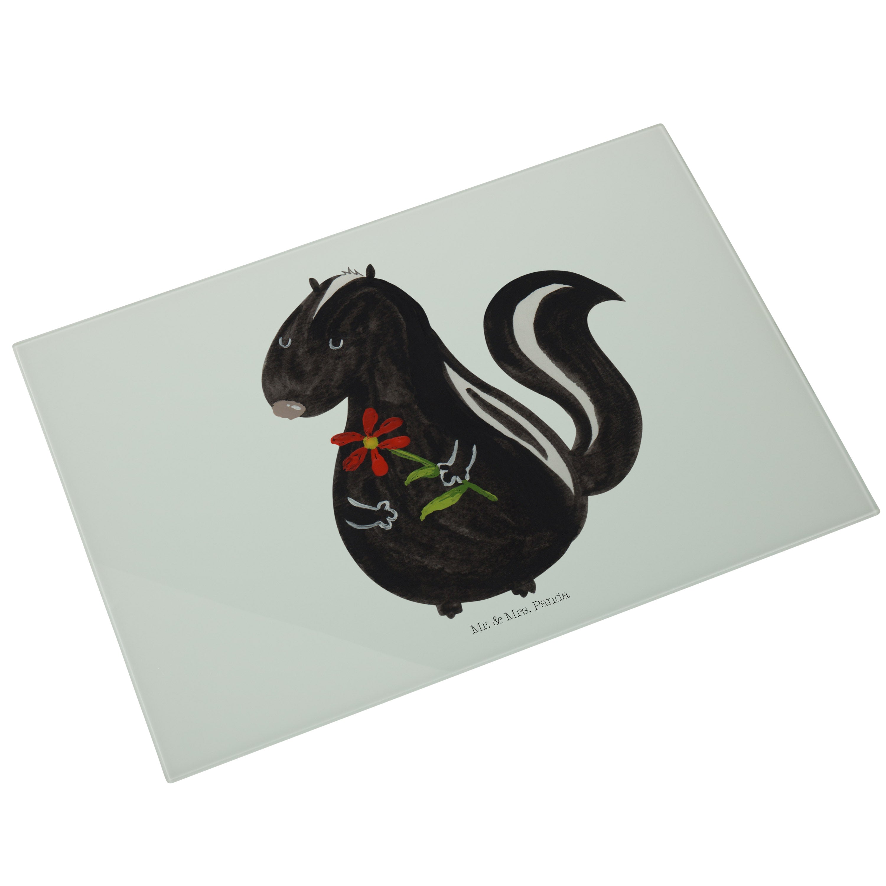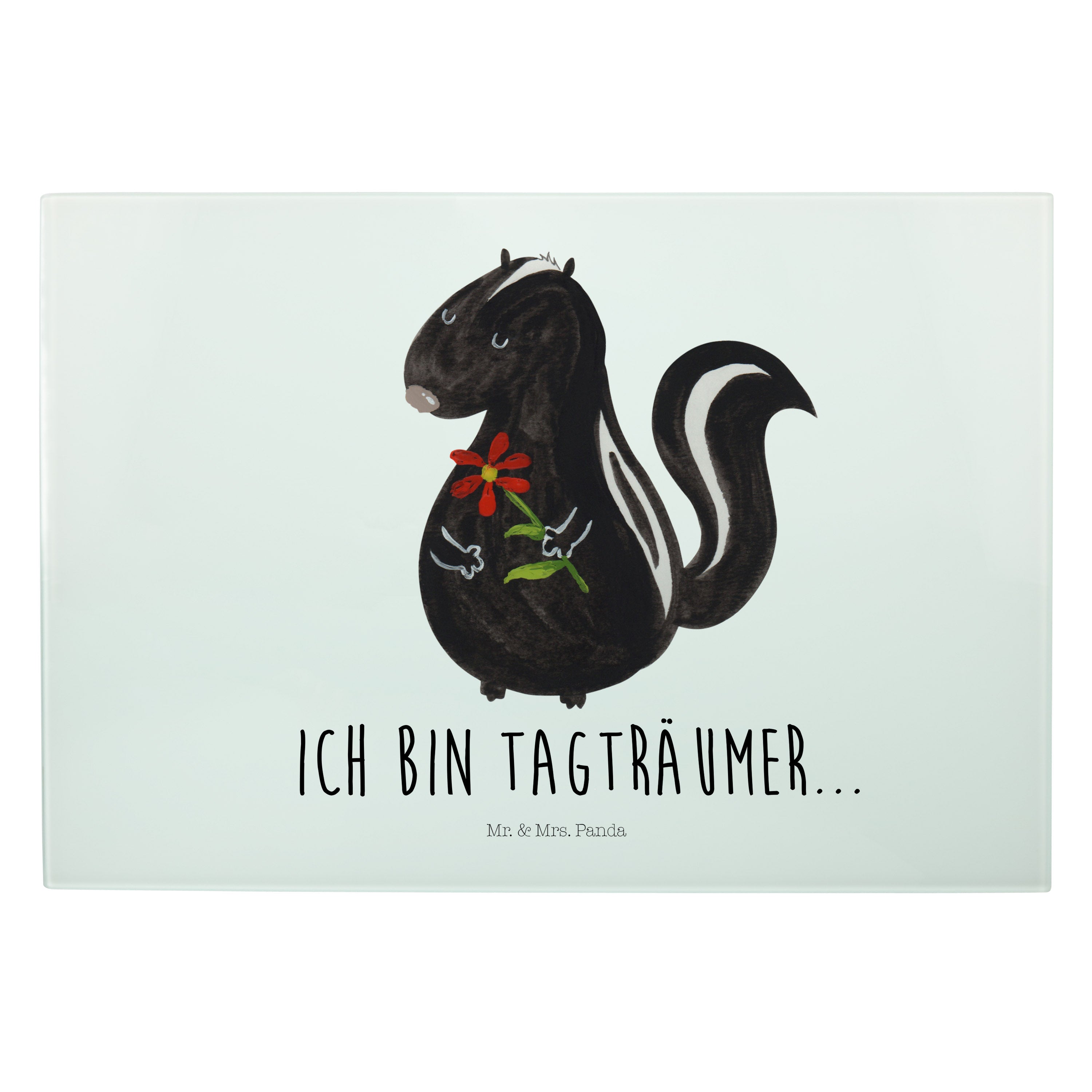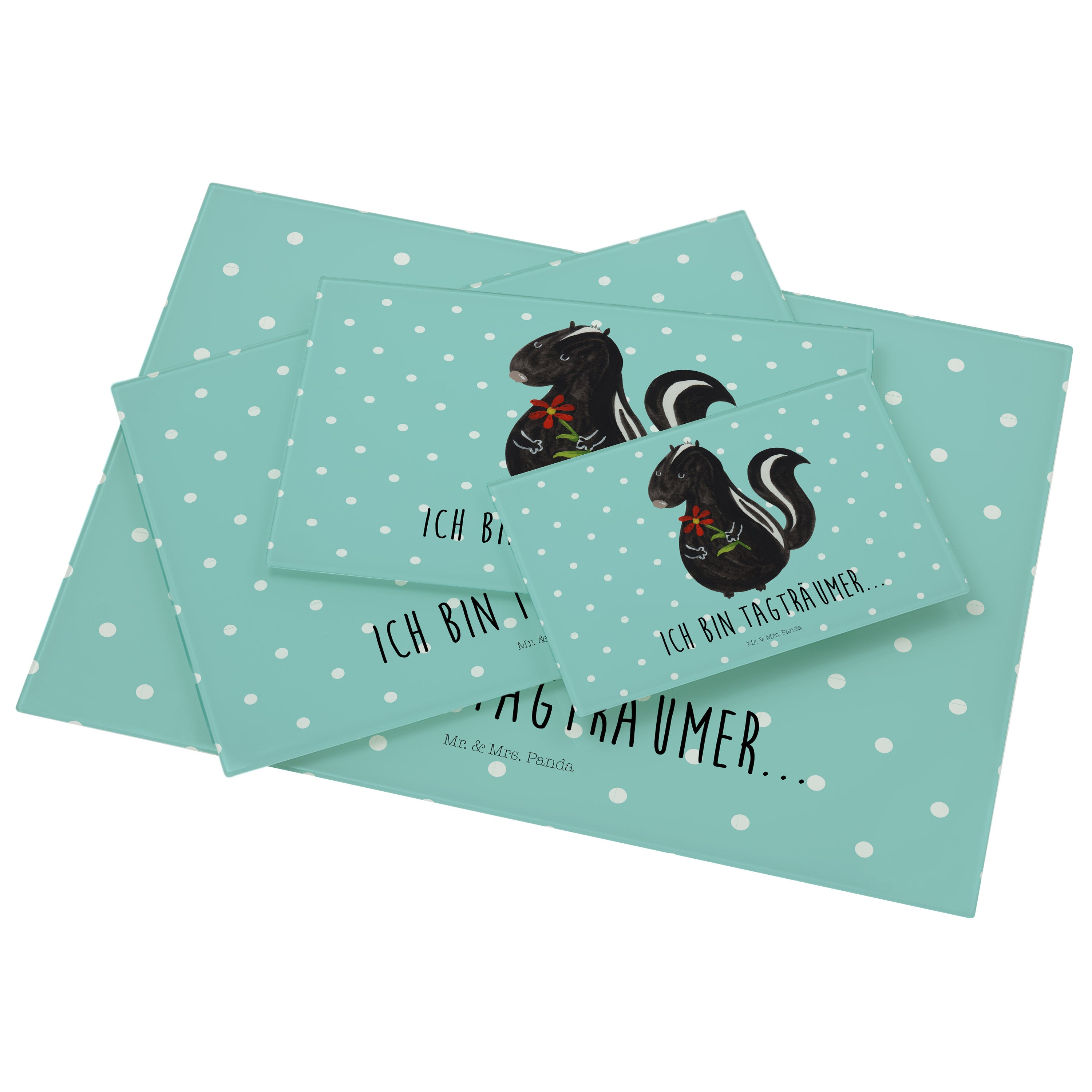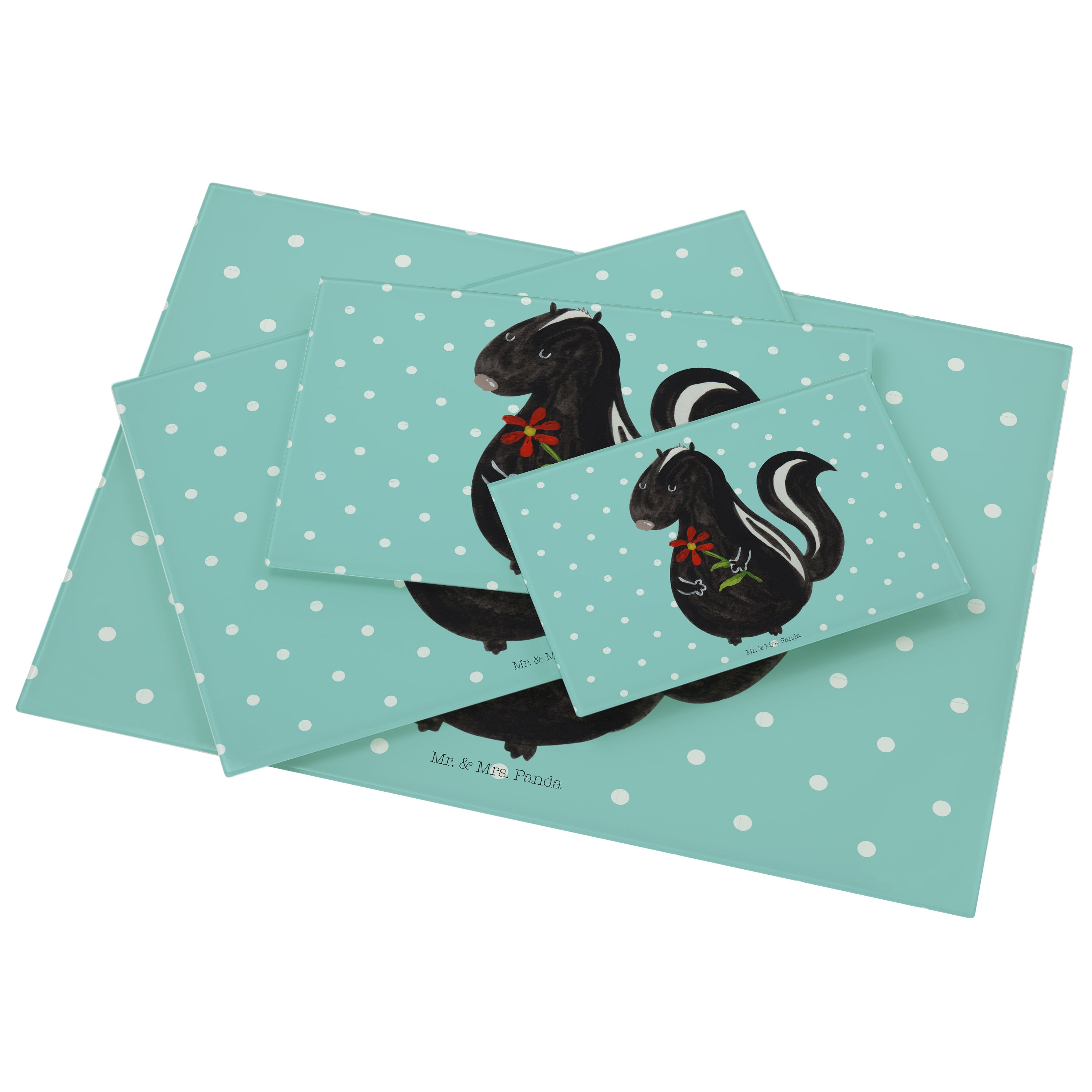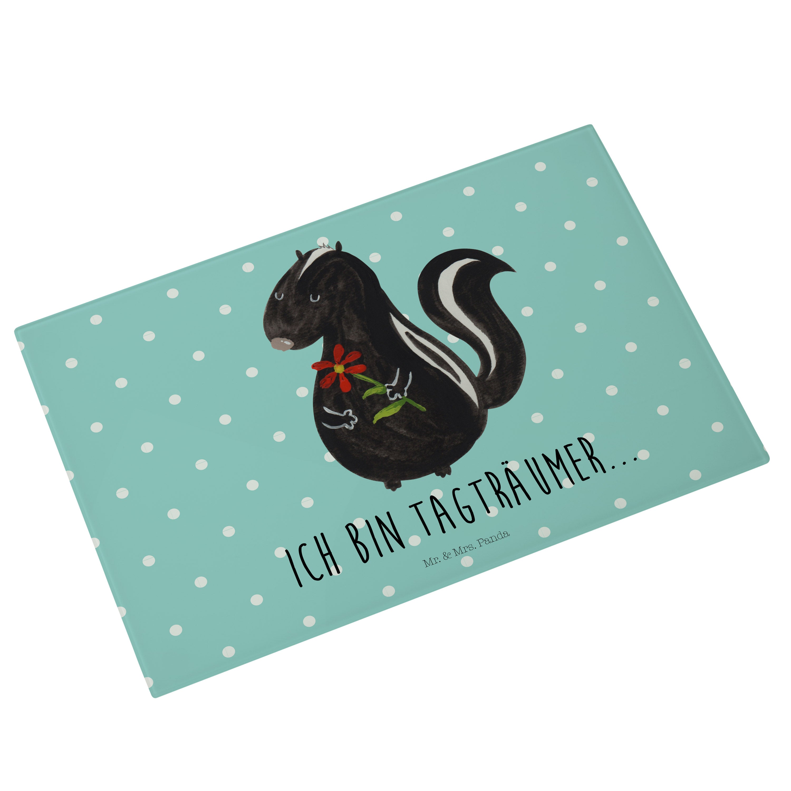 Medium Glas Schneidbrett Stinktier Blume - mit Spruch - Türkis Pastell