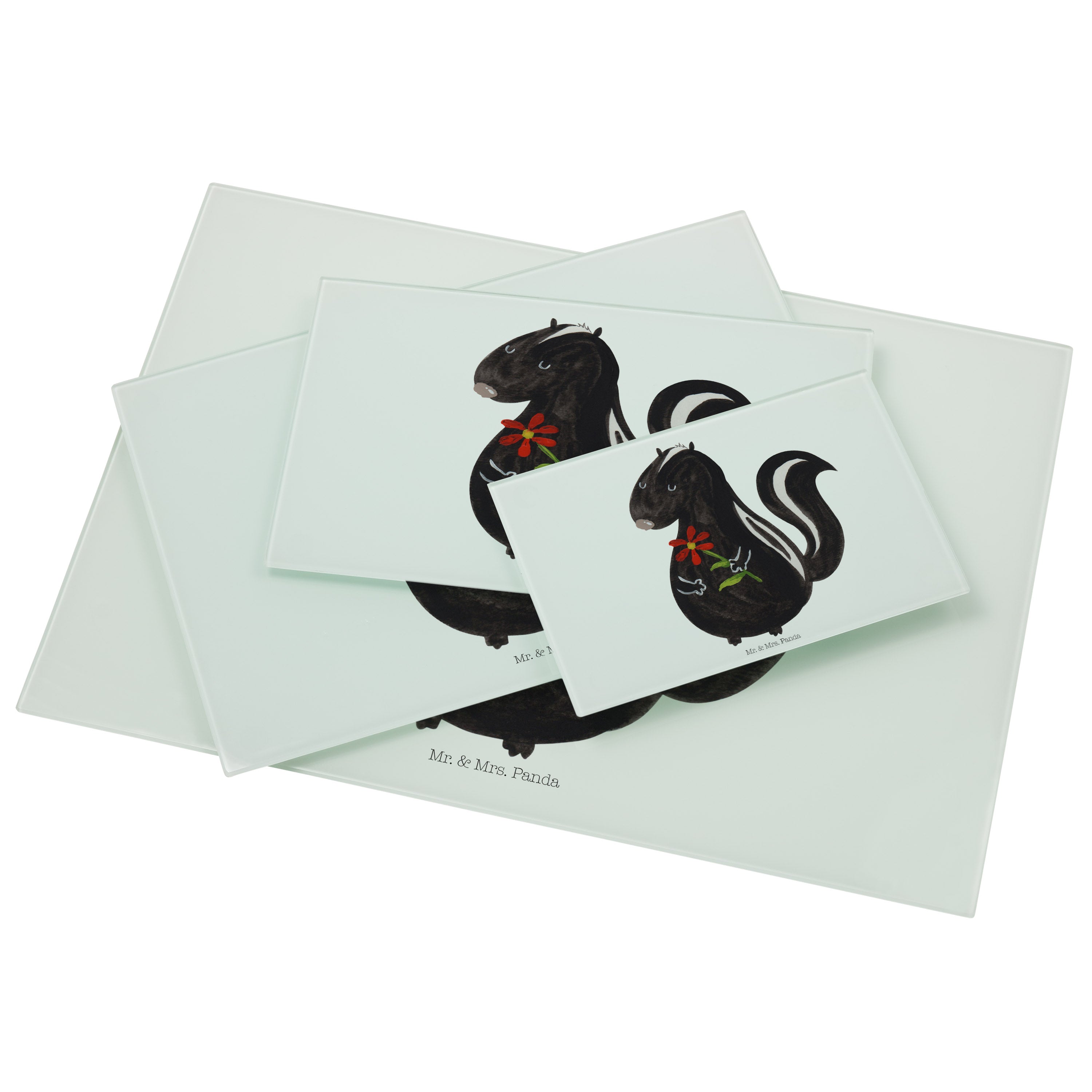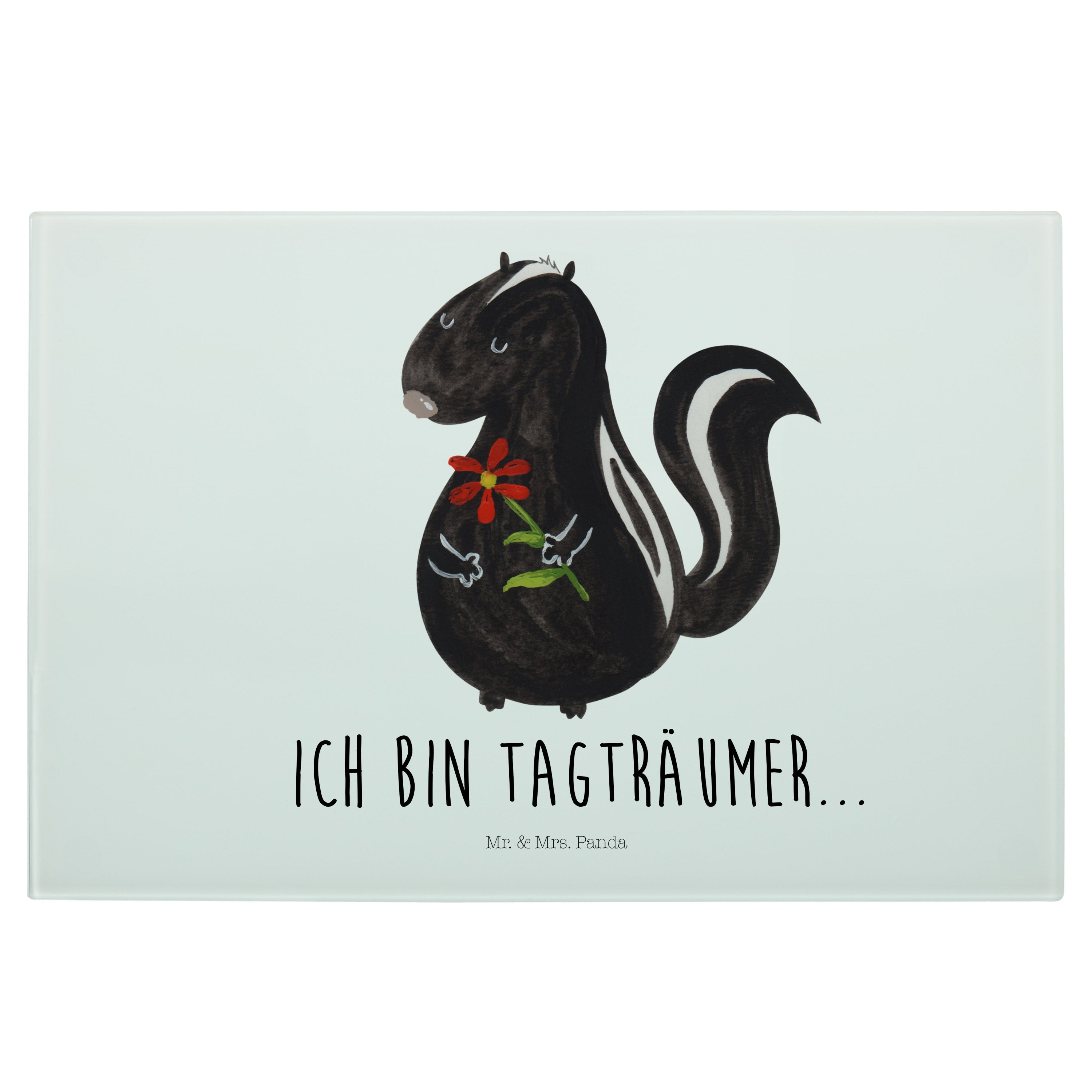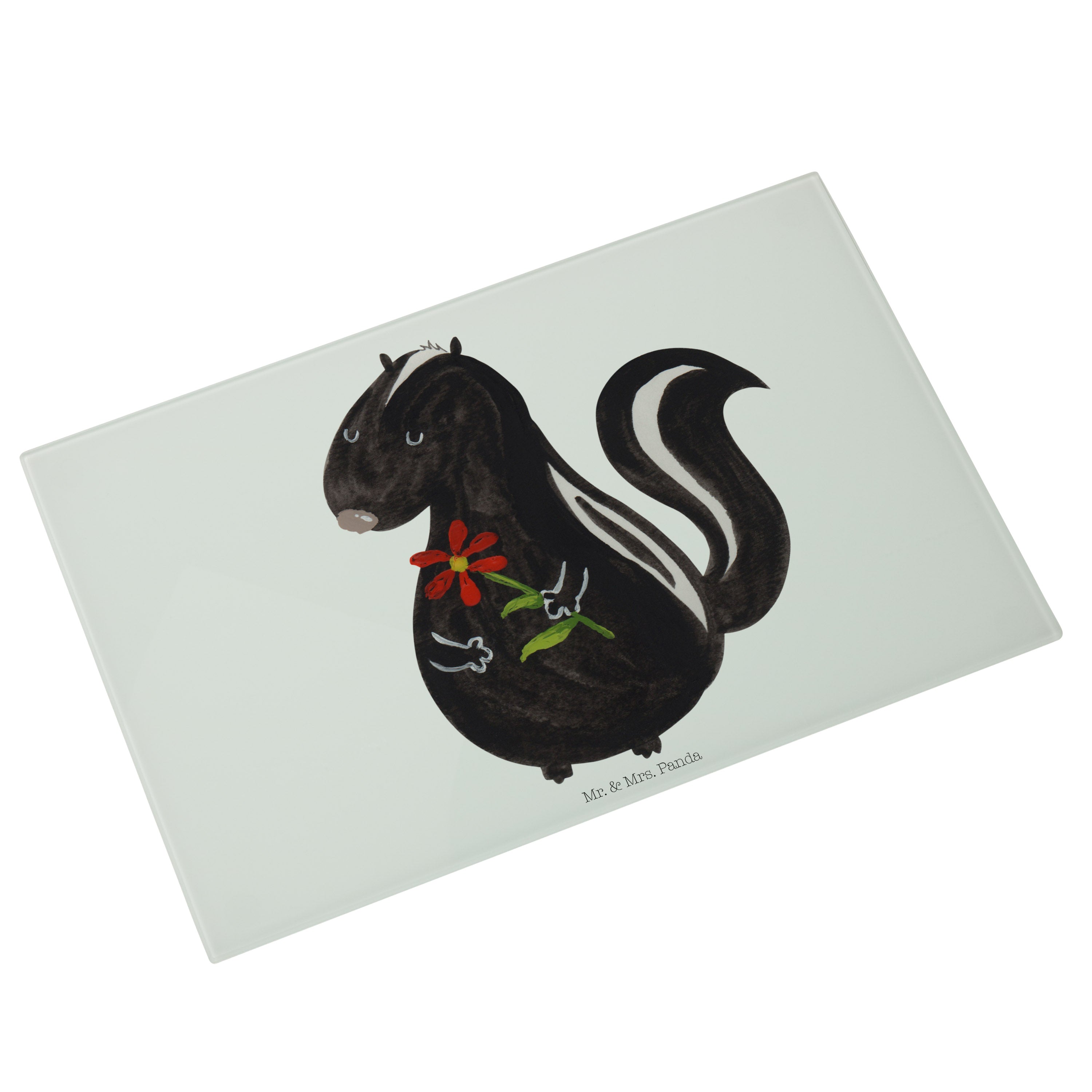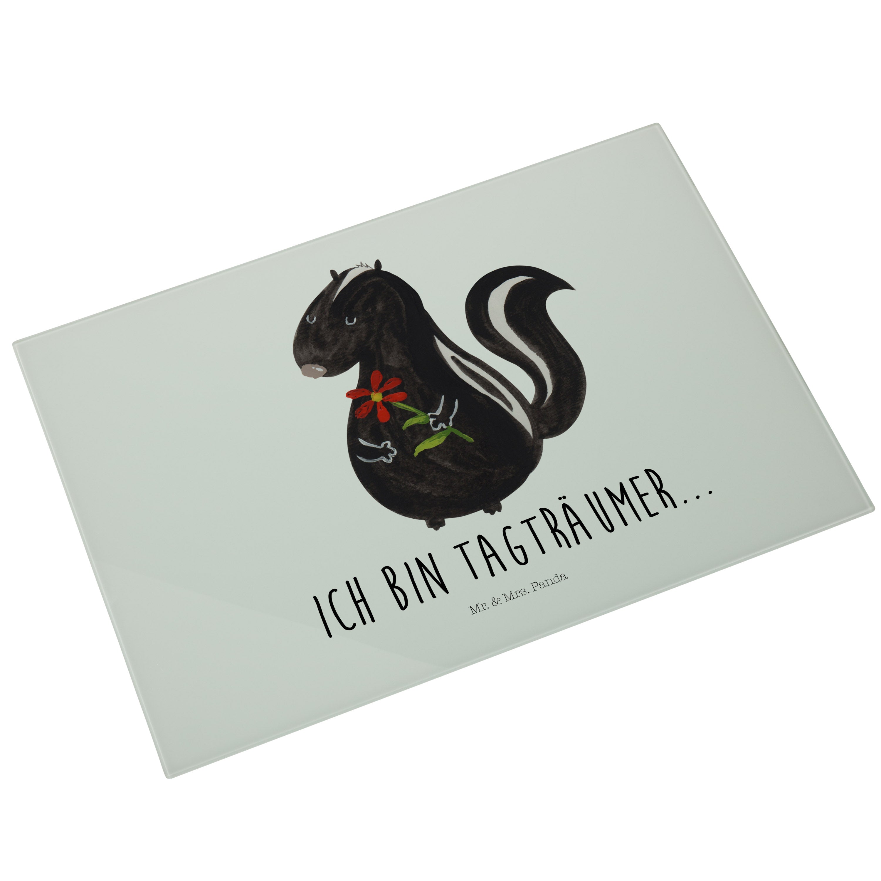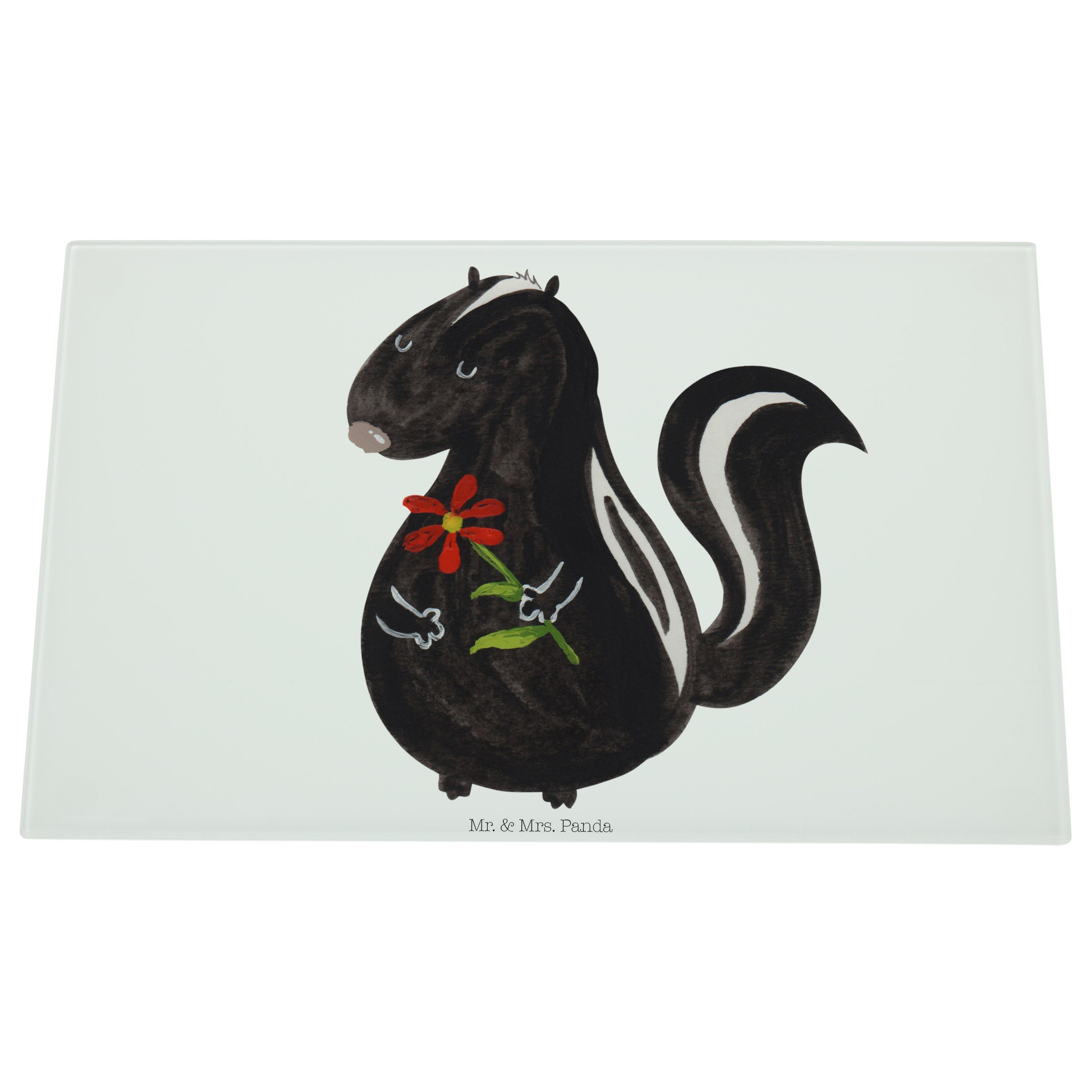 Medium Glas Schneidbrett Stinktier Blume - mit Spruch - Türkis Pastell