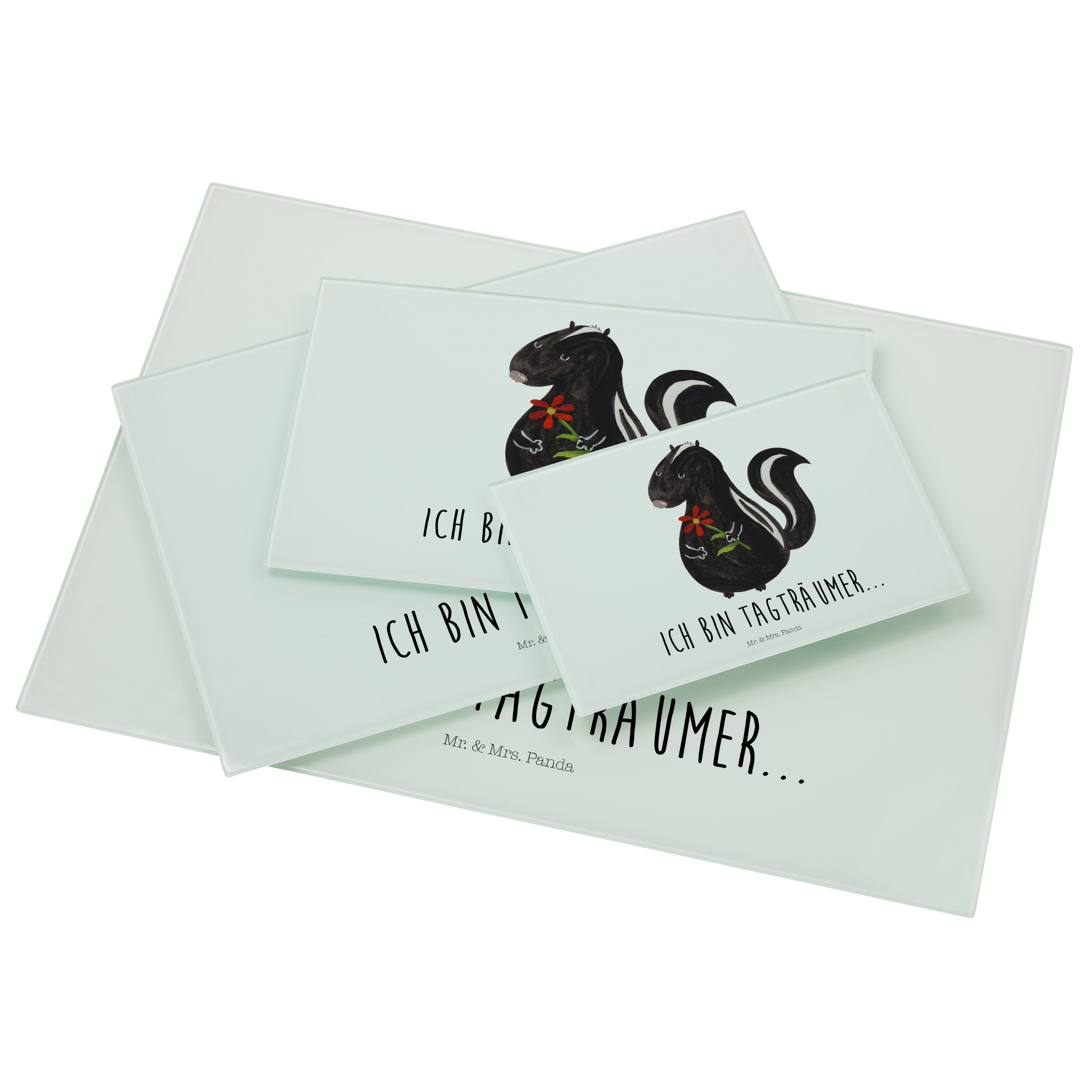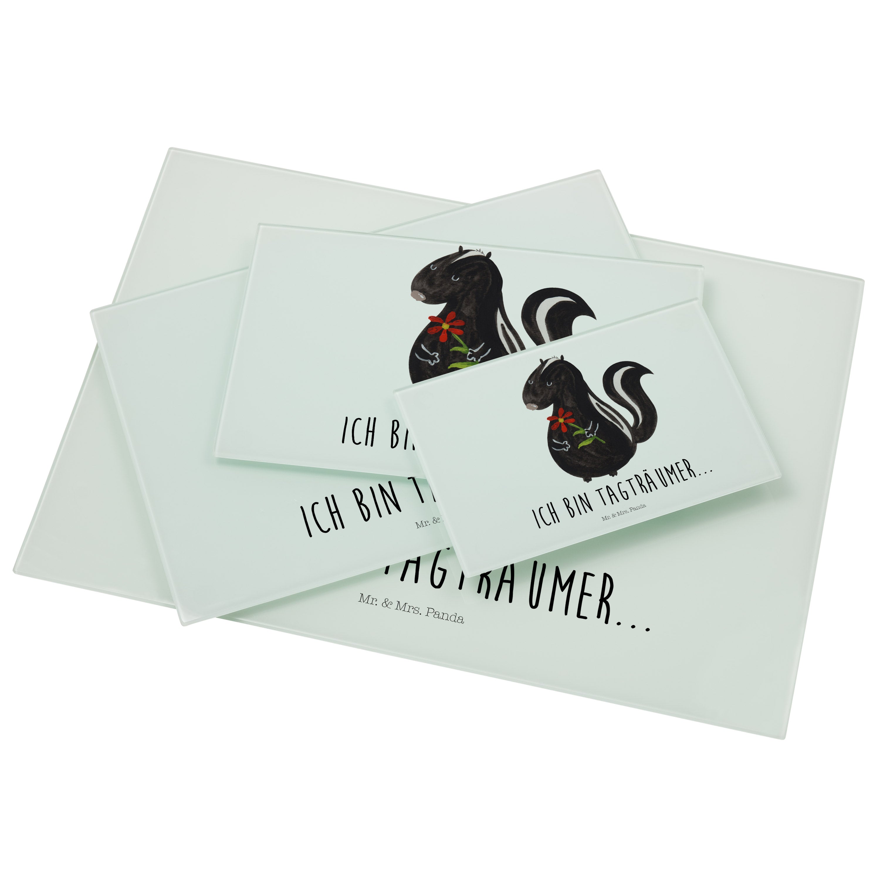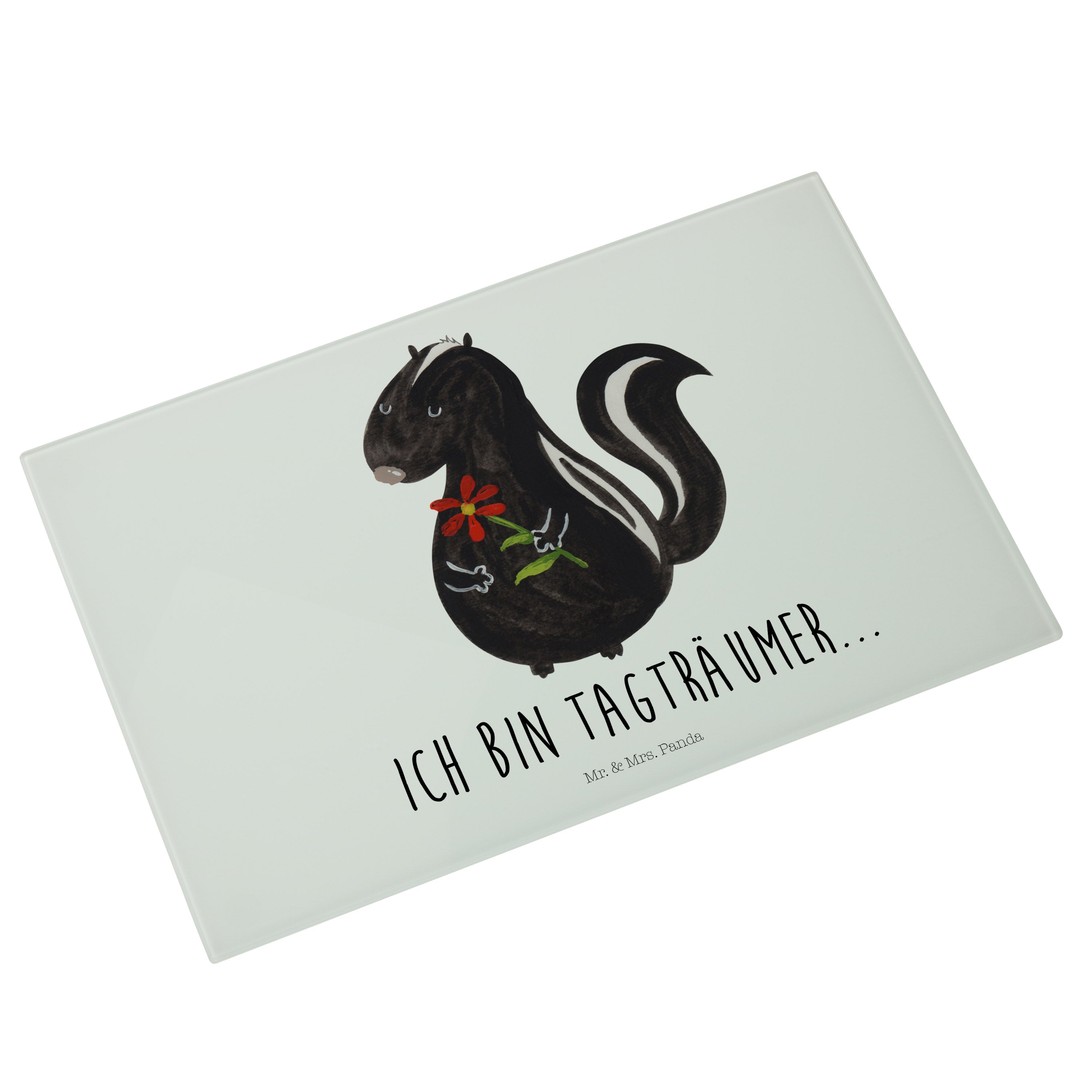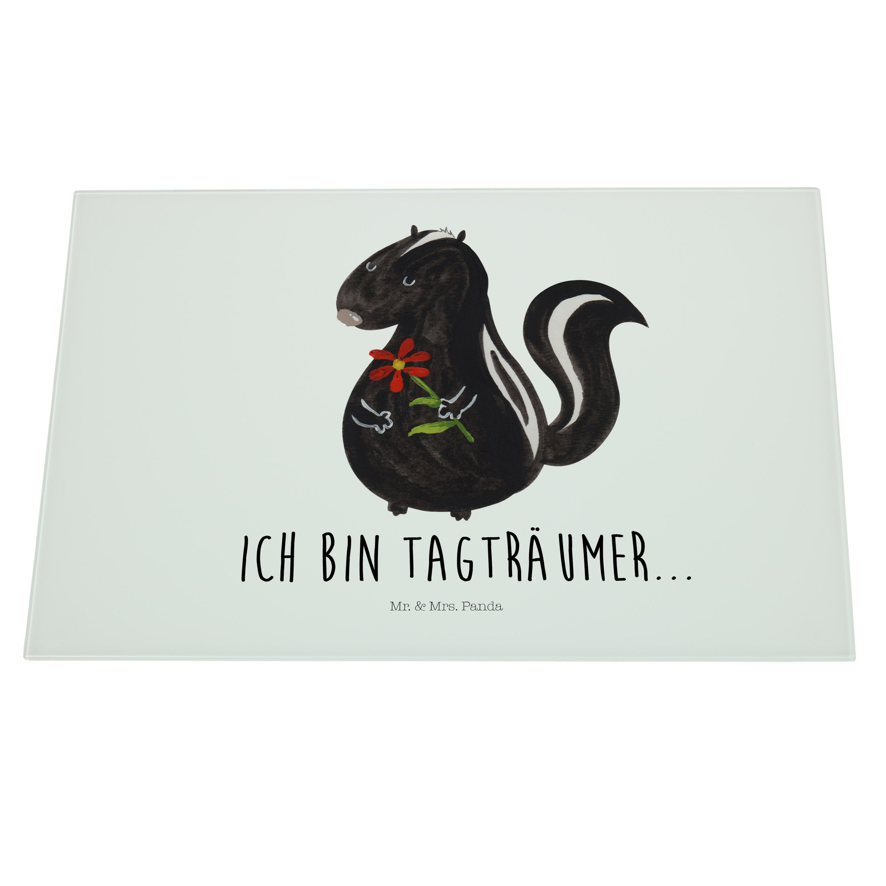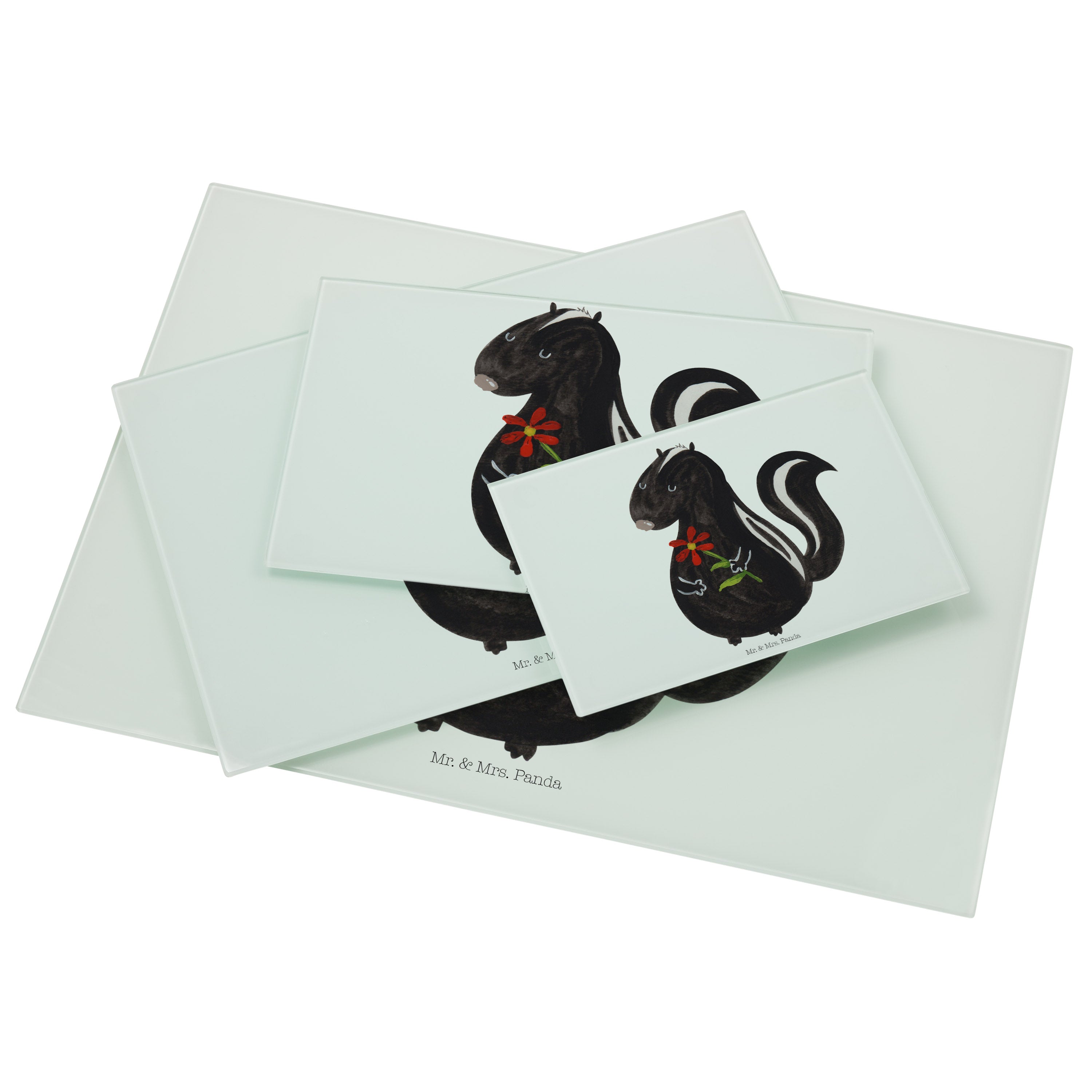 Medium Glas Schneidbrett Stinktier Blume - mit Spruch - Türkis Pastell