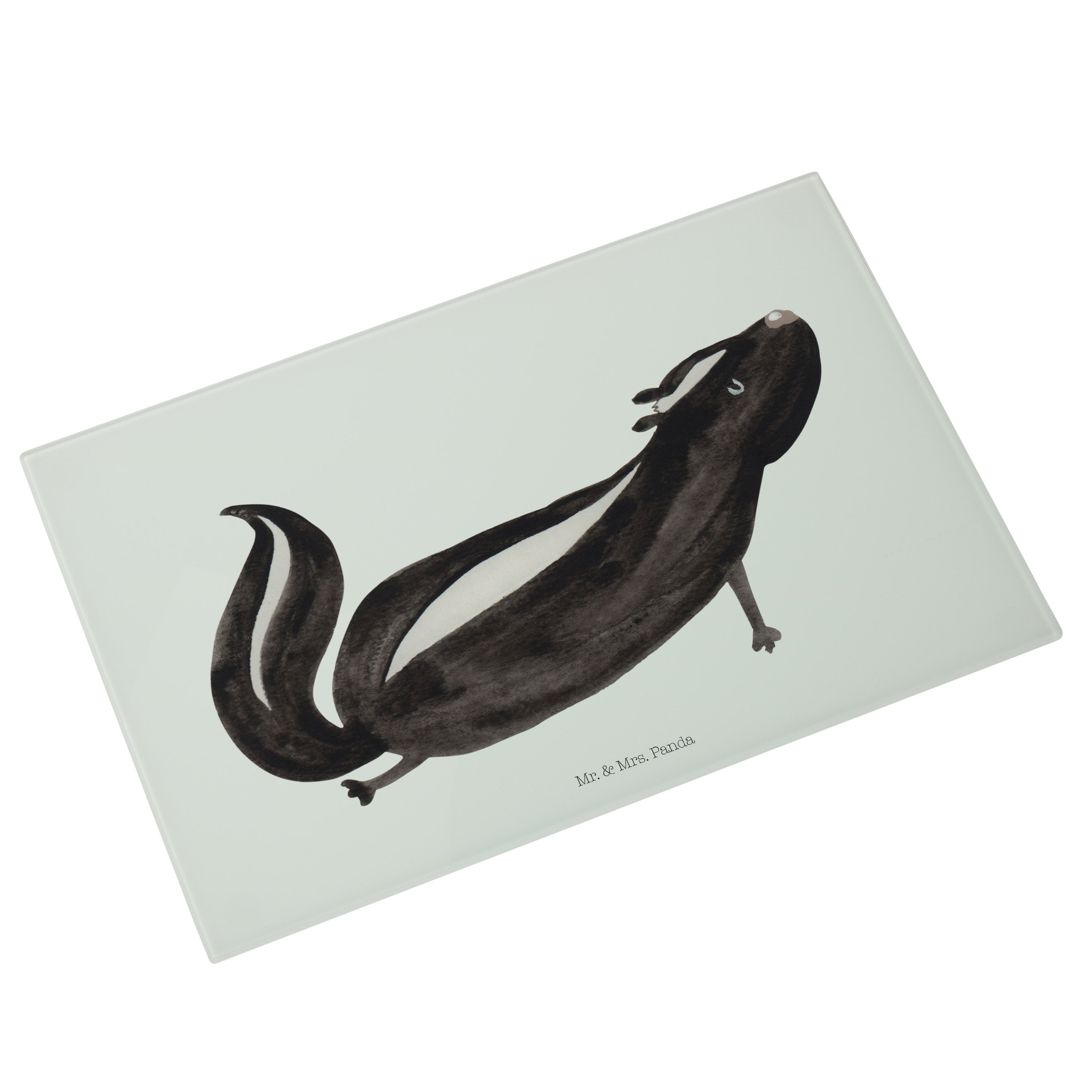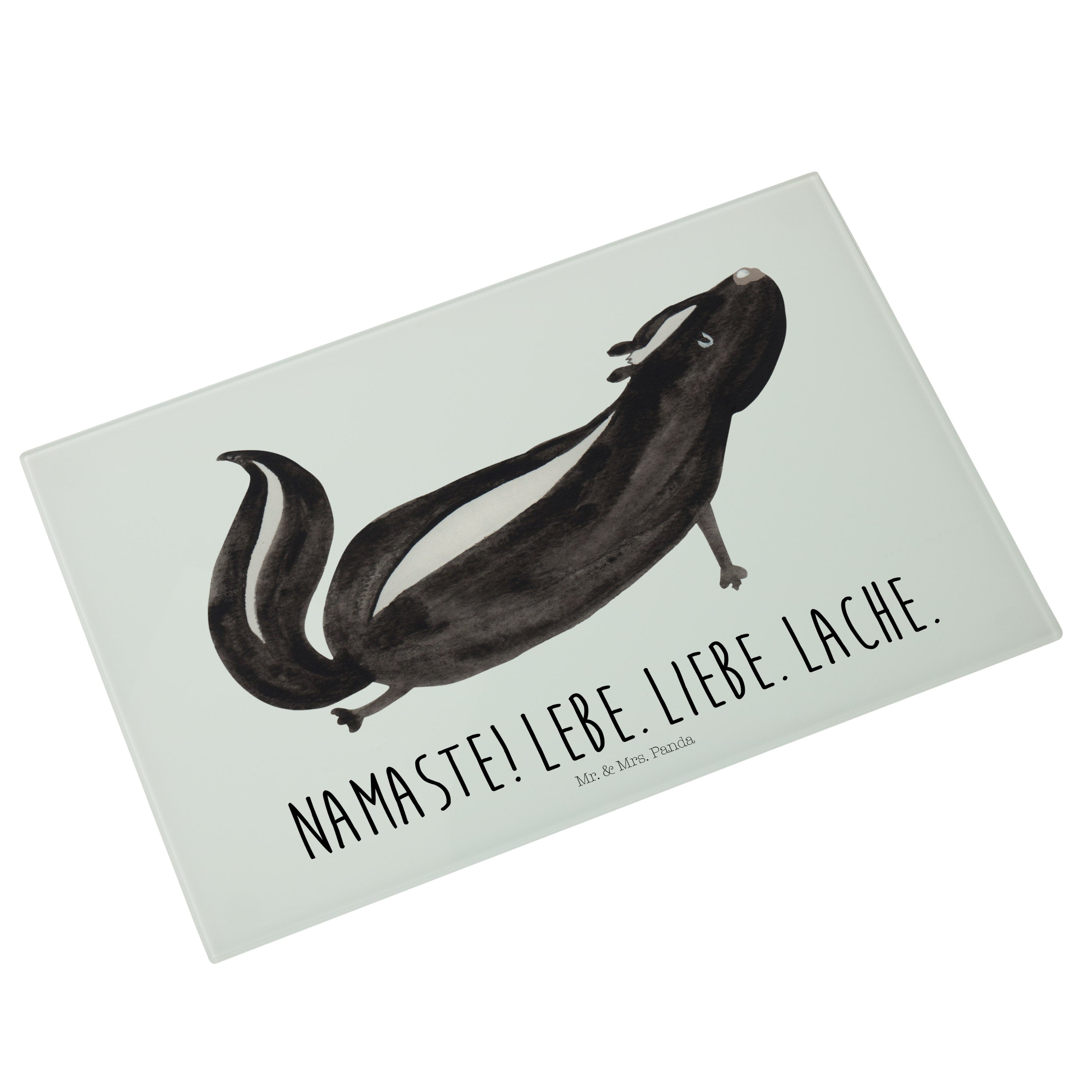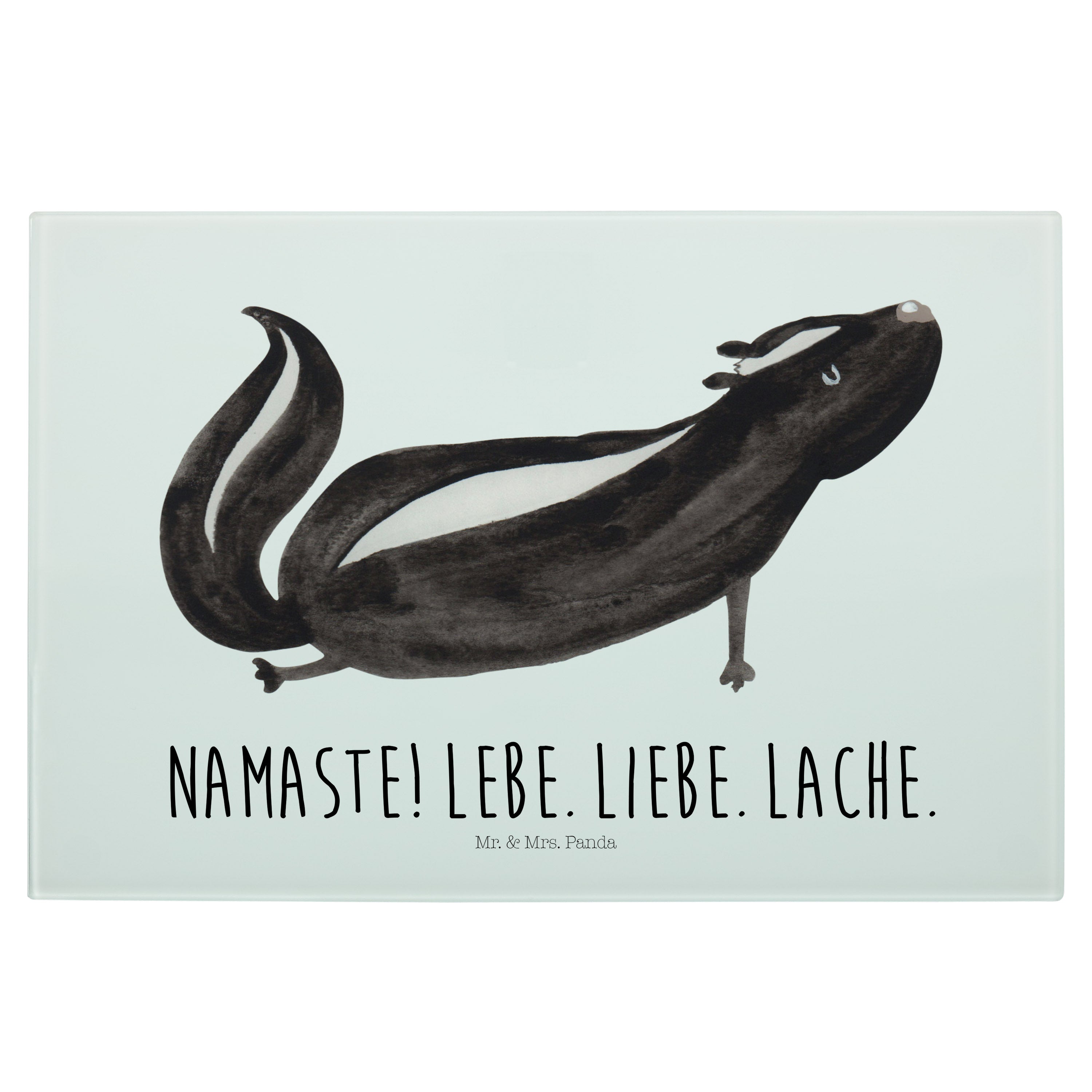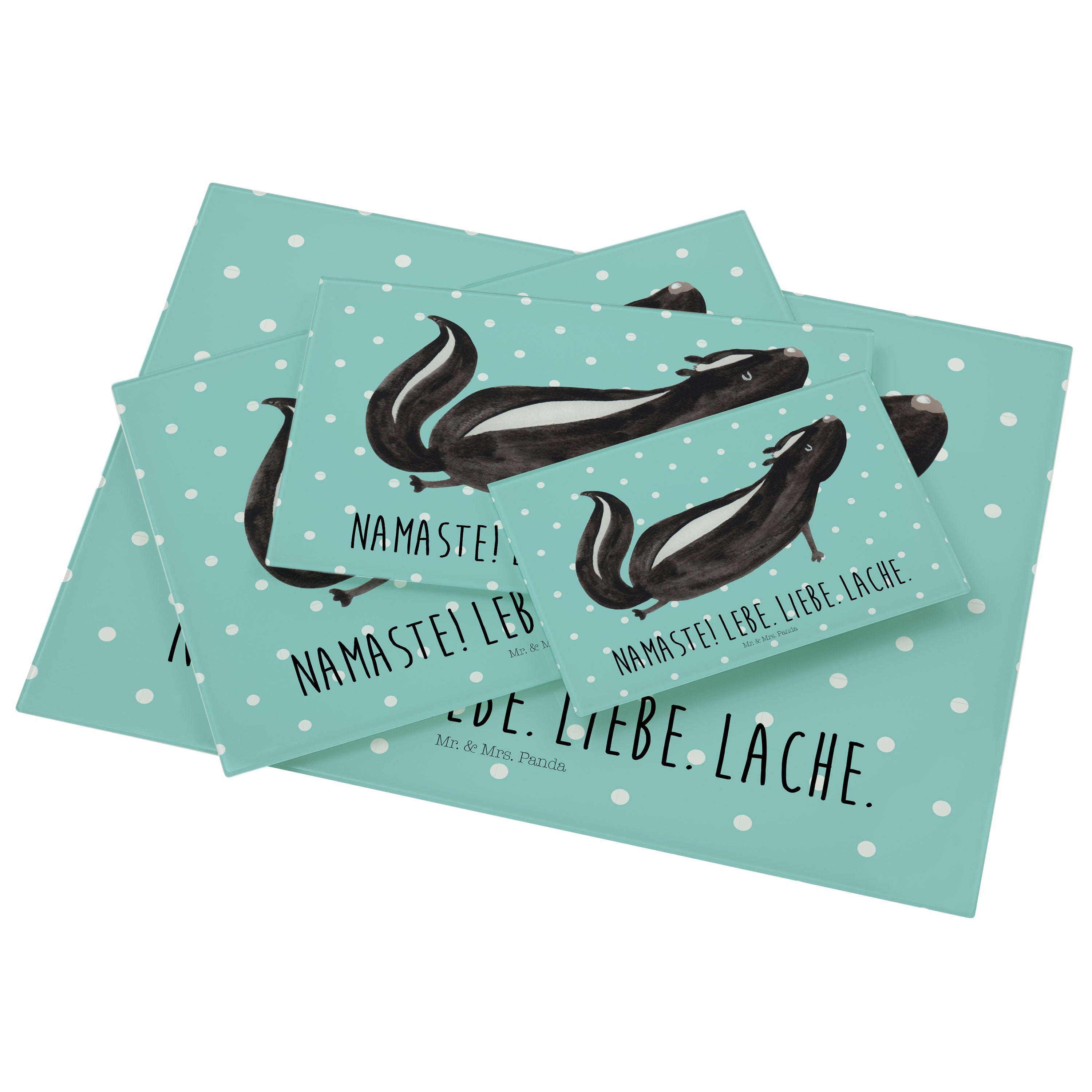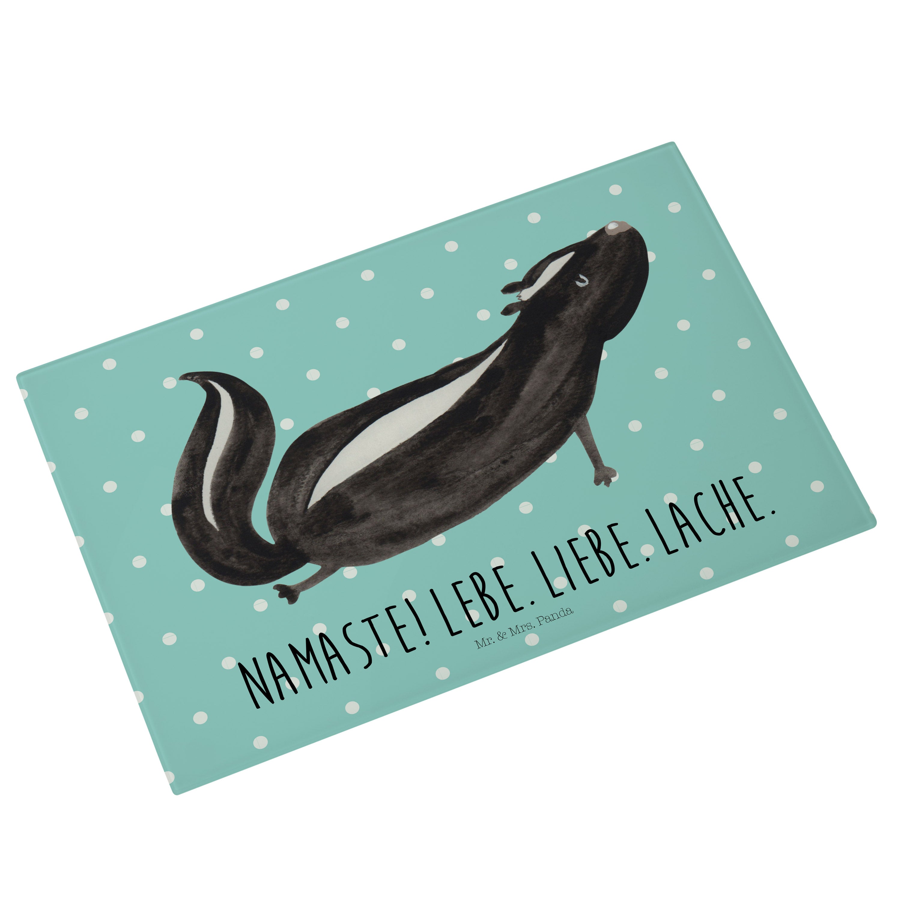 Medium Glas Schneidbrett Stinktier Yoga - mit Spruch - Türkis Pastell