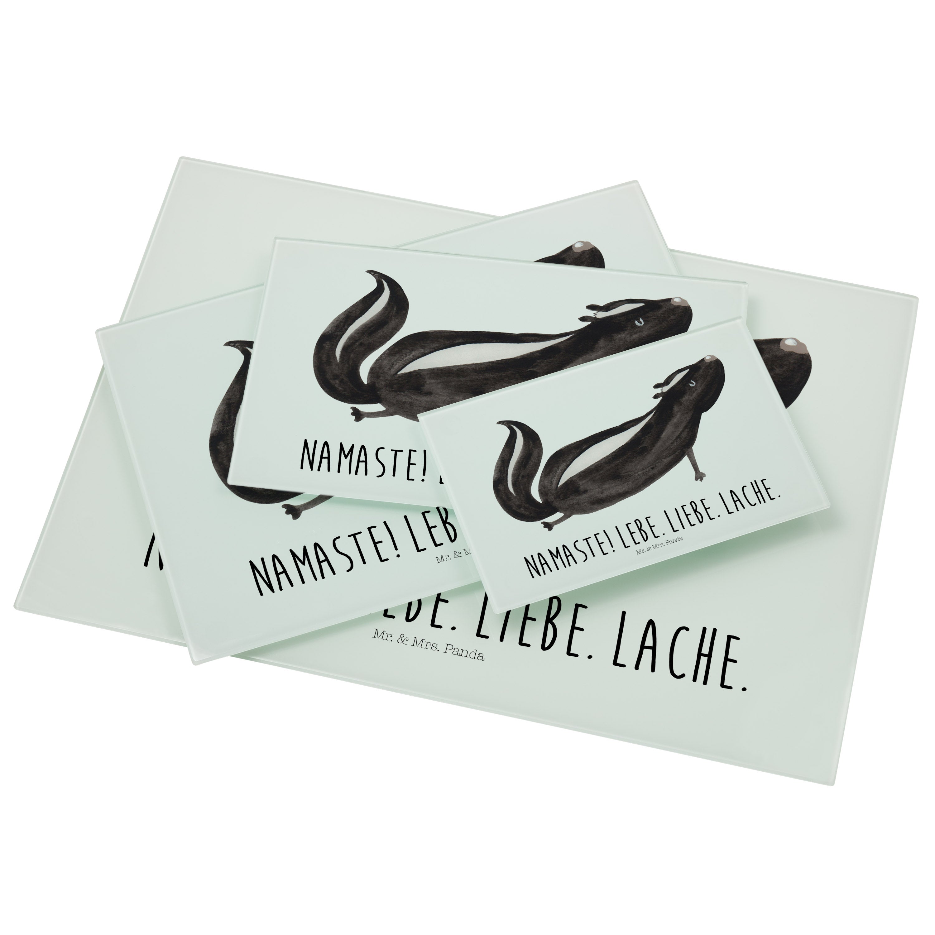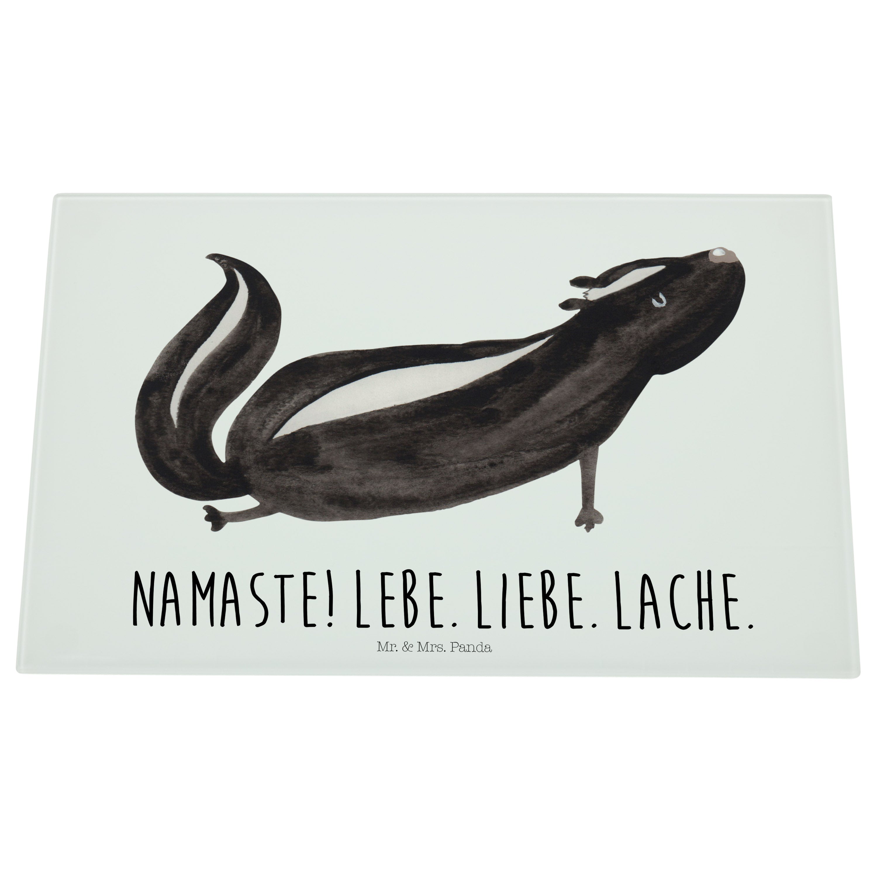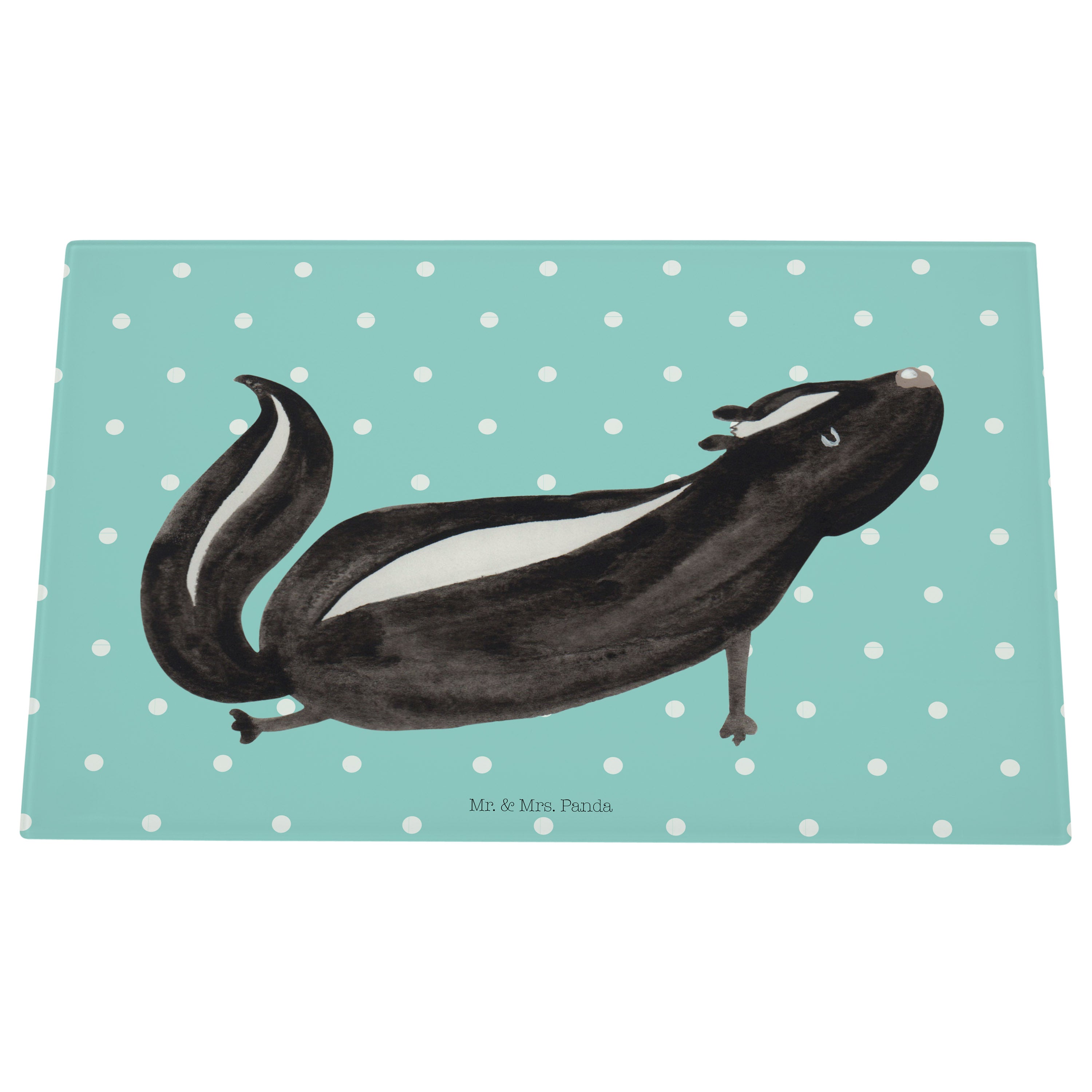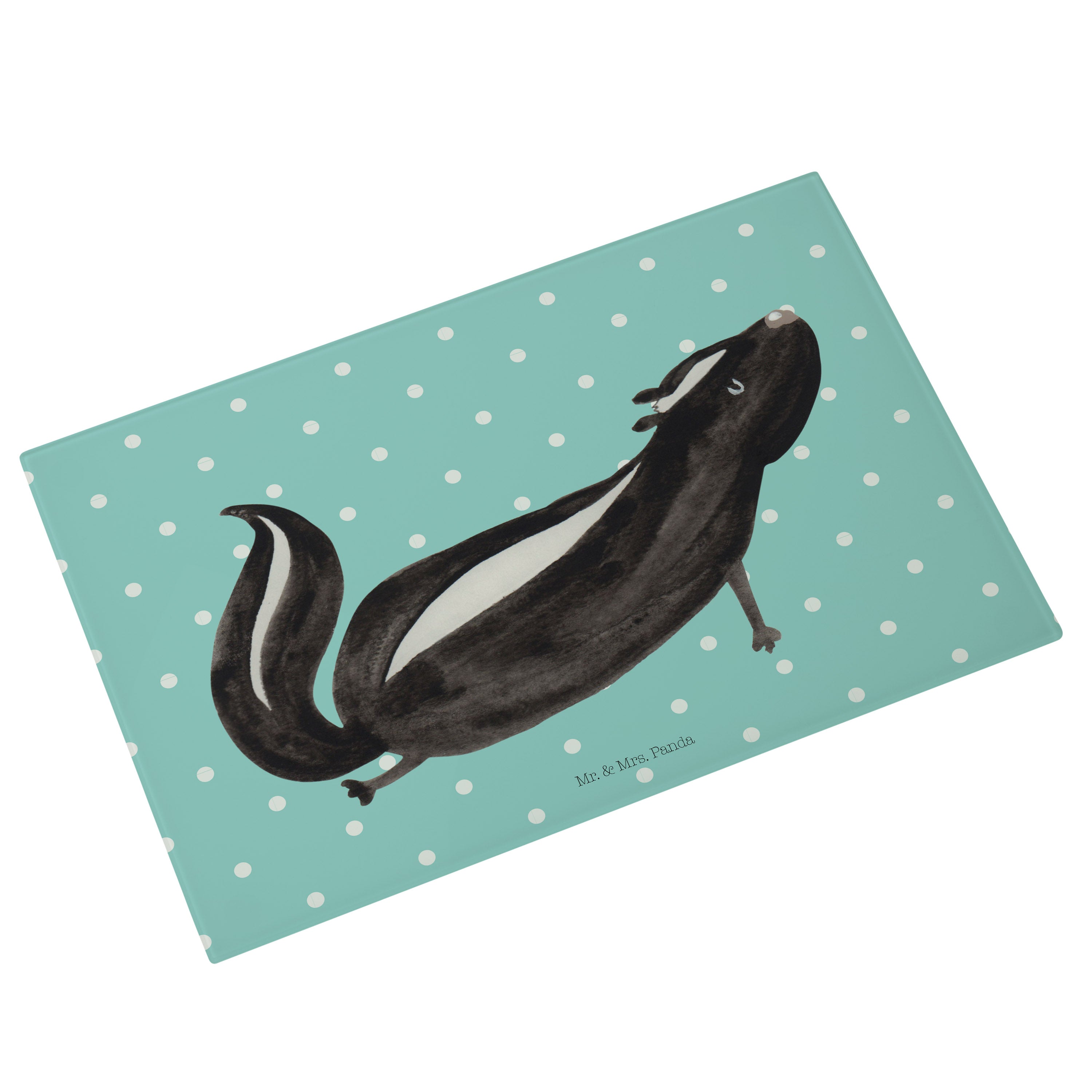 Medium Glas Schneidbrett Stinktier Yoga - mit Spruch - Türkis Pastell