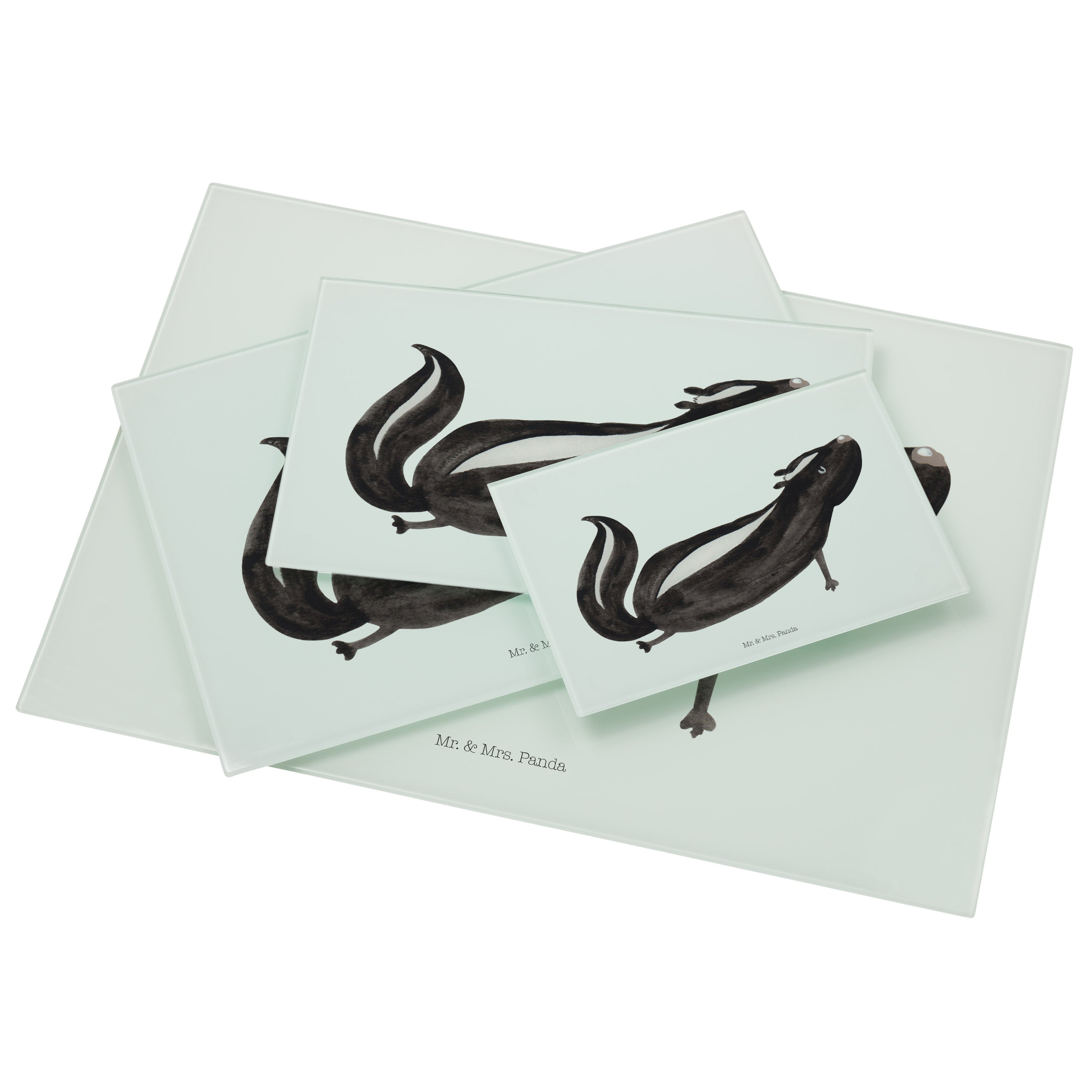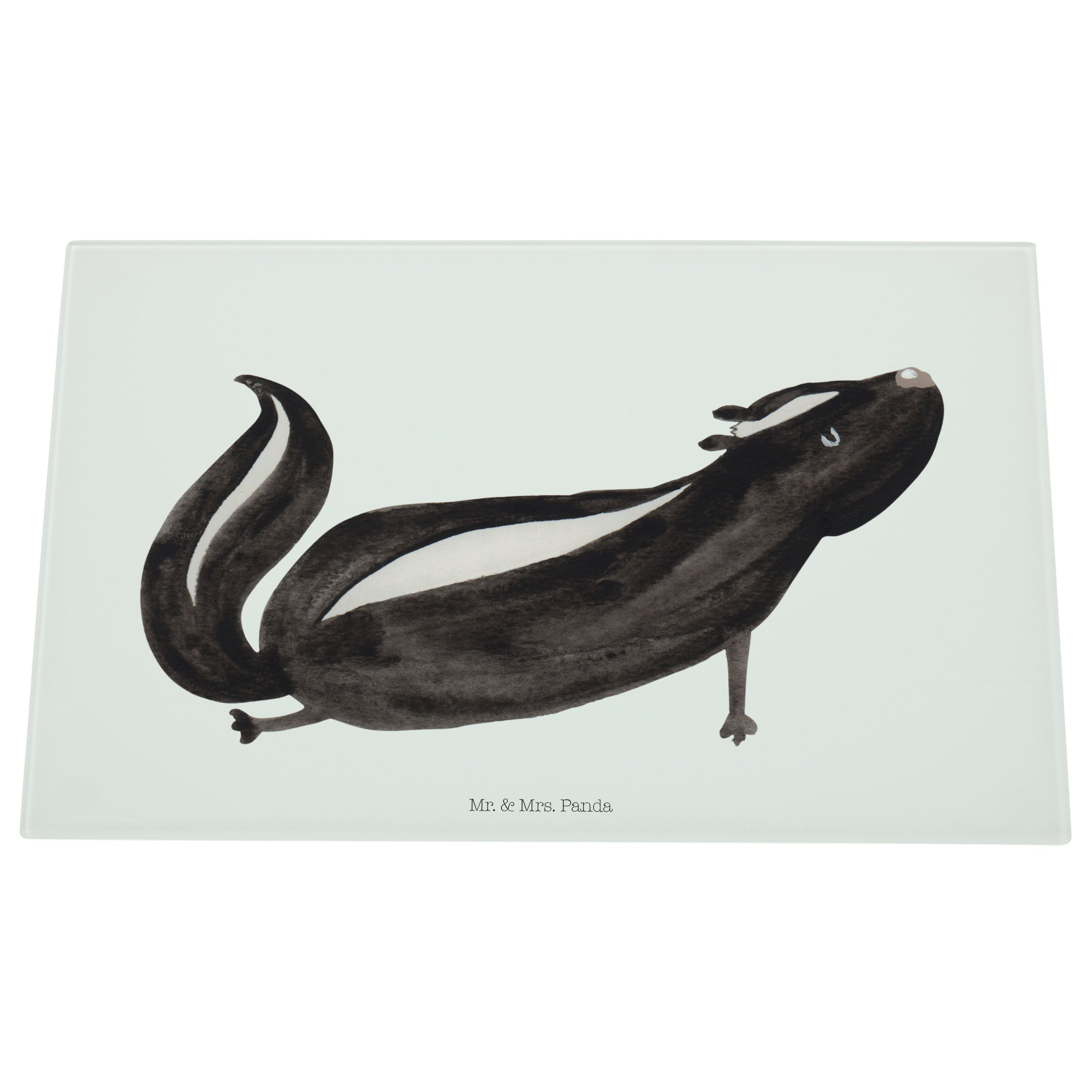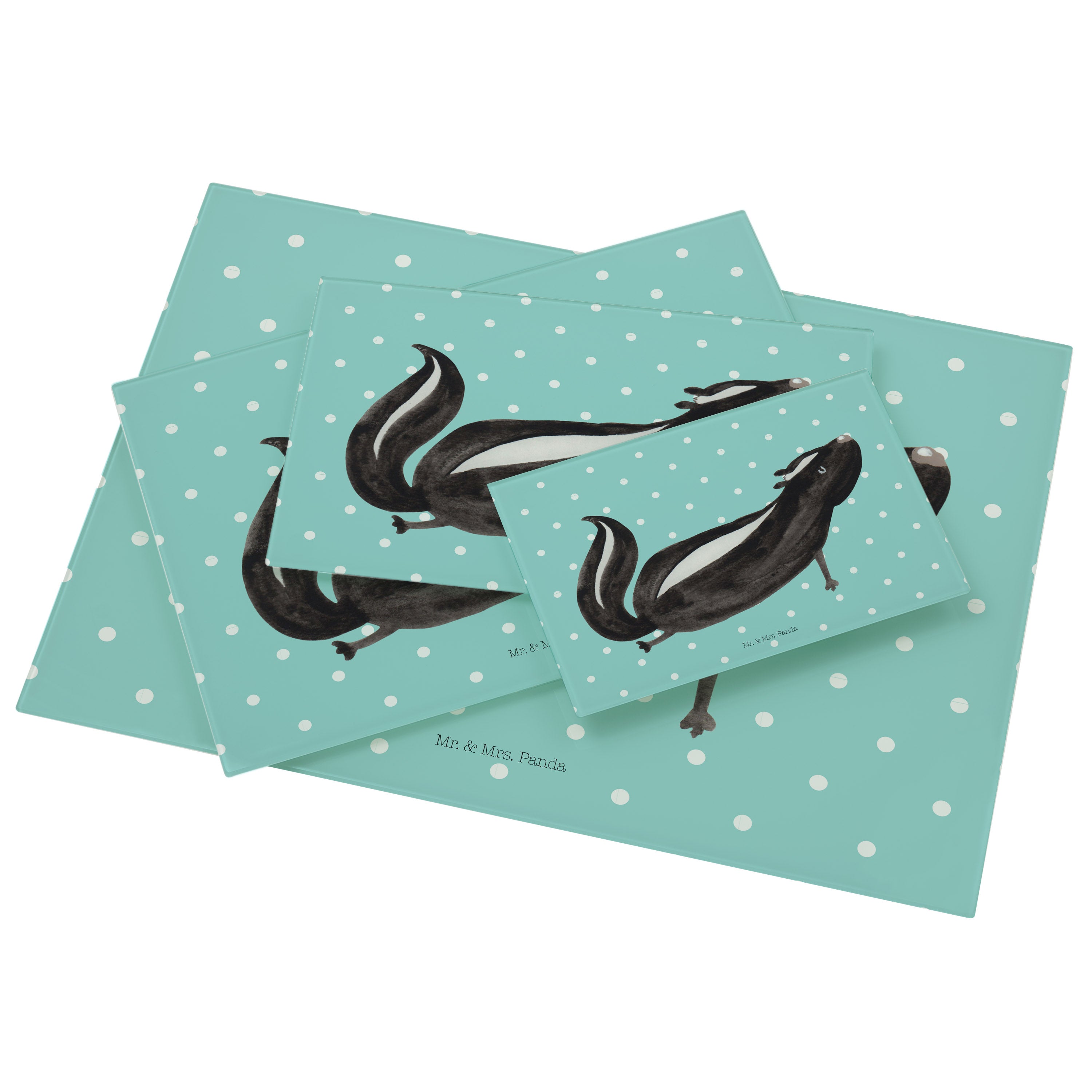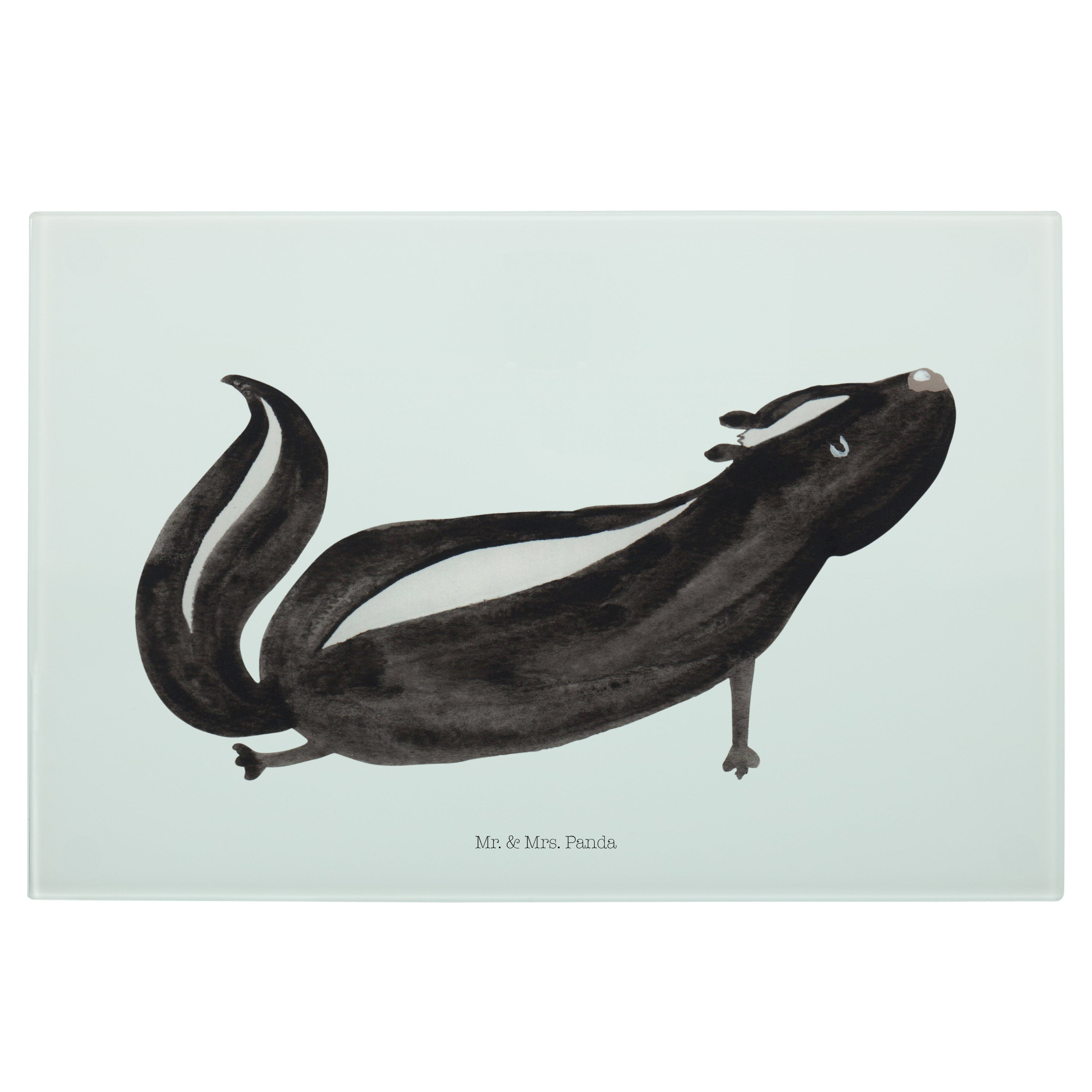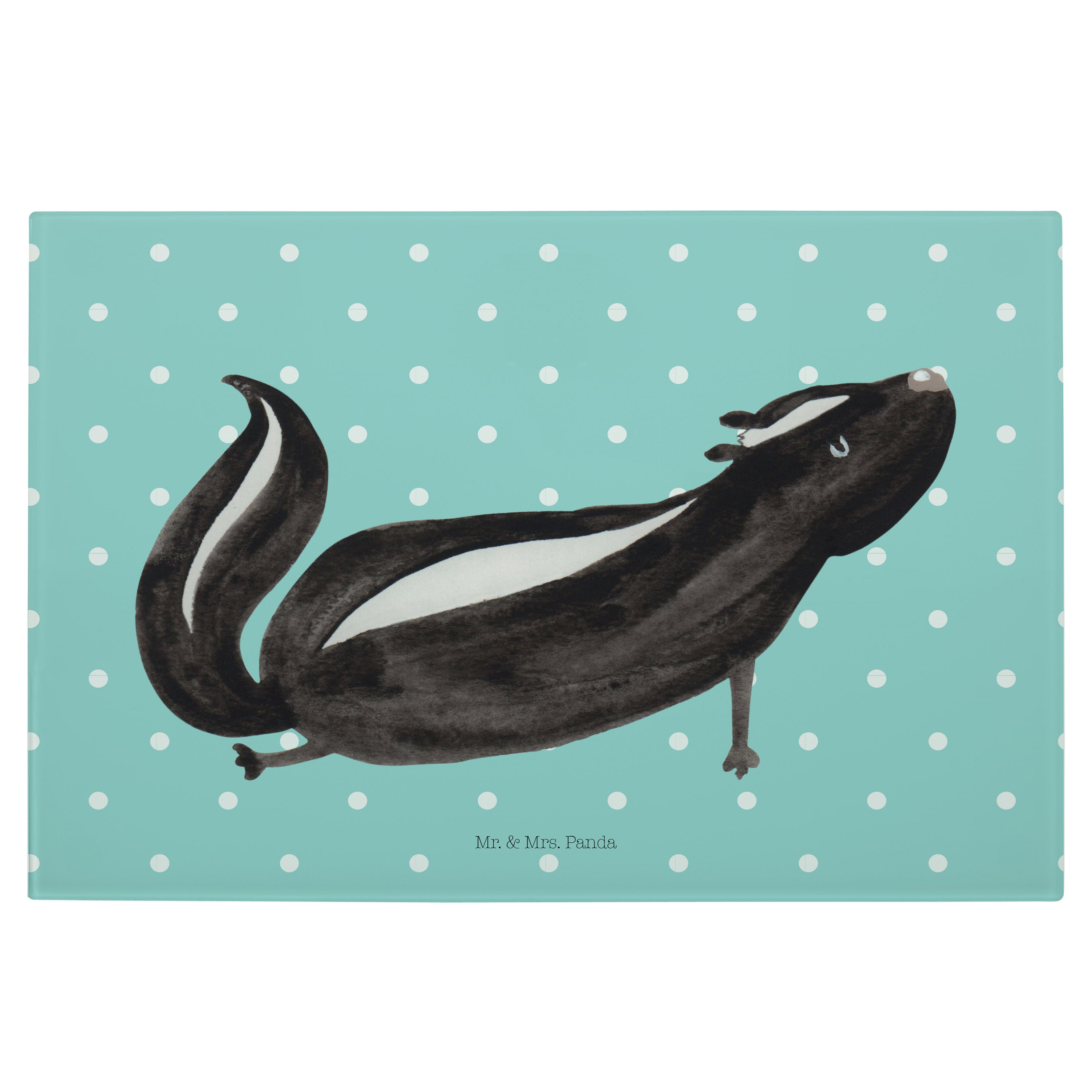 Medium Glas Schneidbrett Stinktier Yoga - mit Spruch - Türkis Pastell