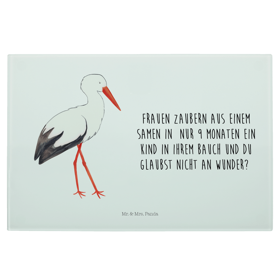 XL Glas Schneidbrett Storch - mit Spruch - Weiß