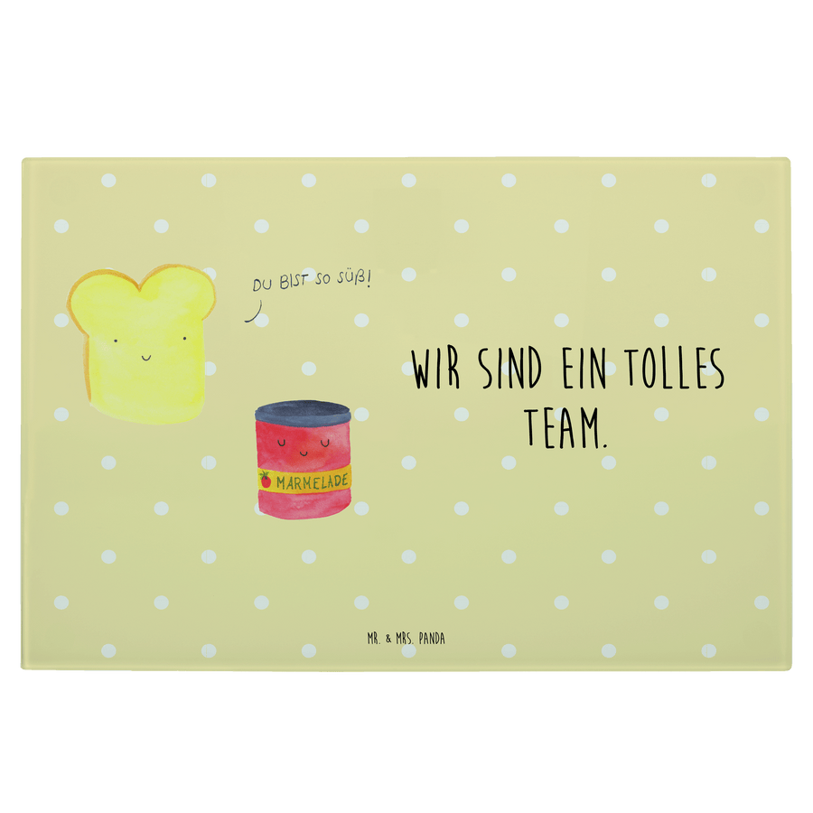 Medium Glas Schneidbrett Toast & Marmelade - mit Spruch - Gelb Pastell