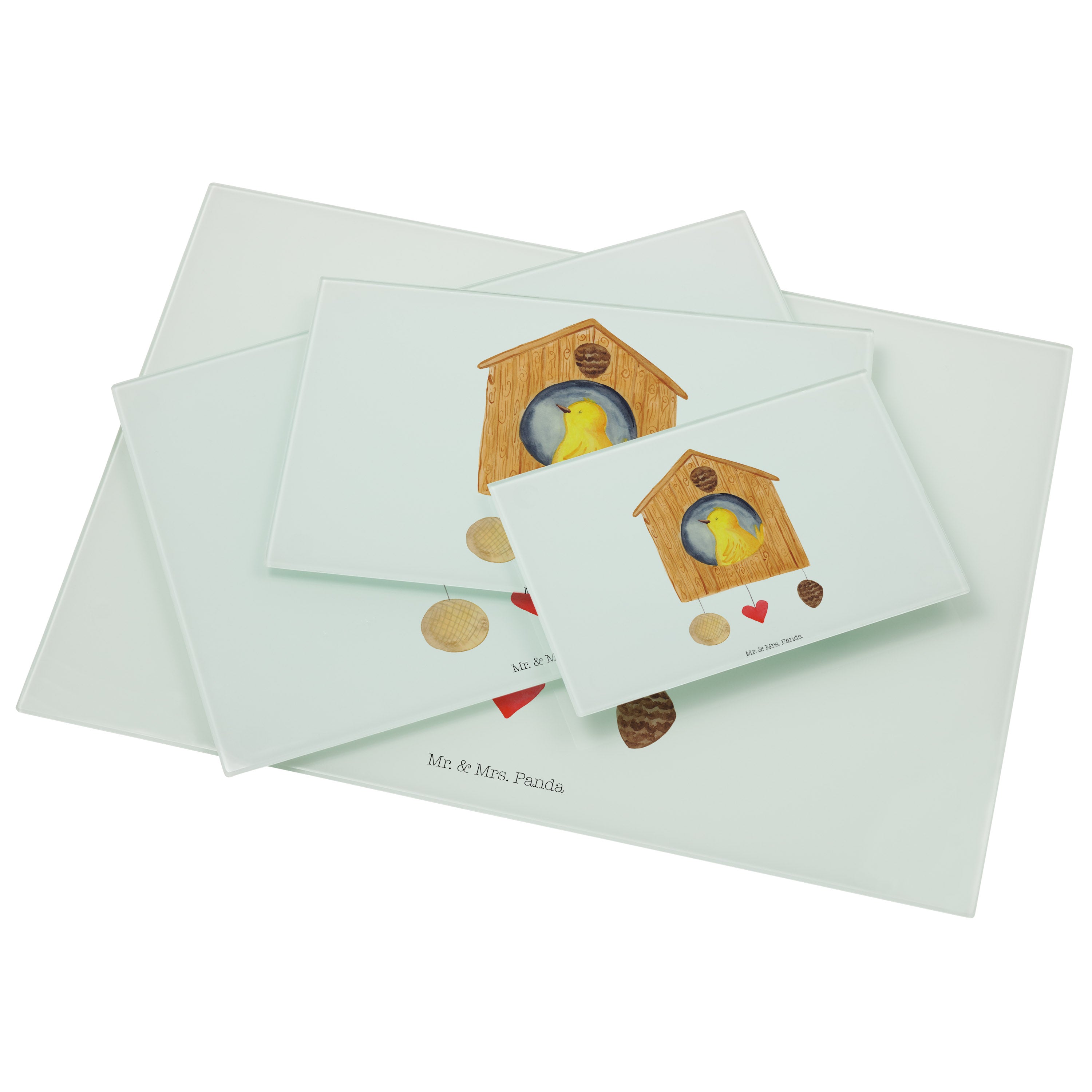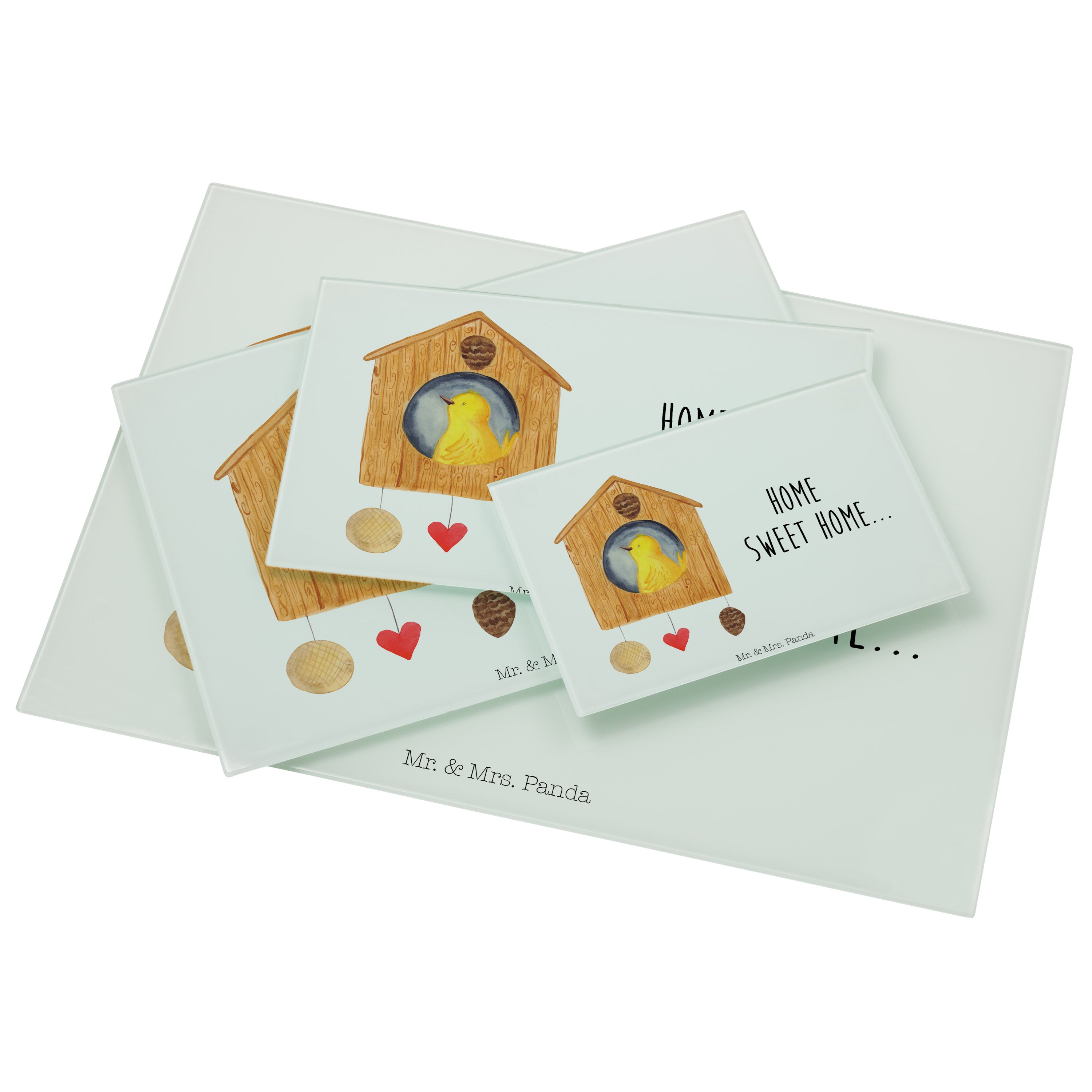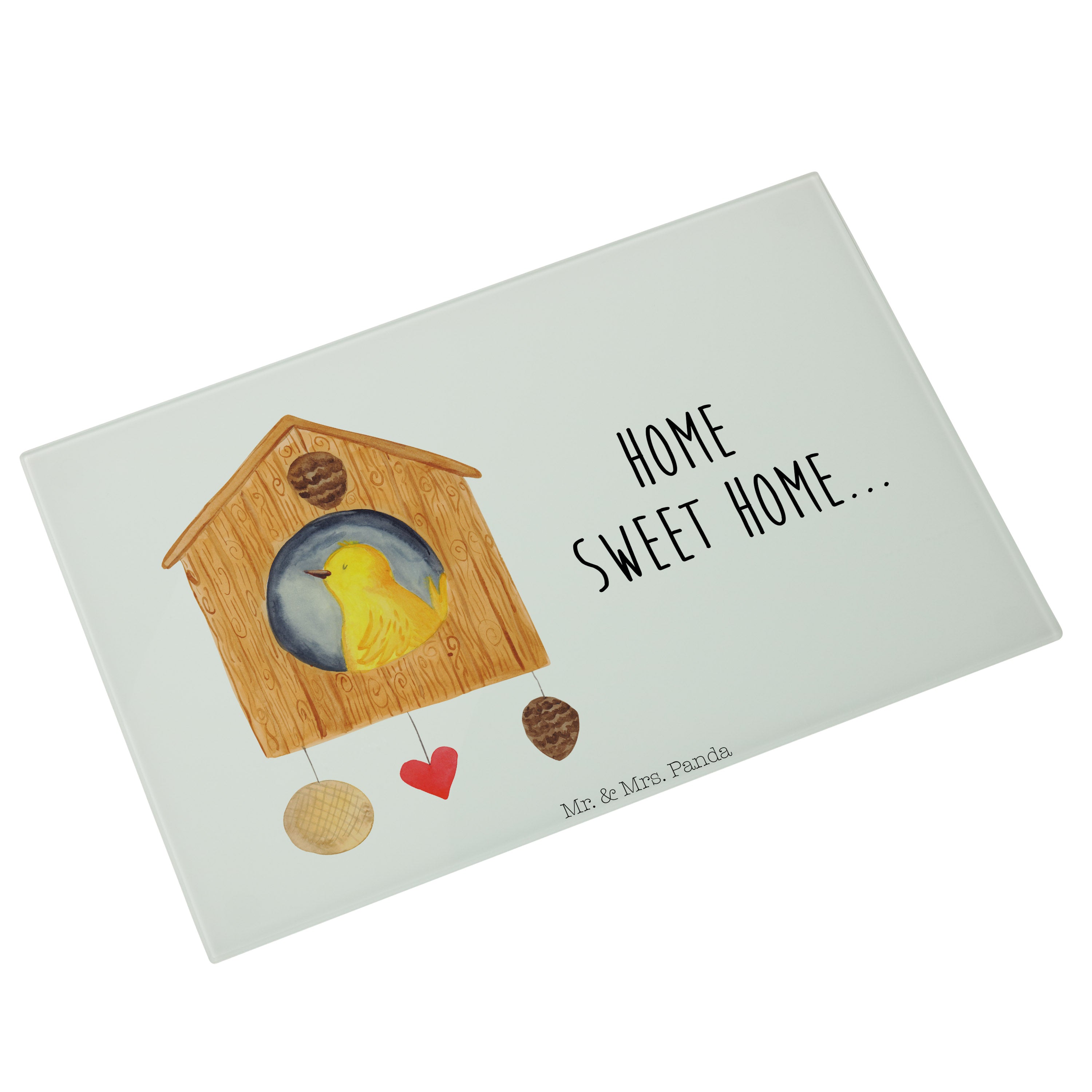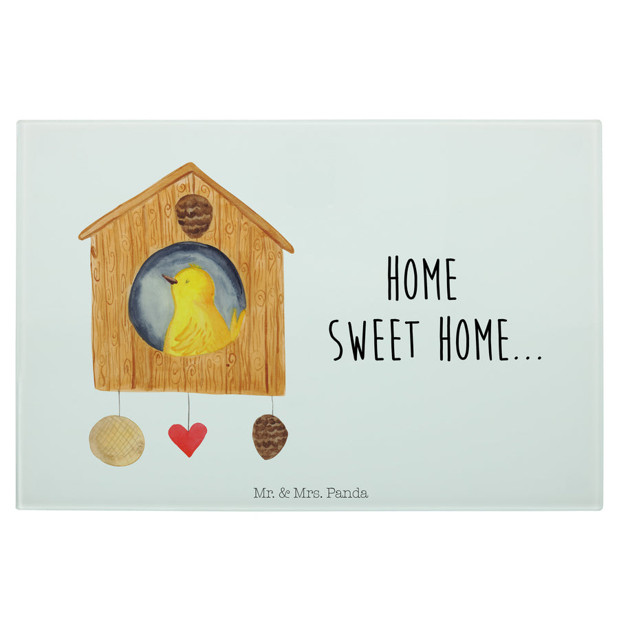 Medium Glas Schneidbrett Vogelhaus sweet Home - mit Spruch - Weiß