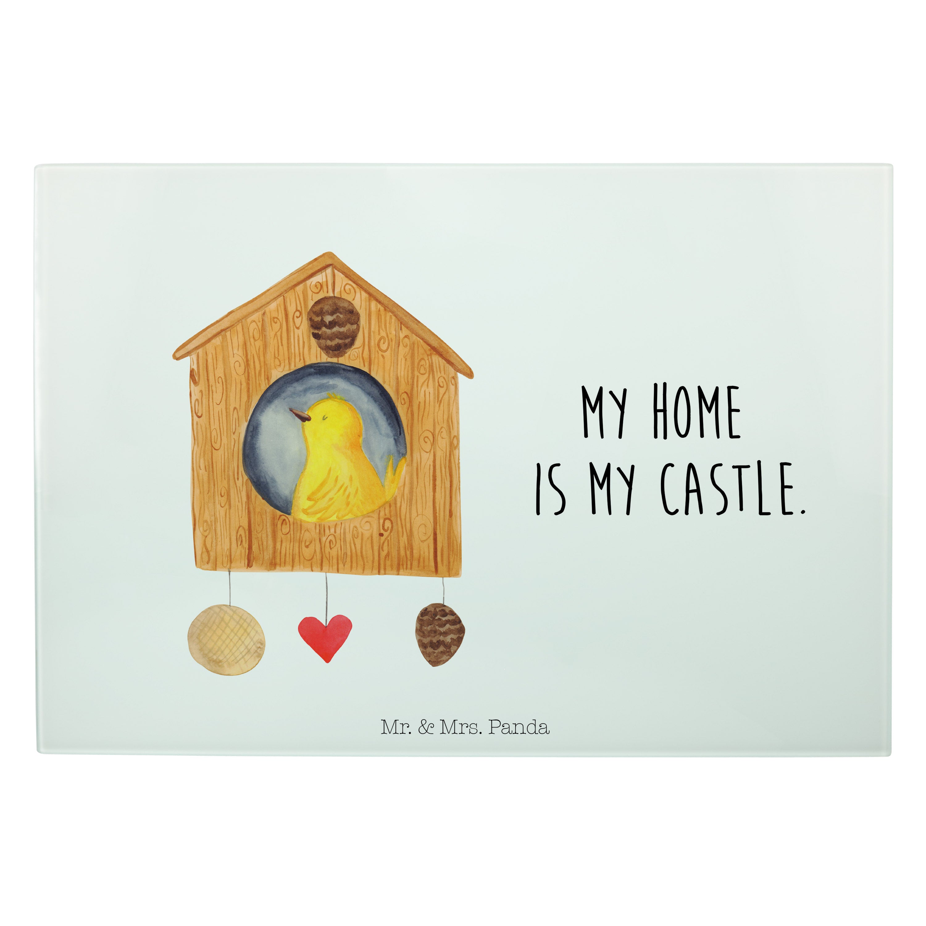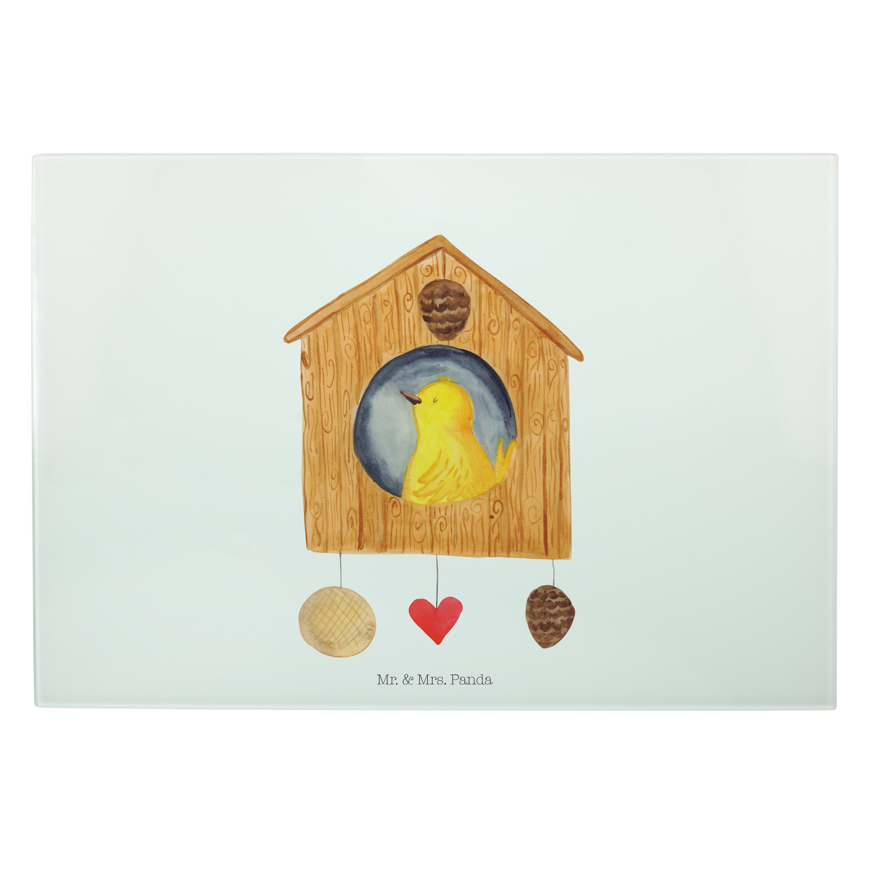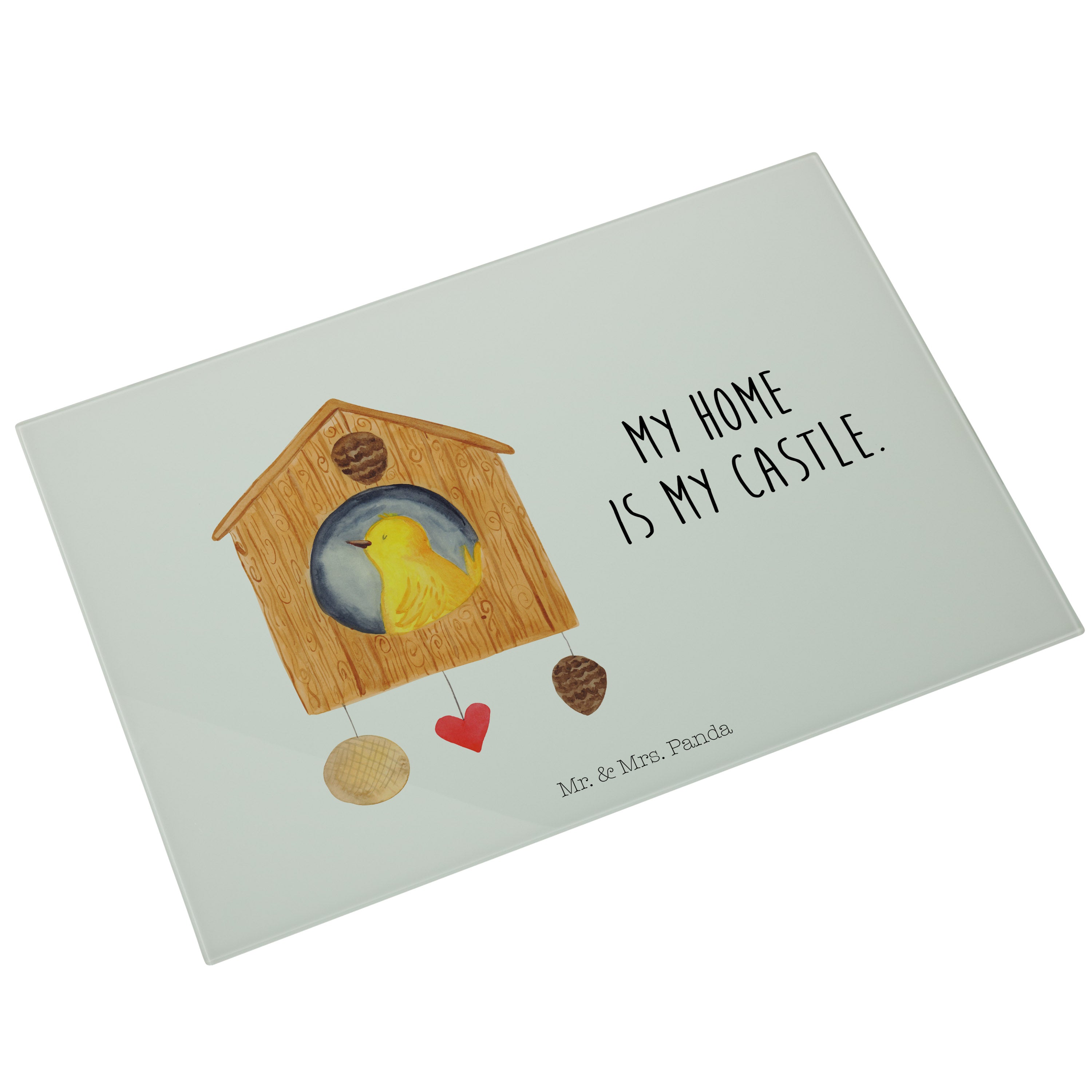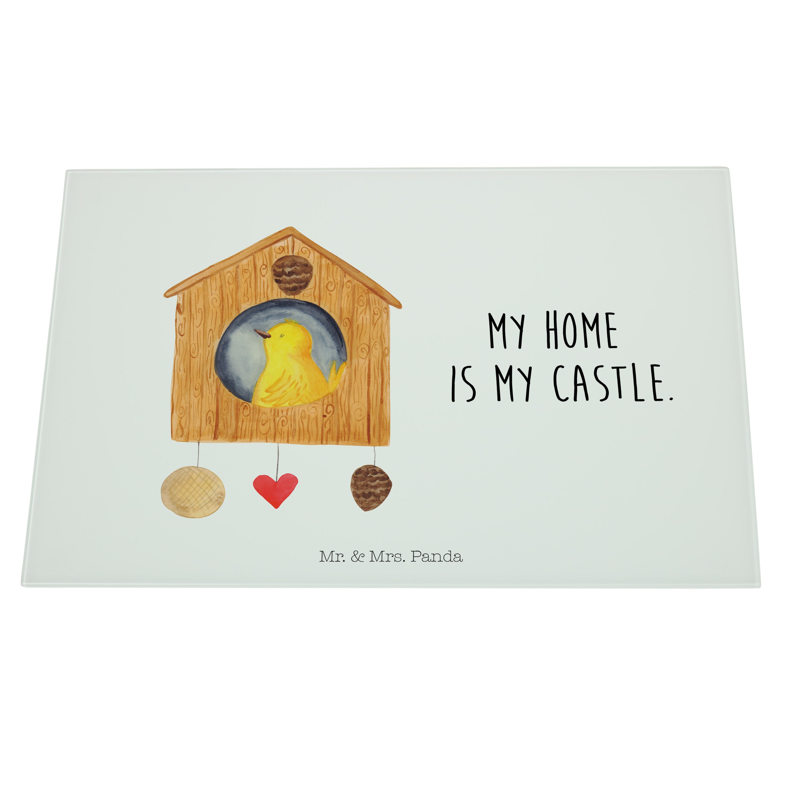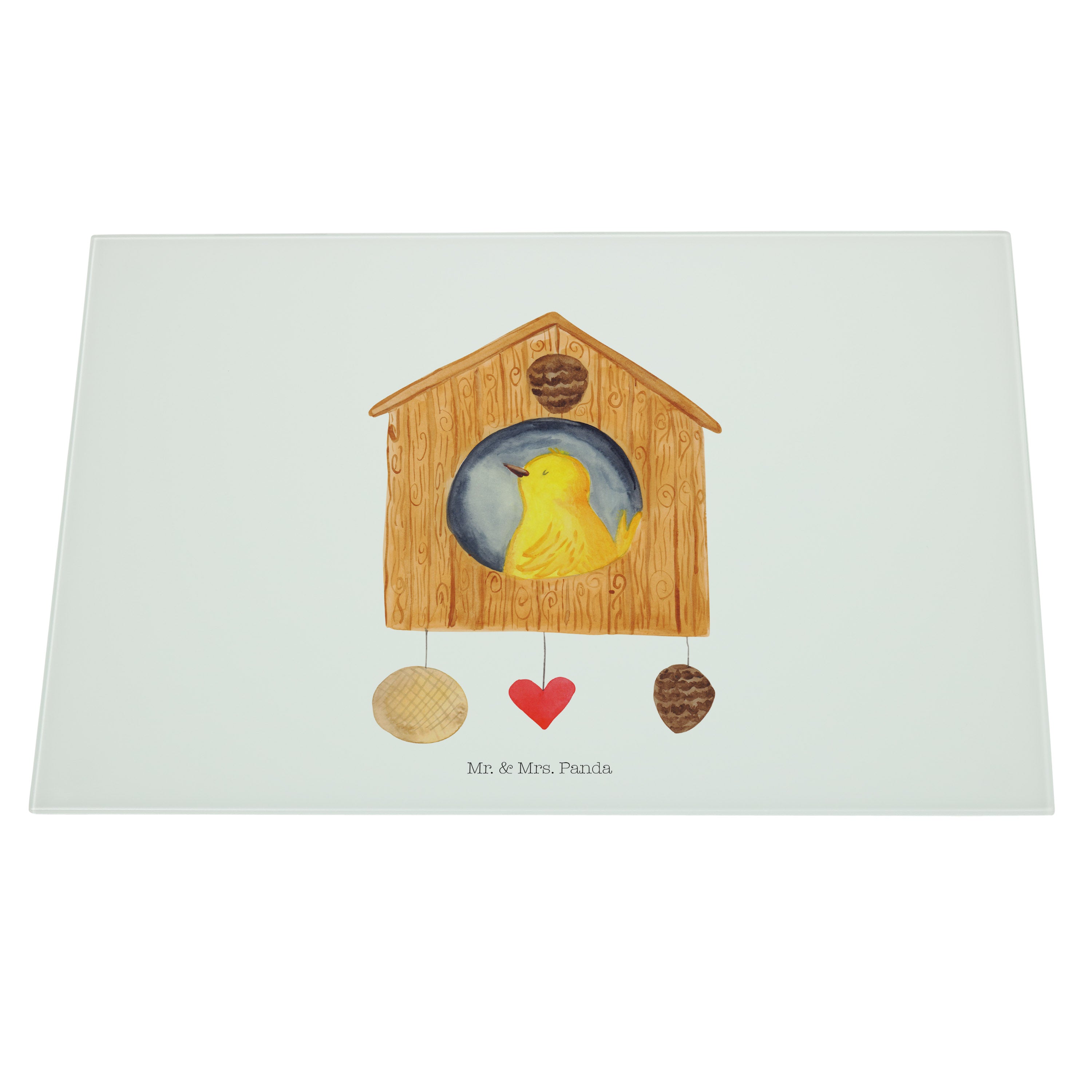 XL Glas Schneidbrett Vogelhaus - mit Spruch - Weiß