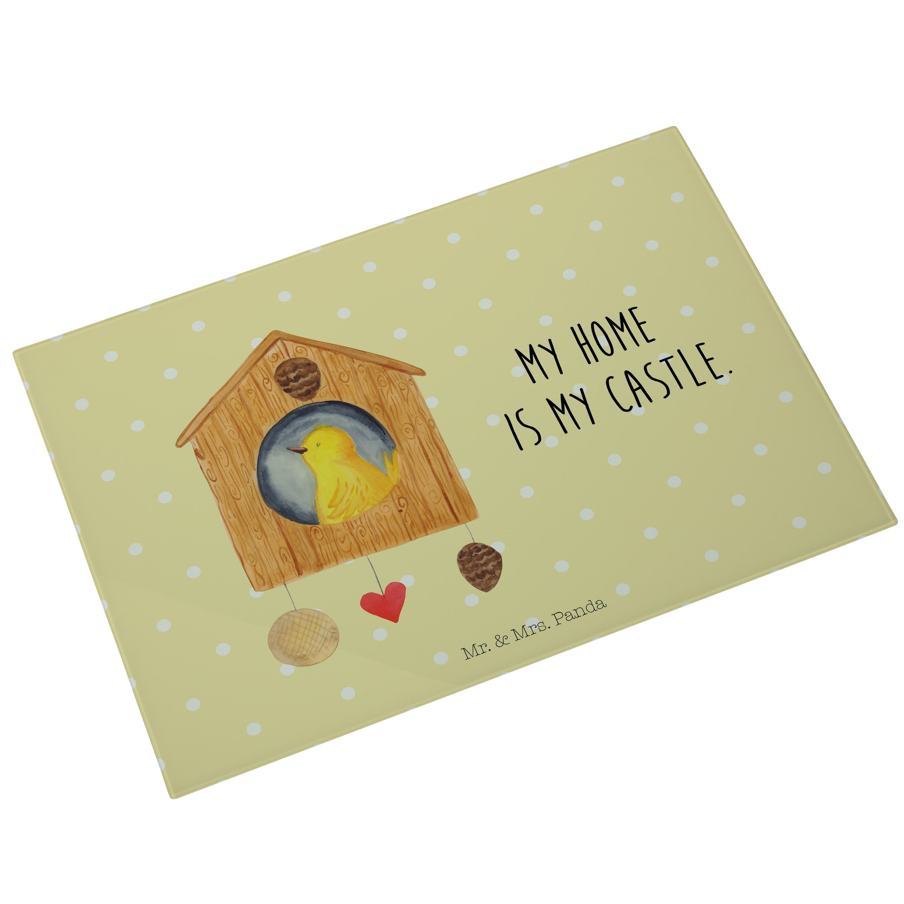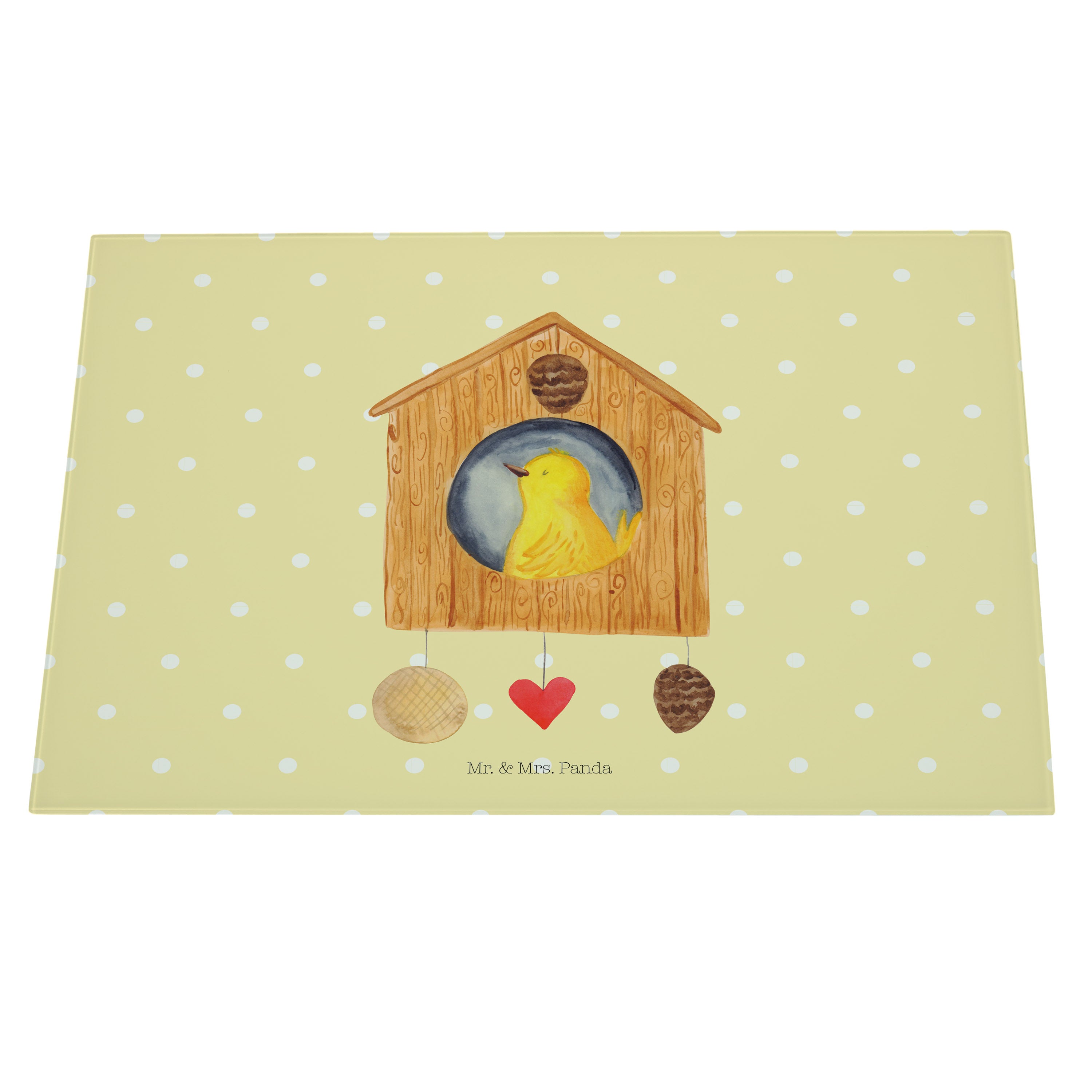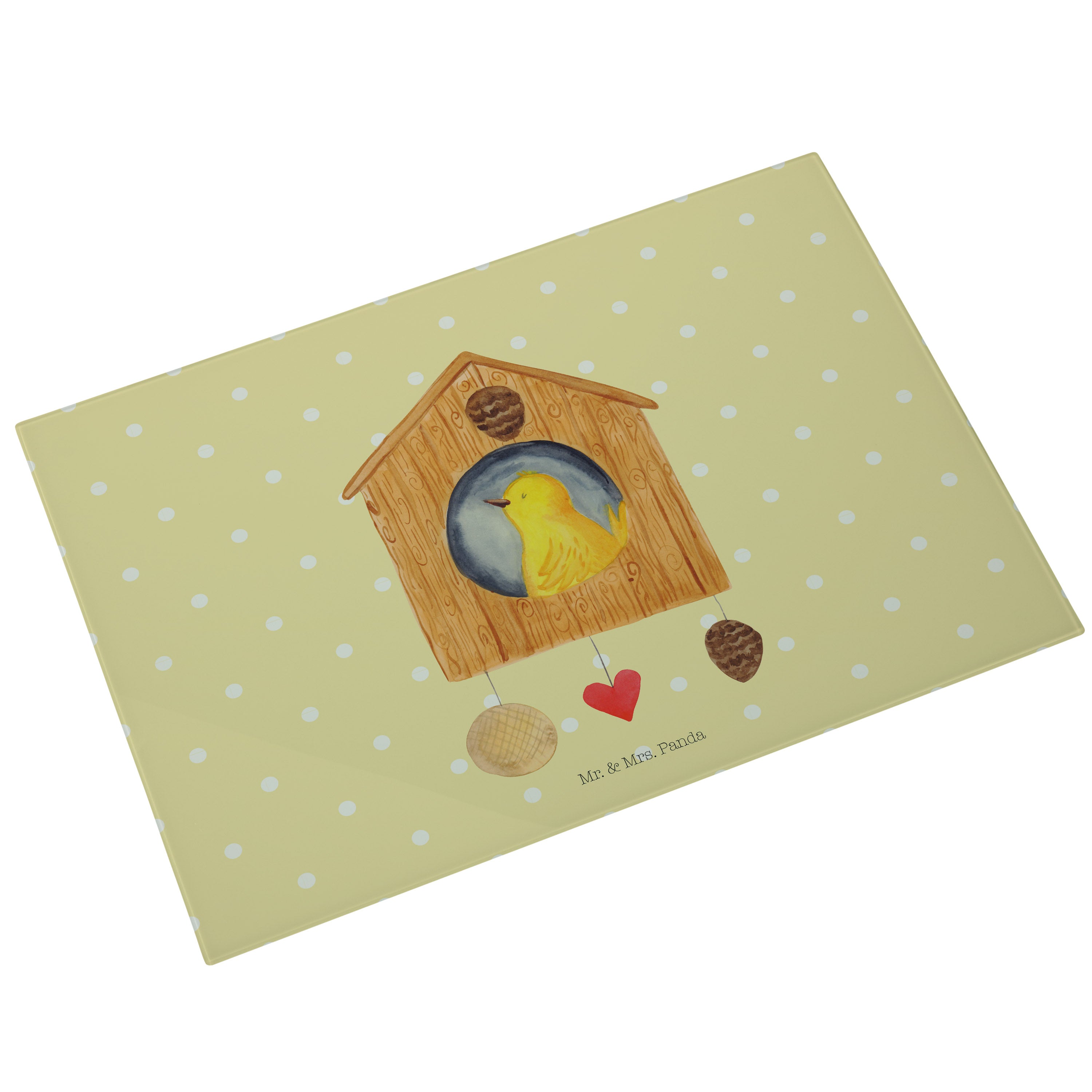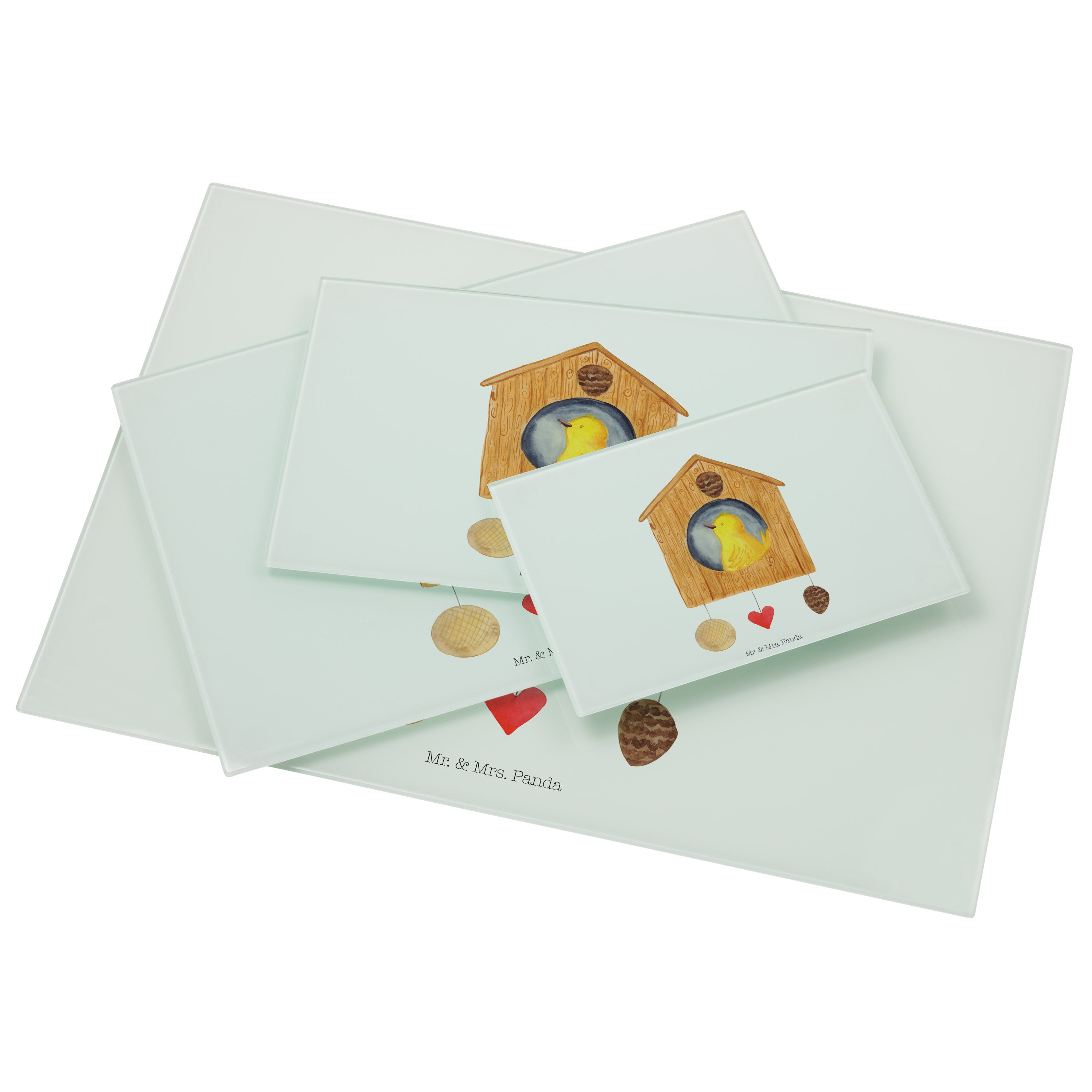 XL Glas Schneidbrett Vogelhaus - mit Spruch - Weiß