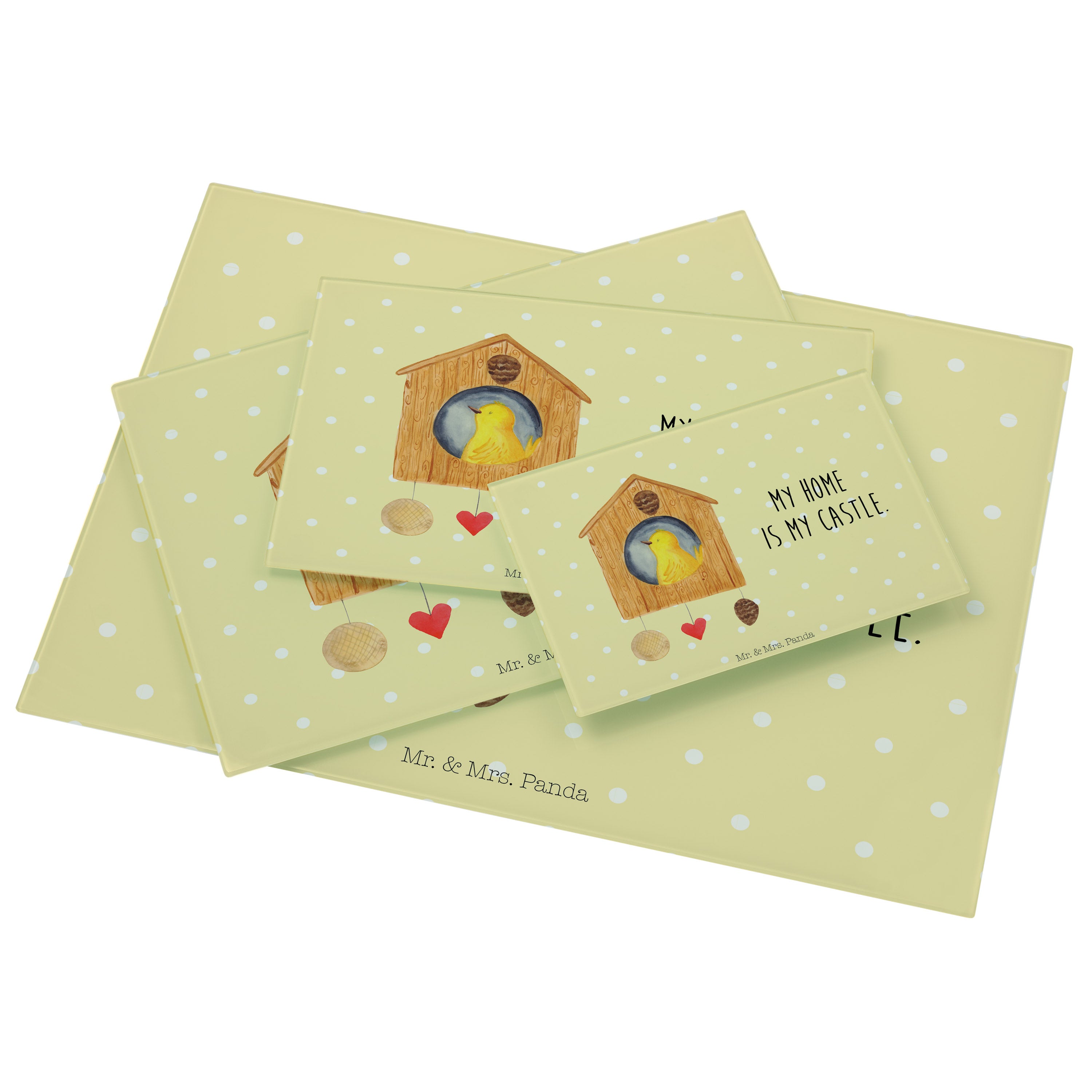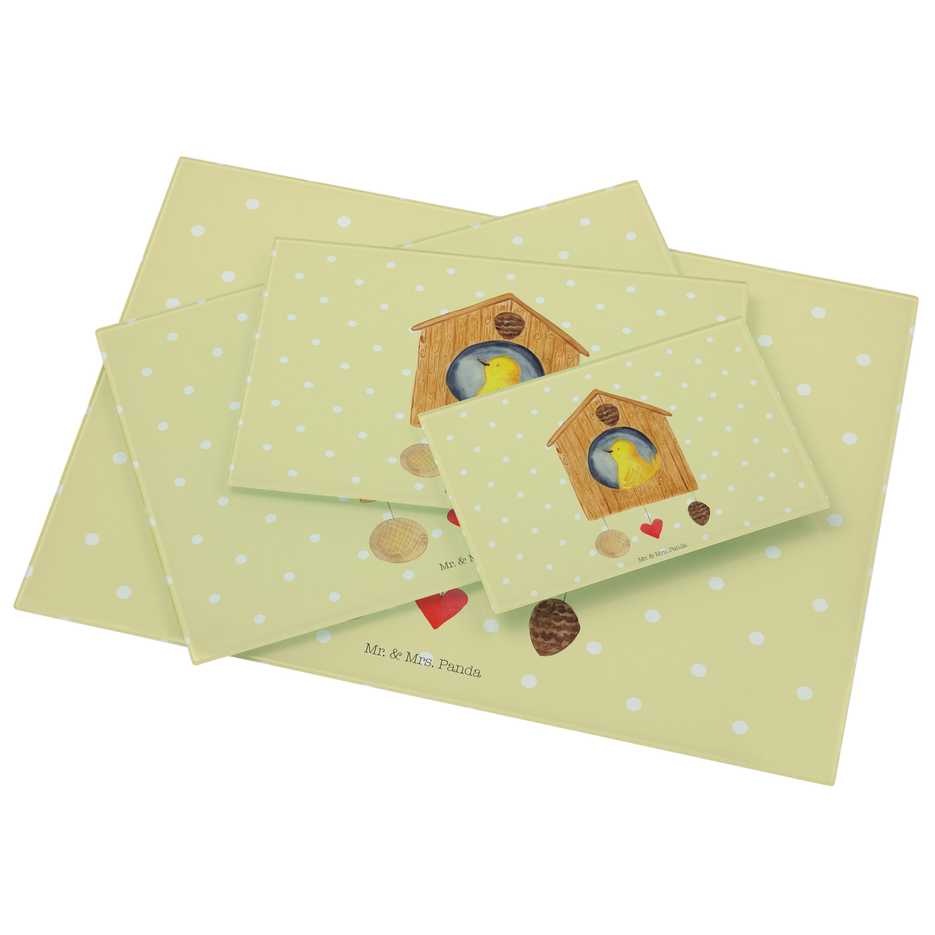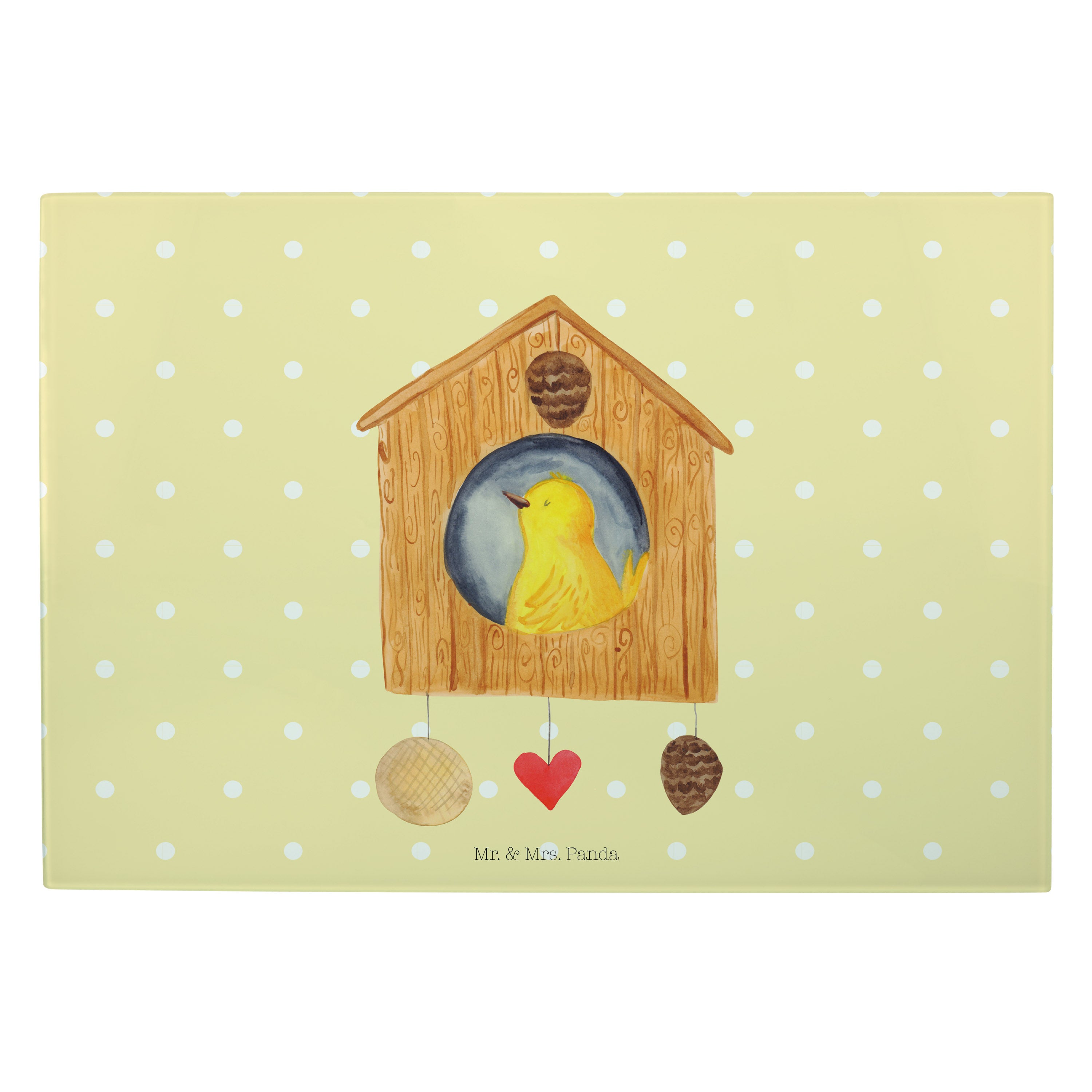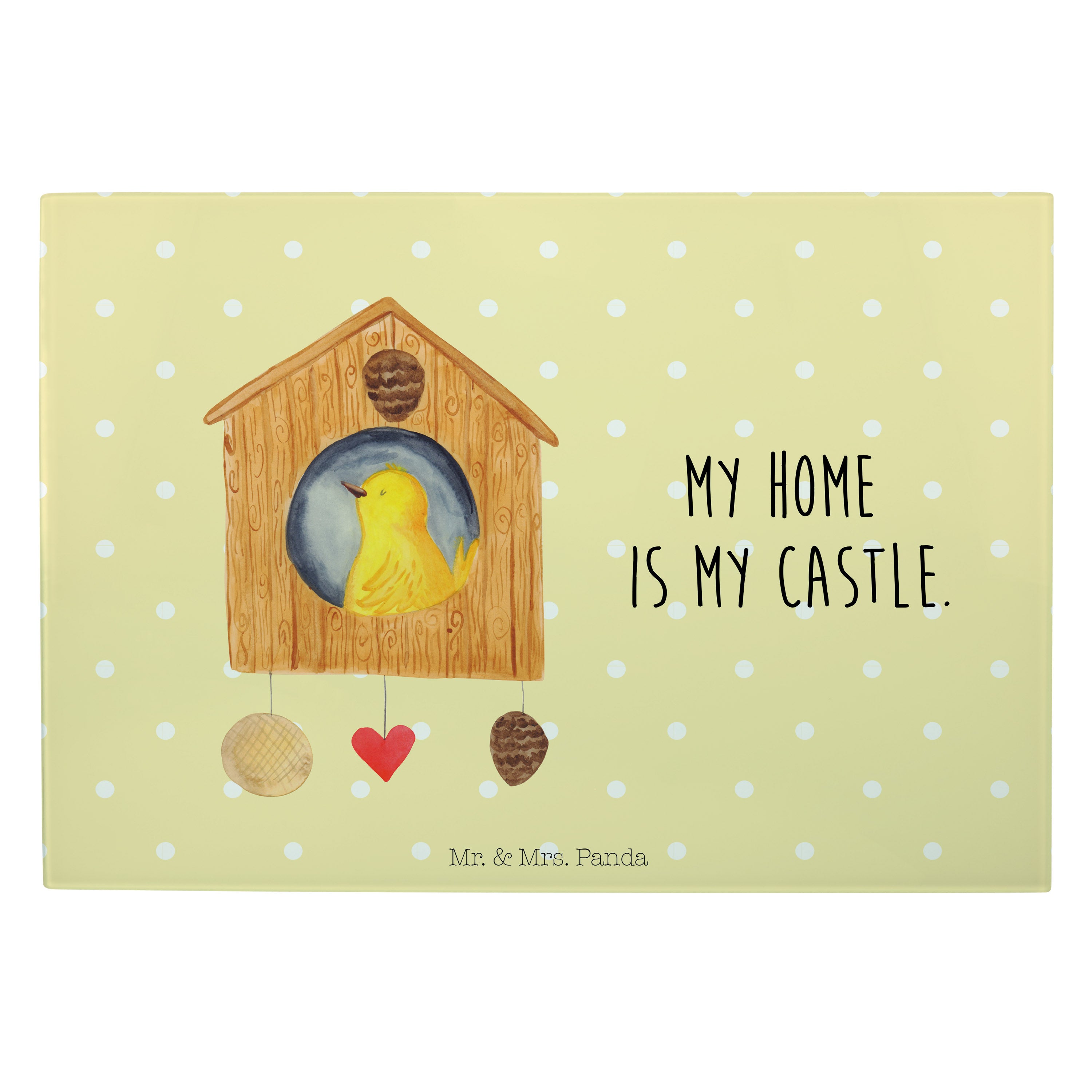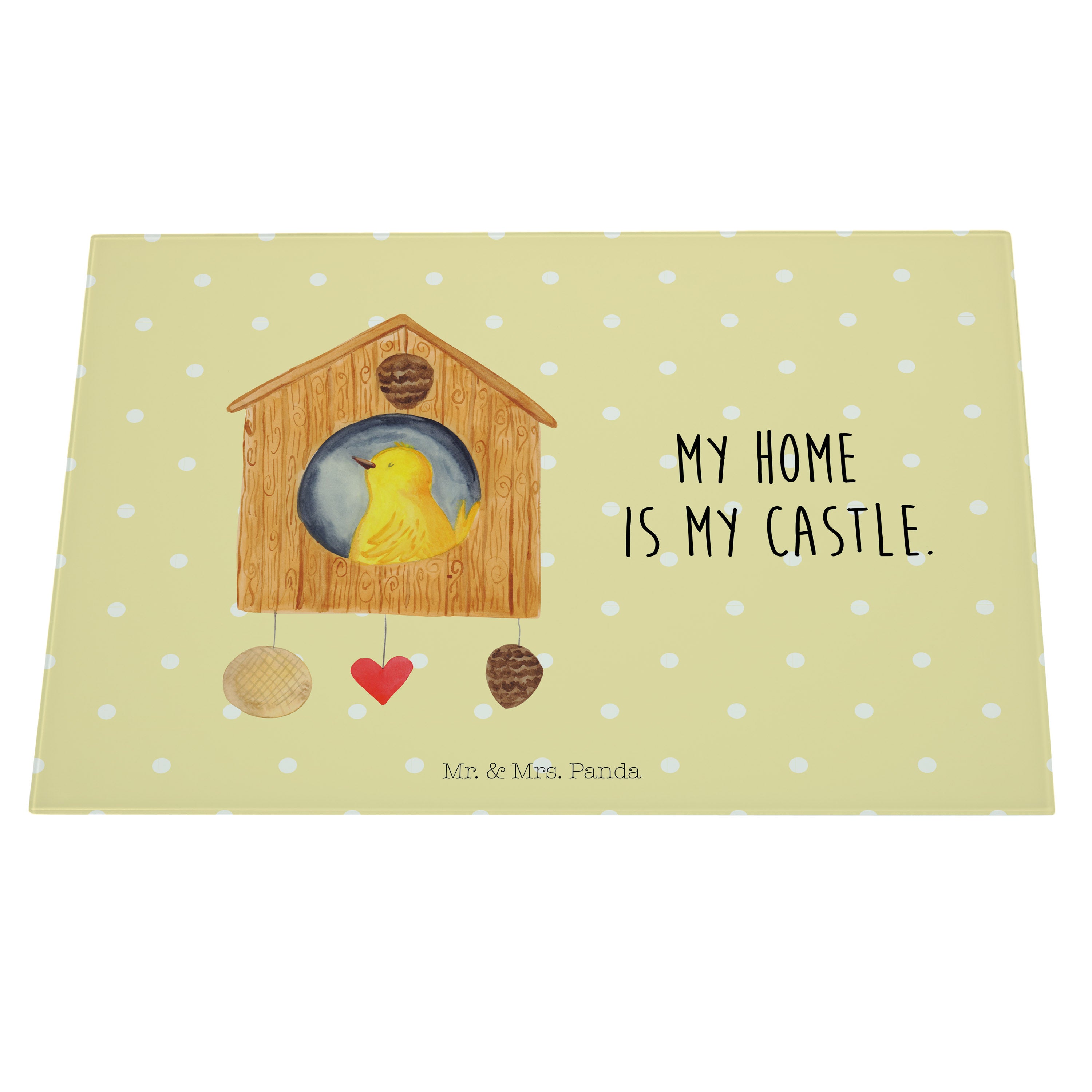 XL Glas Schneidbrett Vogelhaus - mit Spruch - Weiß
