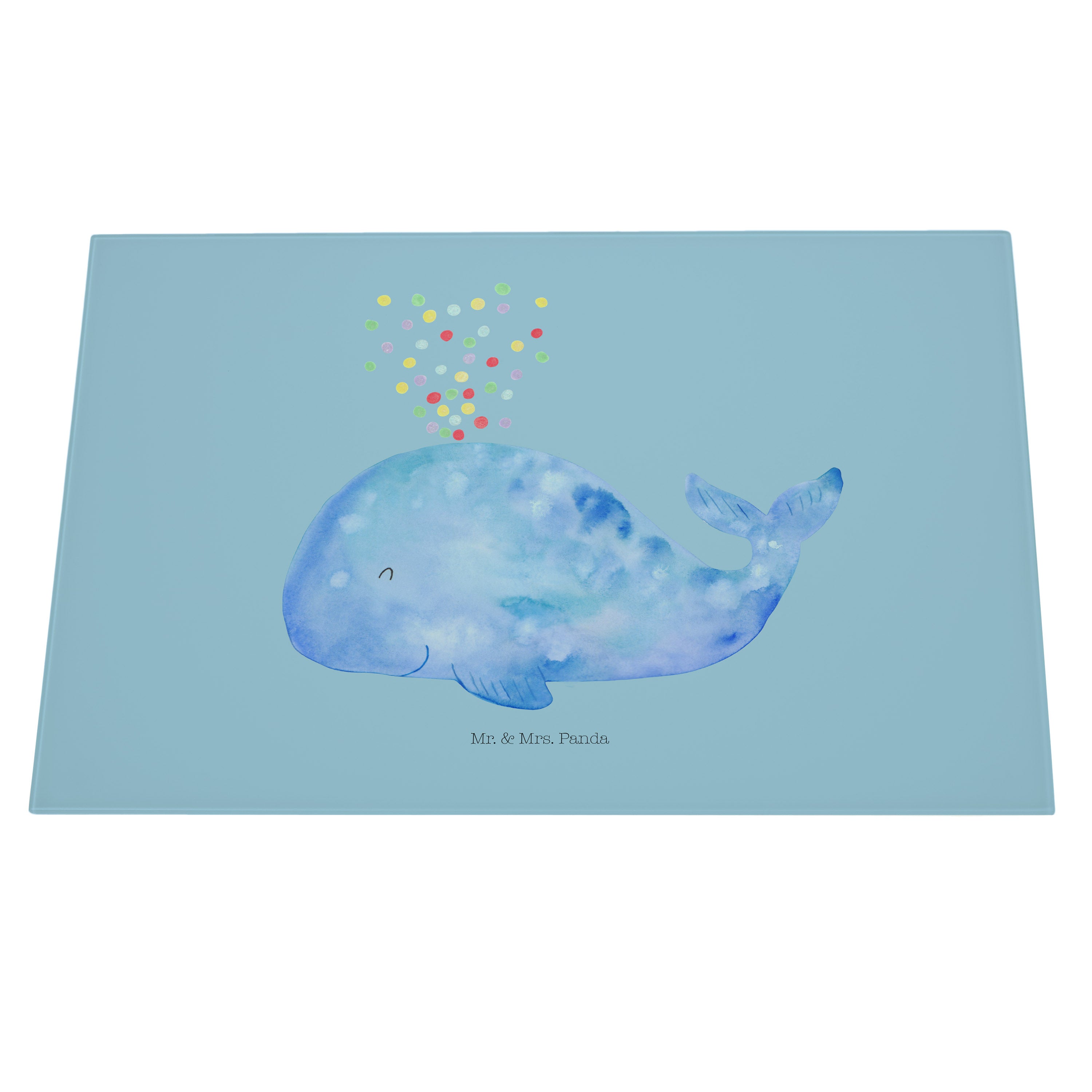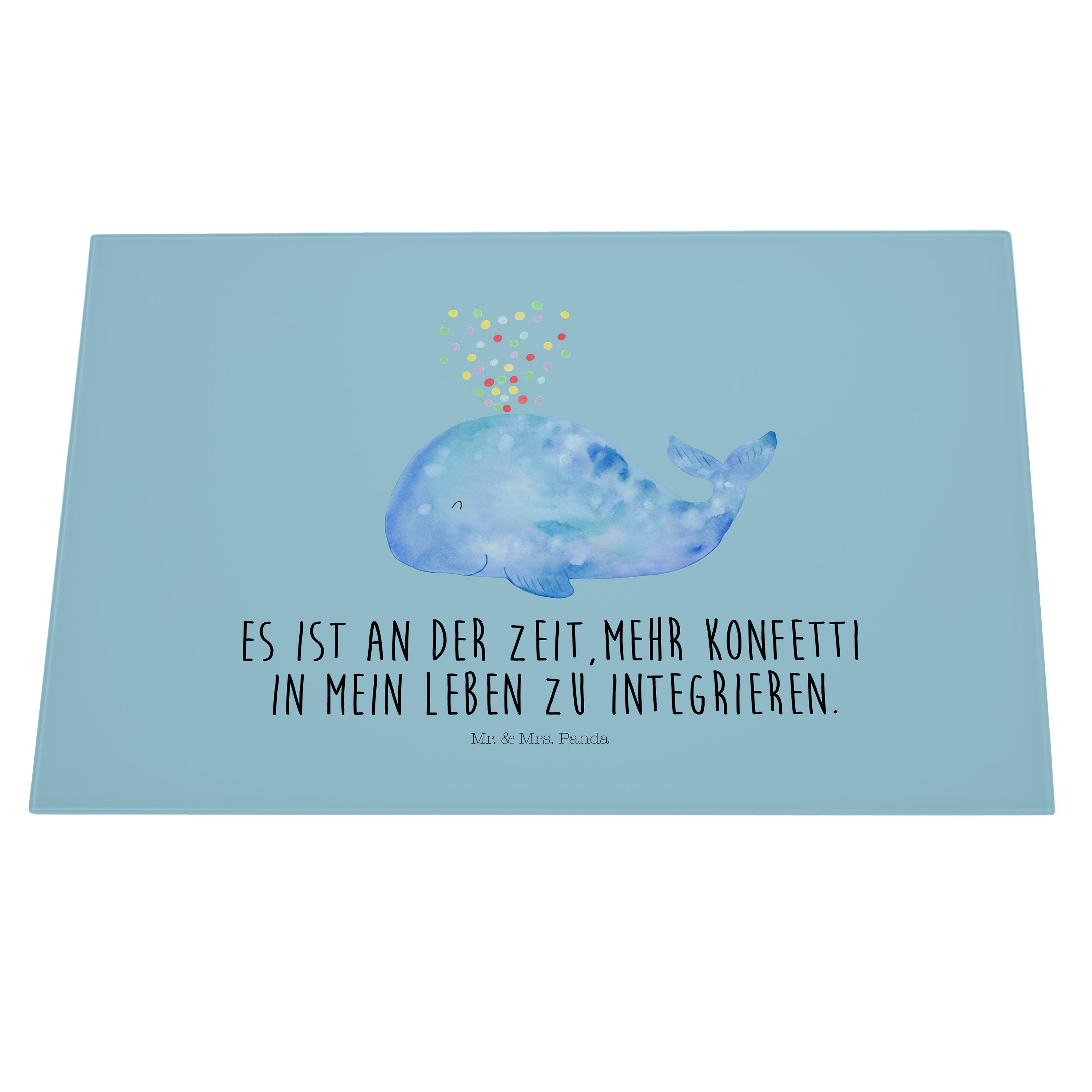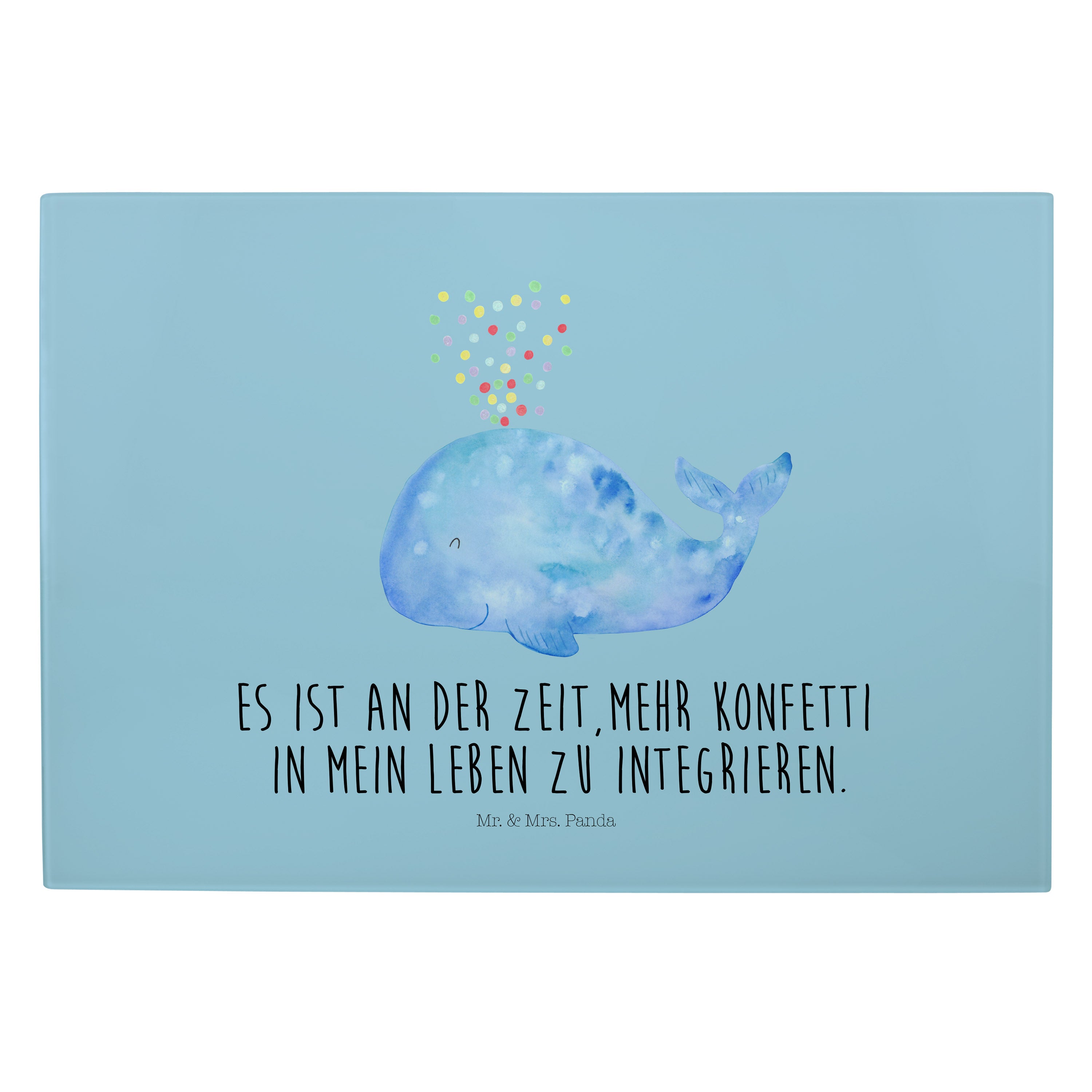 XL Glas Schneidbrett Wal Konfetti - mit Spruch - Blau Pastell