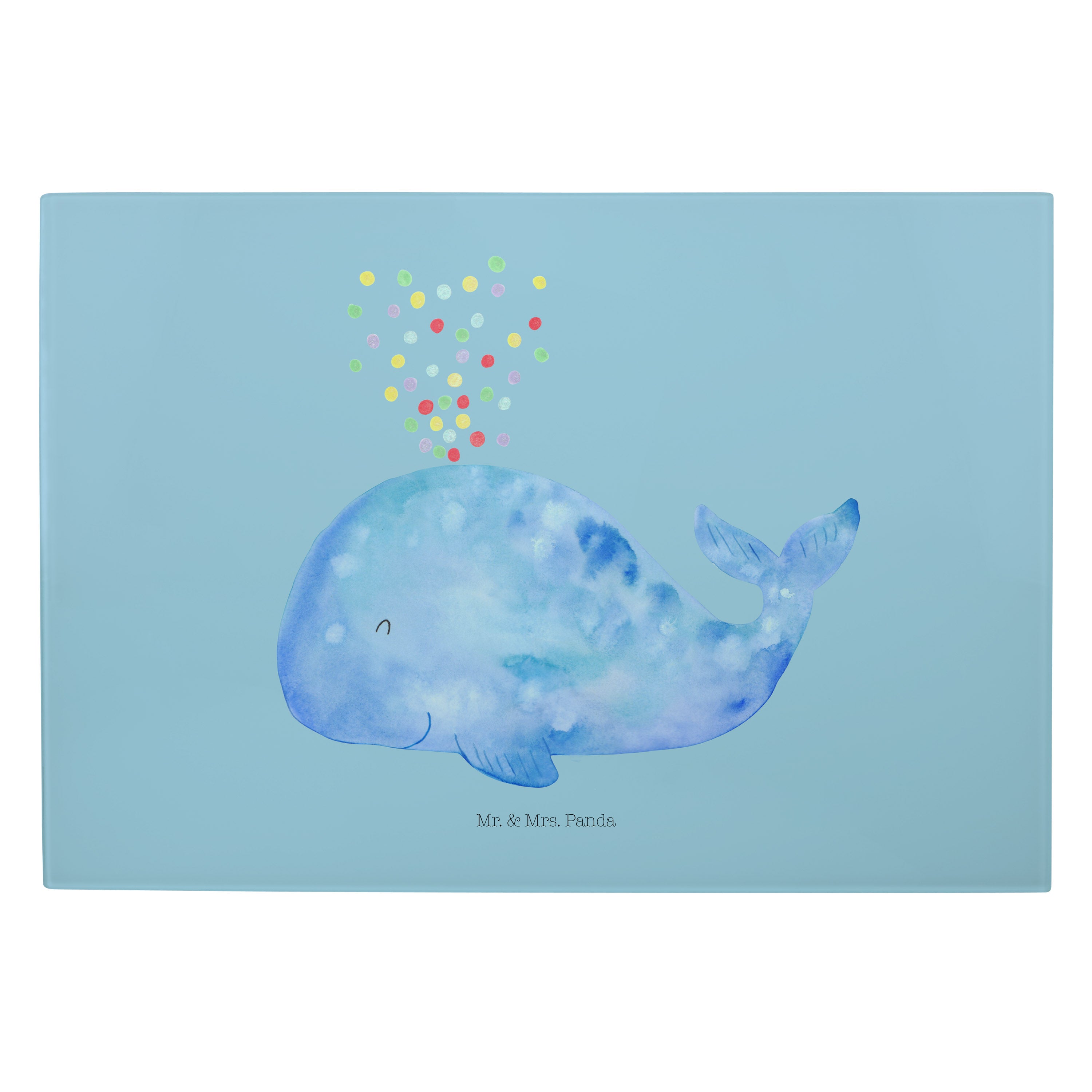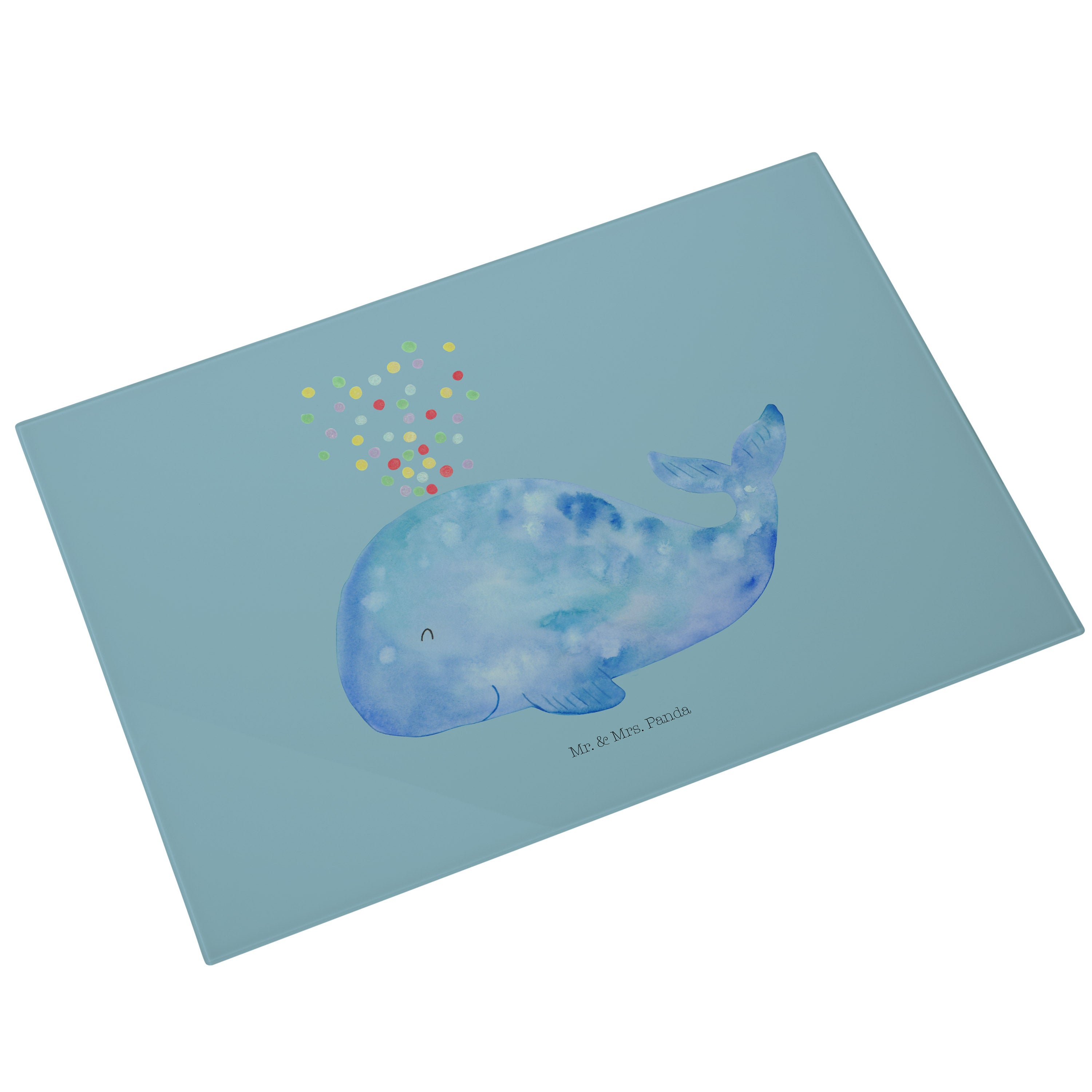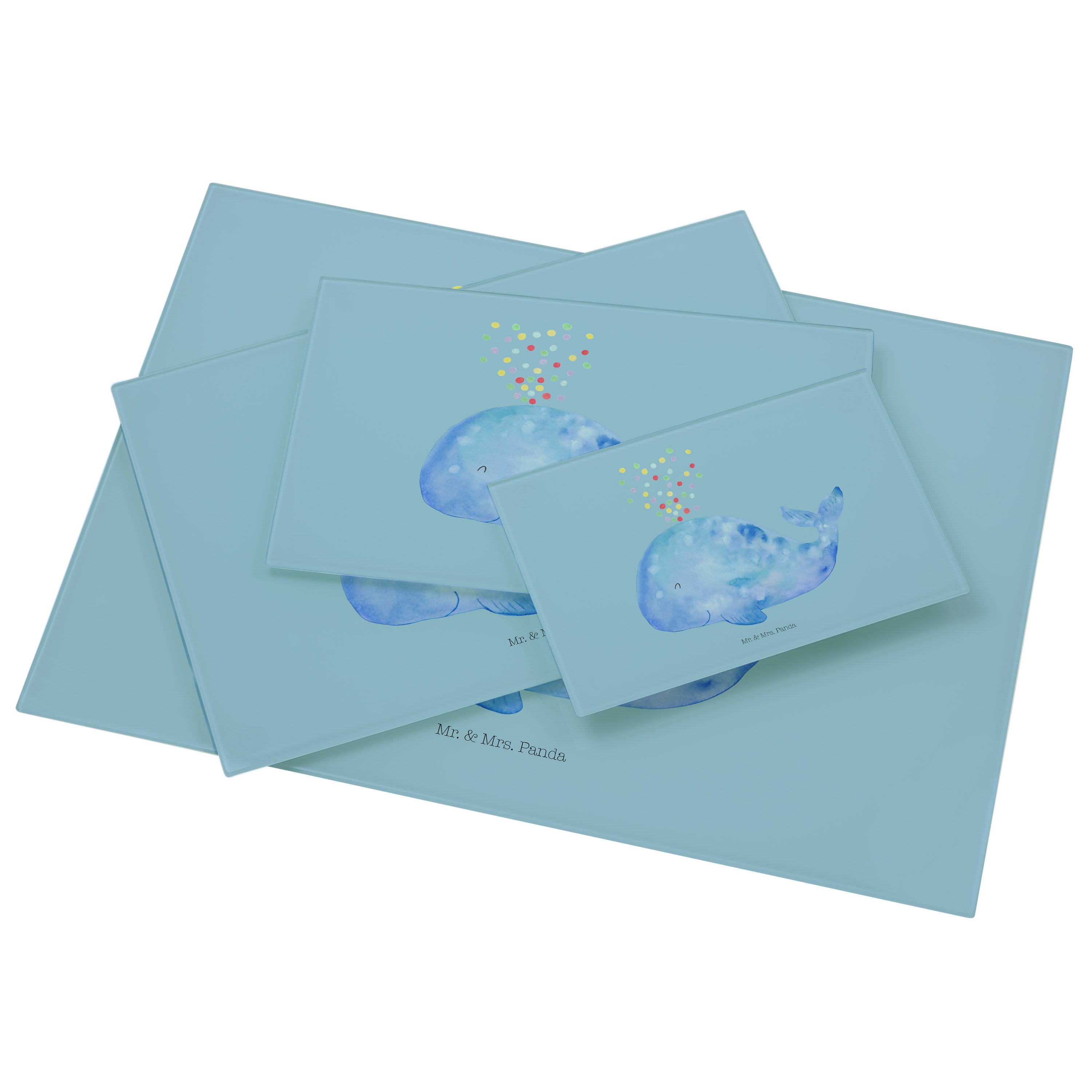XL Glas Schneidbrett Wal Konfetti - mit Spruch - Blau Pastell