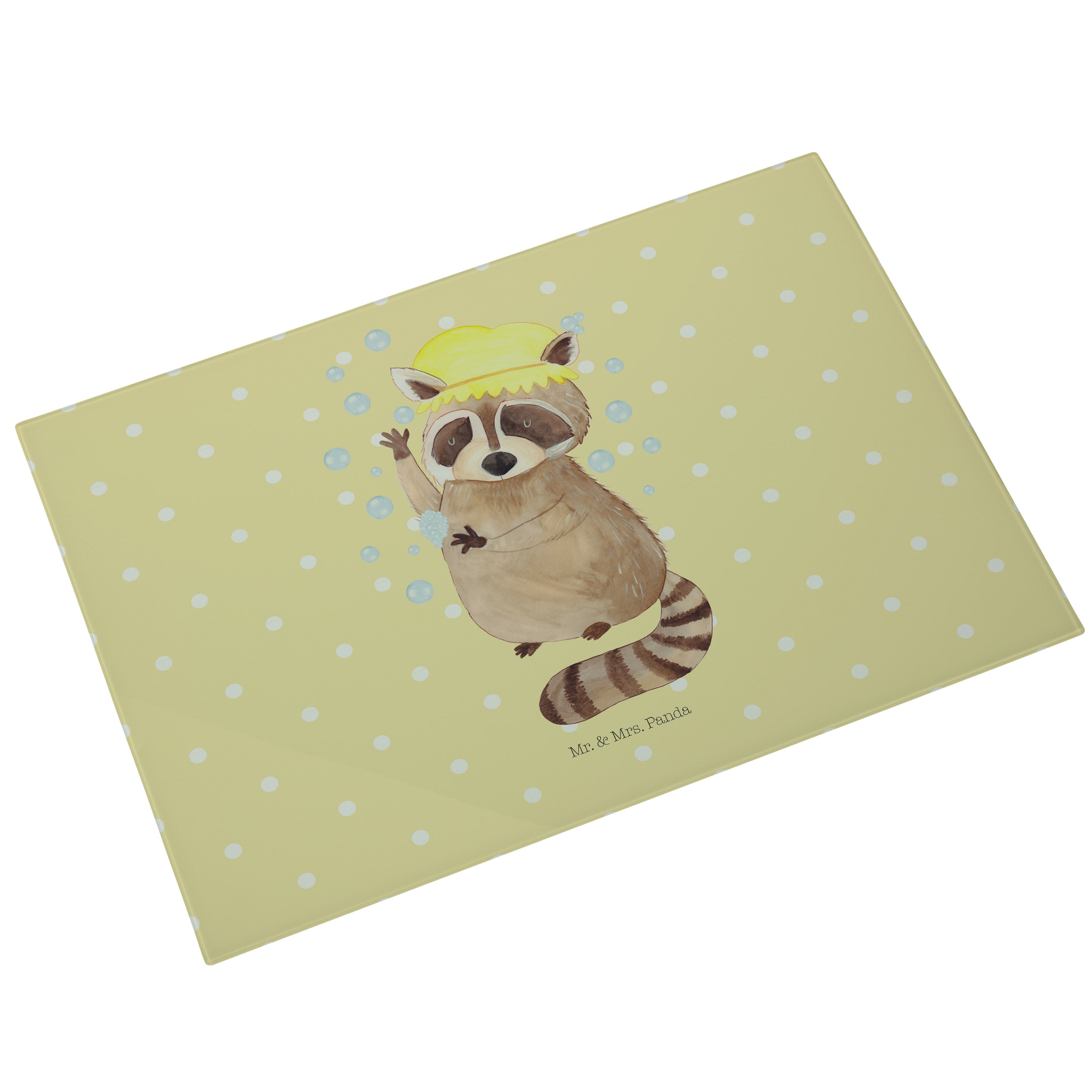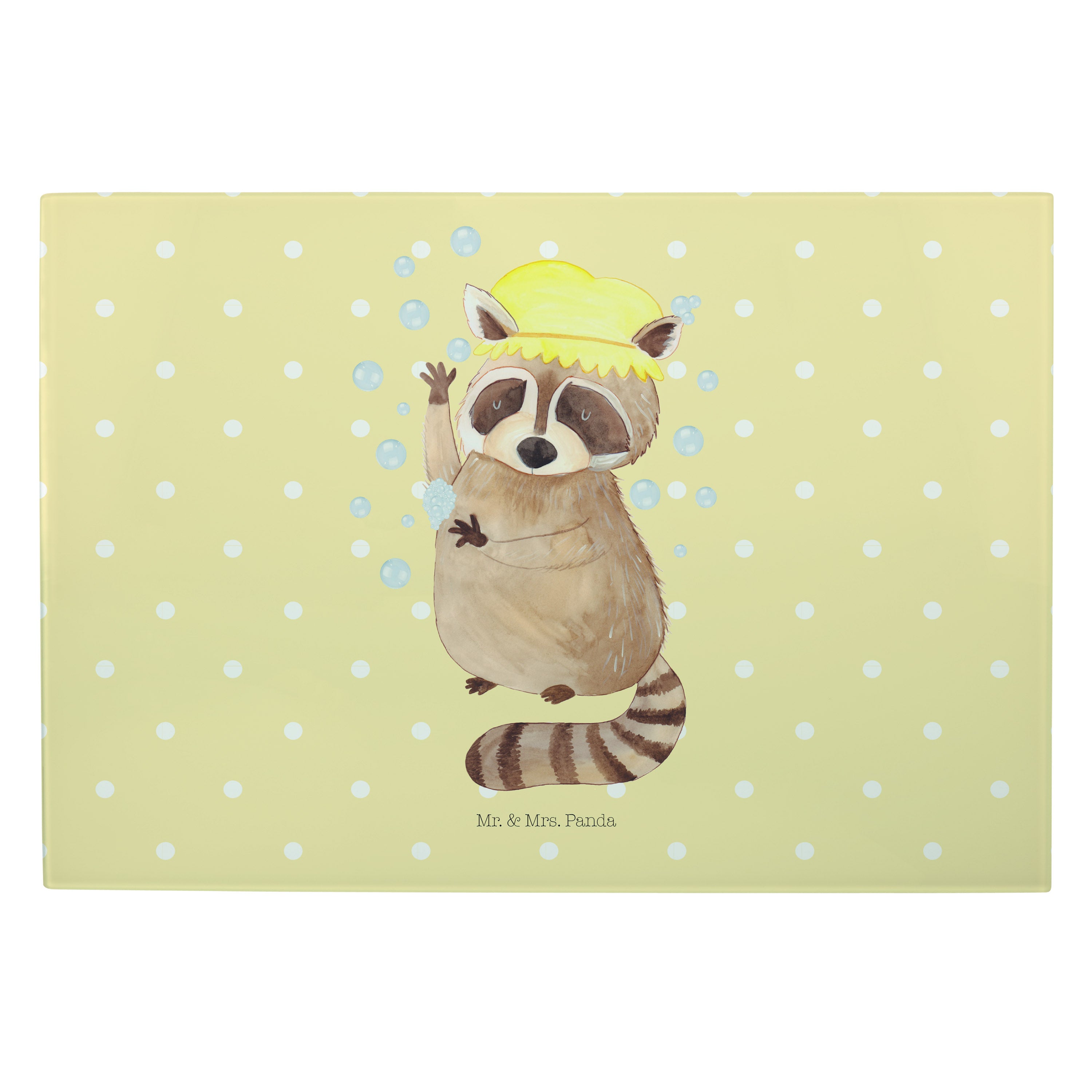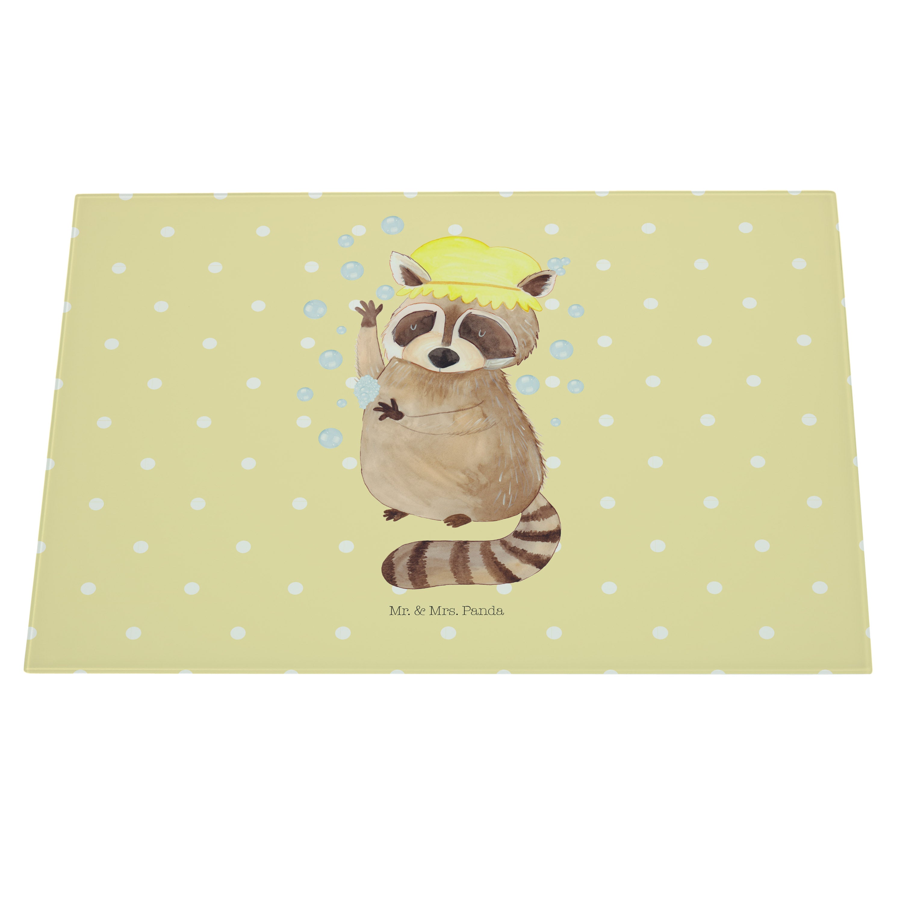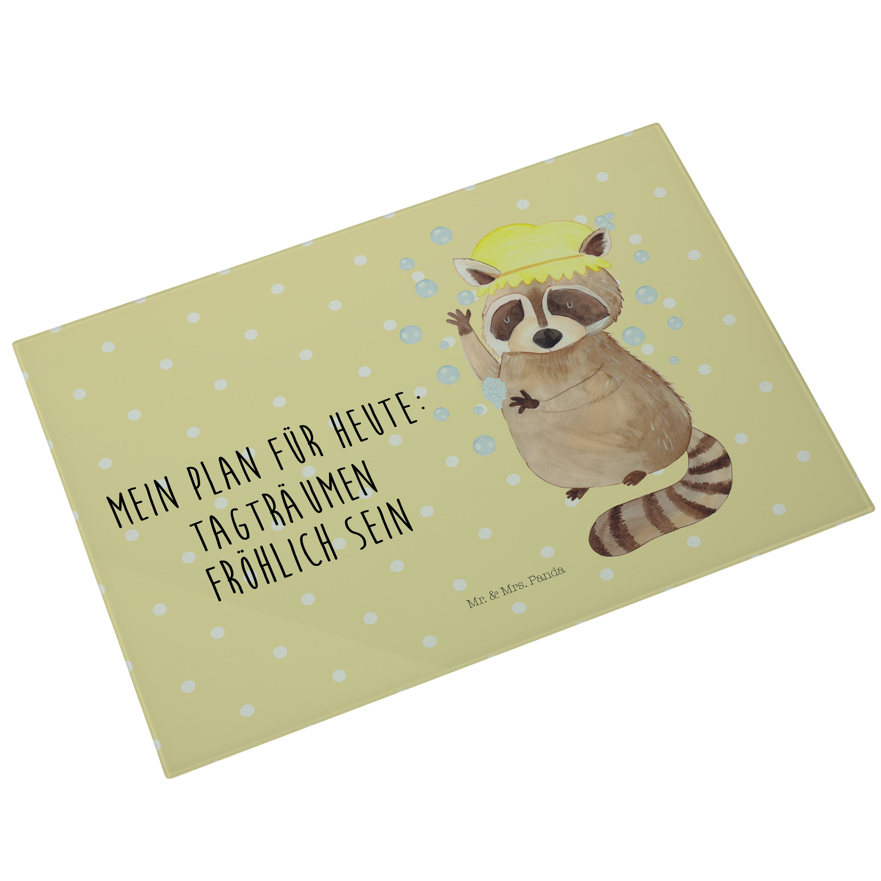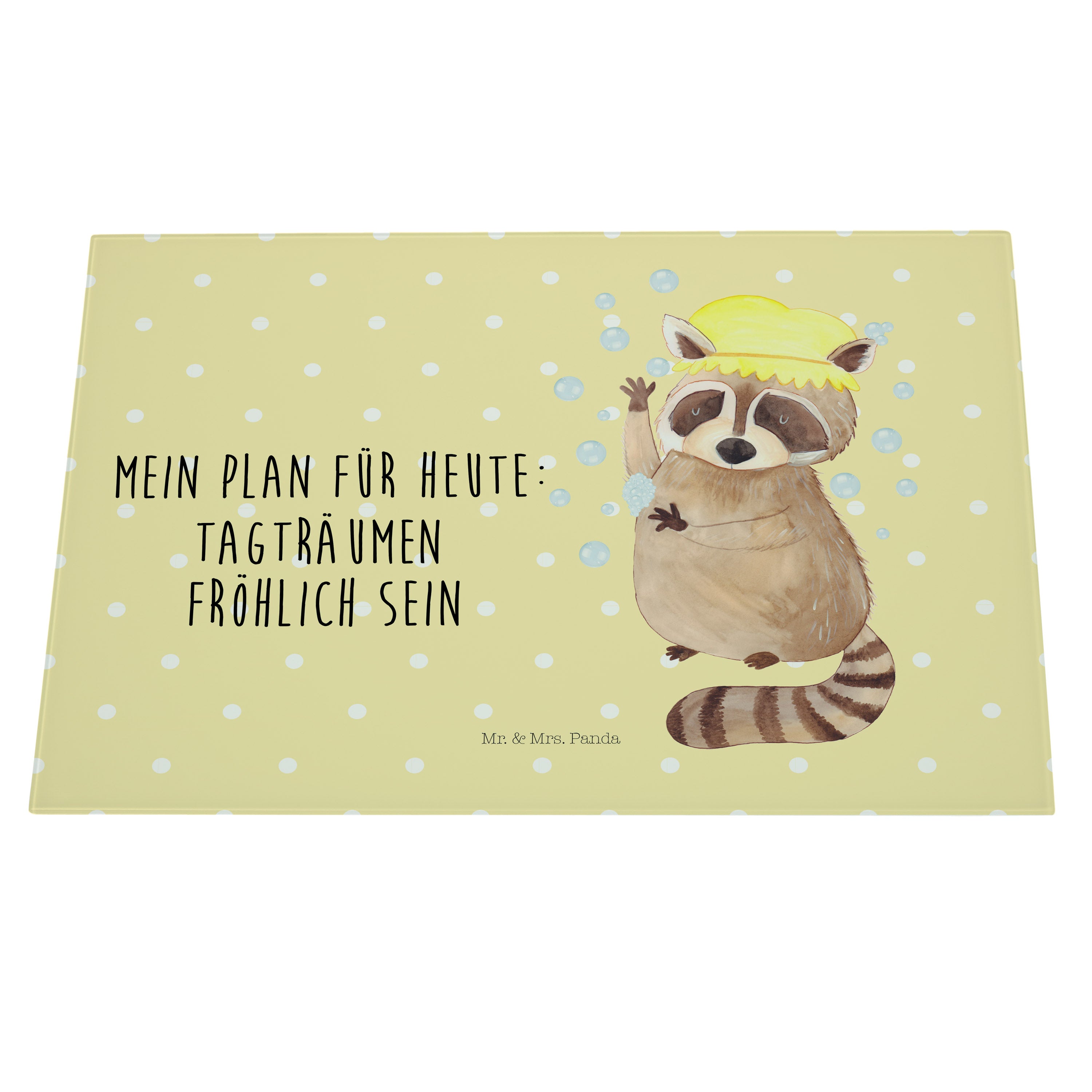 XL Glas Schneidbrett Waschbär - mit Spruch - Gelb Pastell