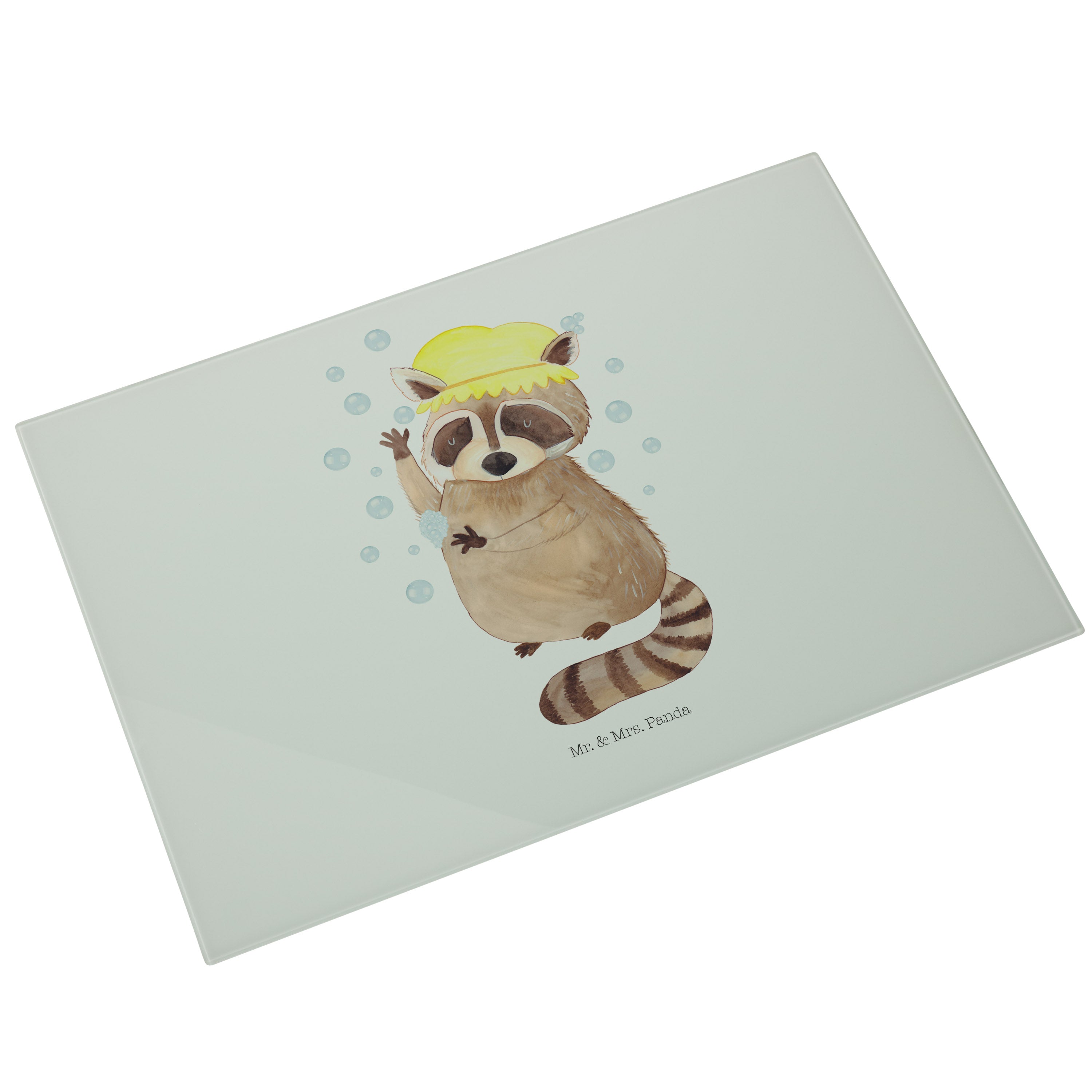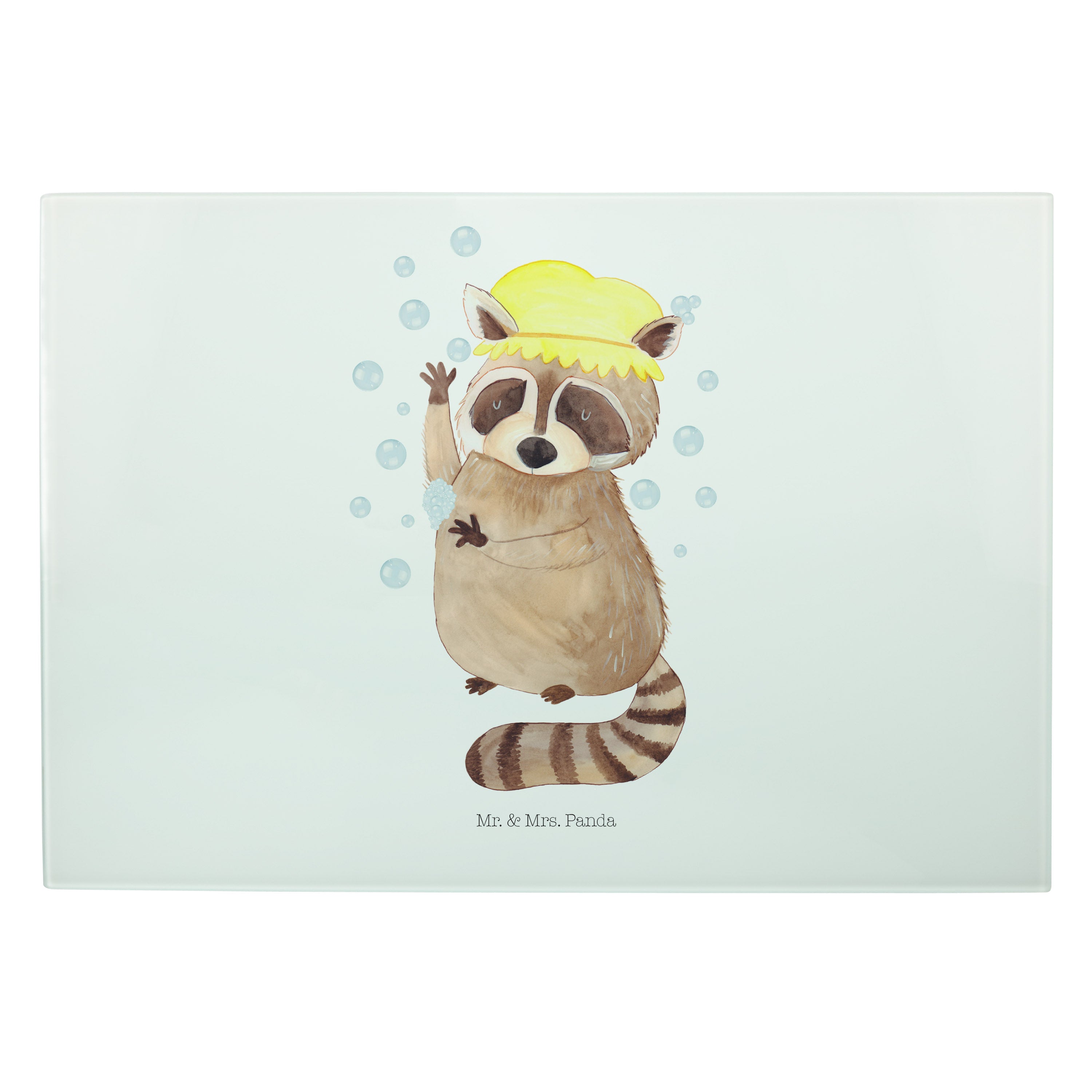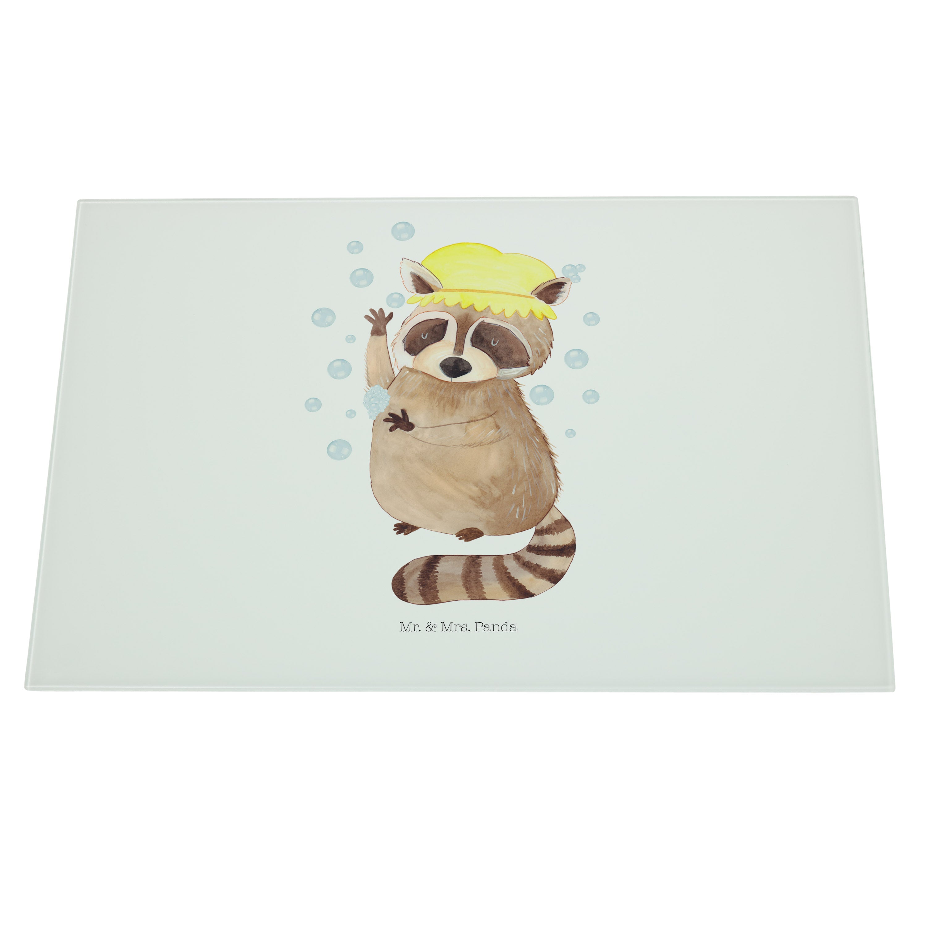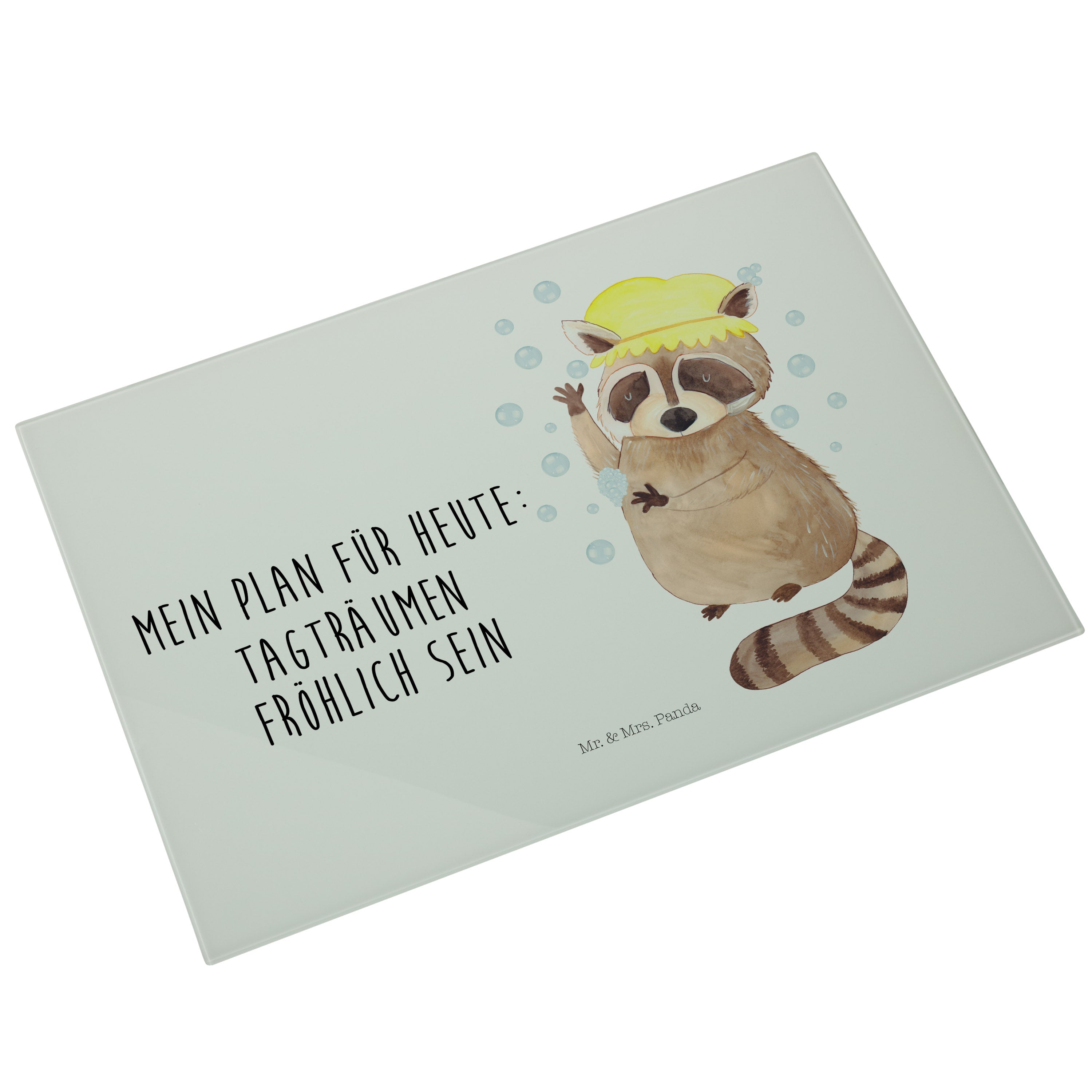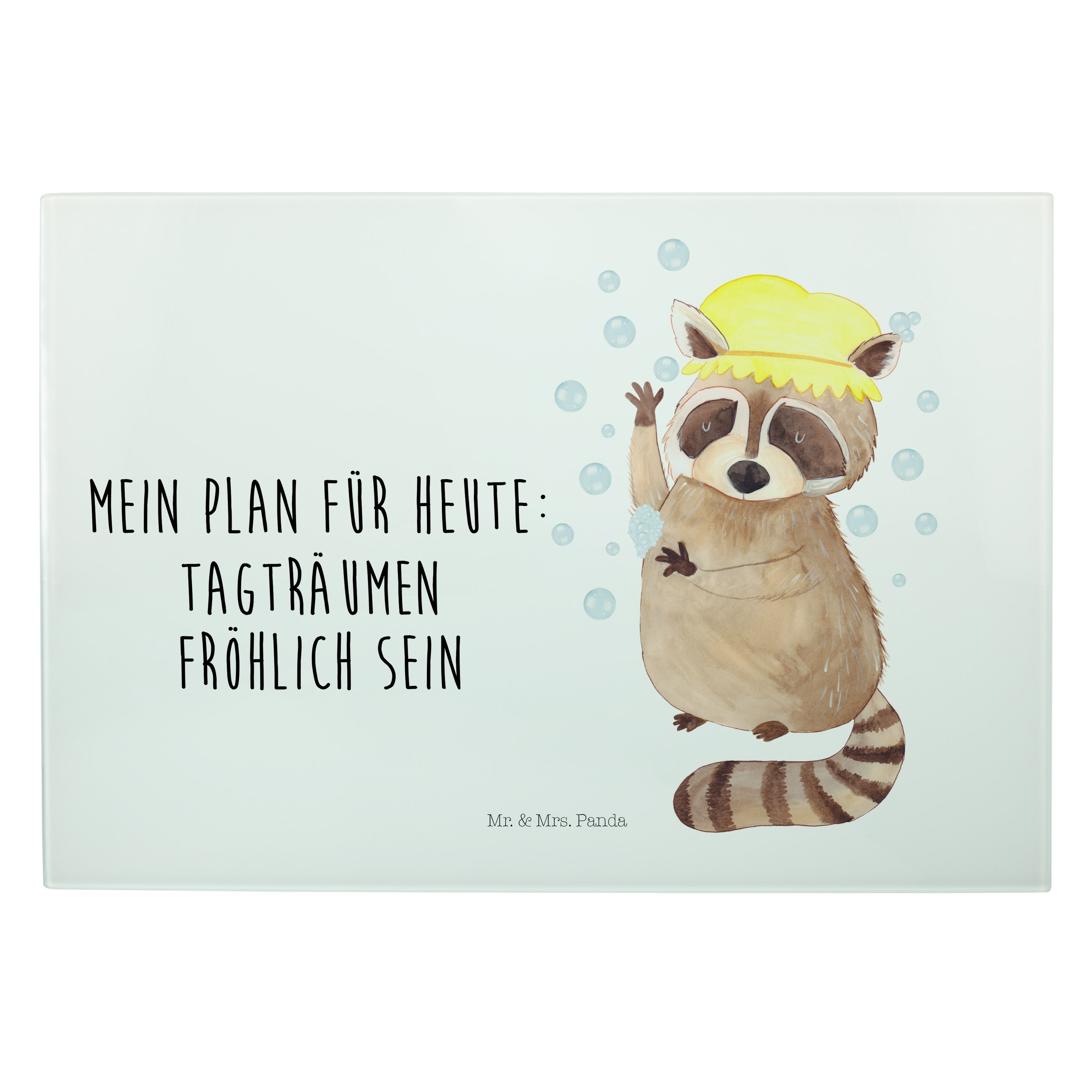 XL Glas Schneidbrett Waschbär - mit Spruch - Gelb Pastell