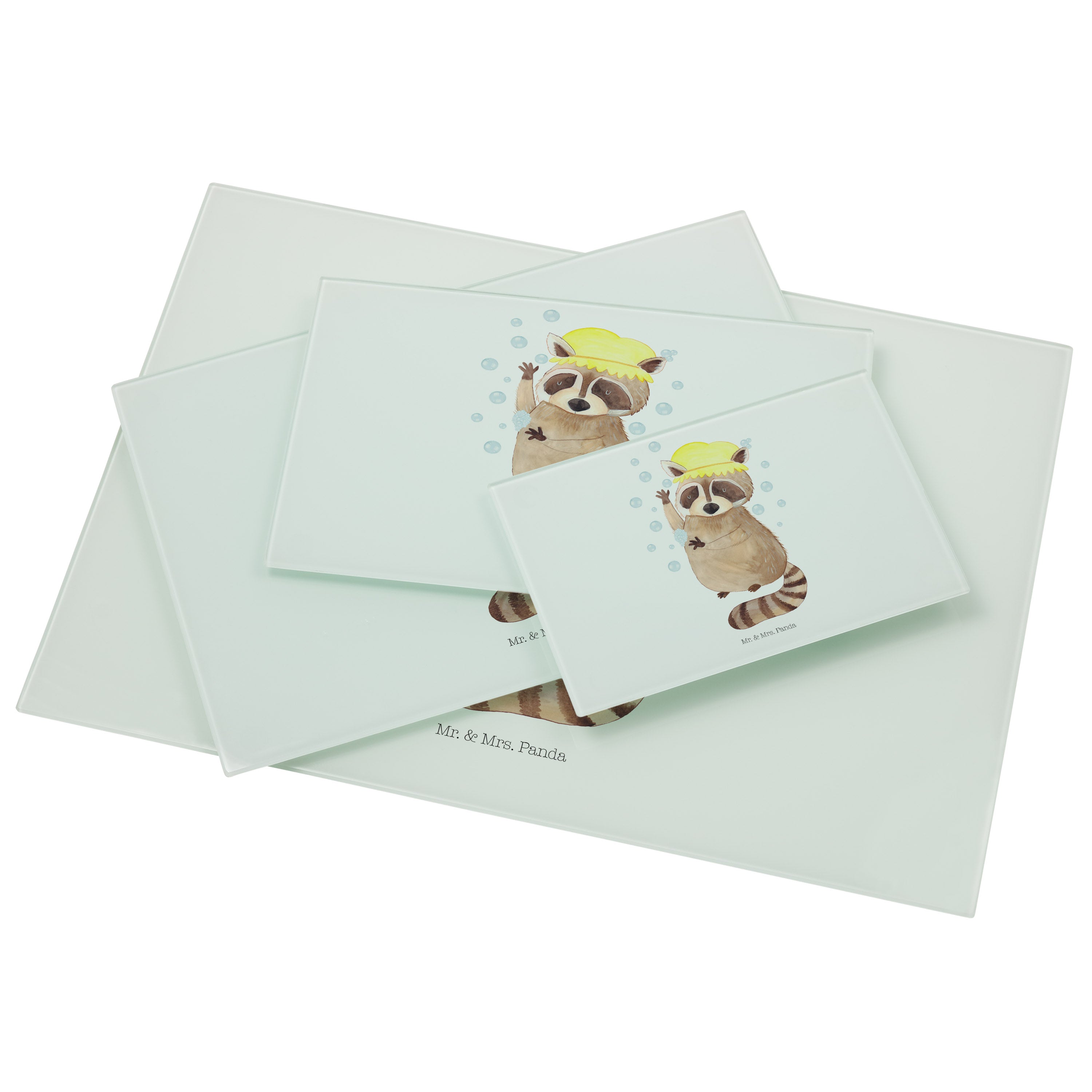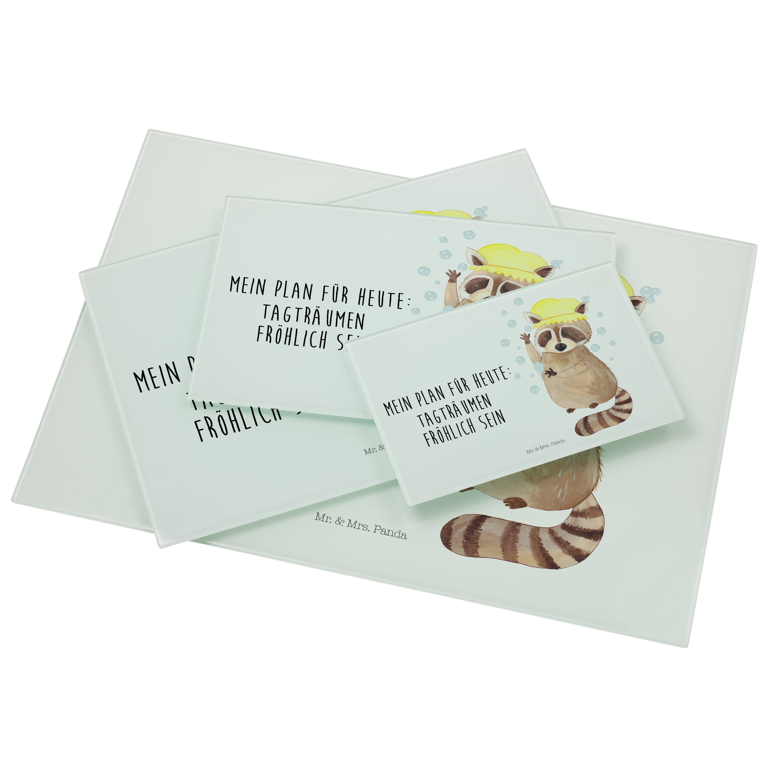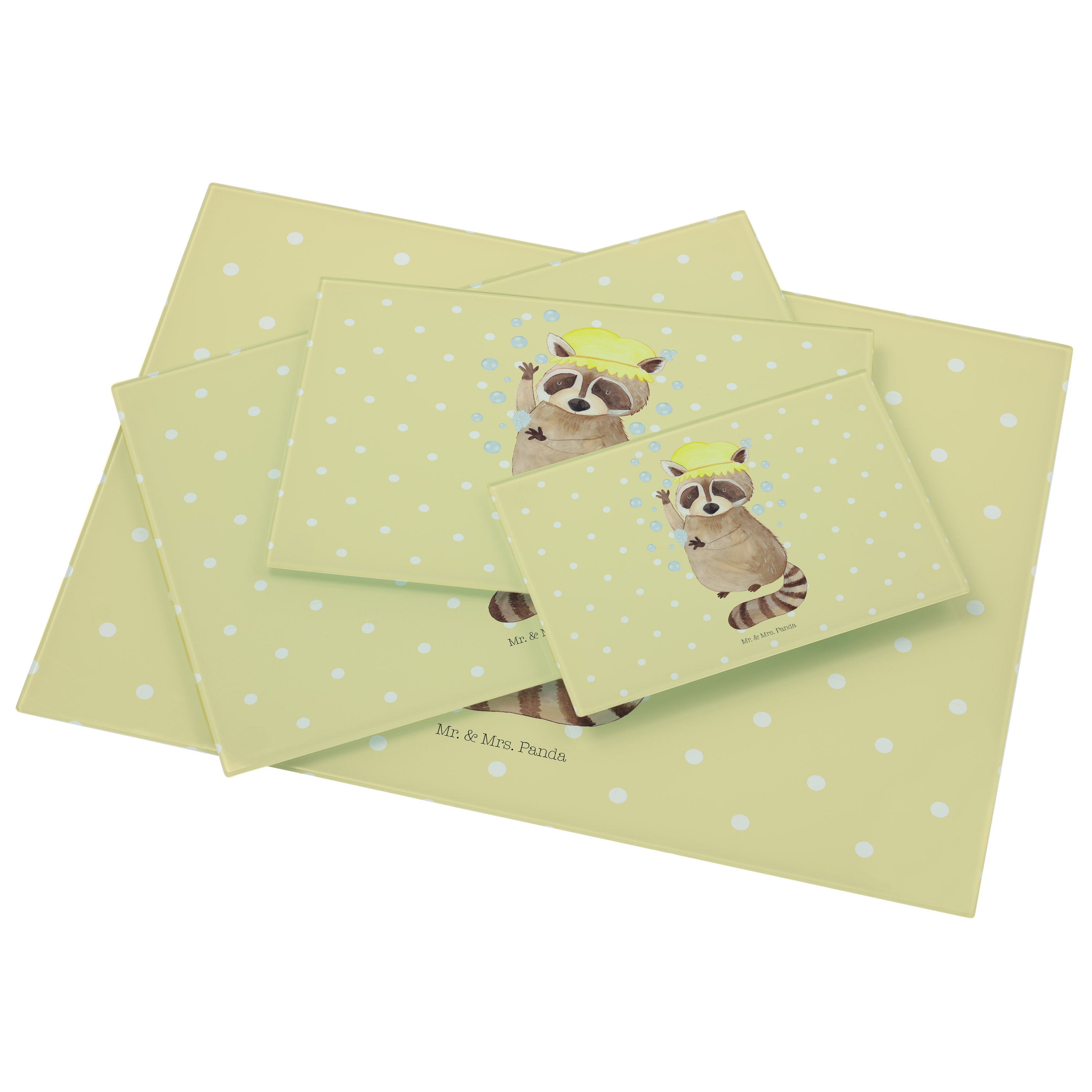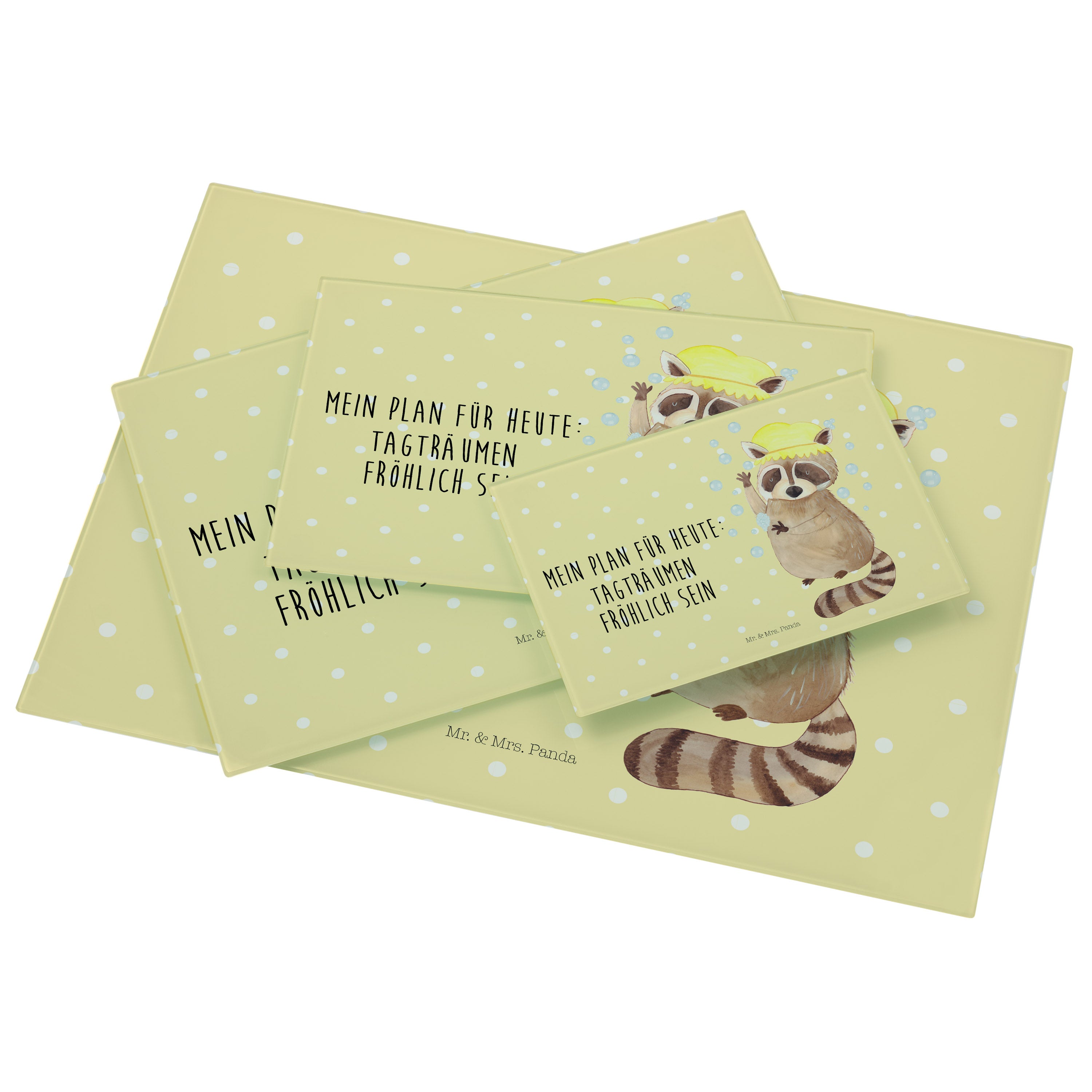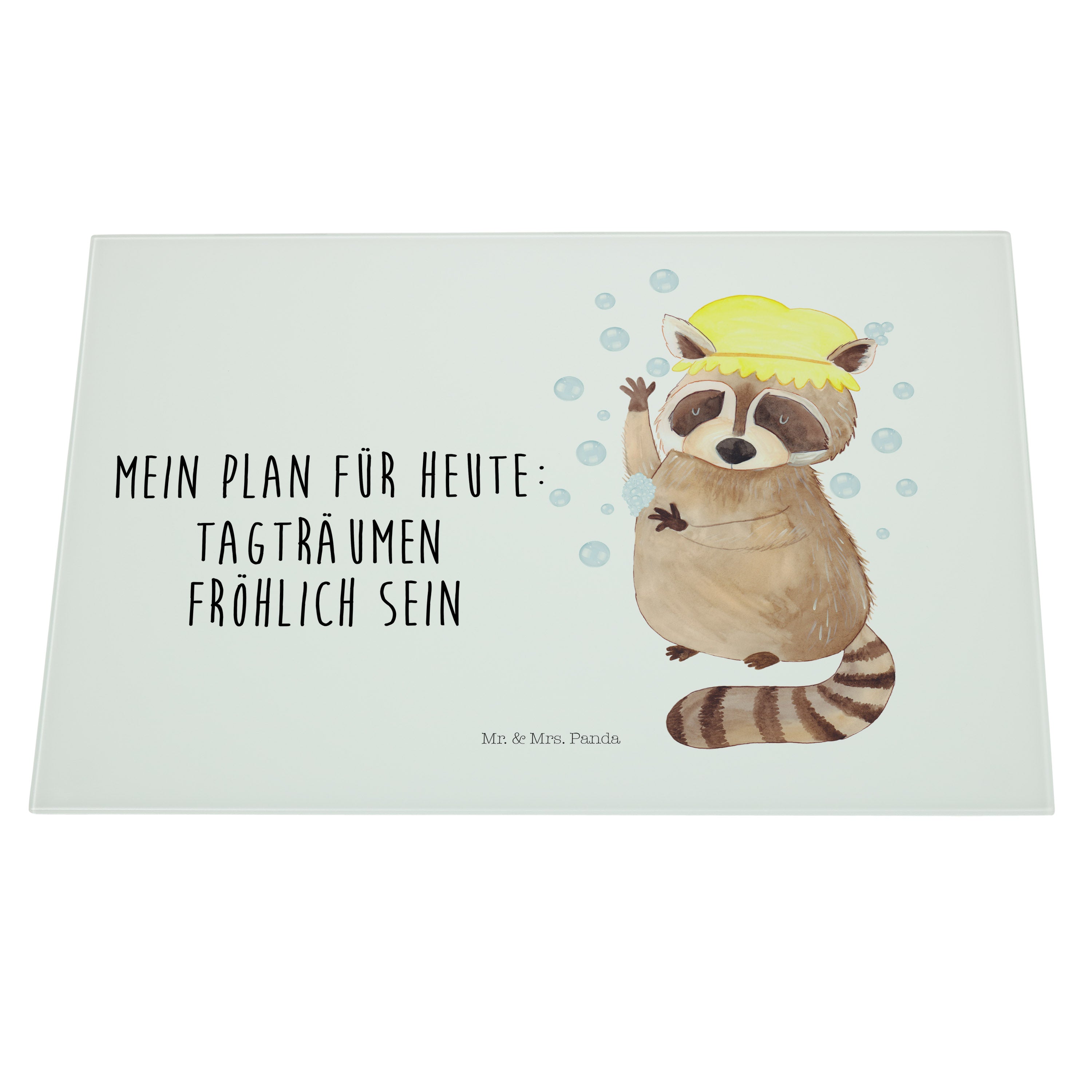 XL Glas Schneidbrett Waschbär - mit Spruch - Gelb Pastell
