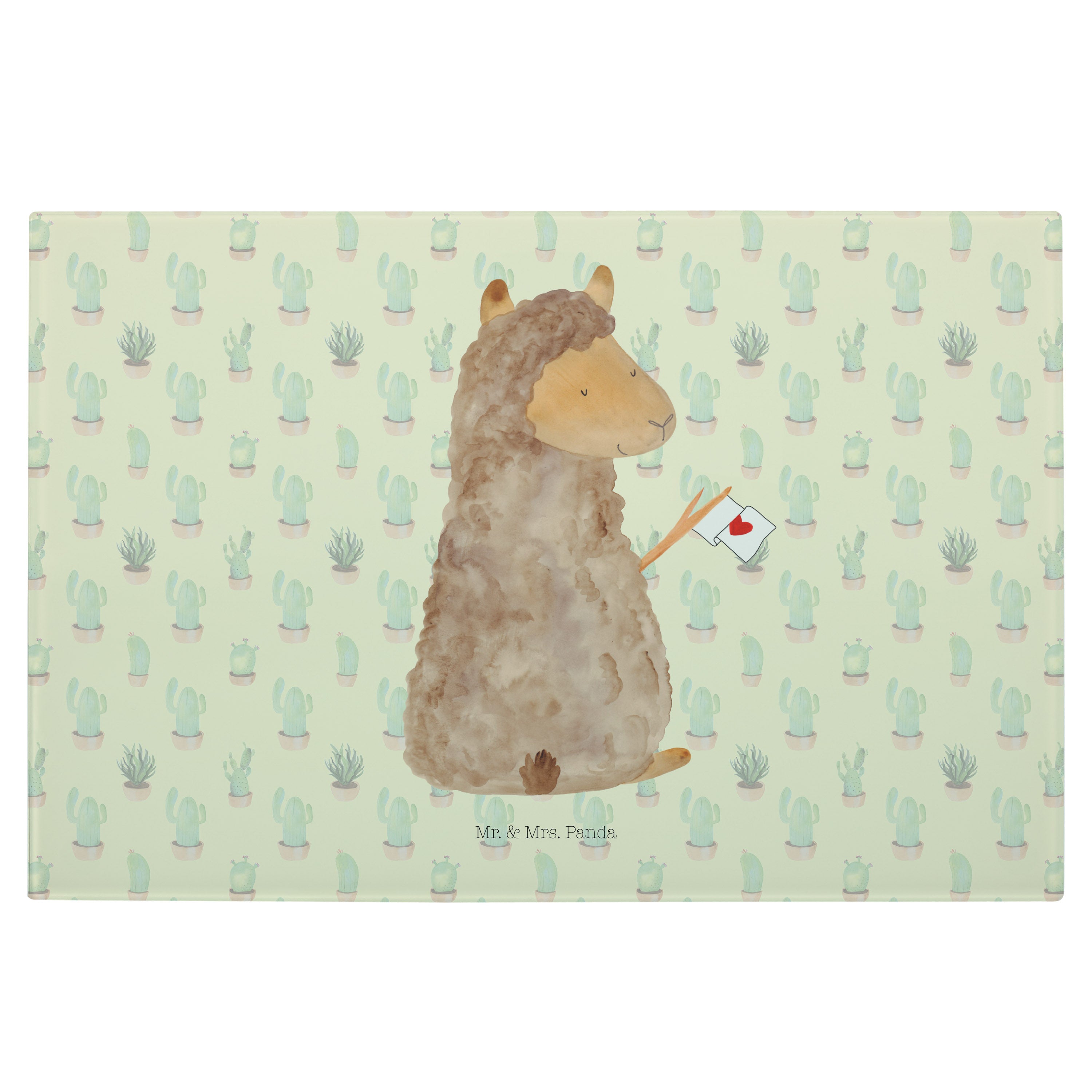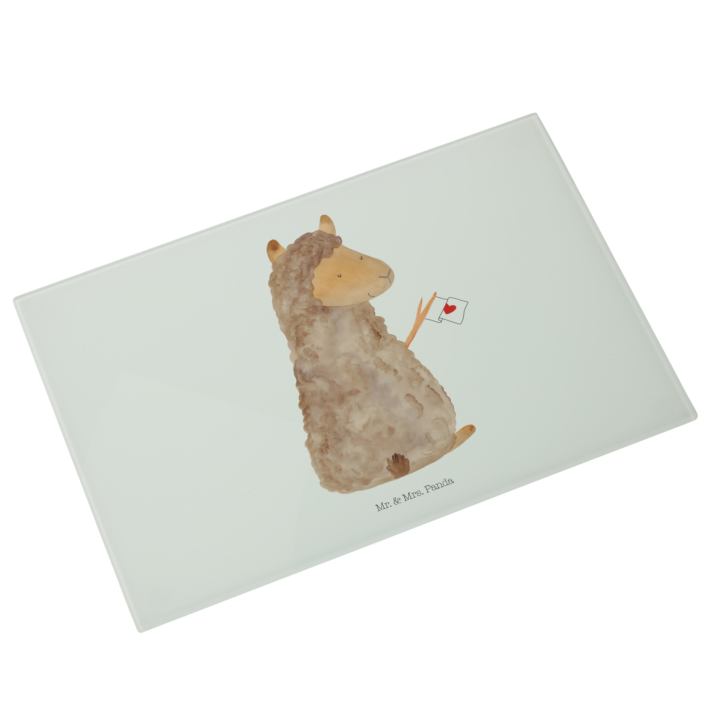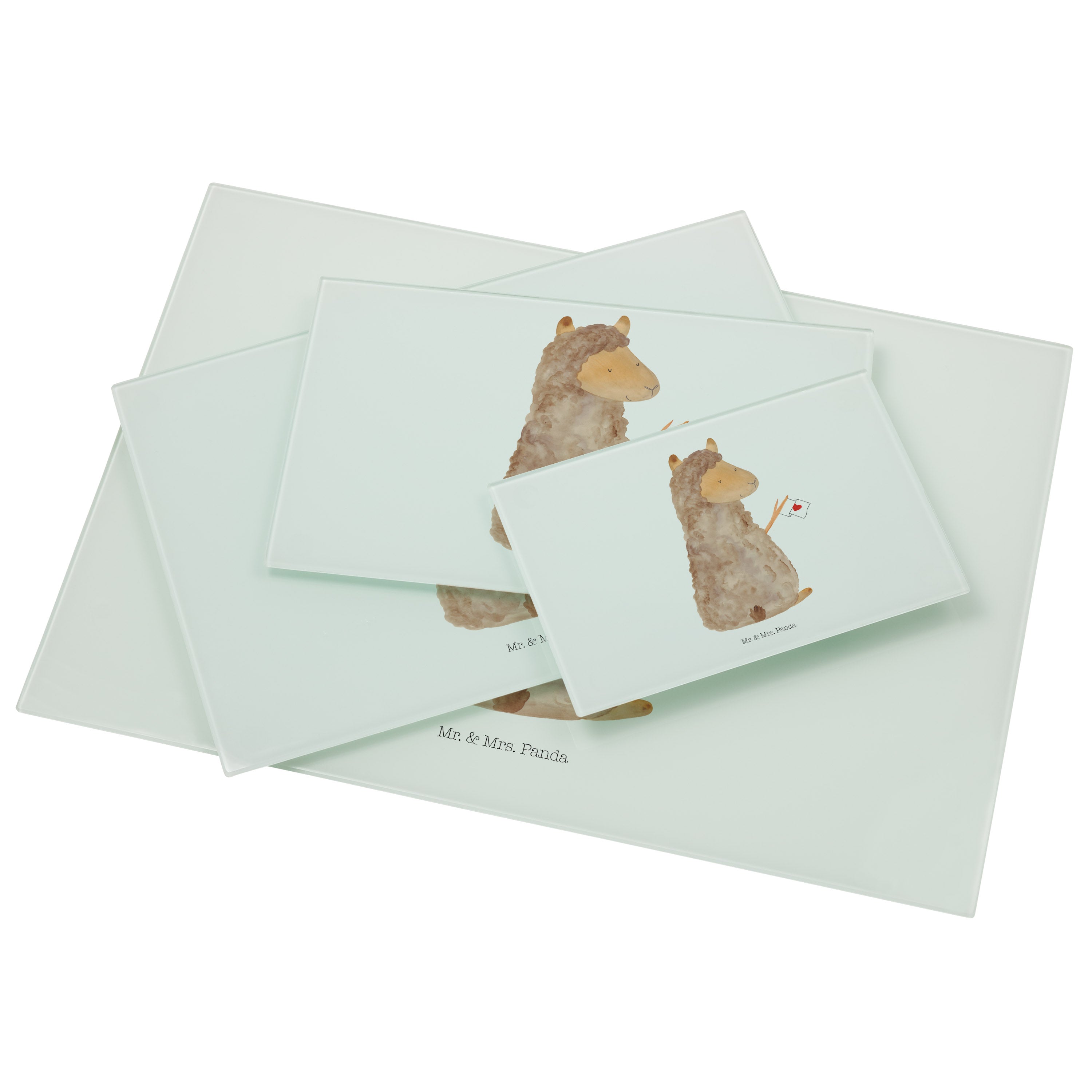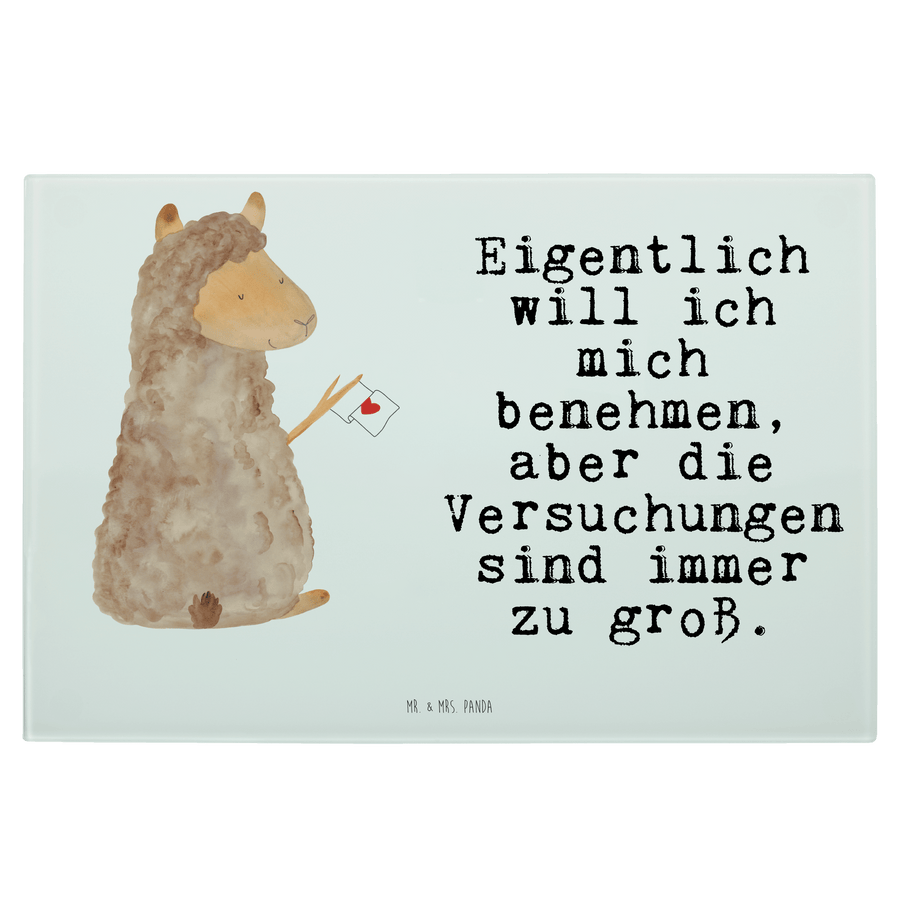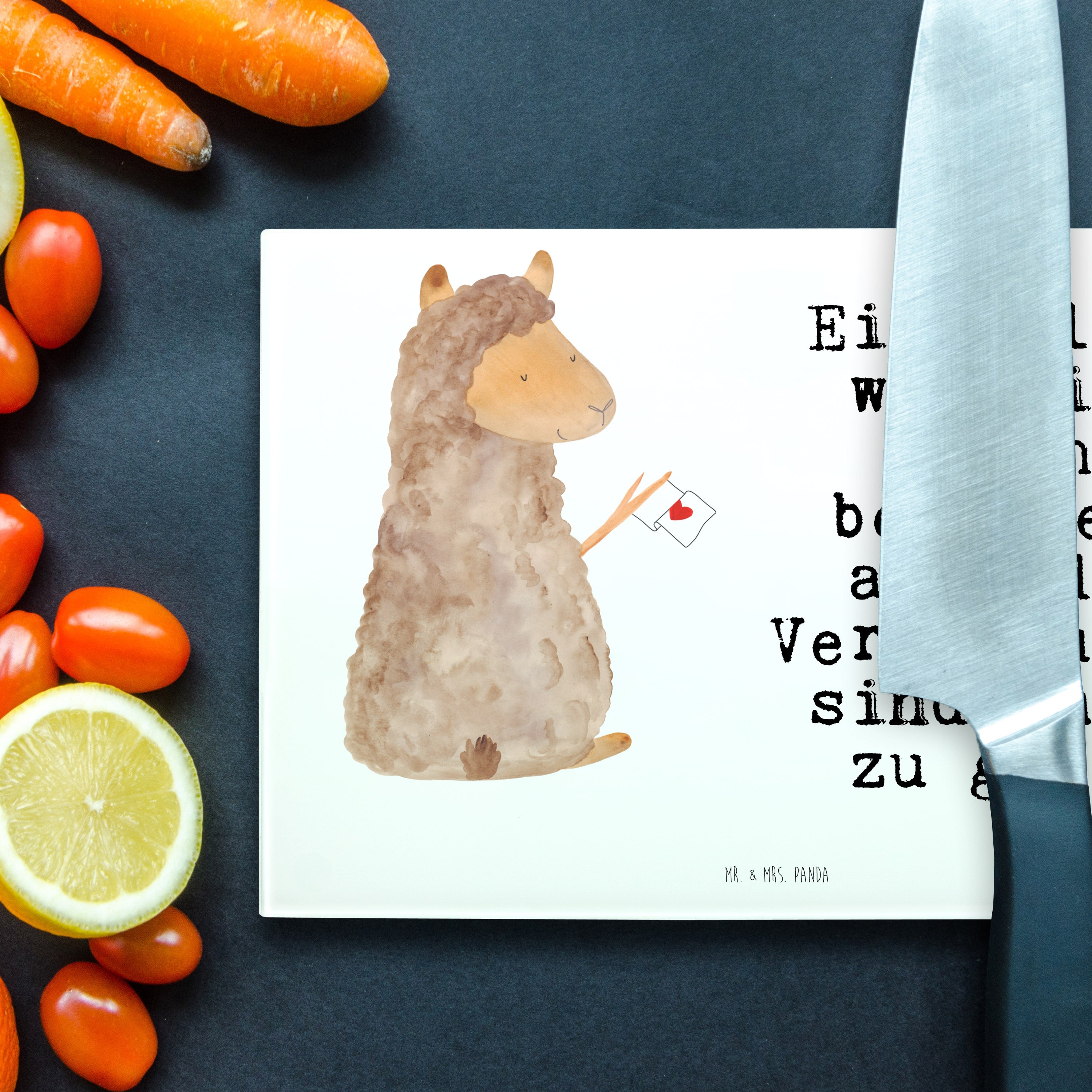Medium Glas Schneidbrett Alpaka Fahne - mit Spruch - Weiß