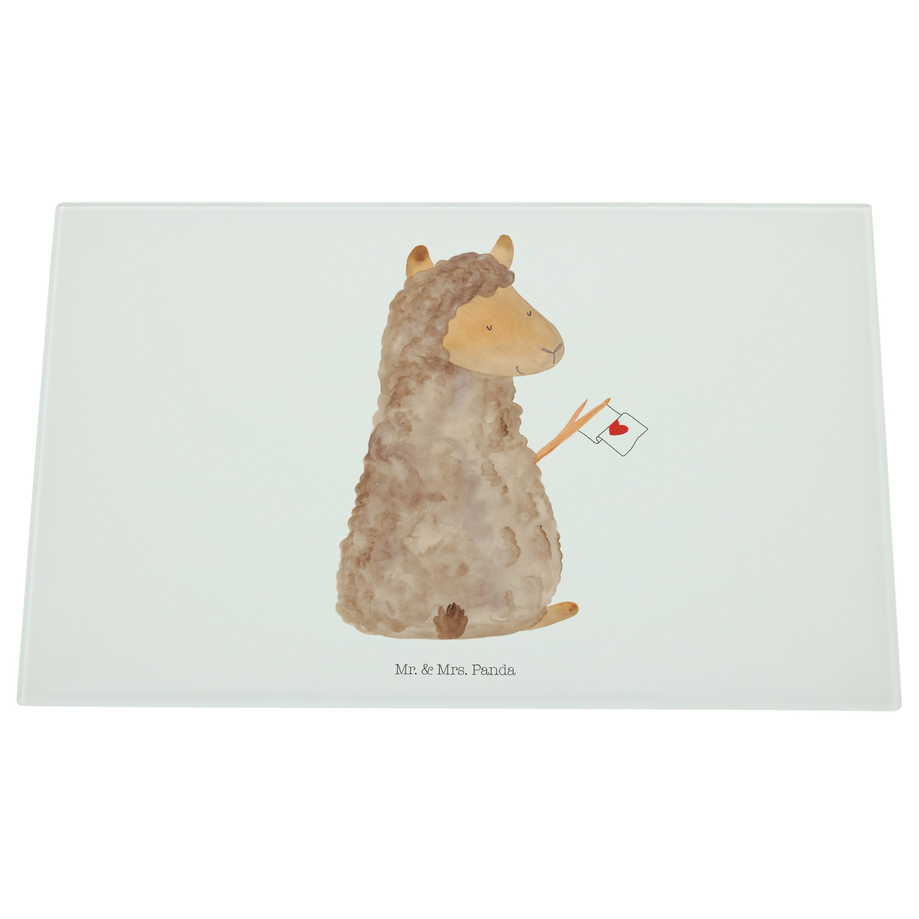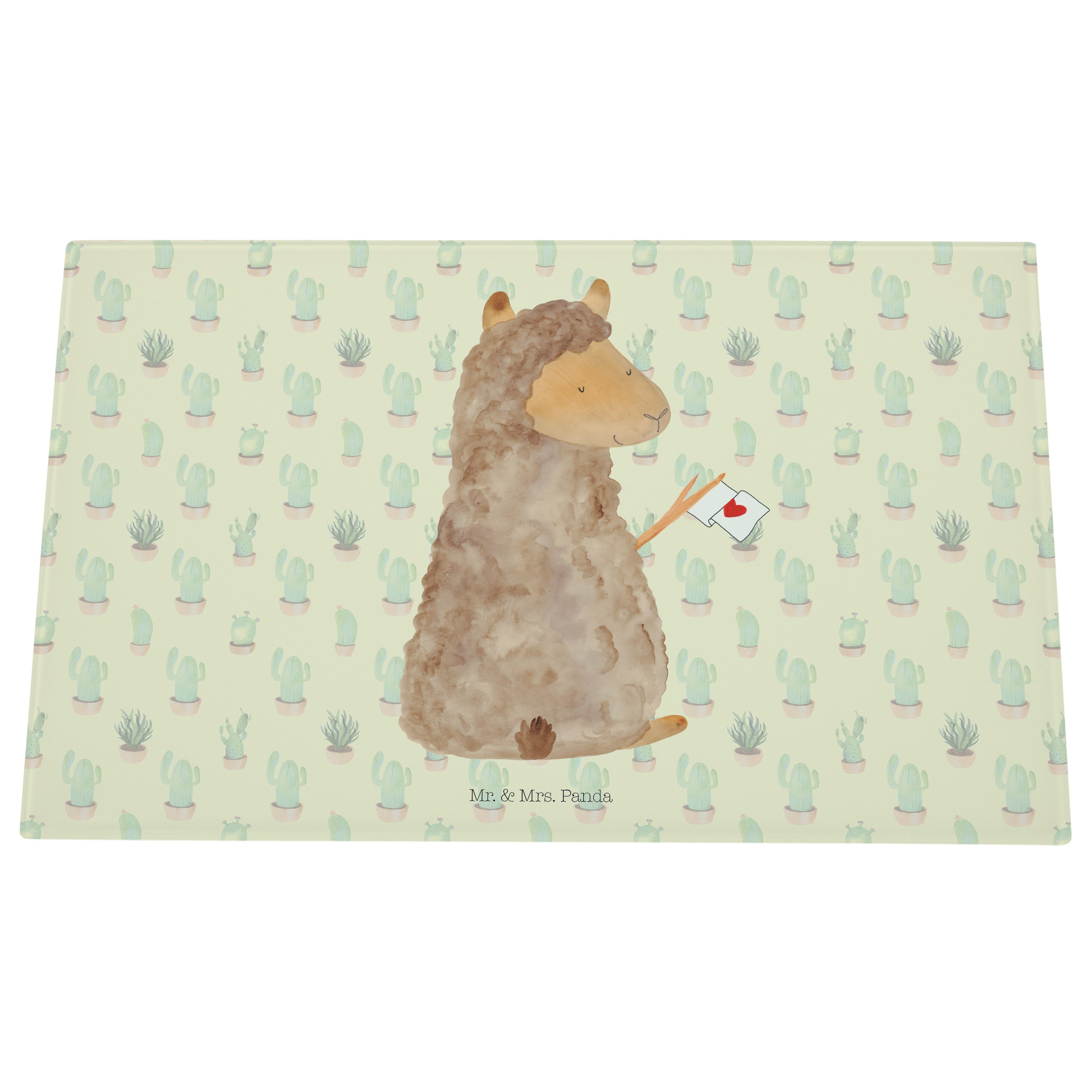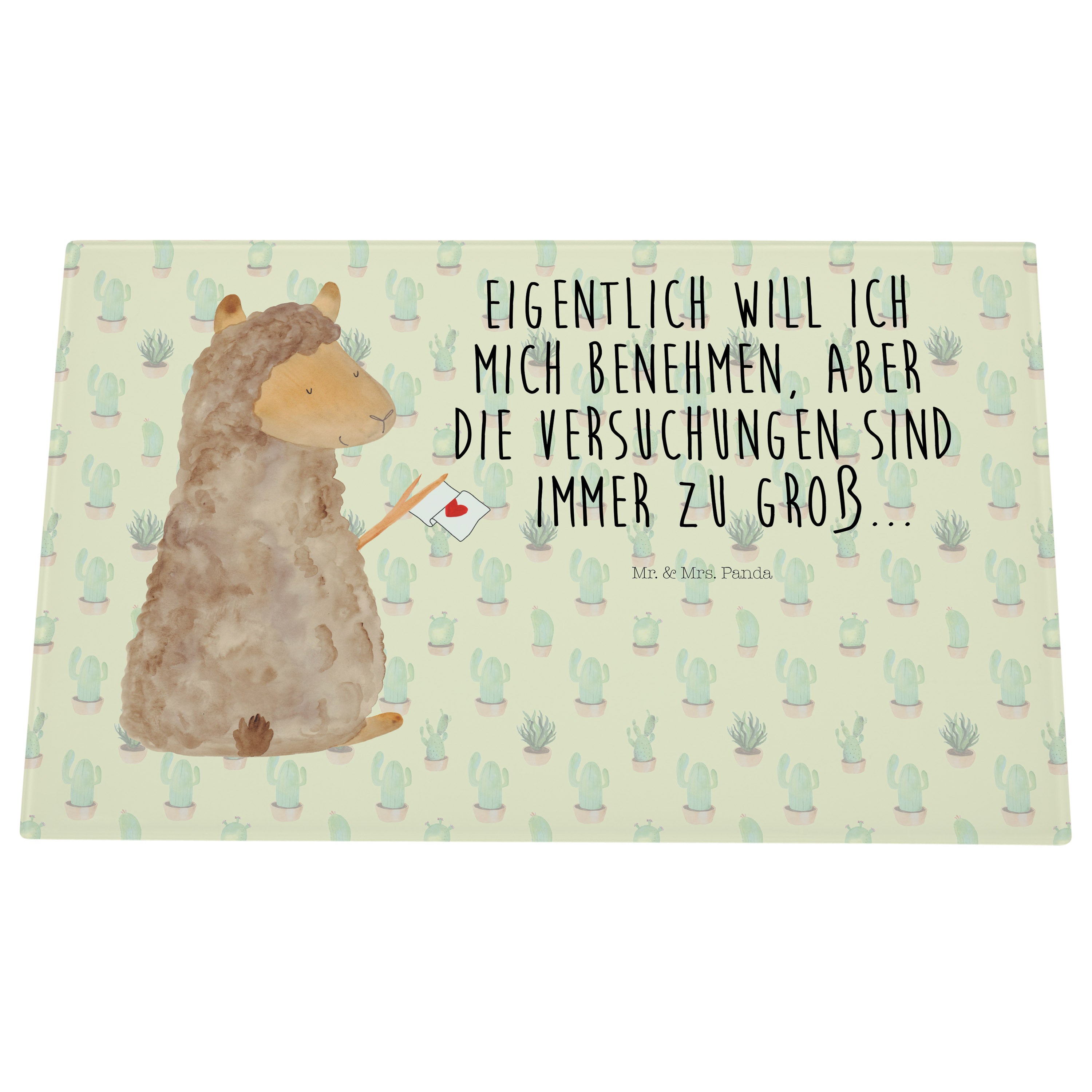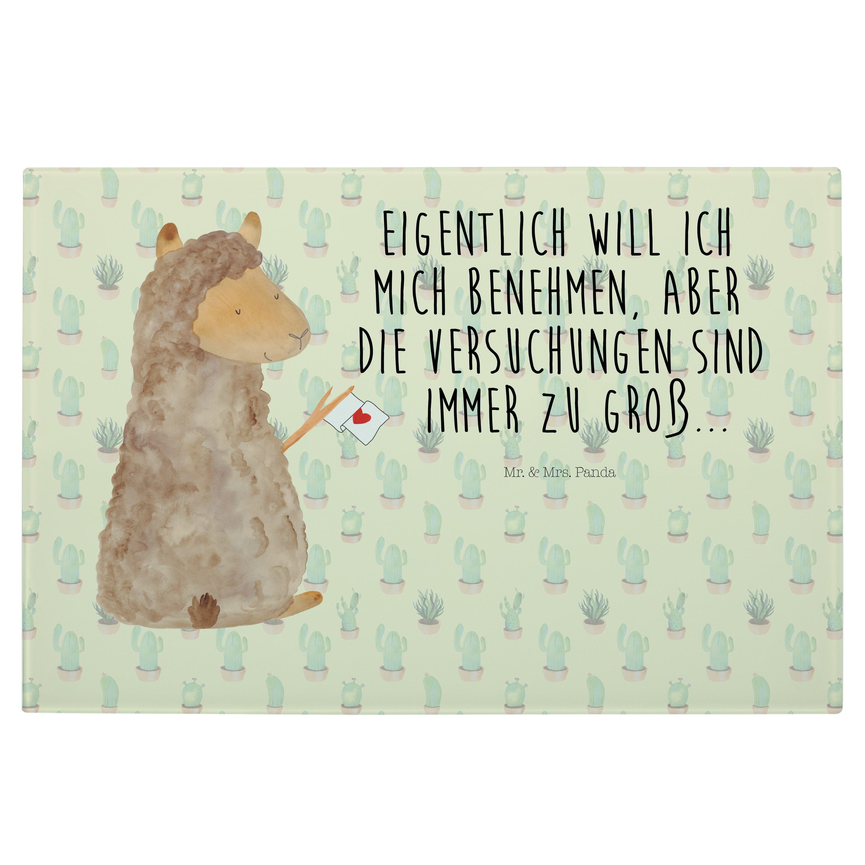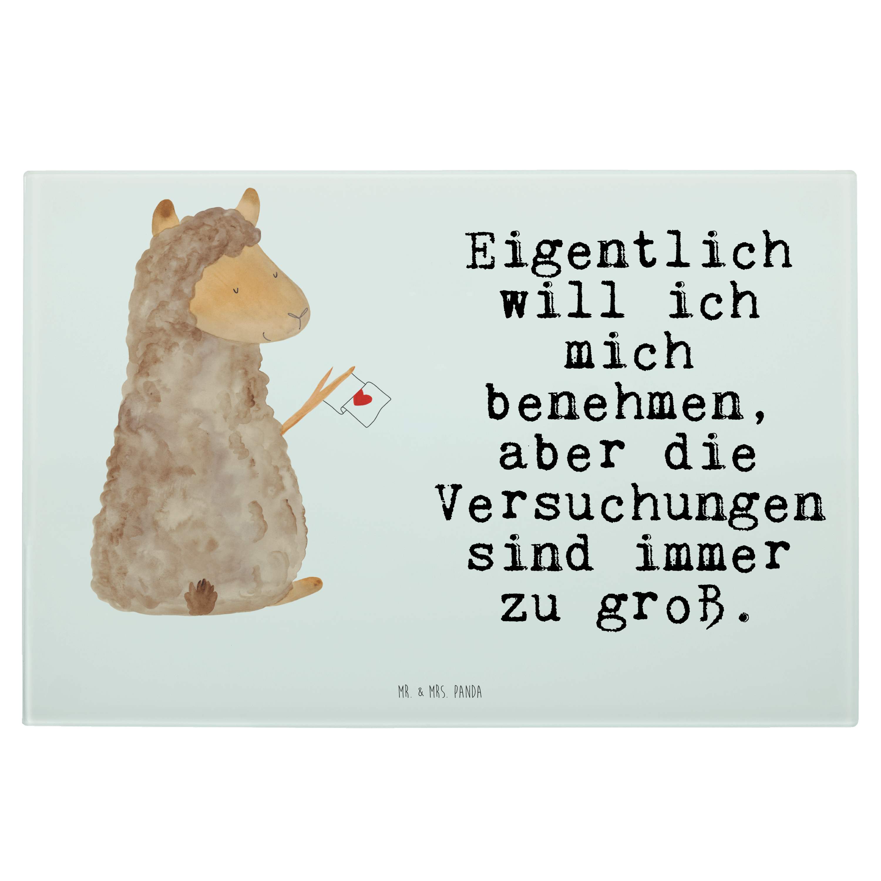 Medium Glas Schneidbrett Alpaka Fahne - mit Spruch - Weiß