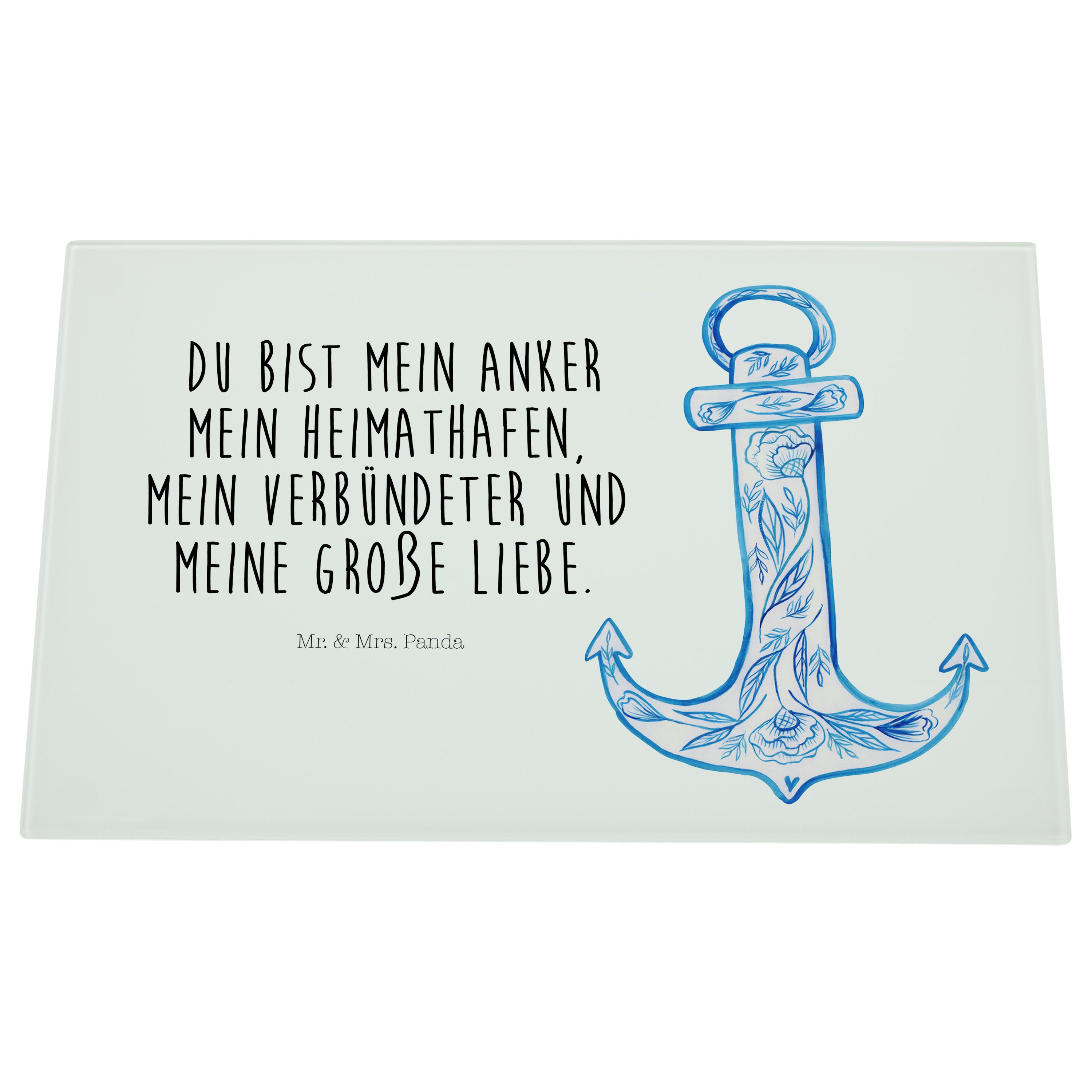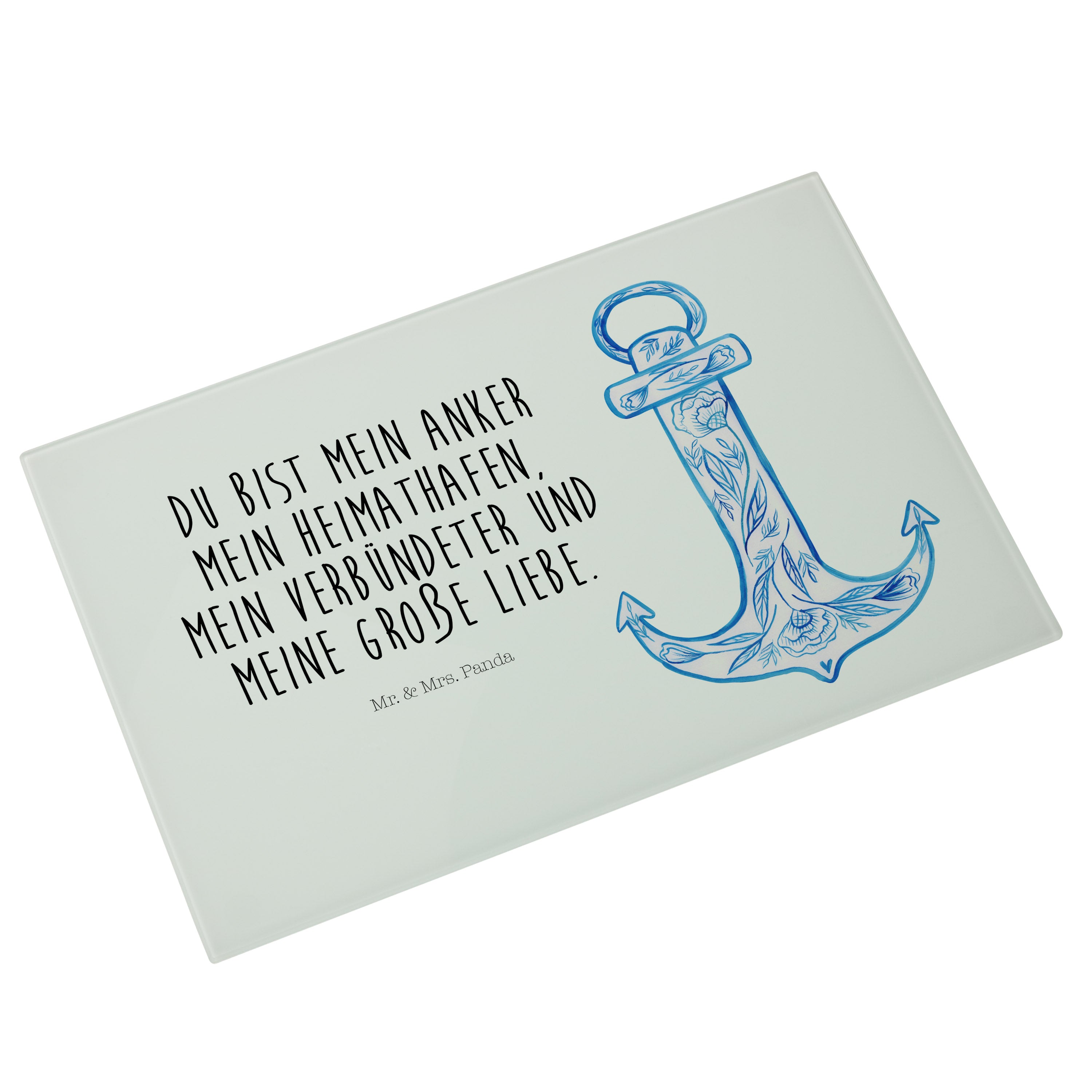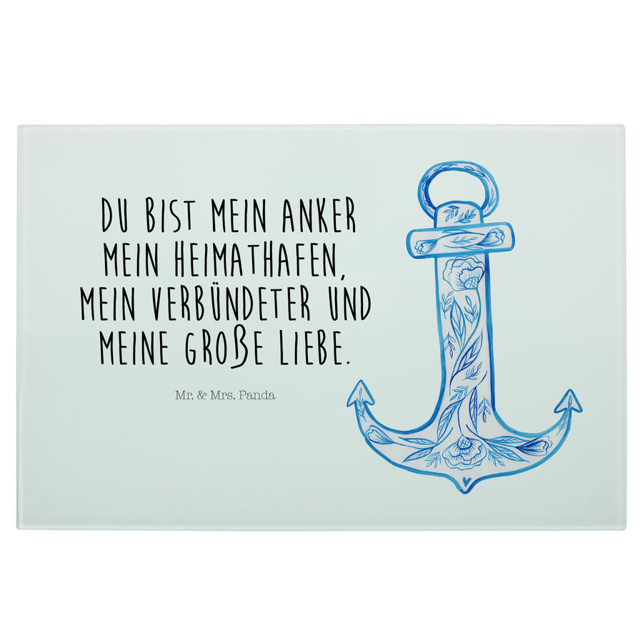 Medium Glas Schneidbrett Anker Blau - mit Spruch - Weiß