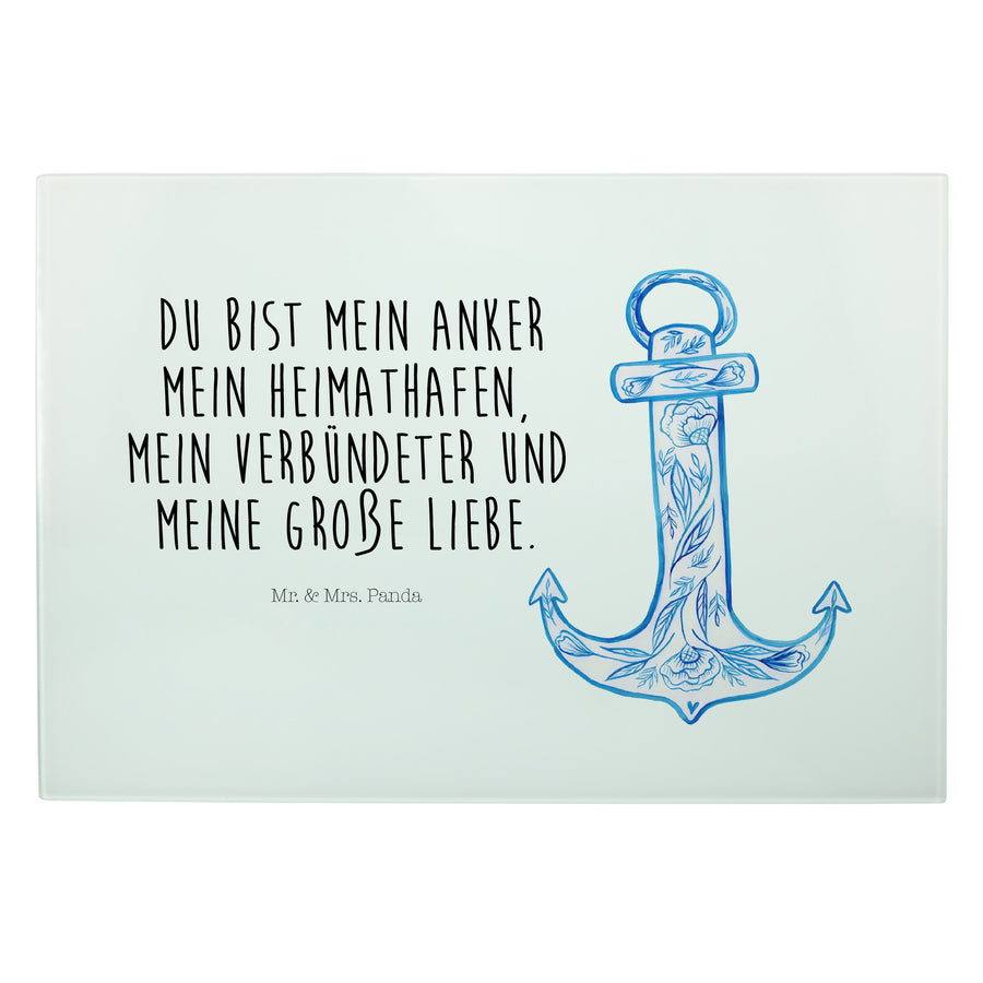 XL Glas Schneidbrett Anker Blau - mit Spruch - Weiß