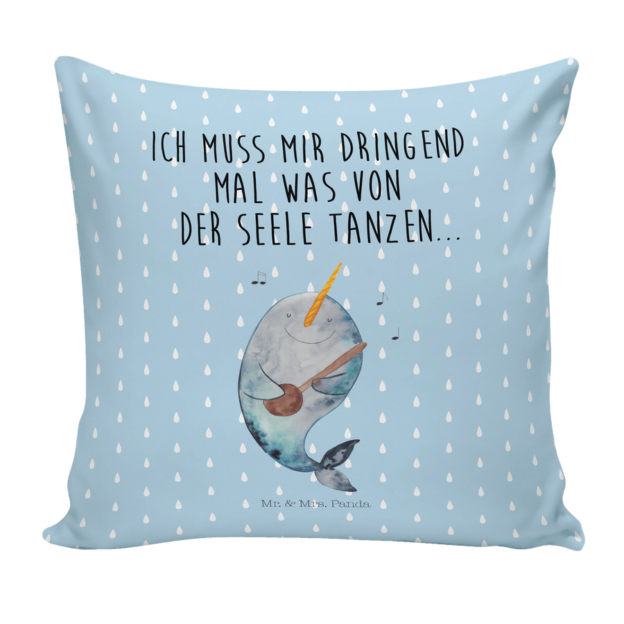 40x40 Kissen Narwal Gitarre - mit Spruch - Blau Pastell
