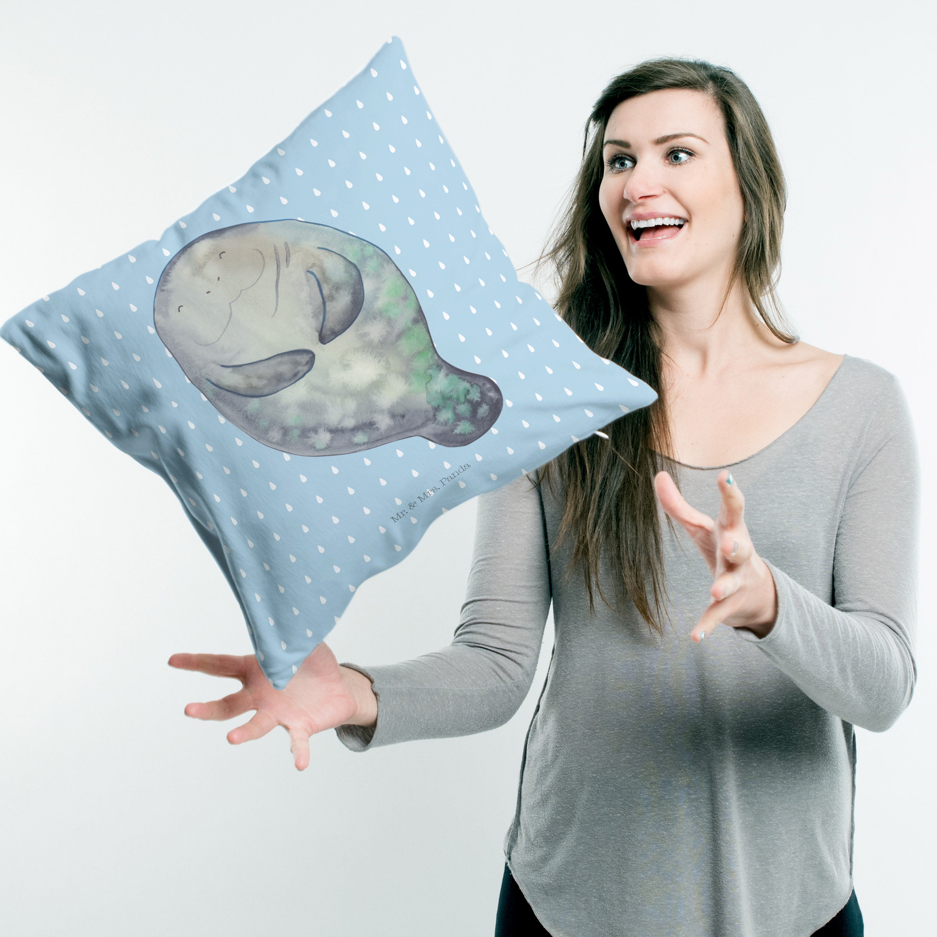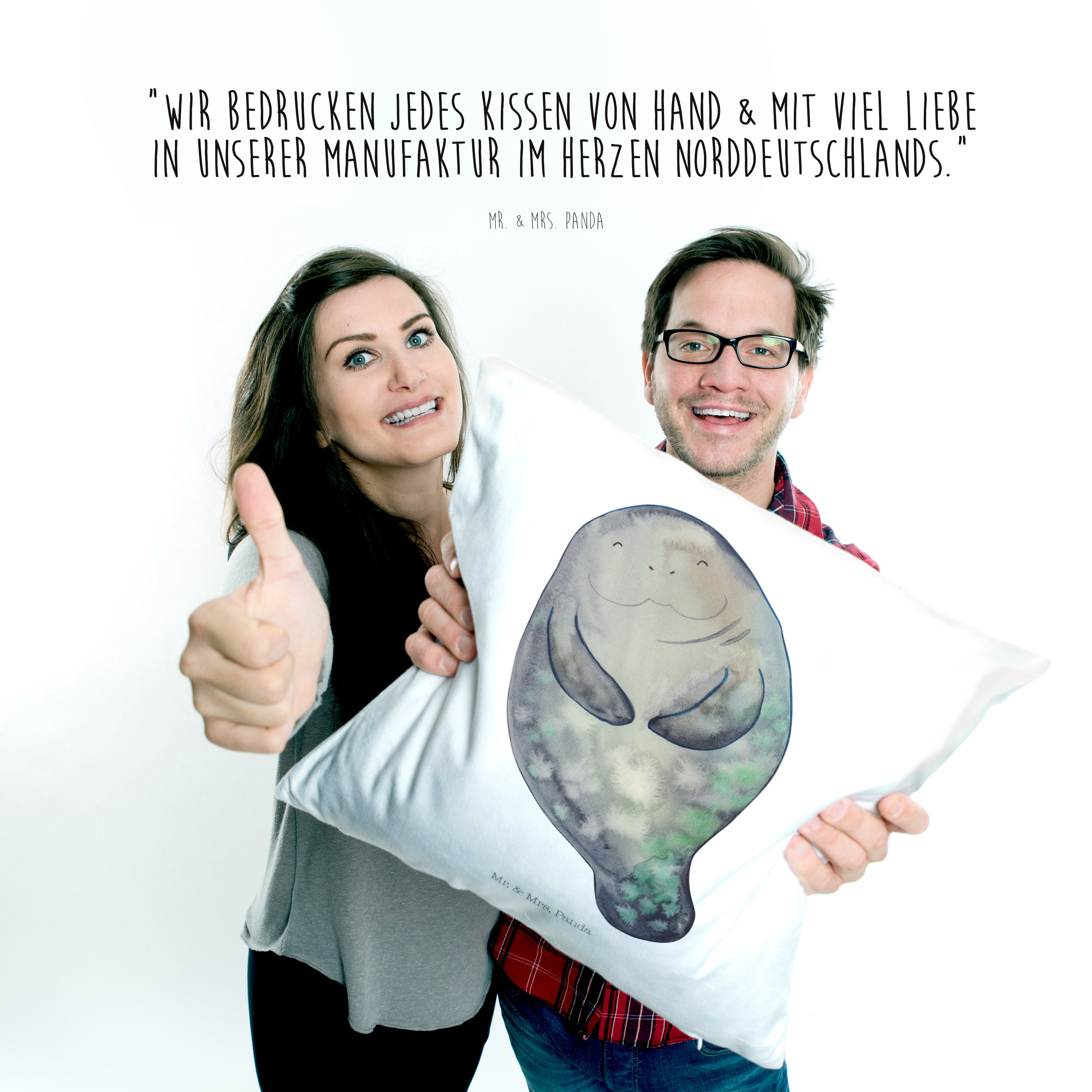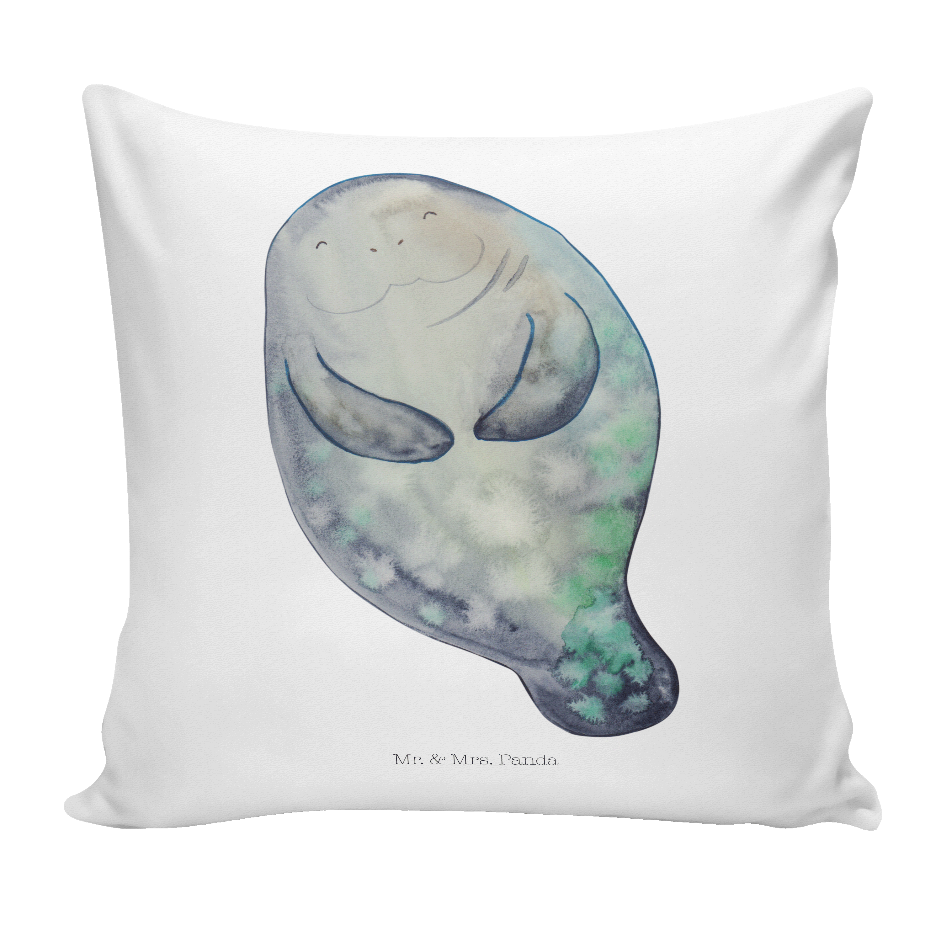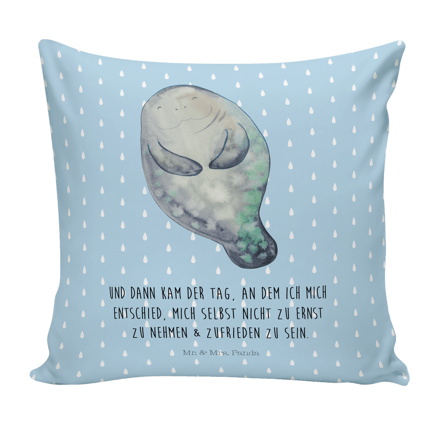 40x40 Kissen Seekuh happy Kissenhülle, Kopfkissen, Sofakissen, Dekokissen, Motivkissen, Meerestiere, Meer, Urlaub, Seekuh, Seekühe, Selbstliebe, Respekt, Neuanfang, Neustart, Achtsamkeit, Zufrieden, Liebeskummer, Freundin