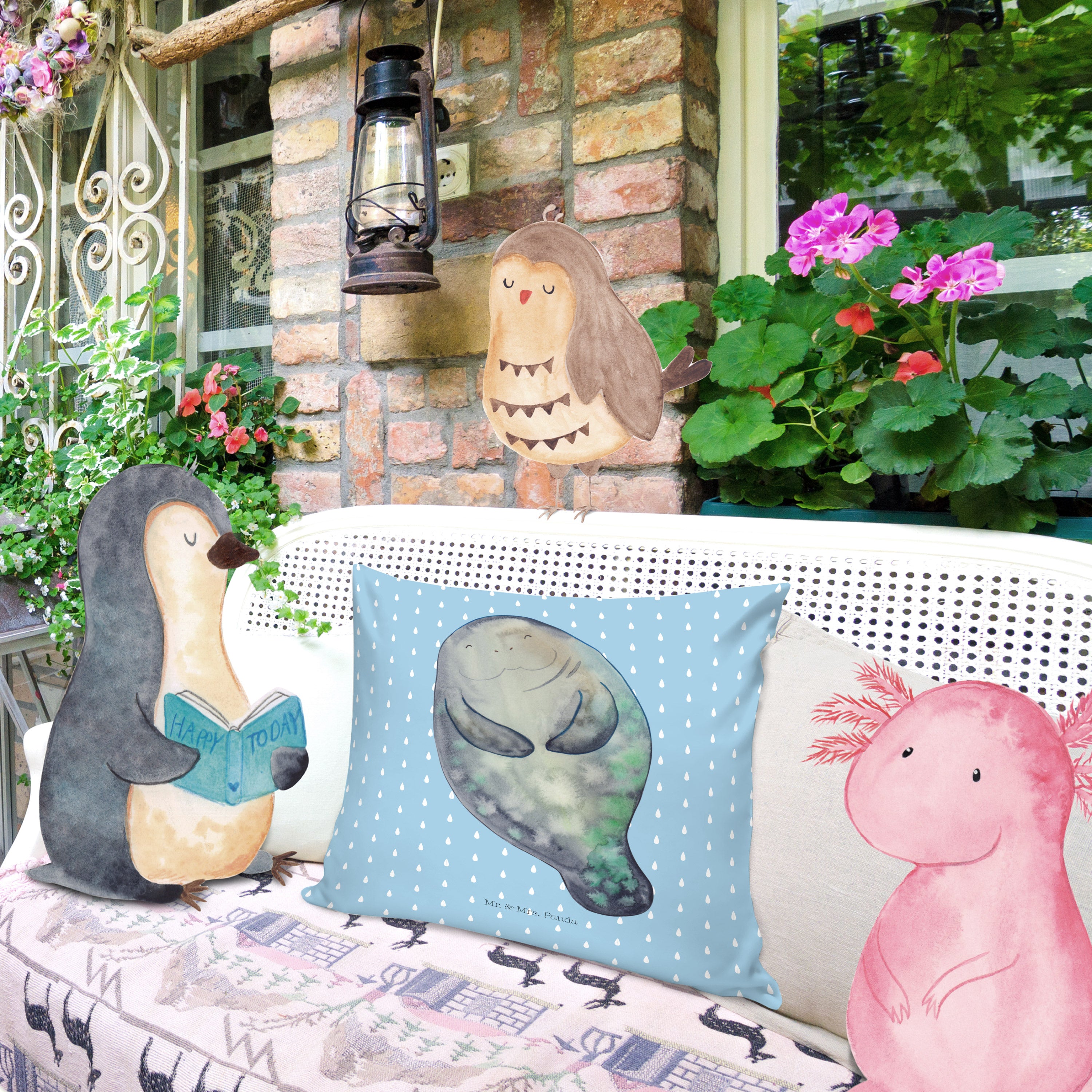 40x40 Kissen Seekuh happy - mit Spruch - Blau Pastell