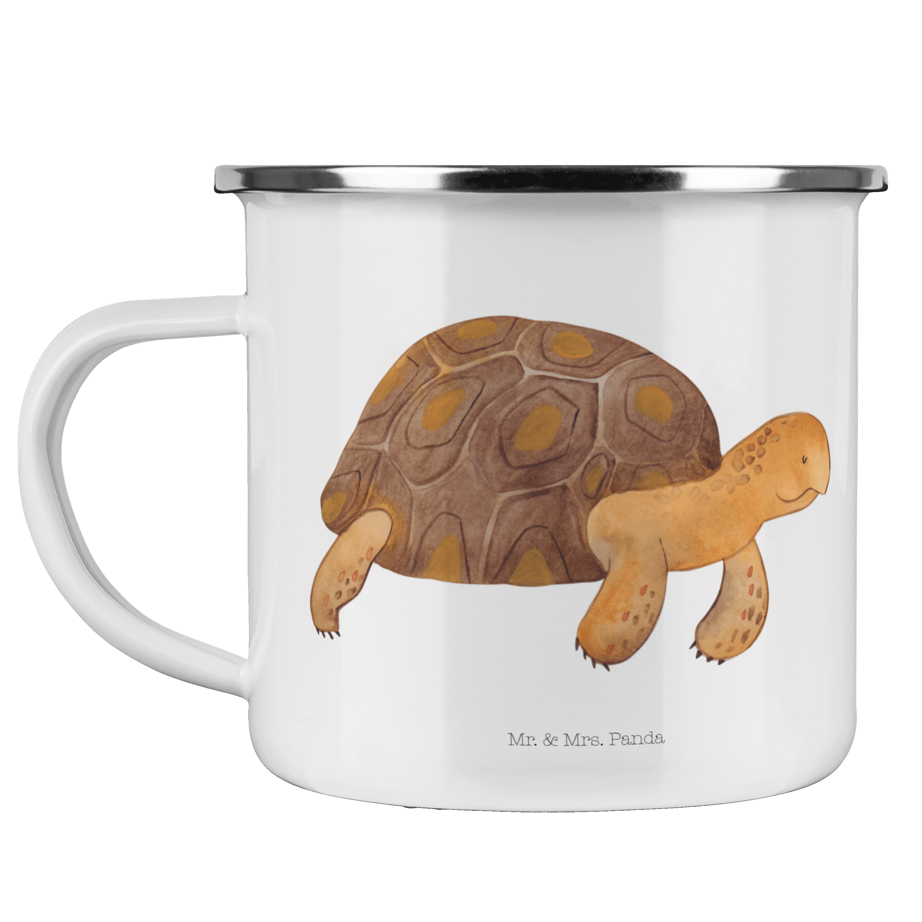 Camping Emaille Tasse Schildkröte marschiert - mit Spruch - Weiß