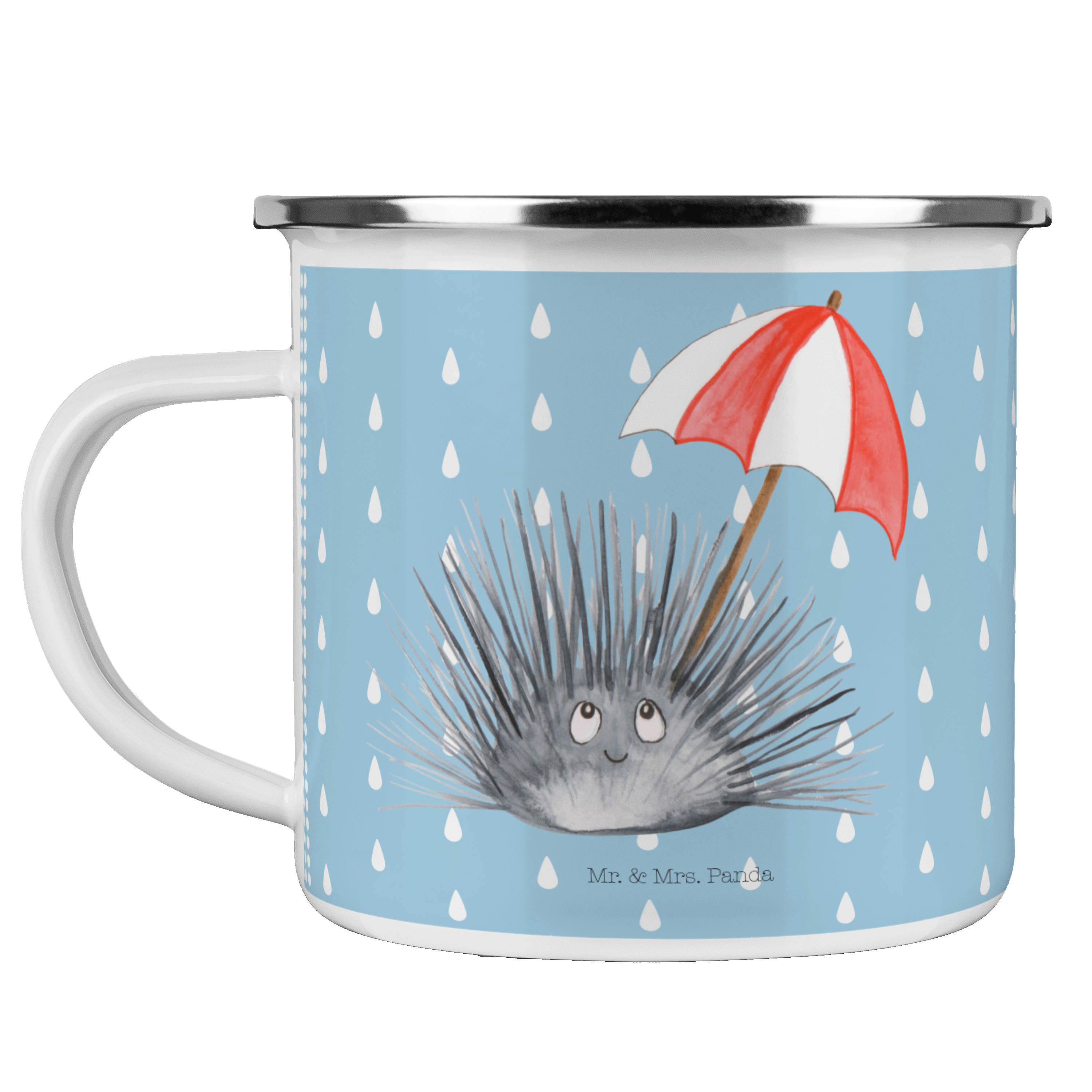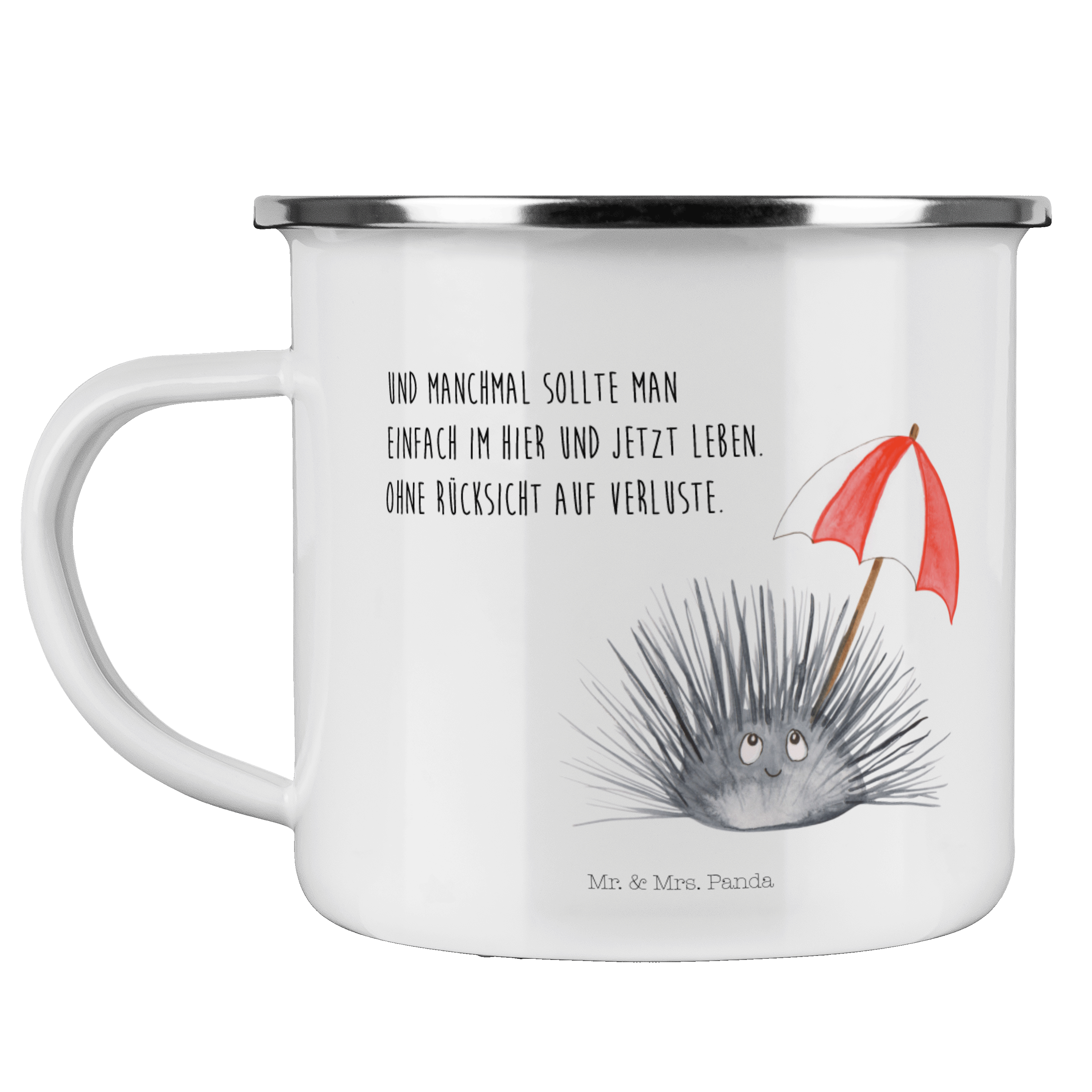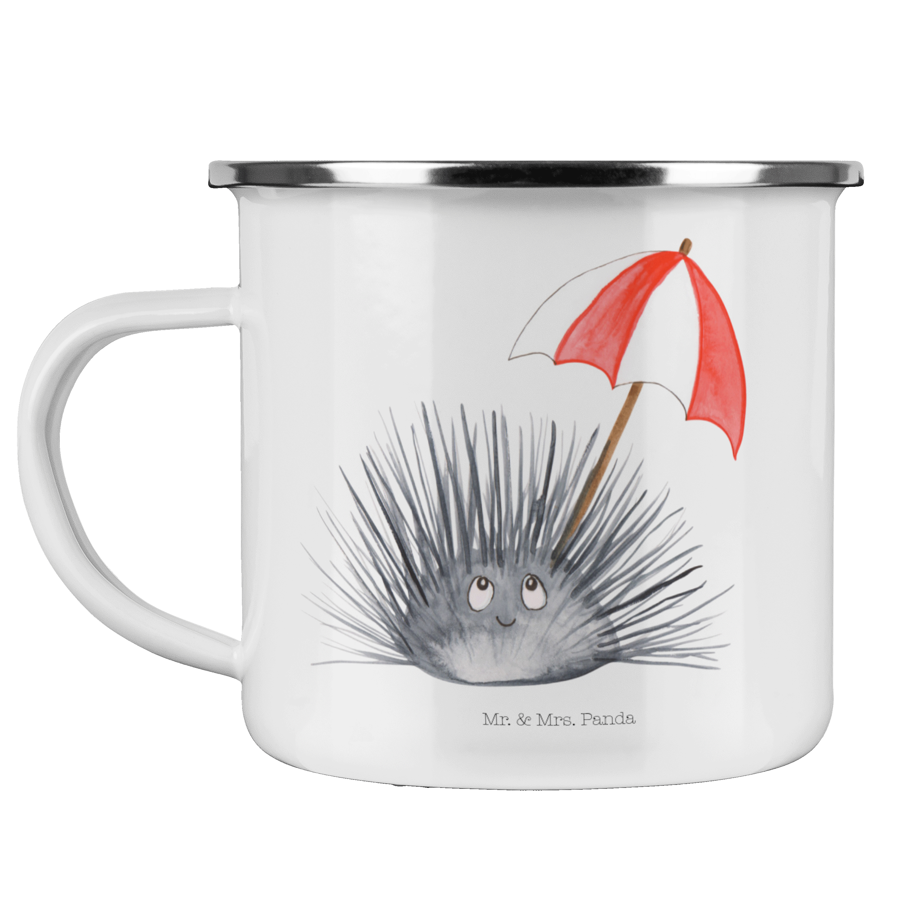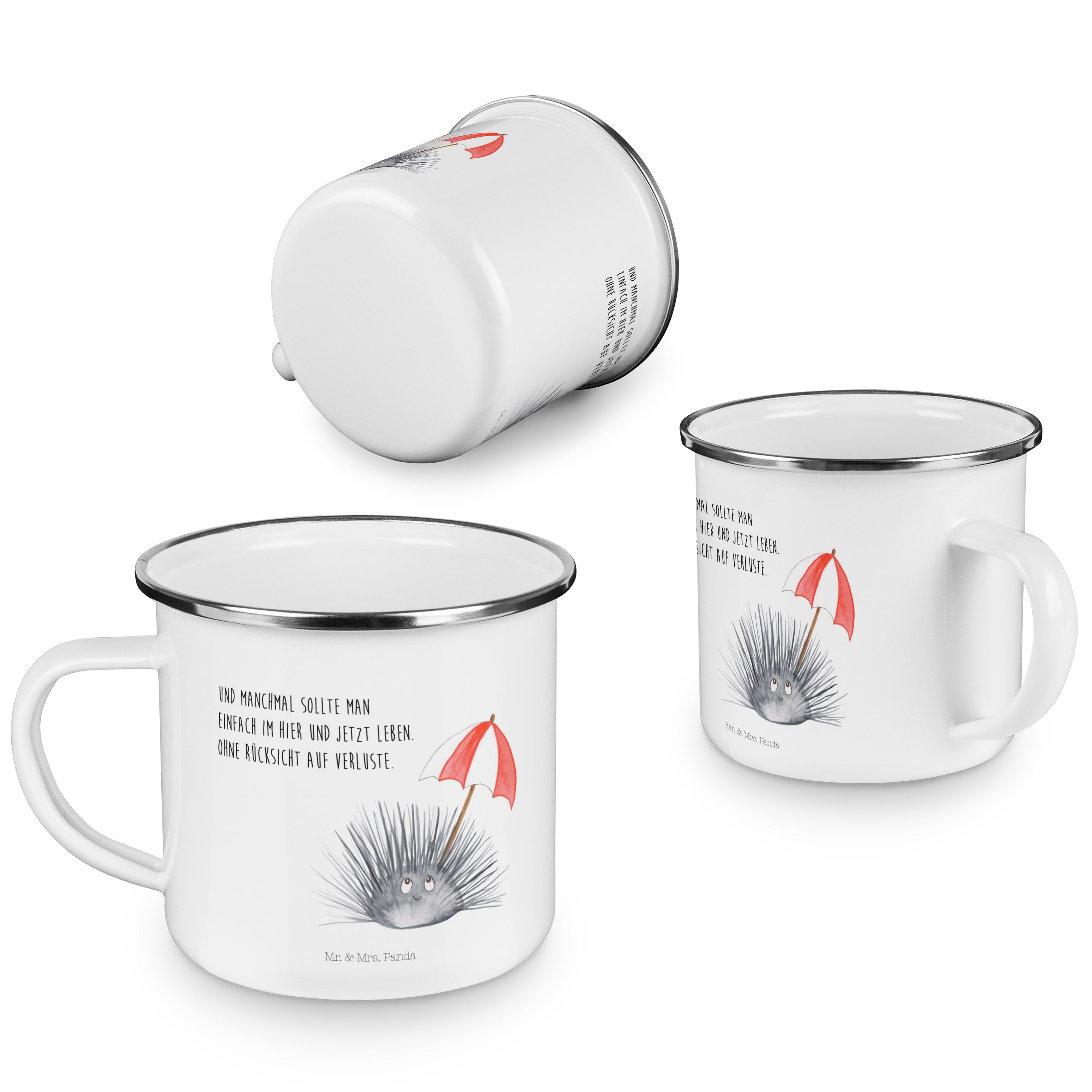 Camping Emaille Tasse Seeigel - mit Spruch - Weiß