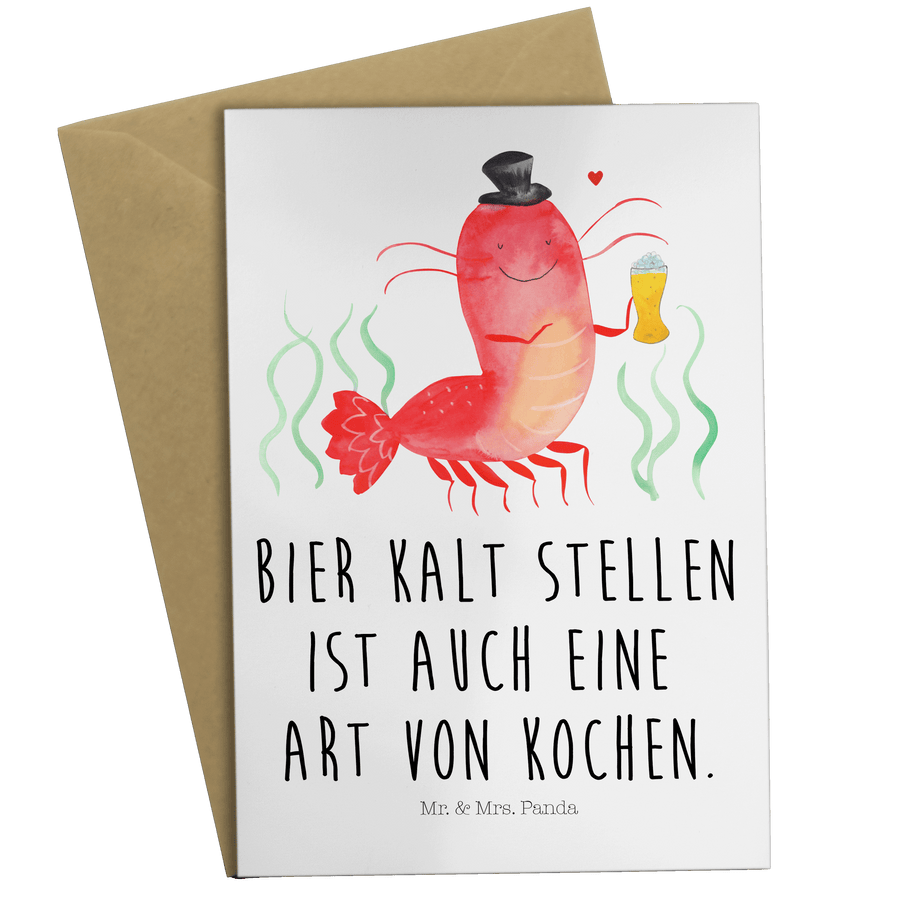 Grußkarte Hummer mit Weizen Klappkarte, Einladungskarte, Glückwunschkarte, Hochzeitskarte, Geburtstagskarte, Karte, Meerestiere, Meer, Urlaub, Garnele, Garnelen, Bier, Kochen, Männerhaushalt, Junggeselle, Junggesellin, Bierliebhaber, Kneipe, Gasthaus, Wirtschaft