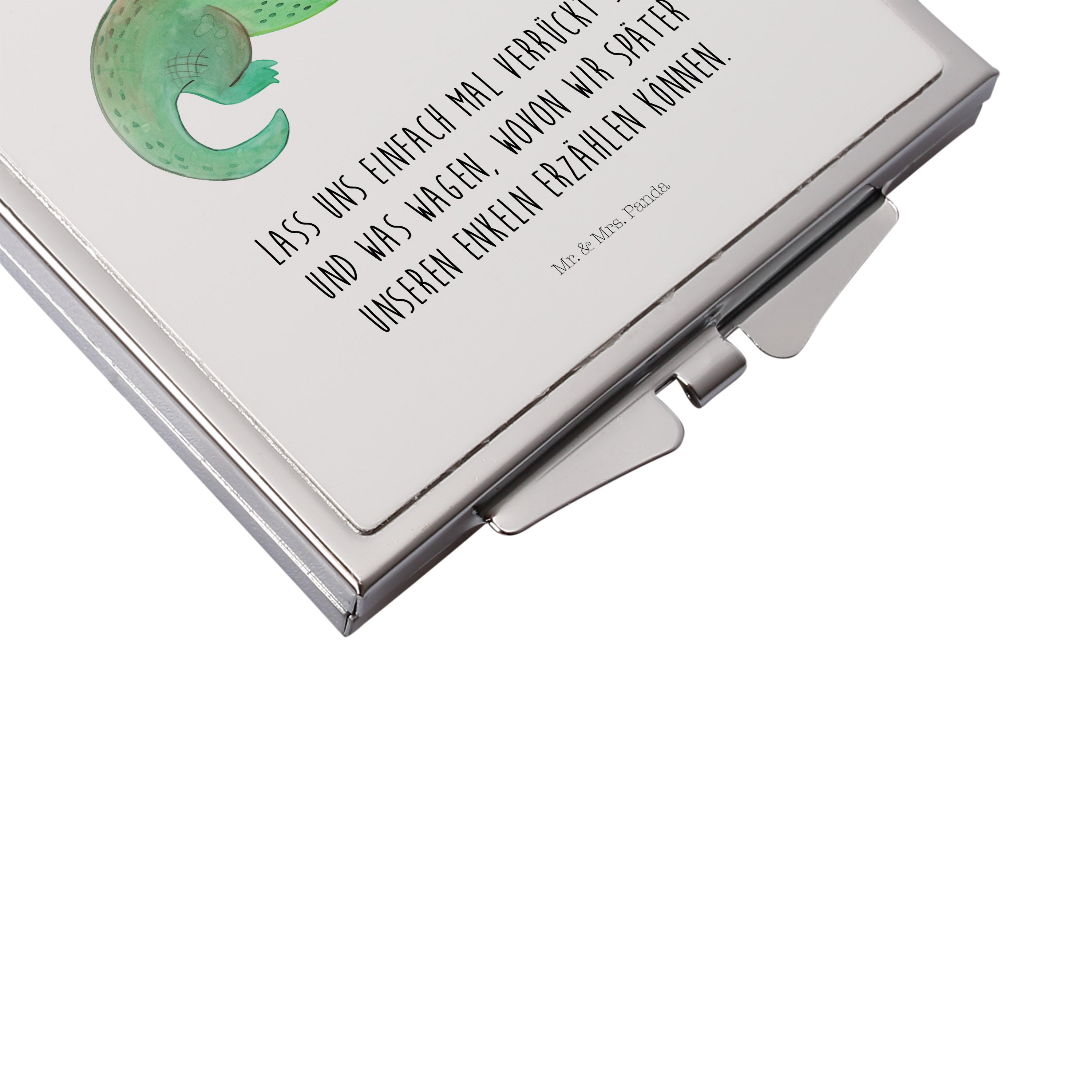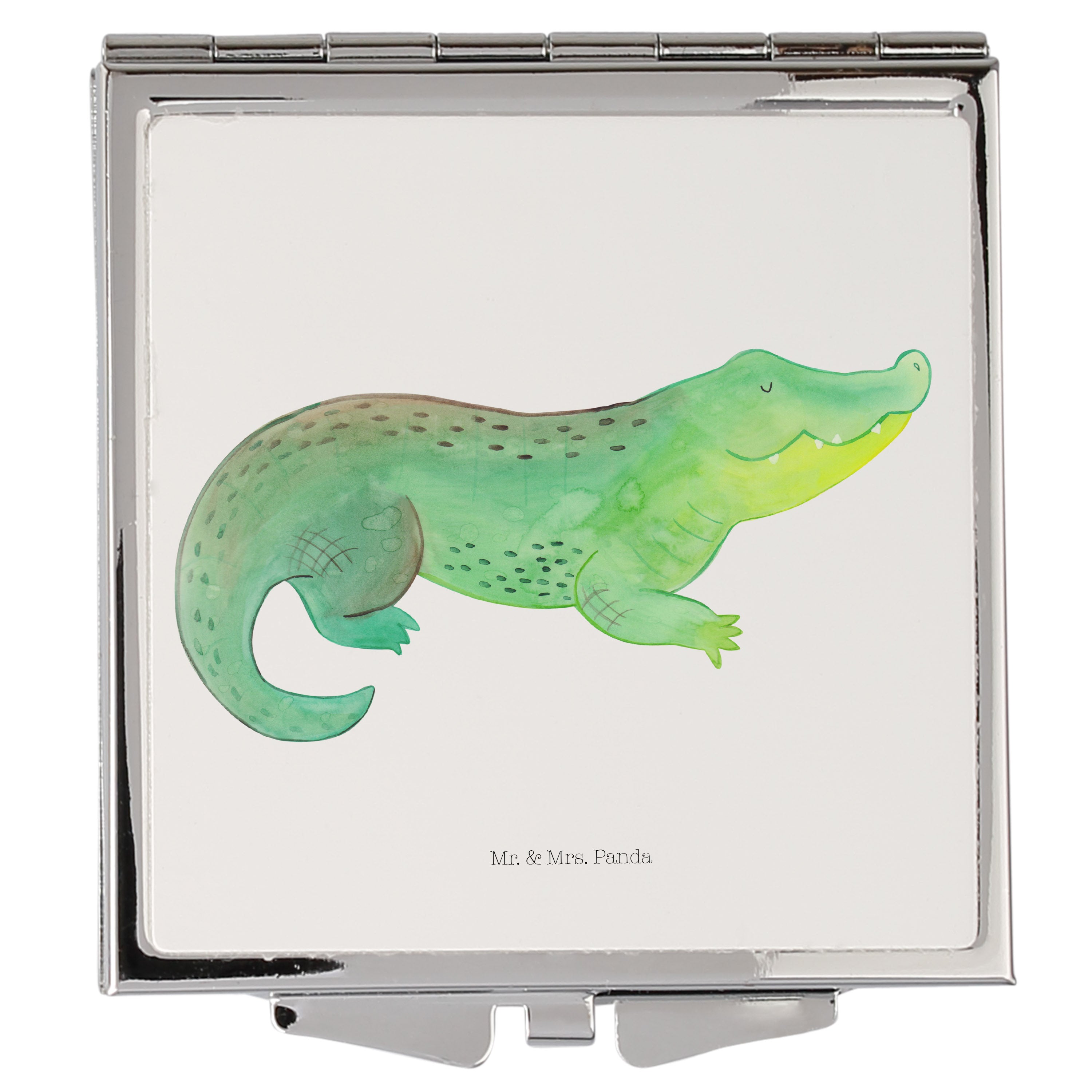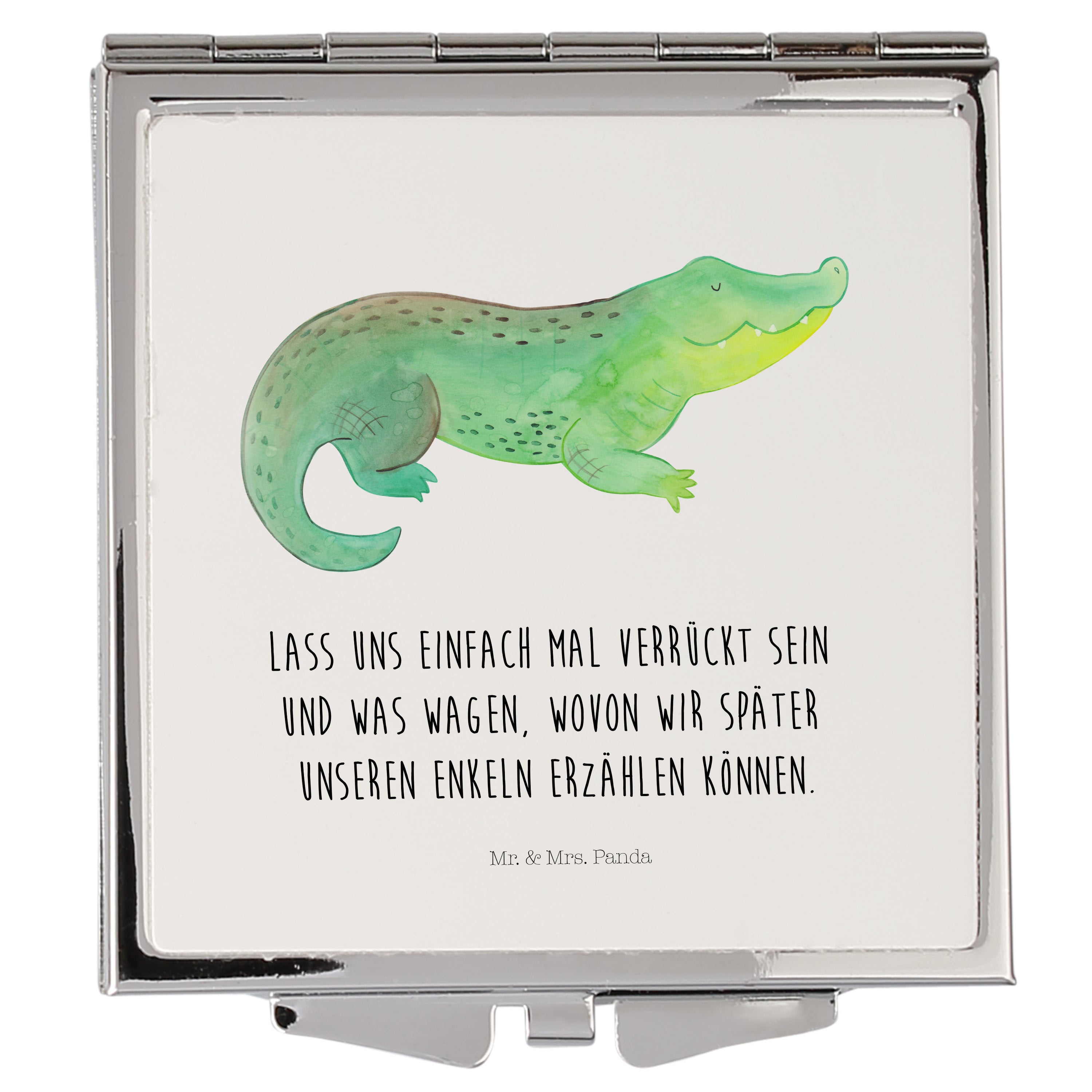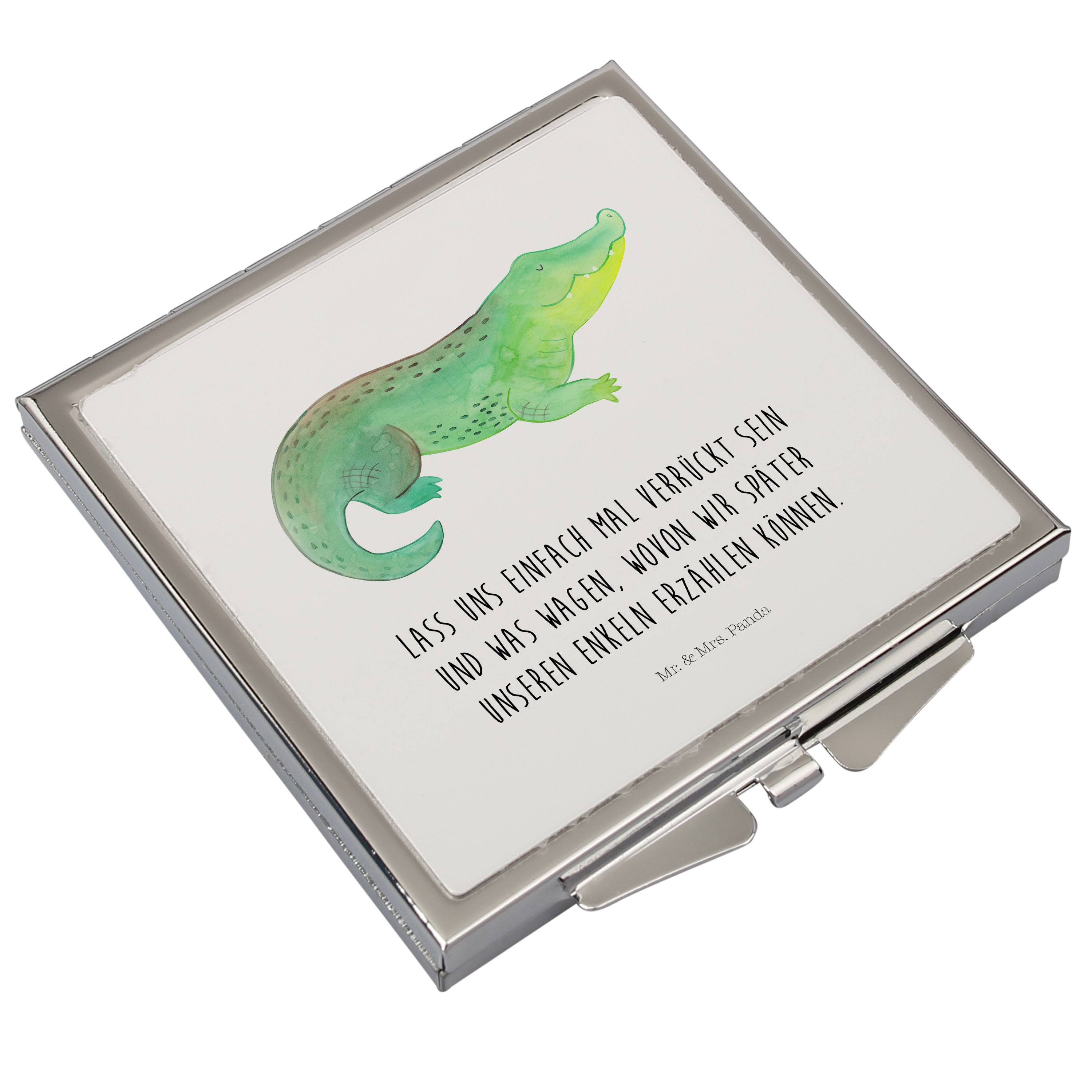 Handtaschenspiegel quadratisch Krokodil - mit Spruch - Weiß