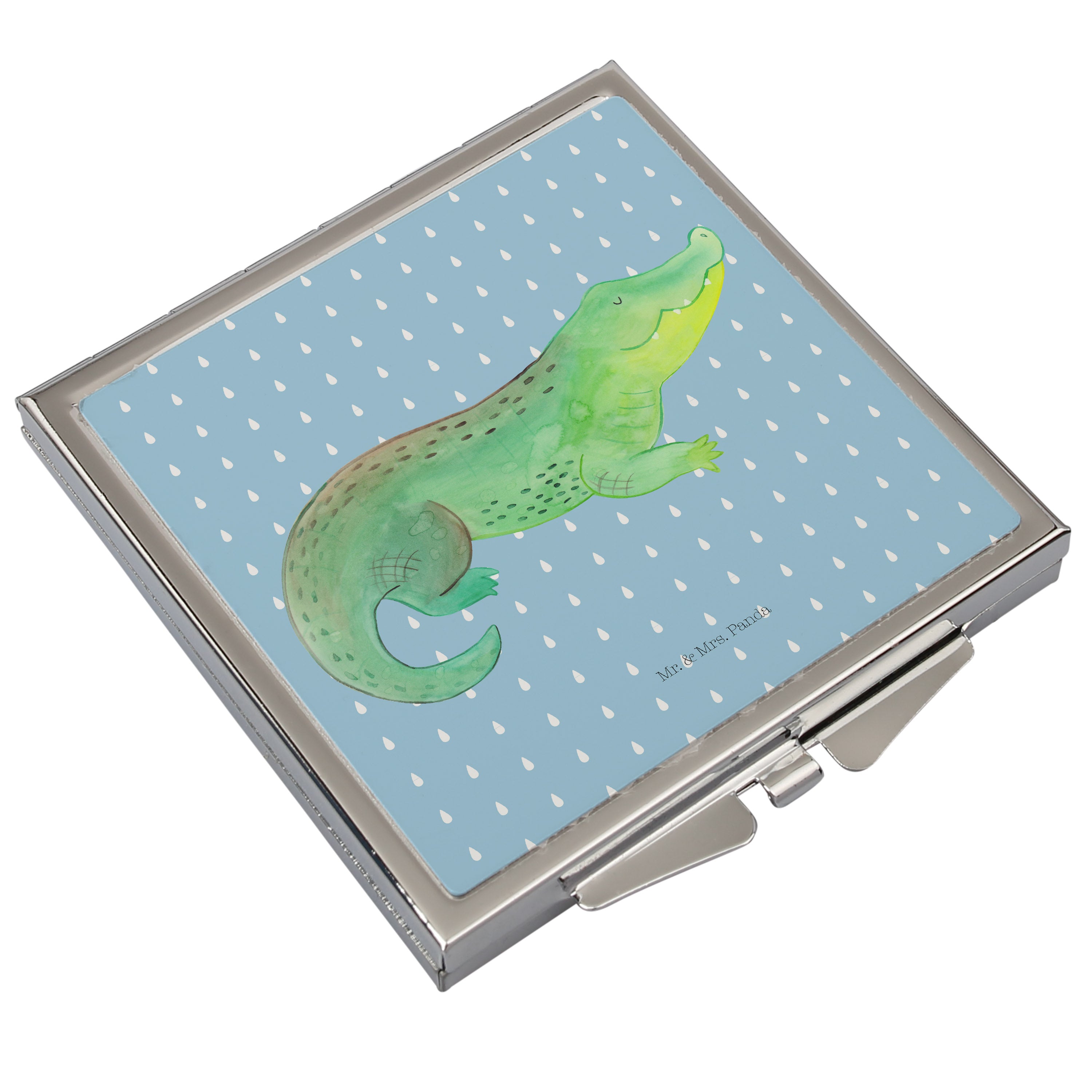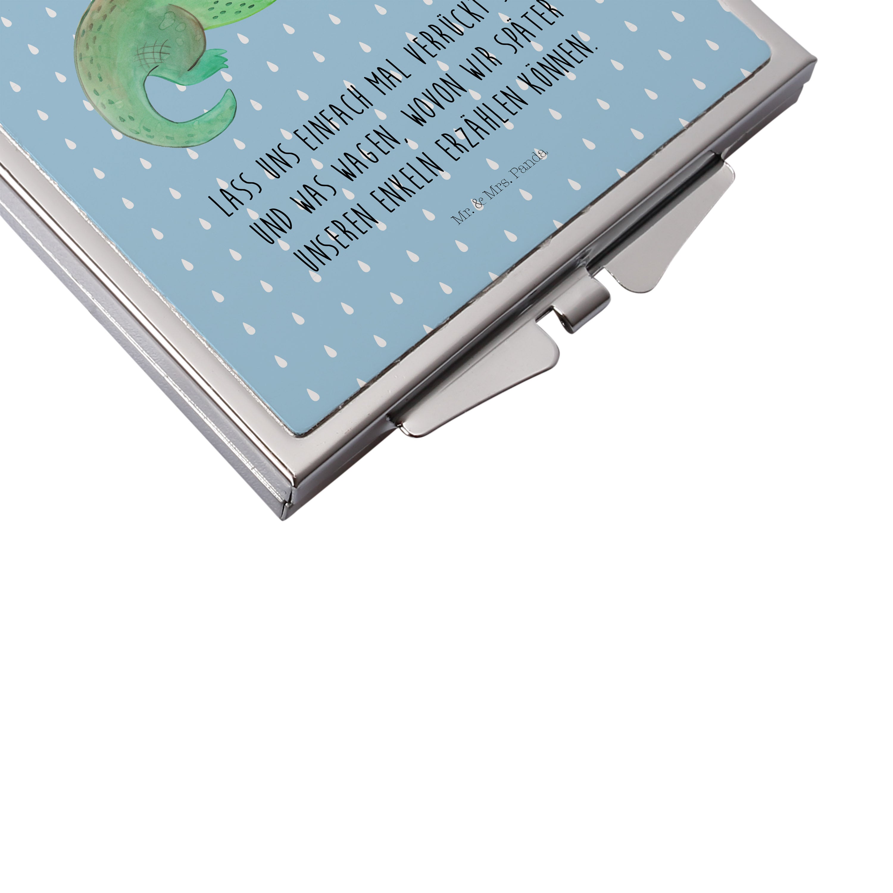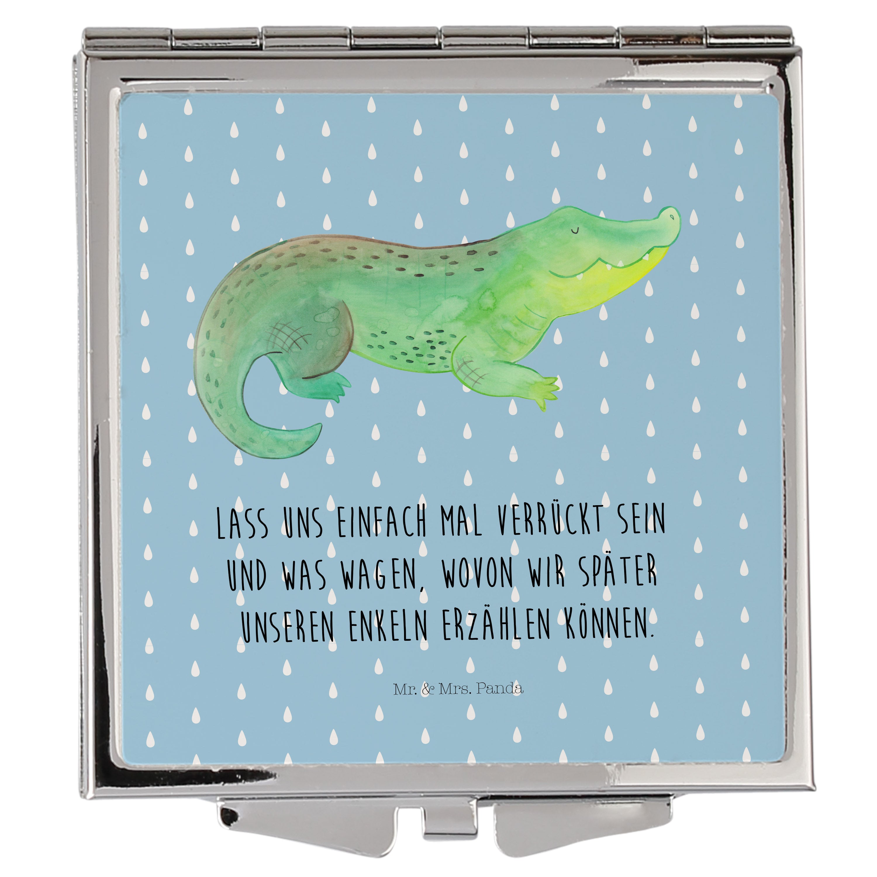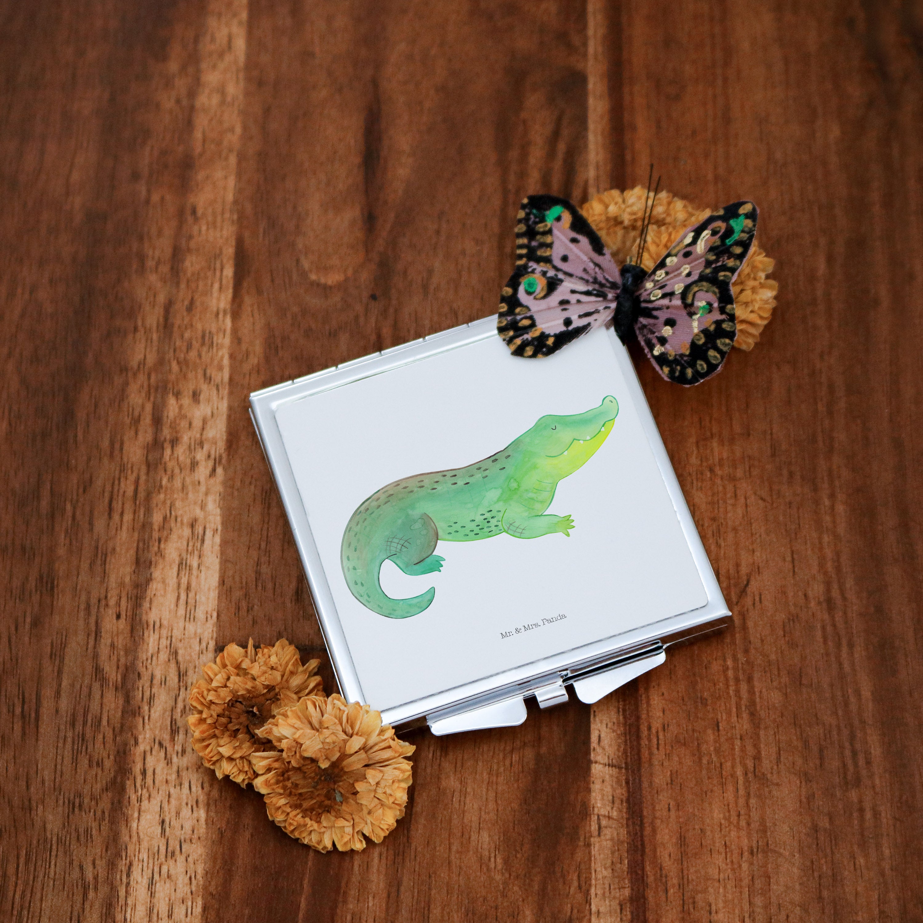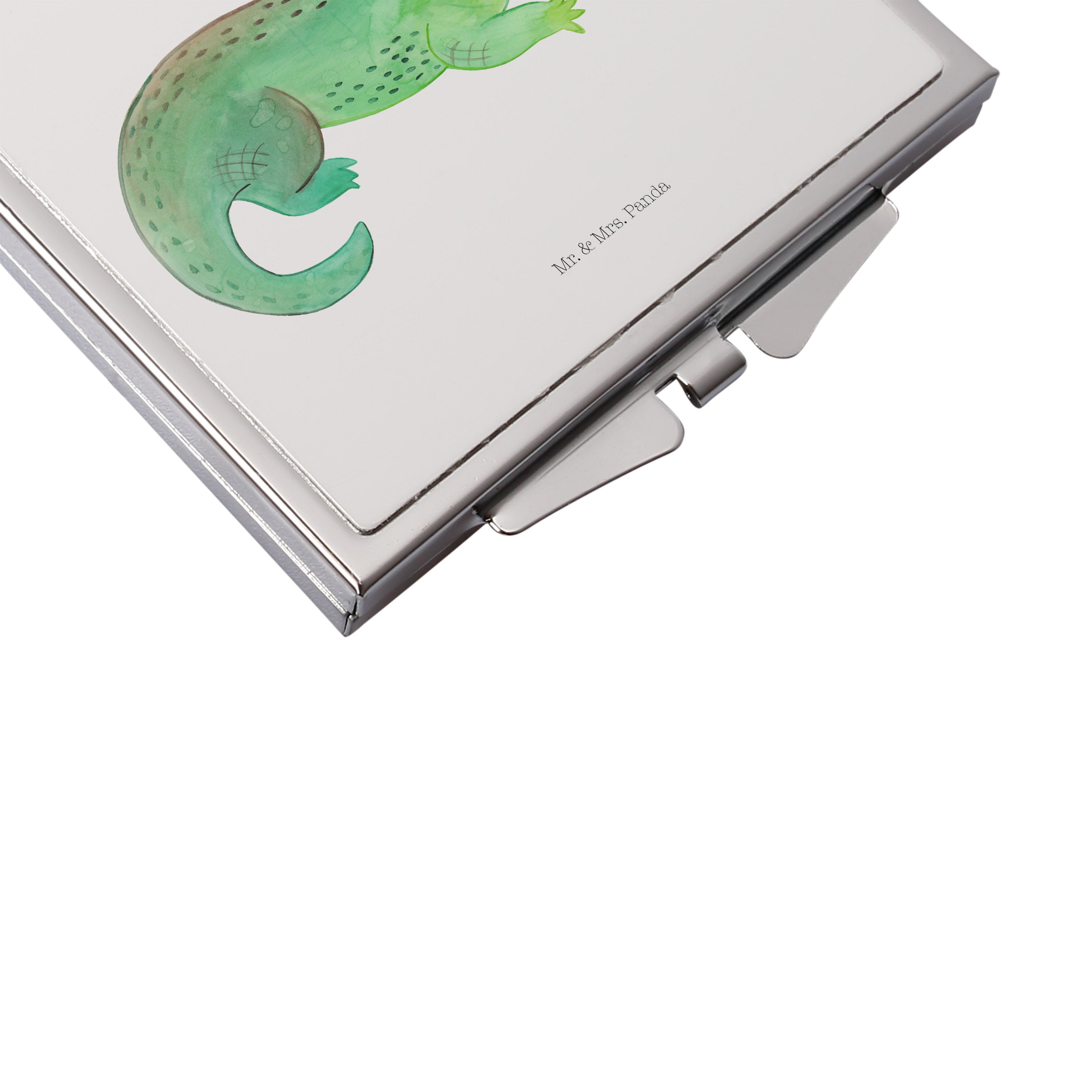 Handtaschenspiegel quadratisch Krokodil - mit Spruch - Weiß