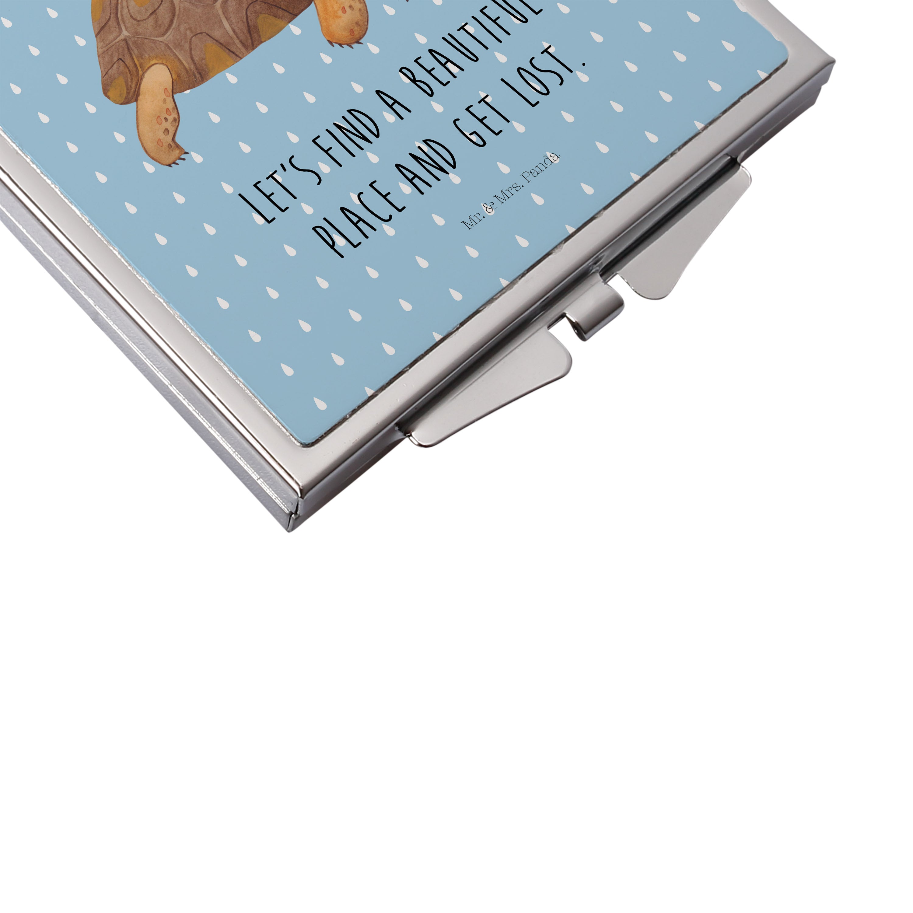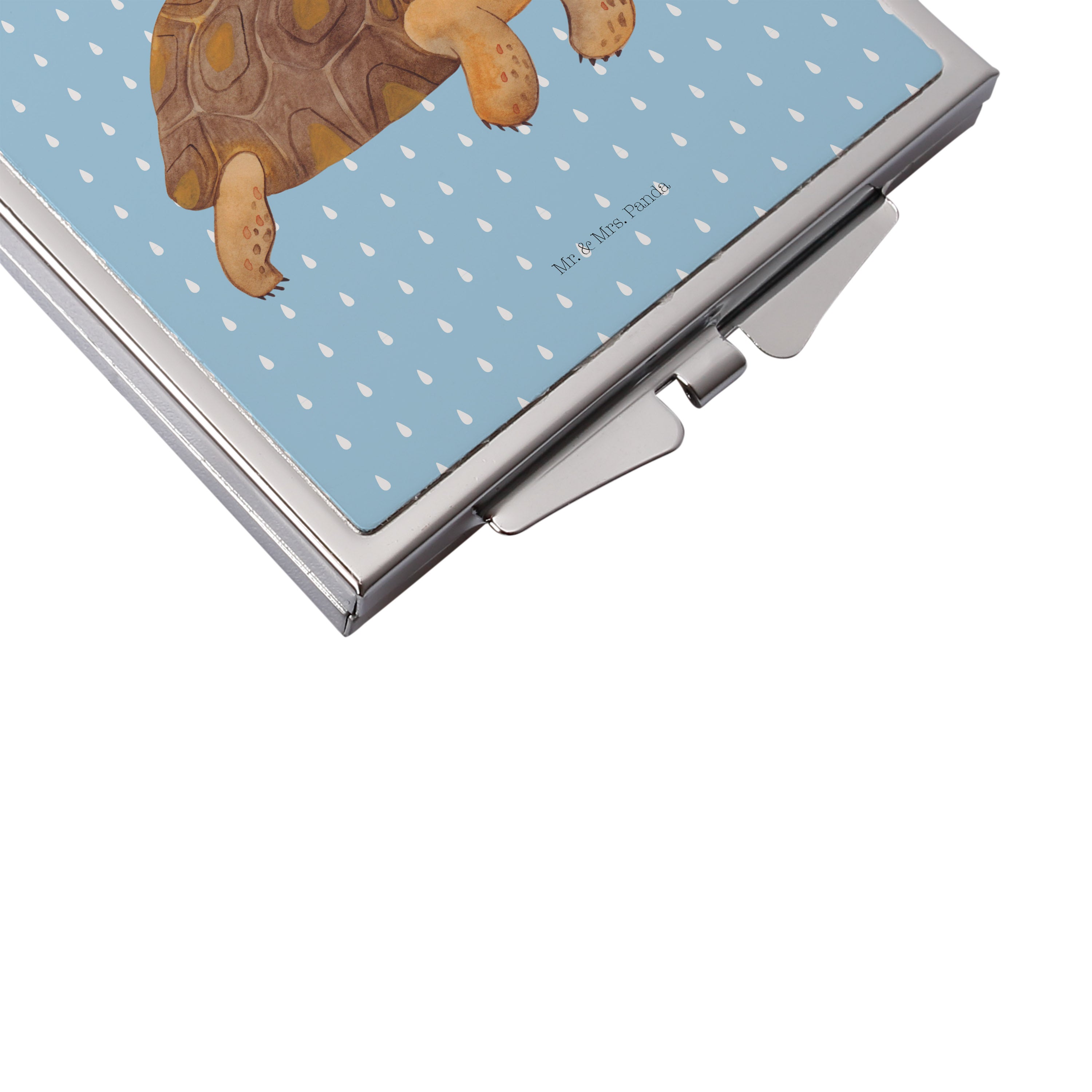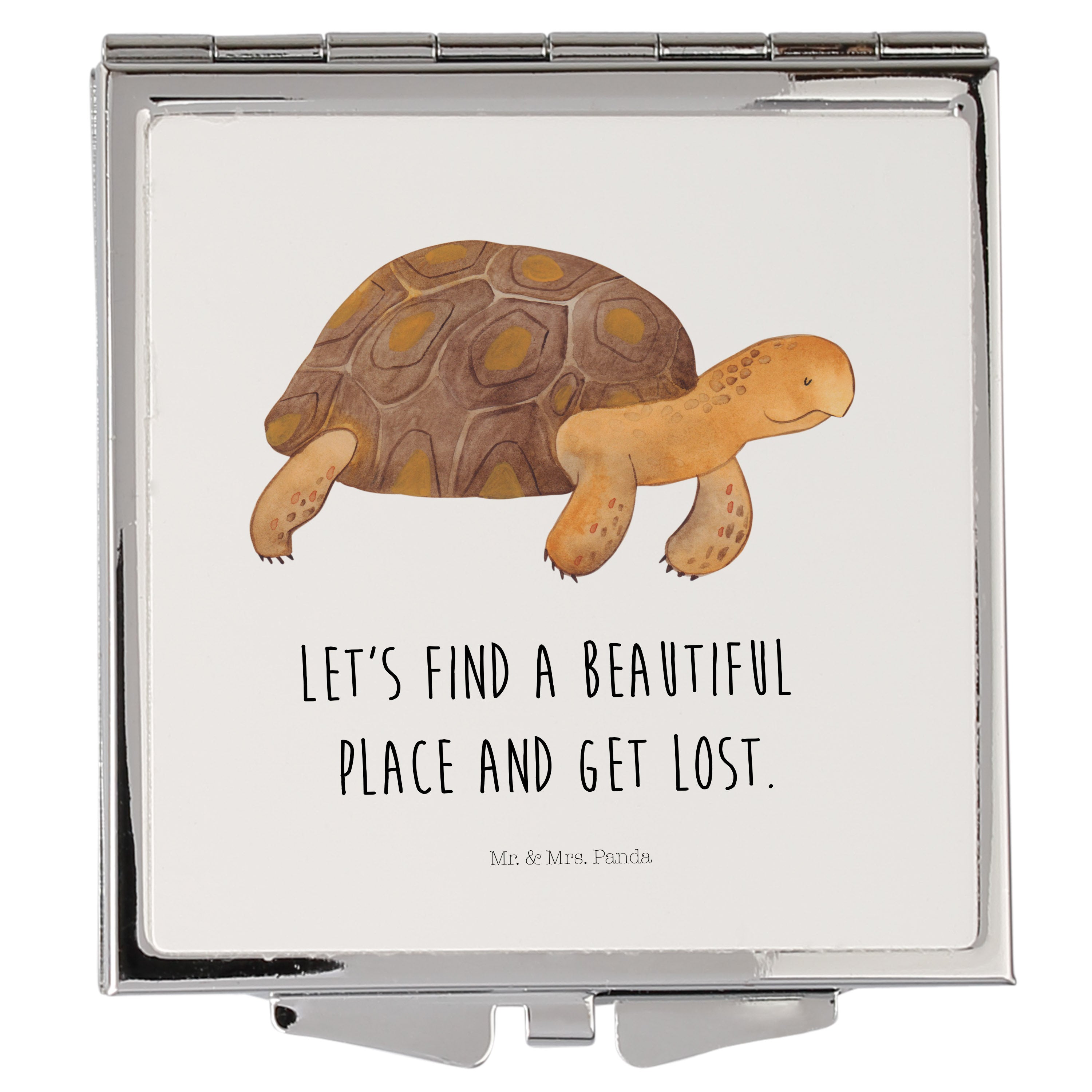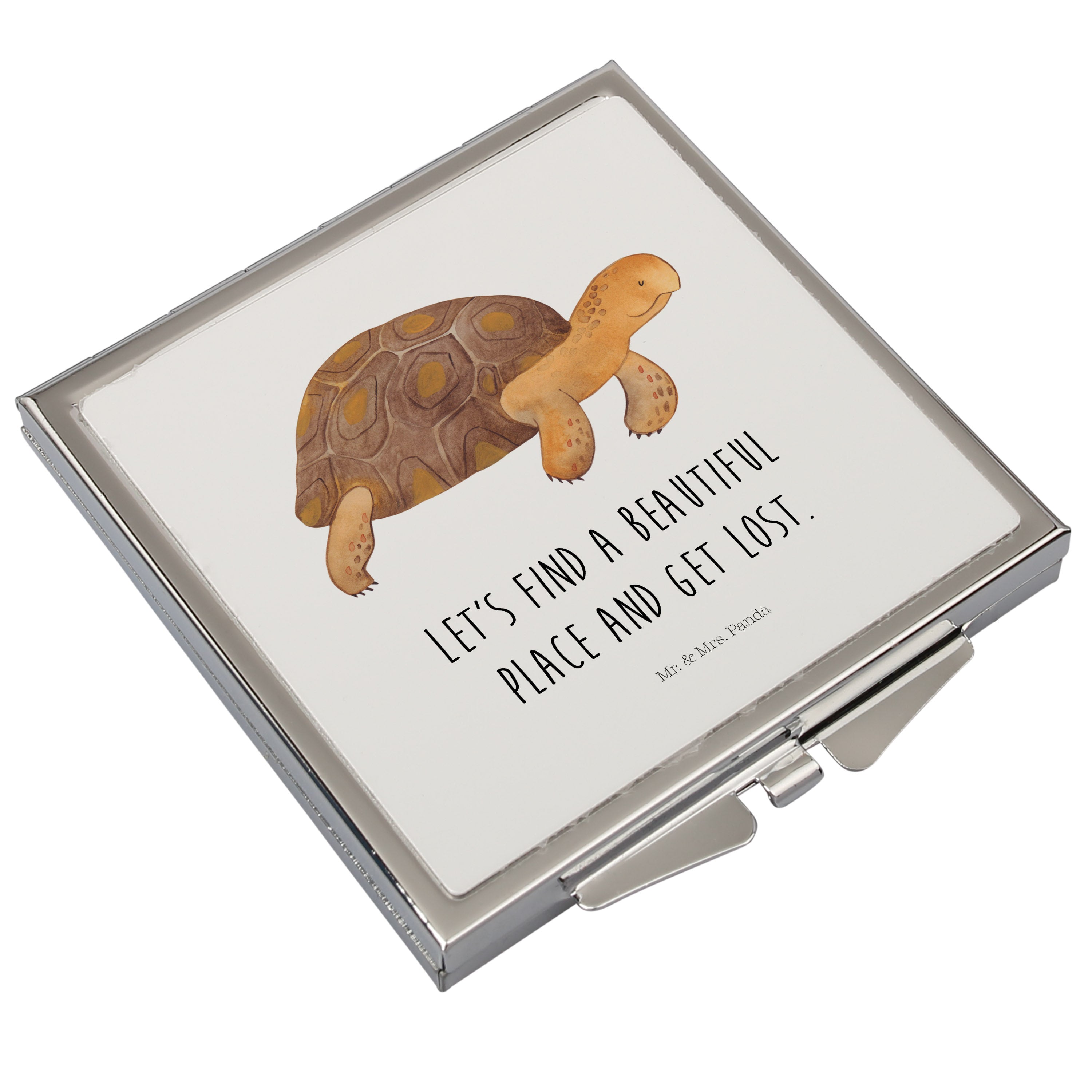 Handtaschenspiegel quadratisch Schildkröte marschiert - mit Spruch - Weiß
