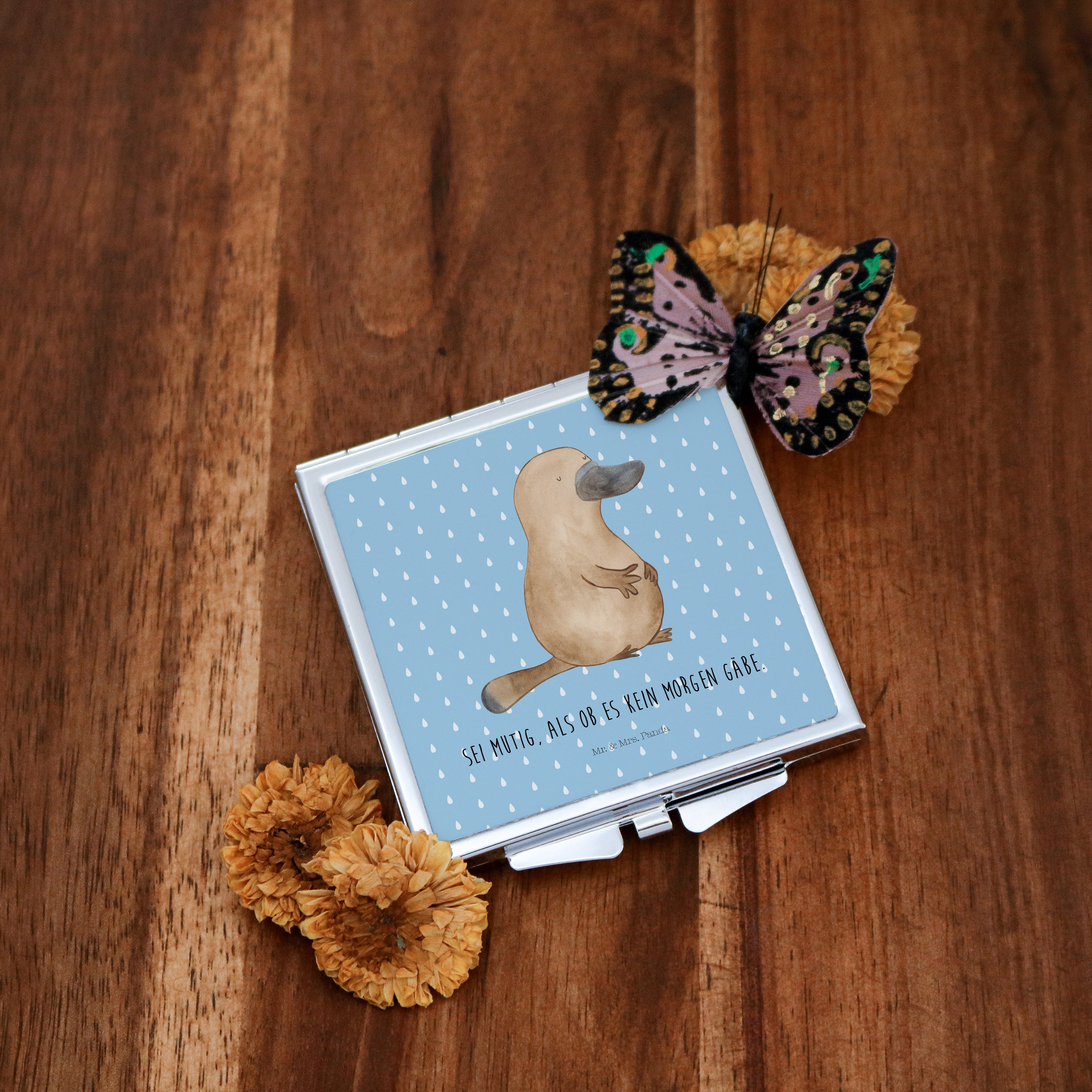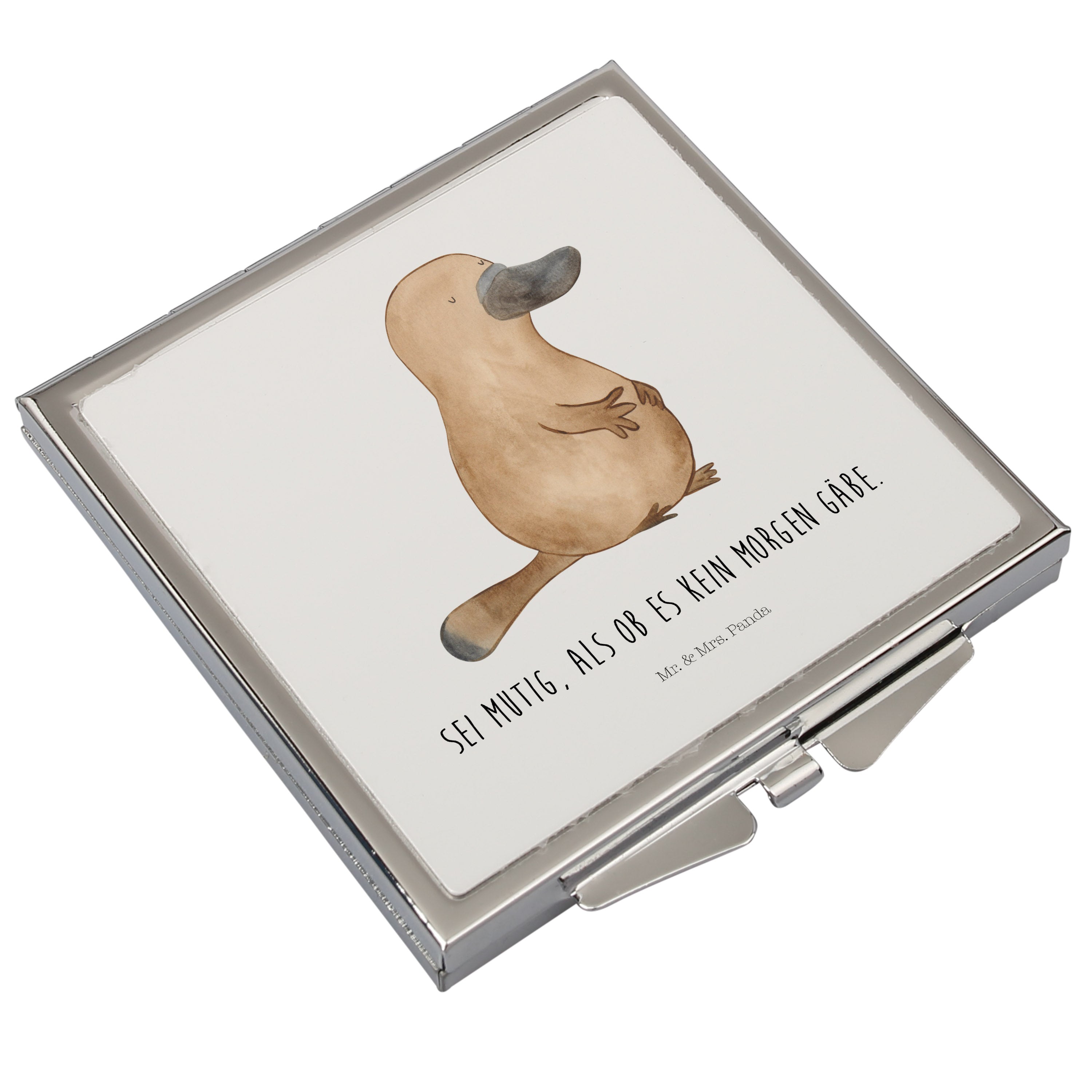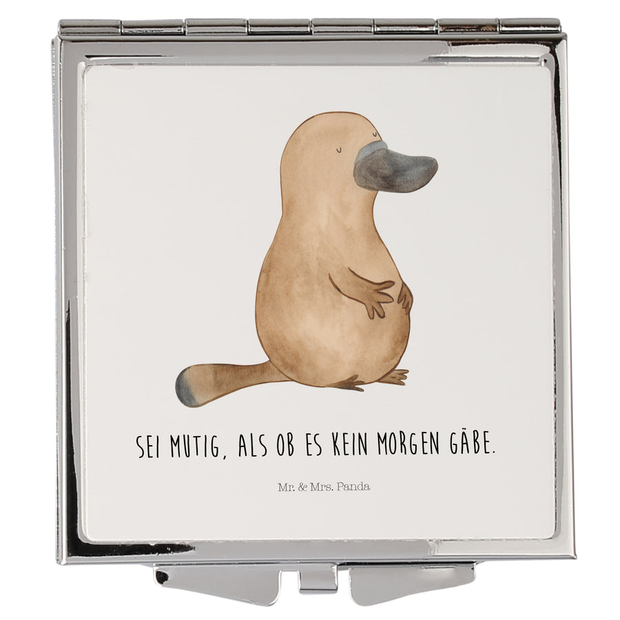 Handtaschenspiegel quadratisch Schnabeltier mutig - mit Spruch - Weiß