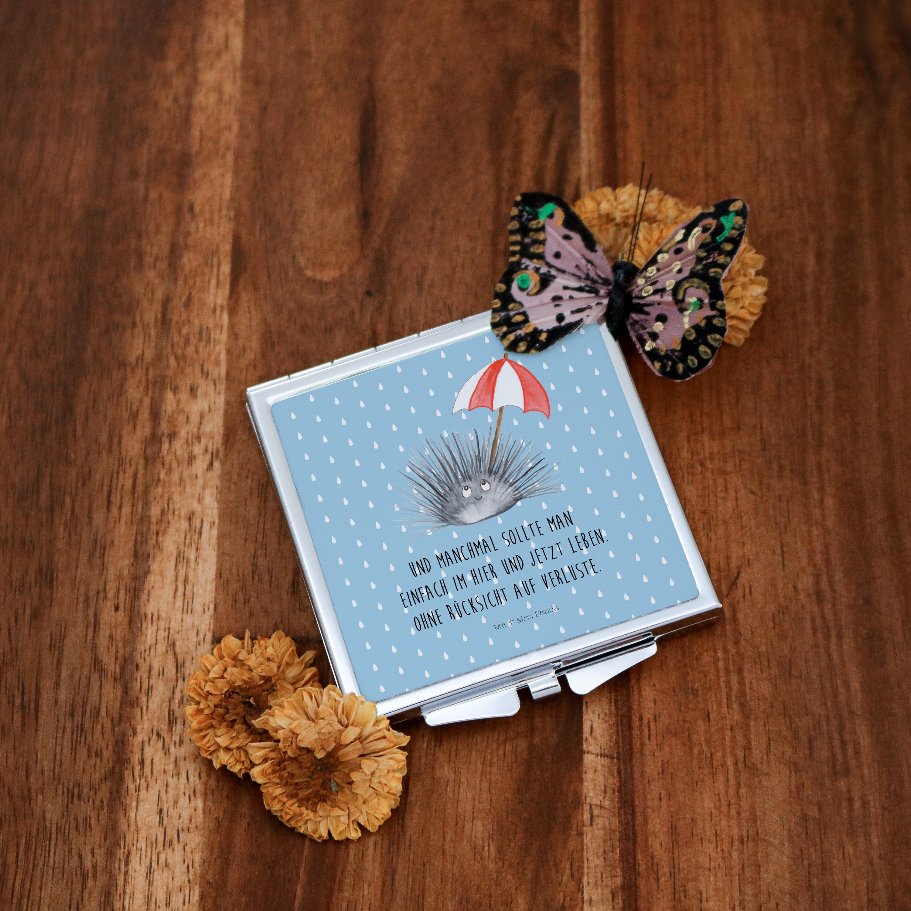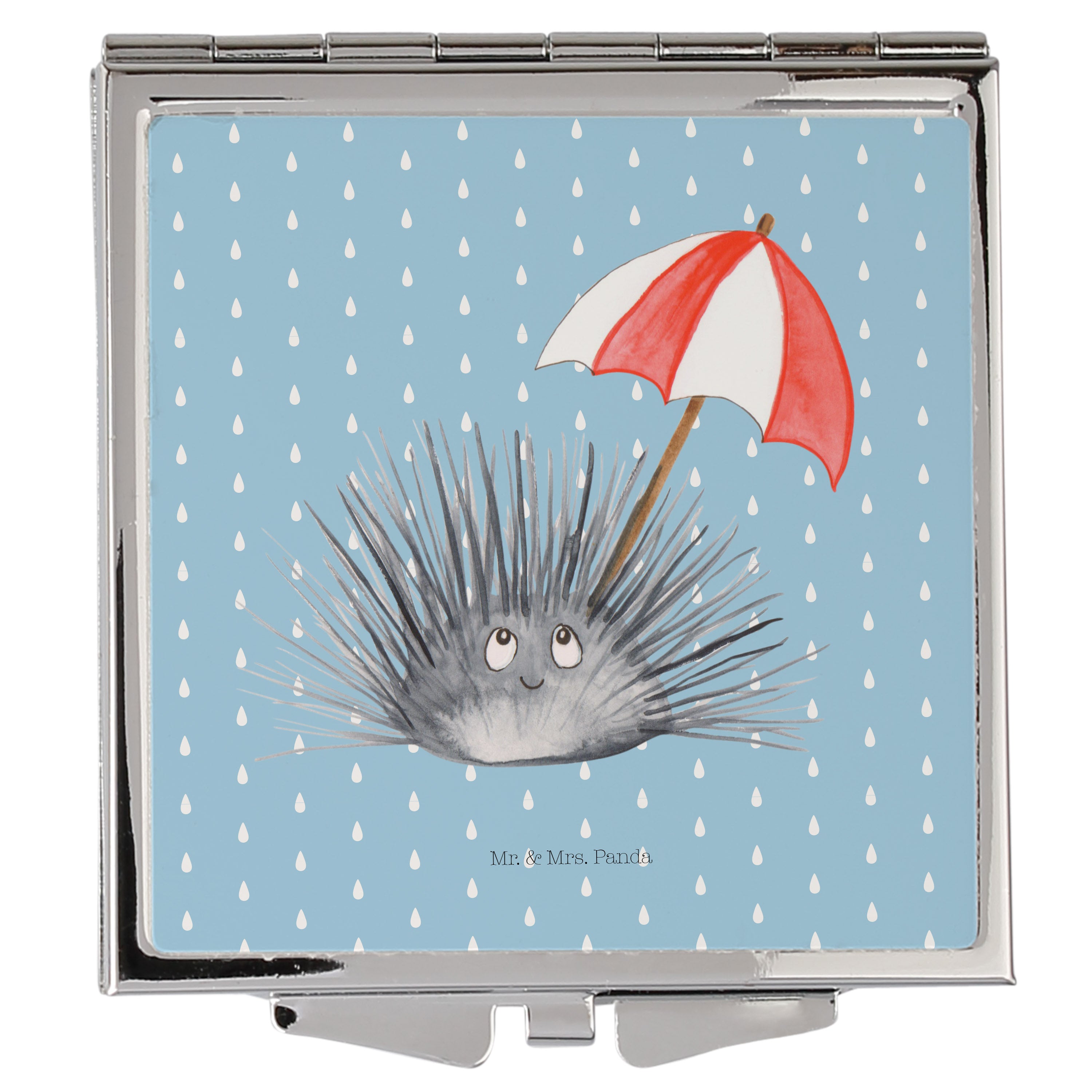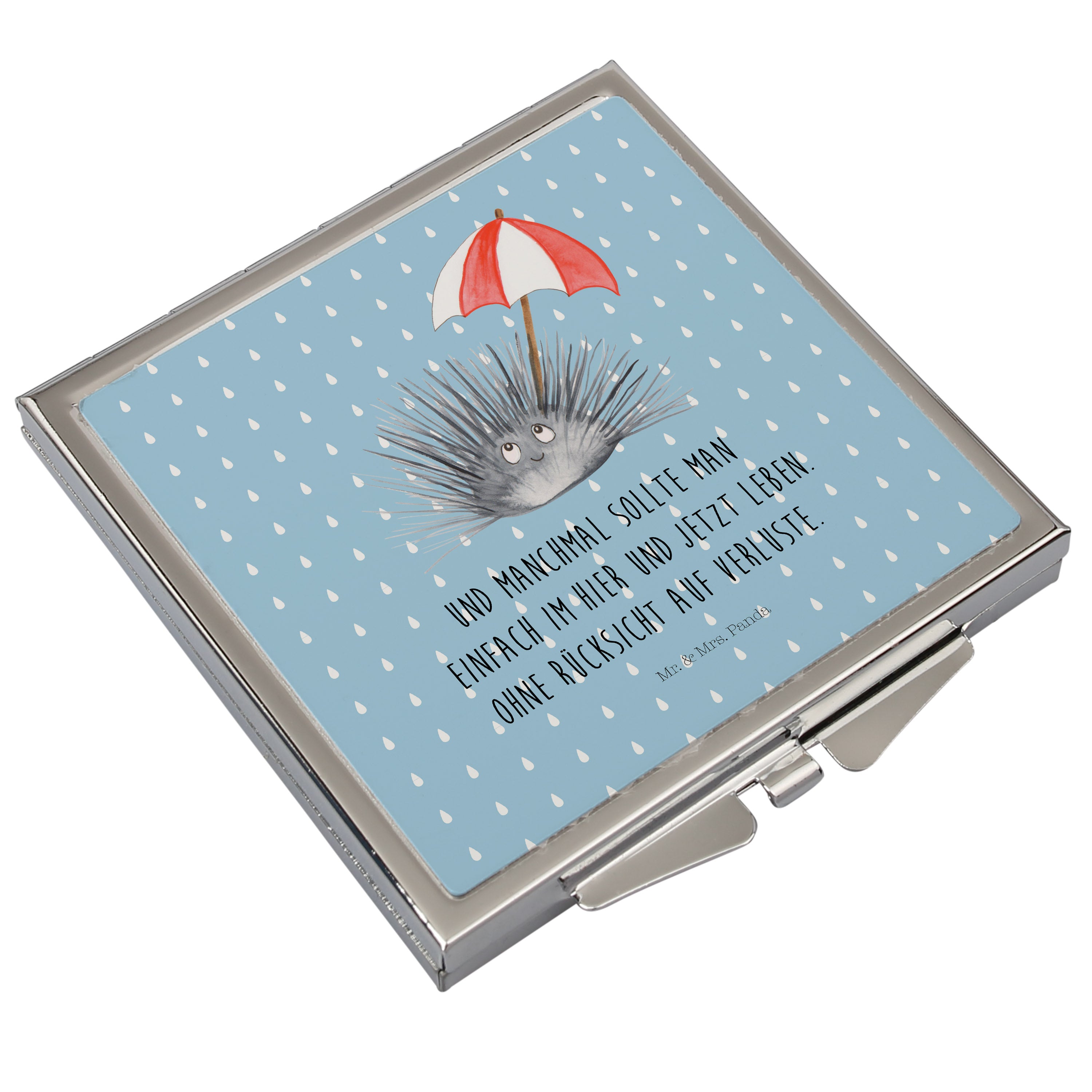 Handtaschenspiegel quadratisch Seeigel - mit Spruch - Blau Pastell