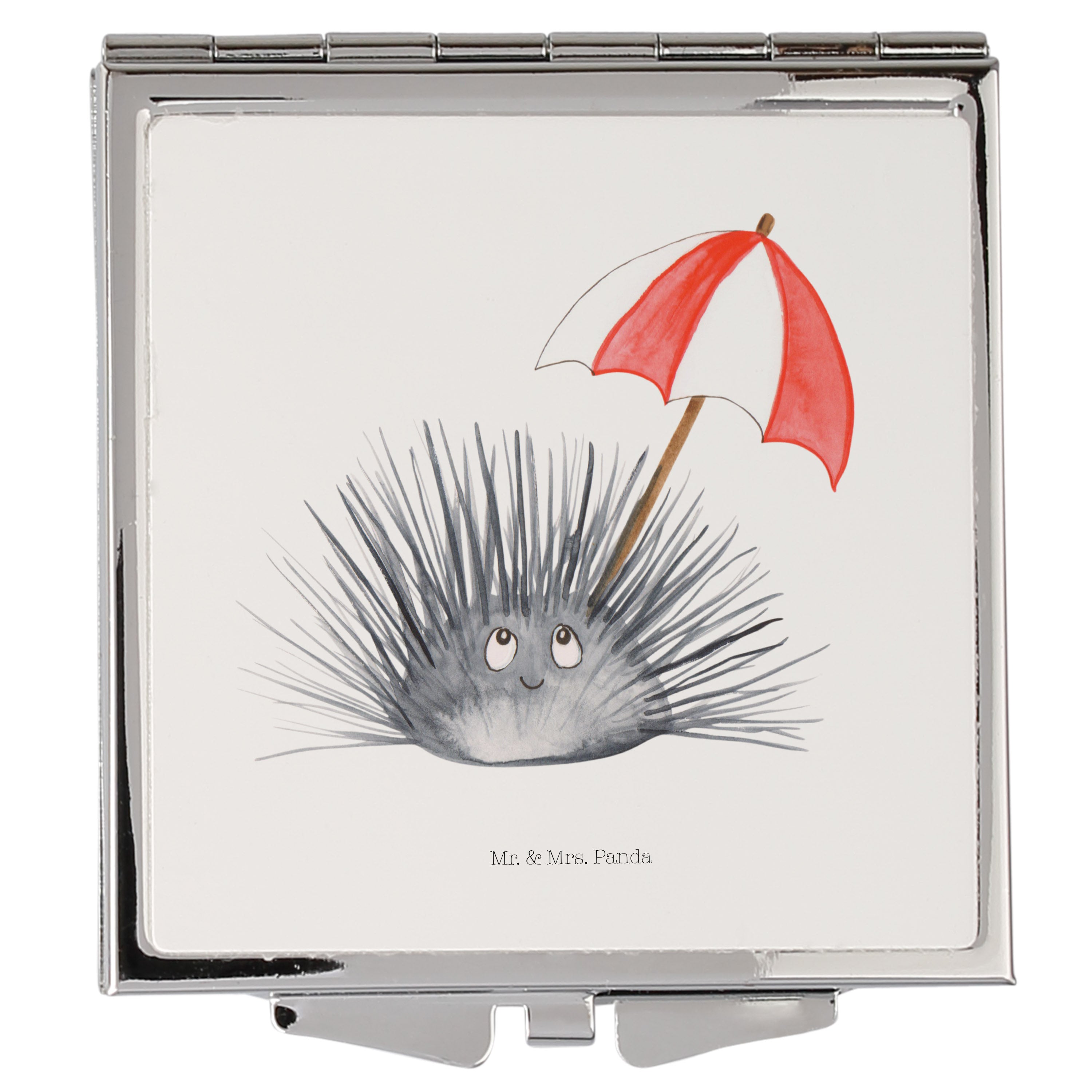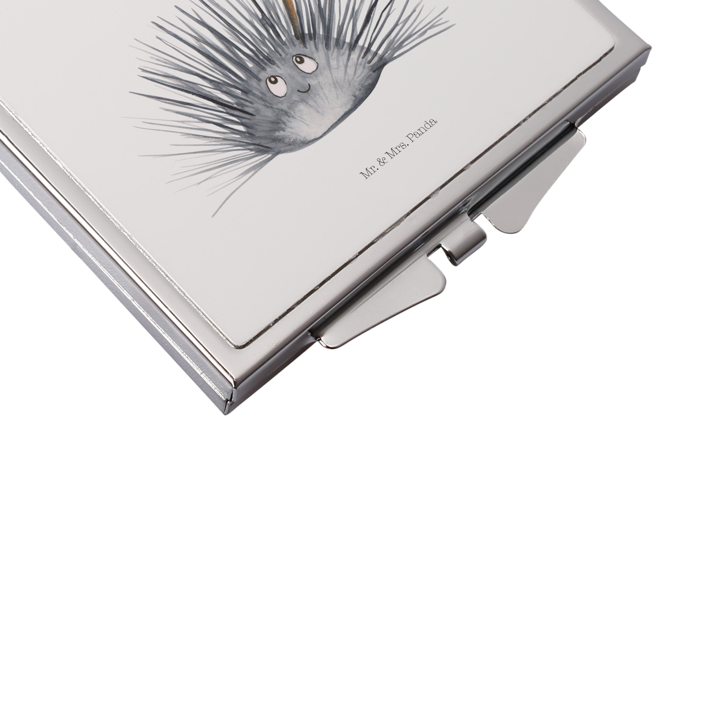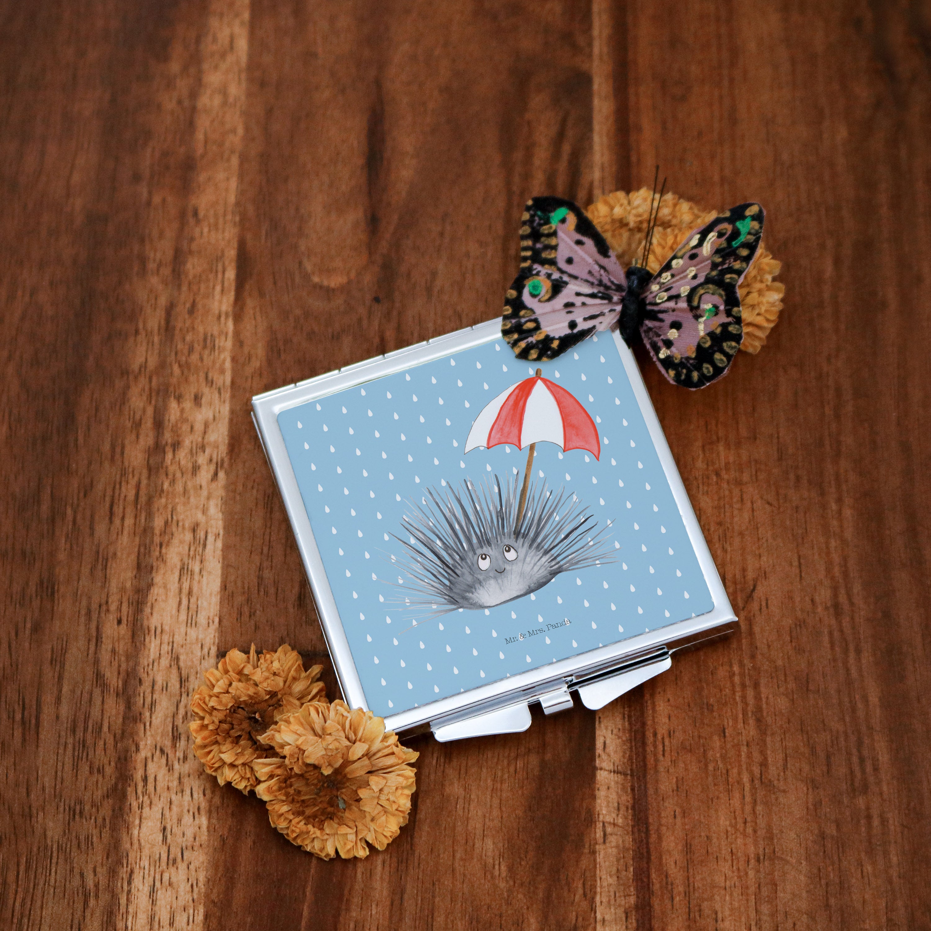 Handtaschenspiegel quadratisch Seeigel - mit Spruch - Blau Pastell