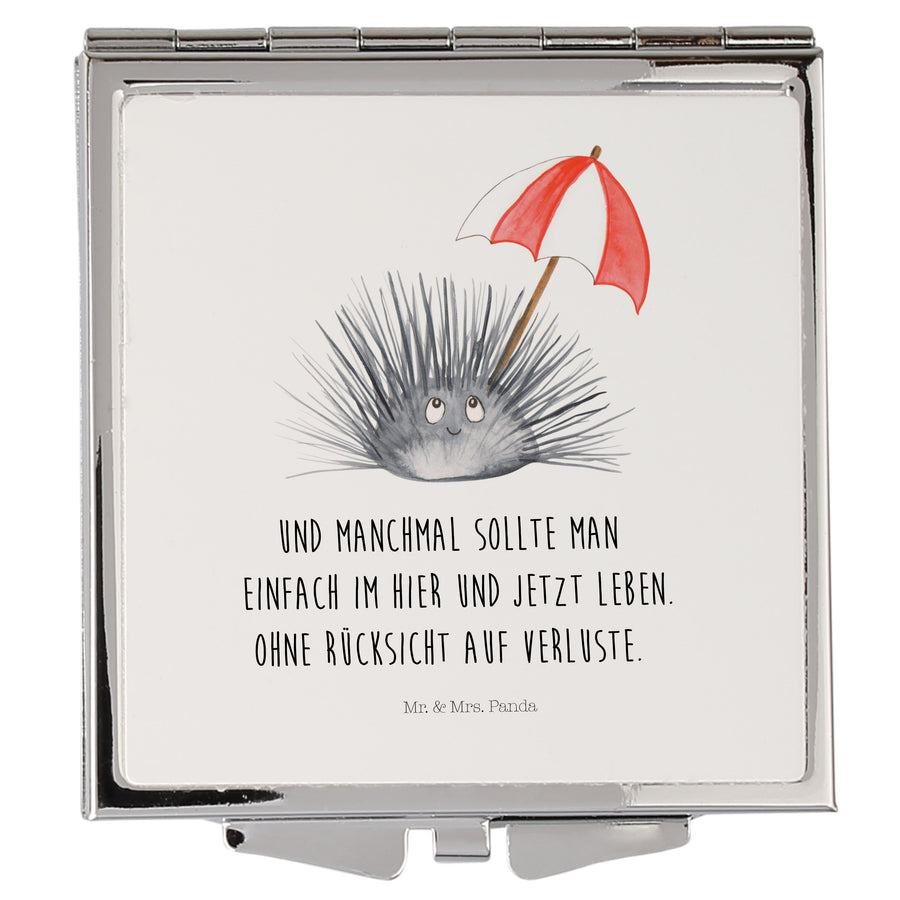 Handtaschenspiegel quadratisch Seeigel - mit Spruch - Weiß