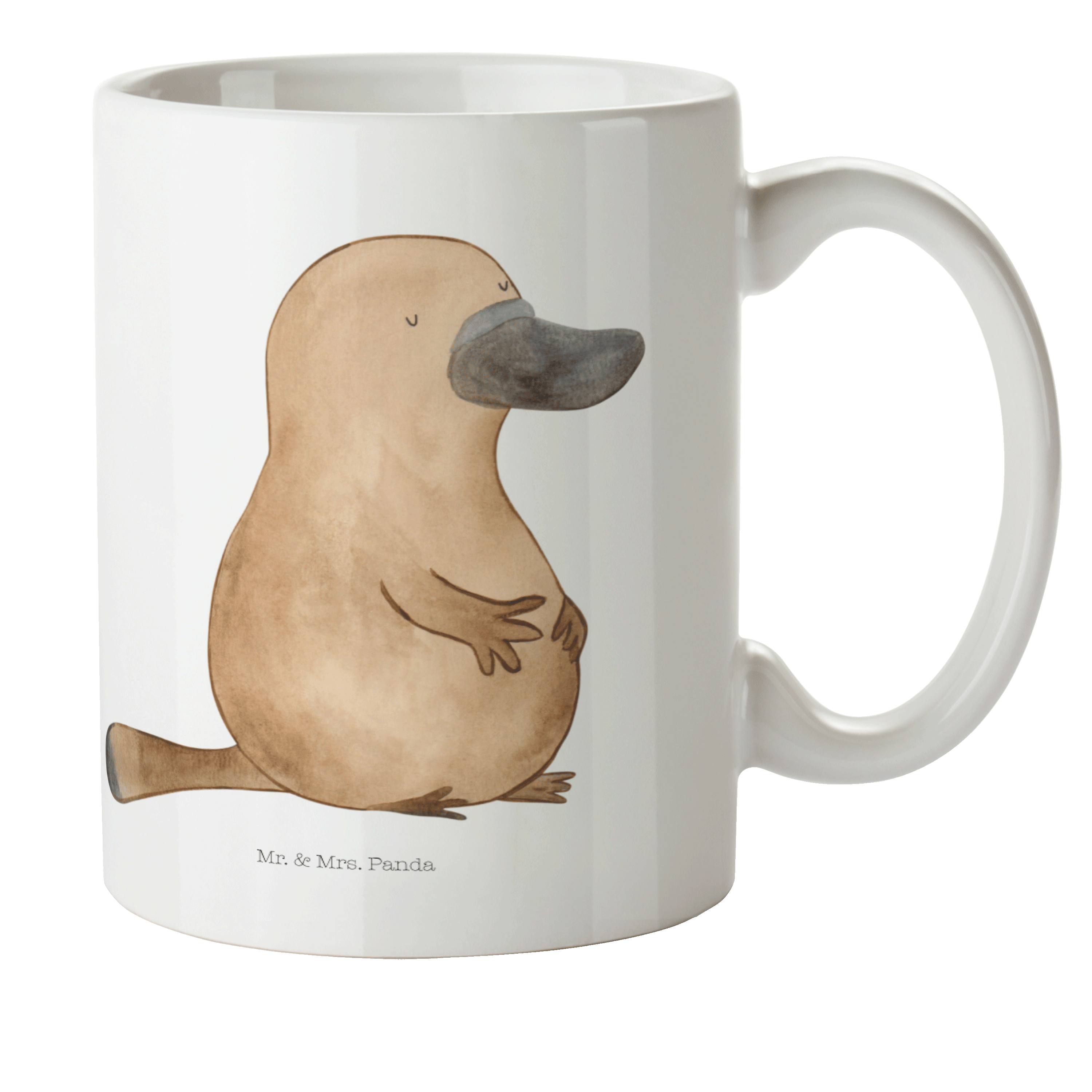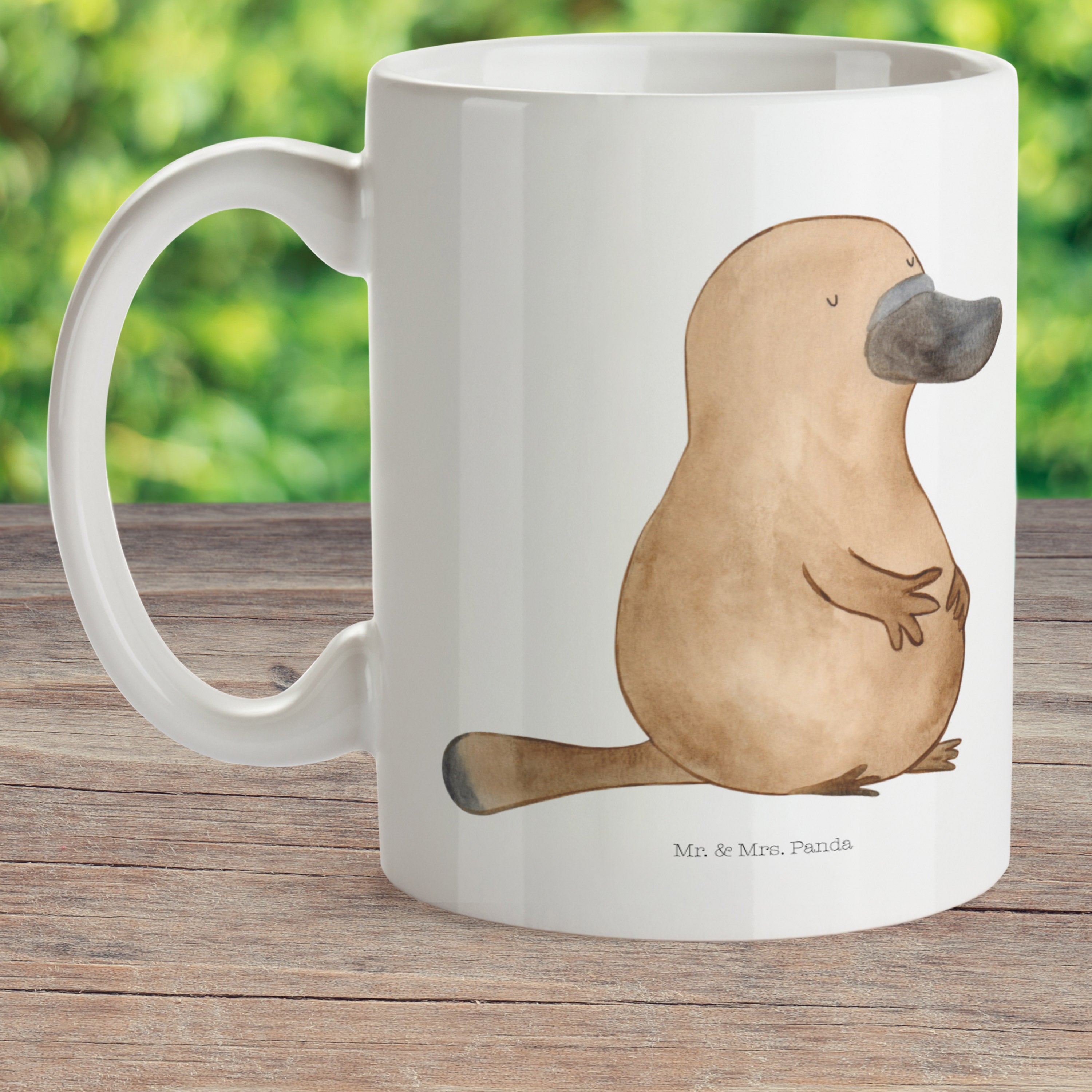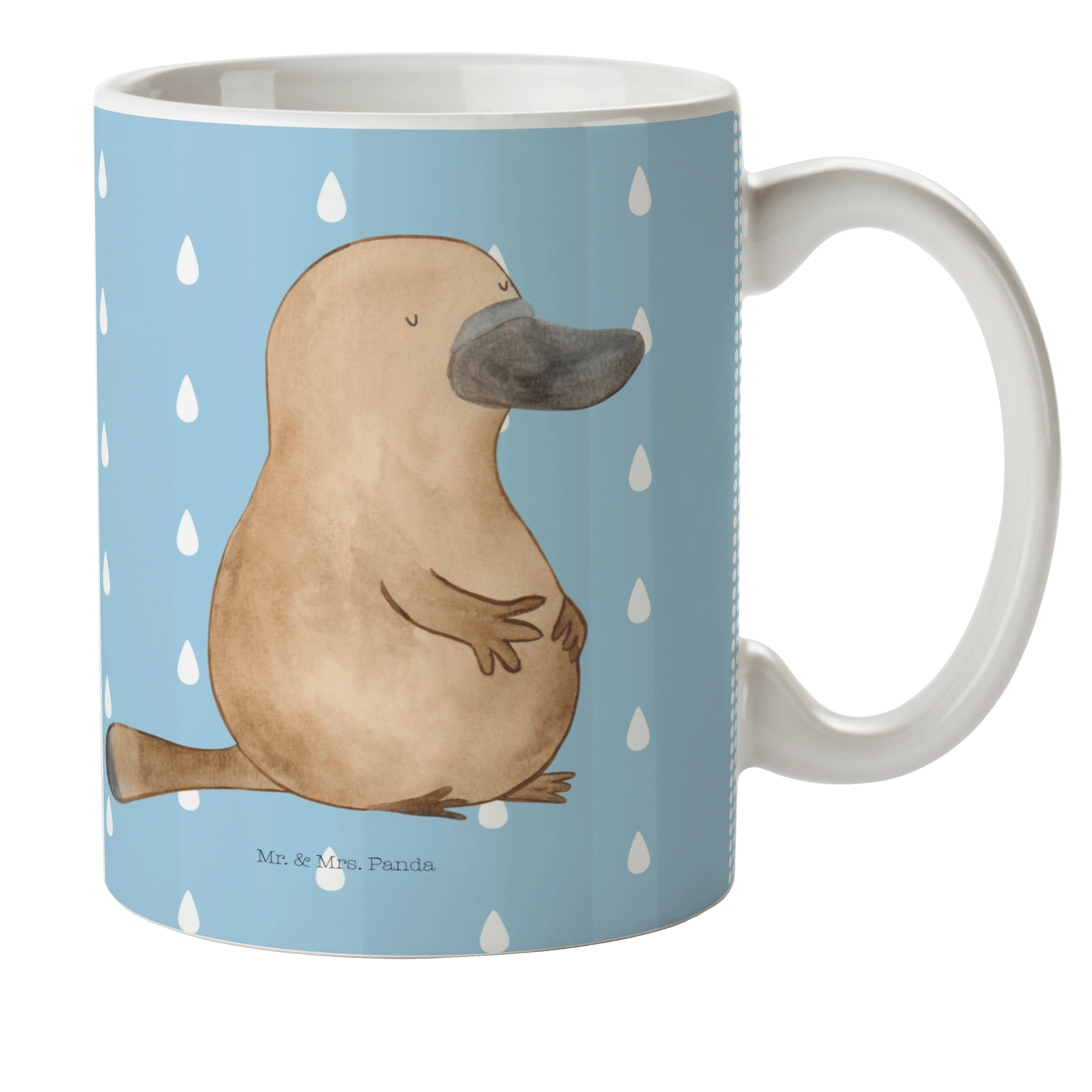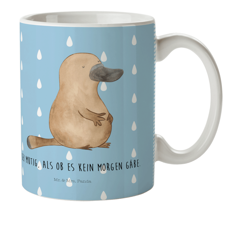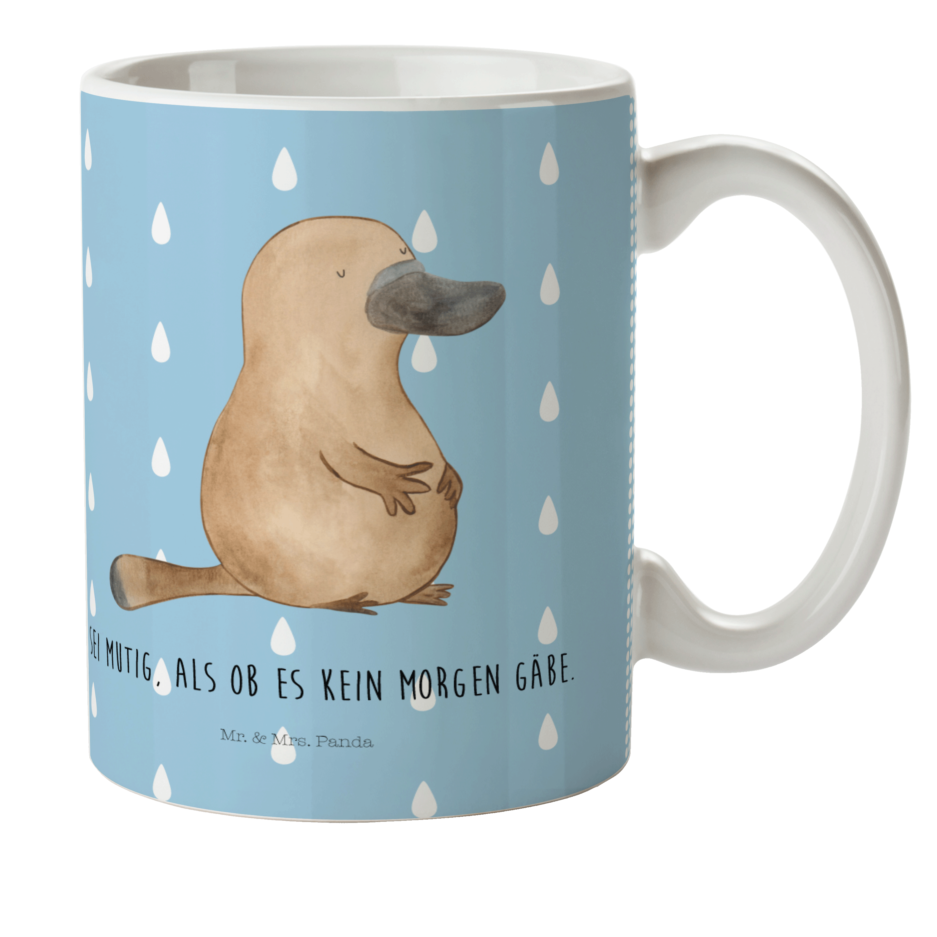 Kindertasse Schnabeltier mutig - mit Spruch - Blau Pastell