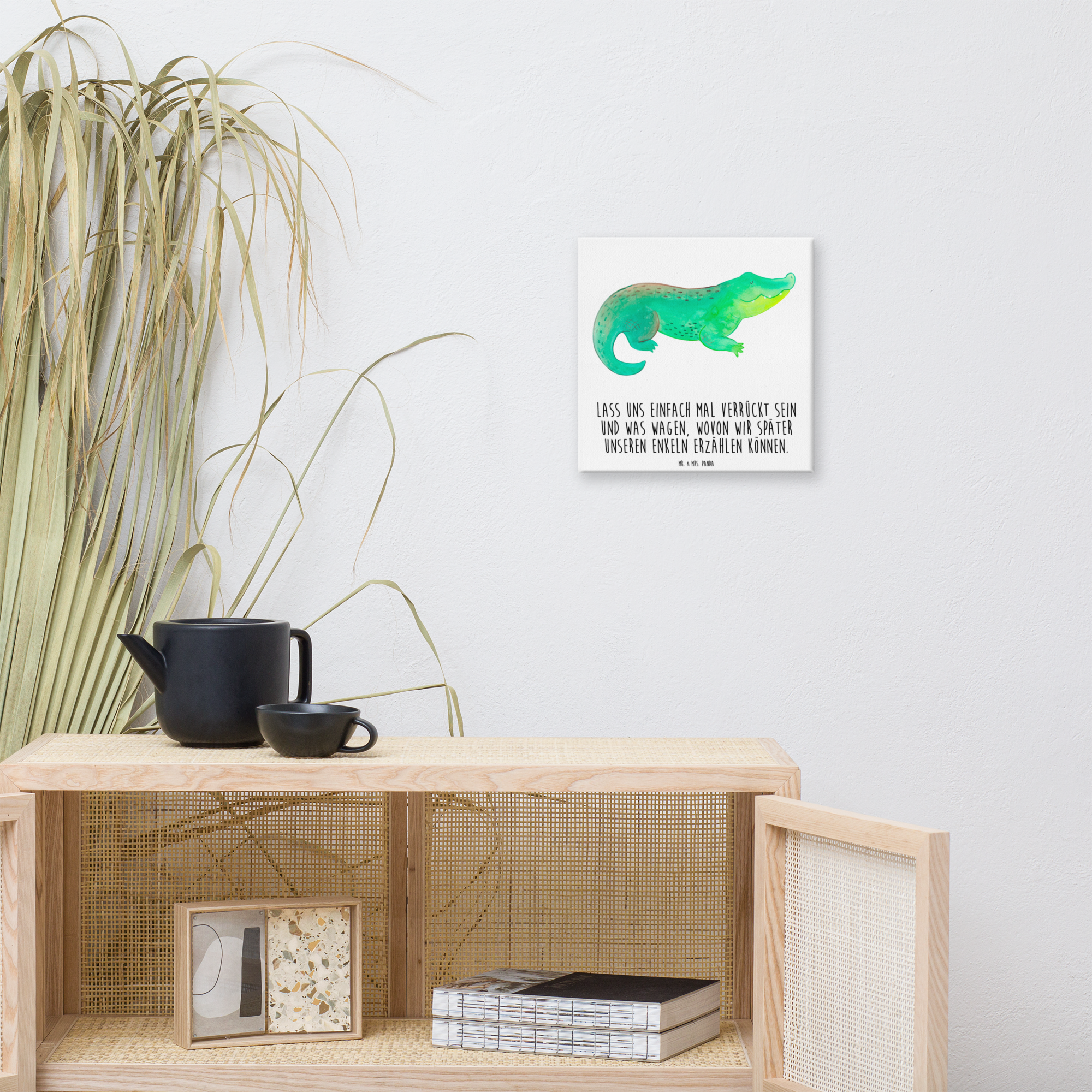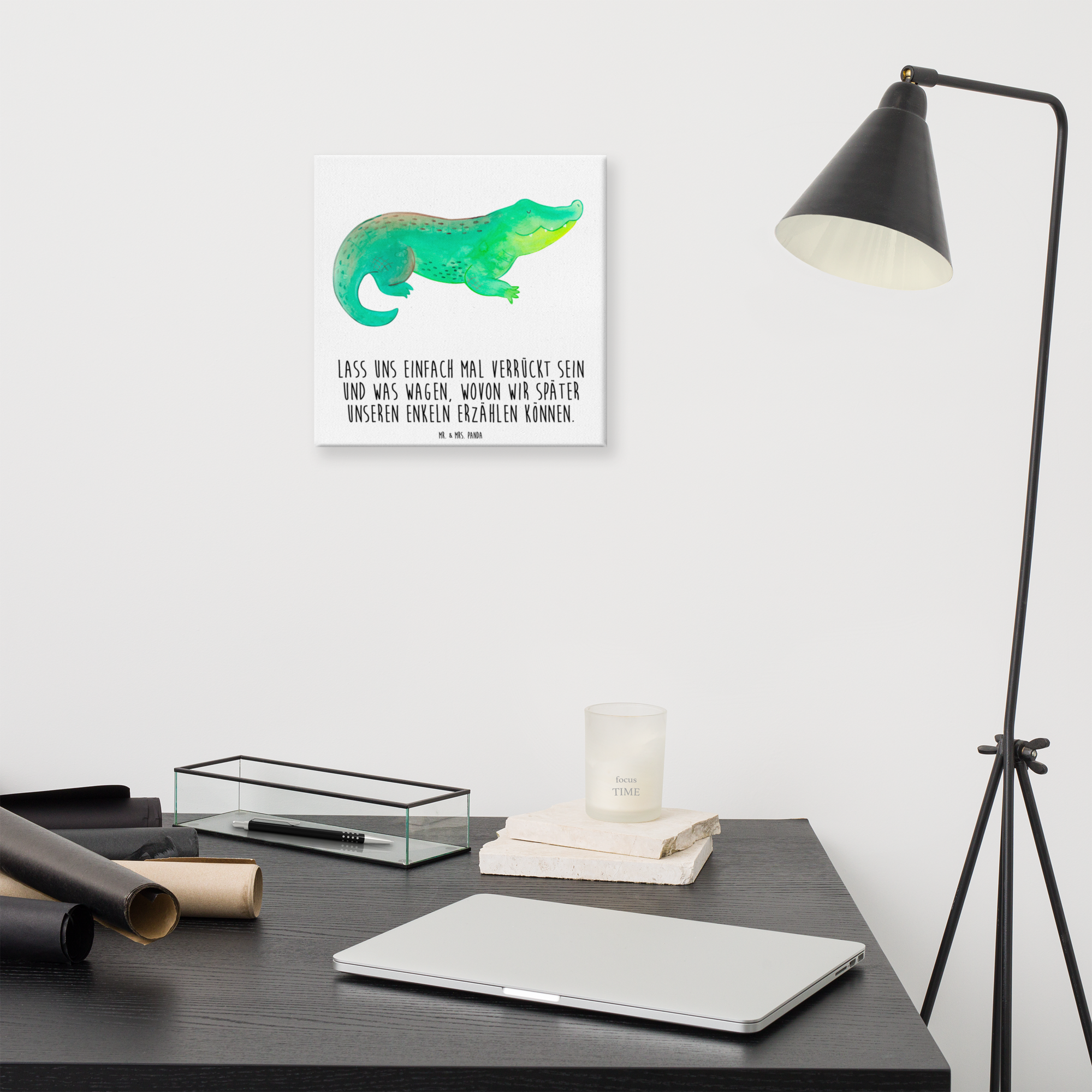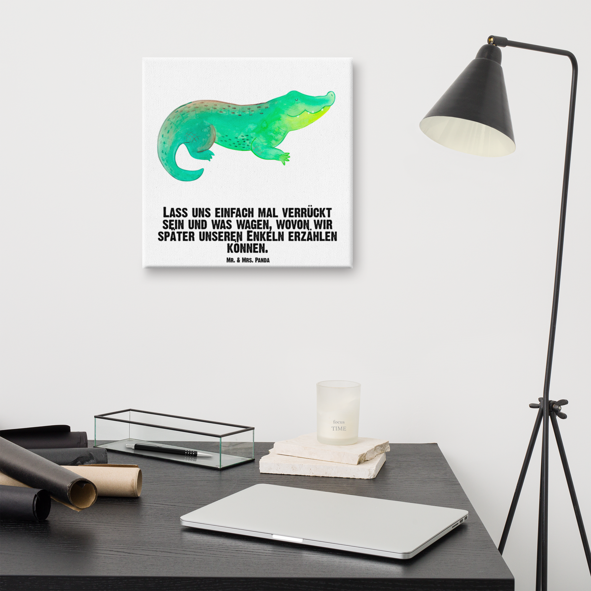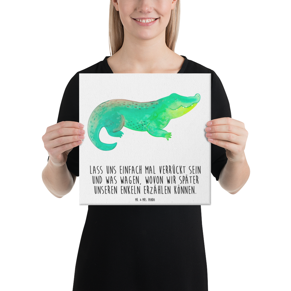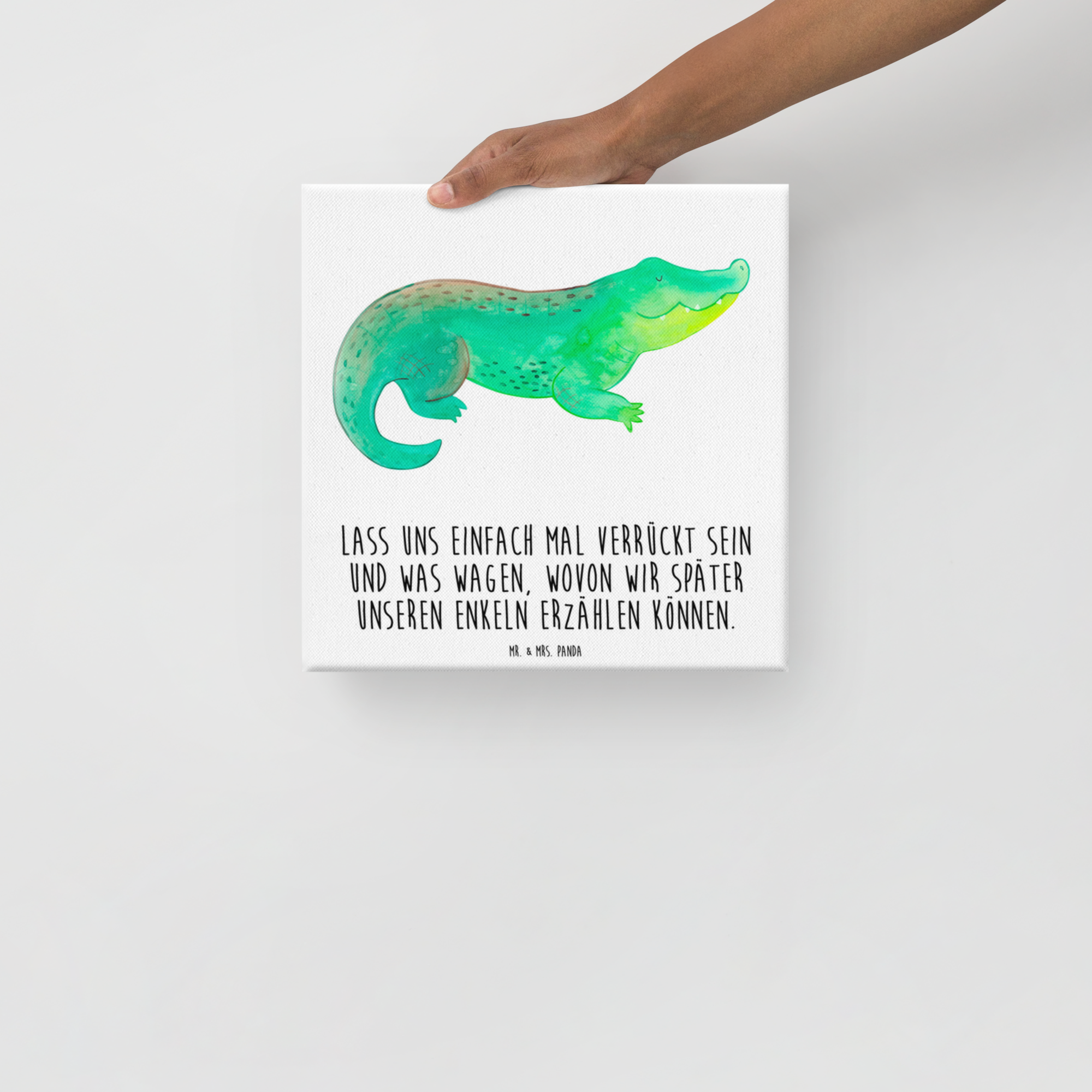 Leinwand Bild Krokodil - 40 x 40 cm - mit Spruch