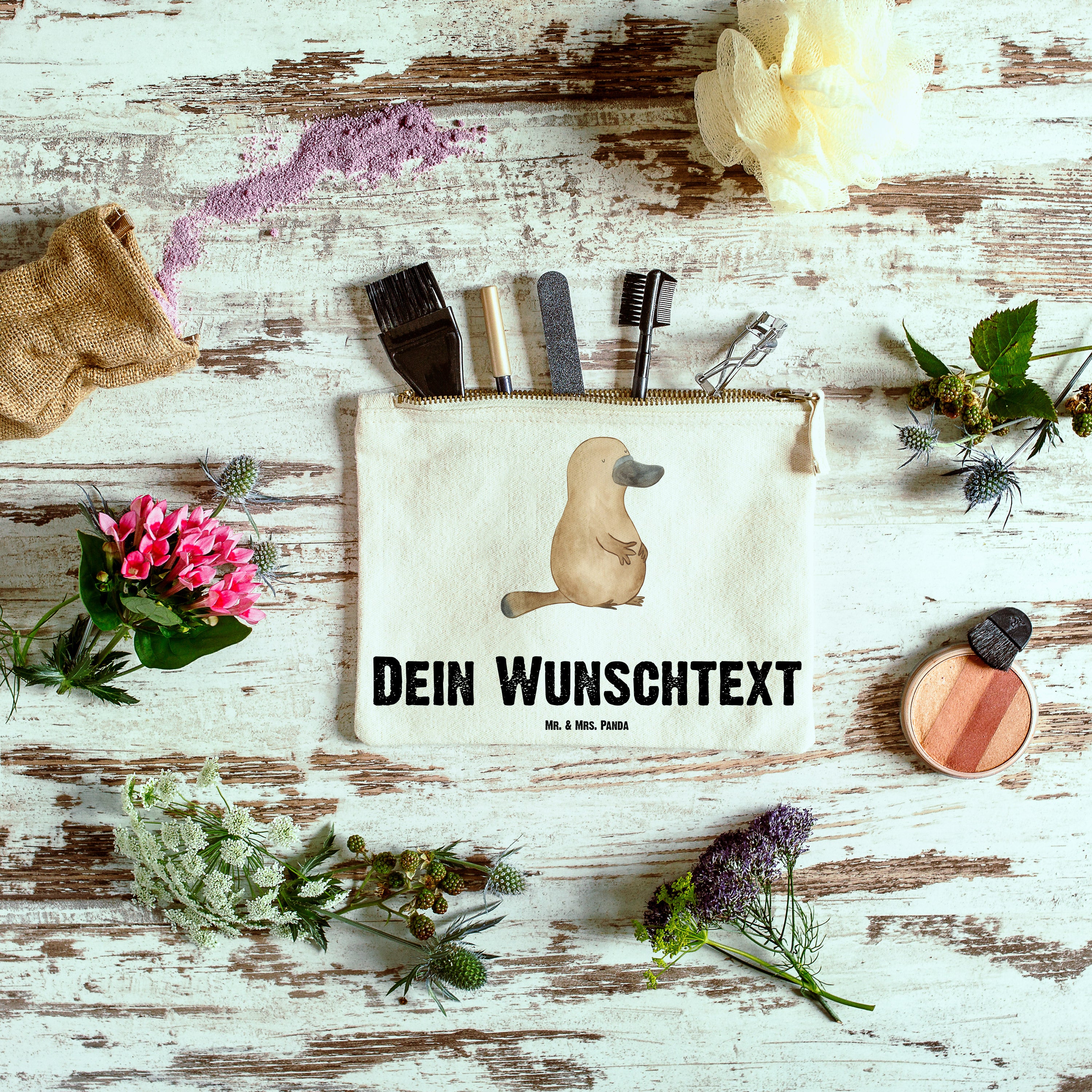 Personalisierte Schminktasche Schnabeltier mutig - Größe S Klein