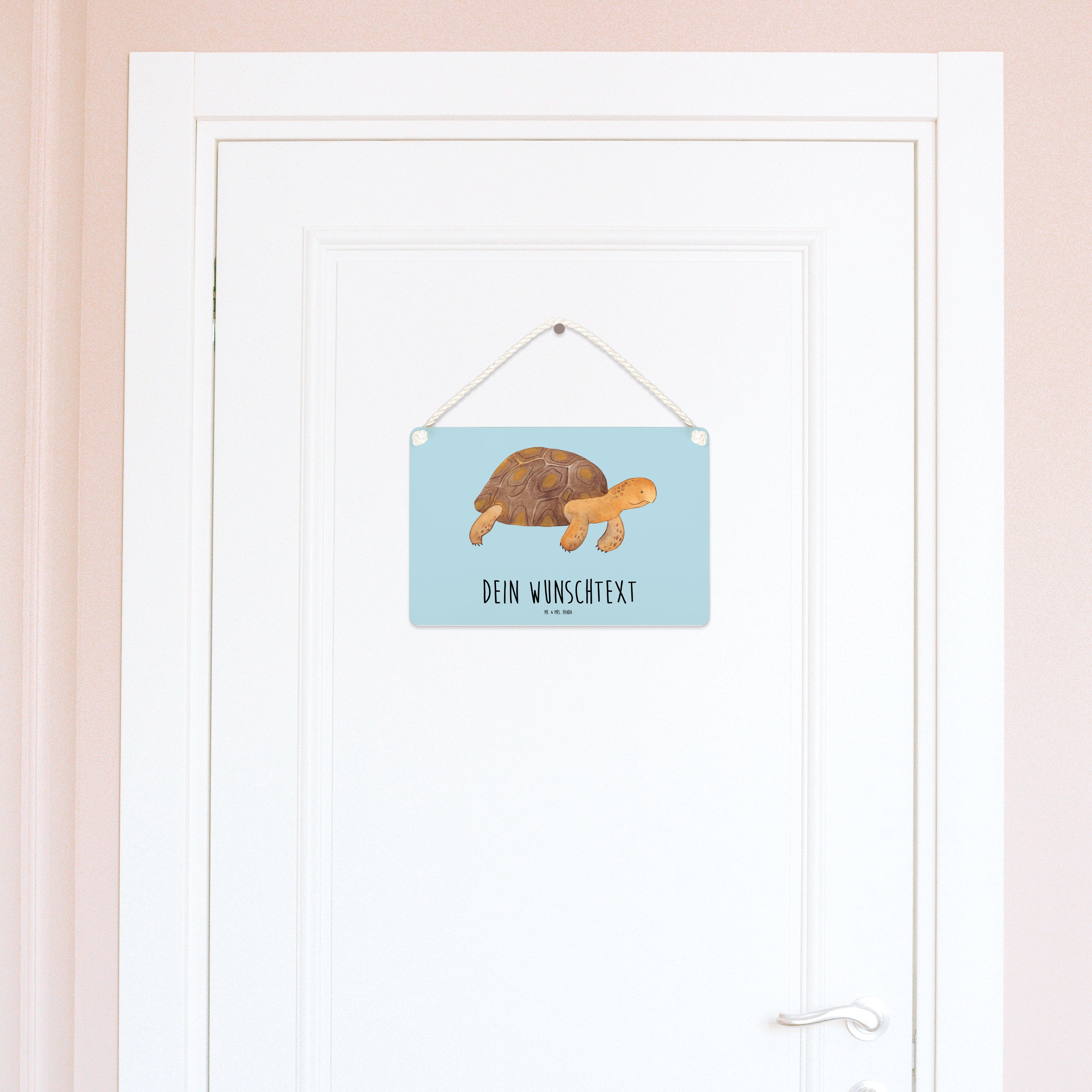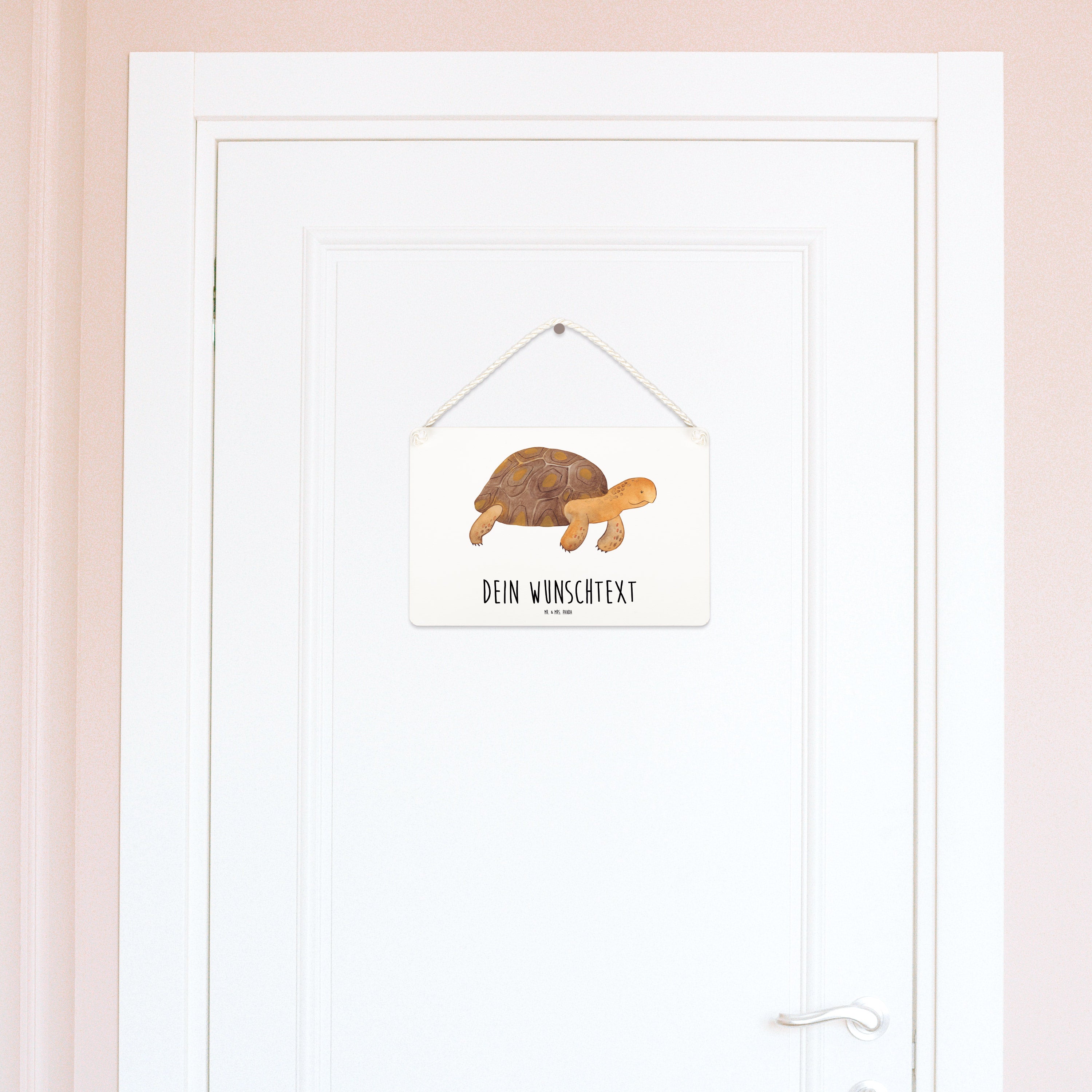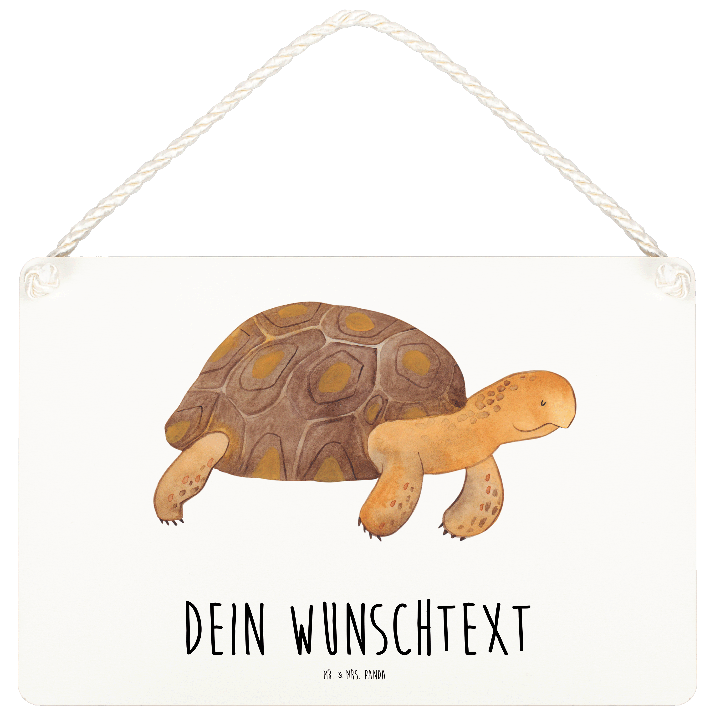 Personalisiertes Deko Schild Schildkröte marschiert - Weiß - DIN A4