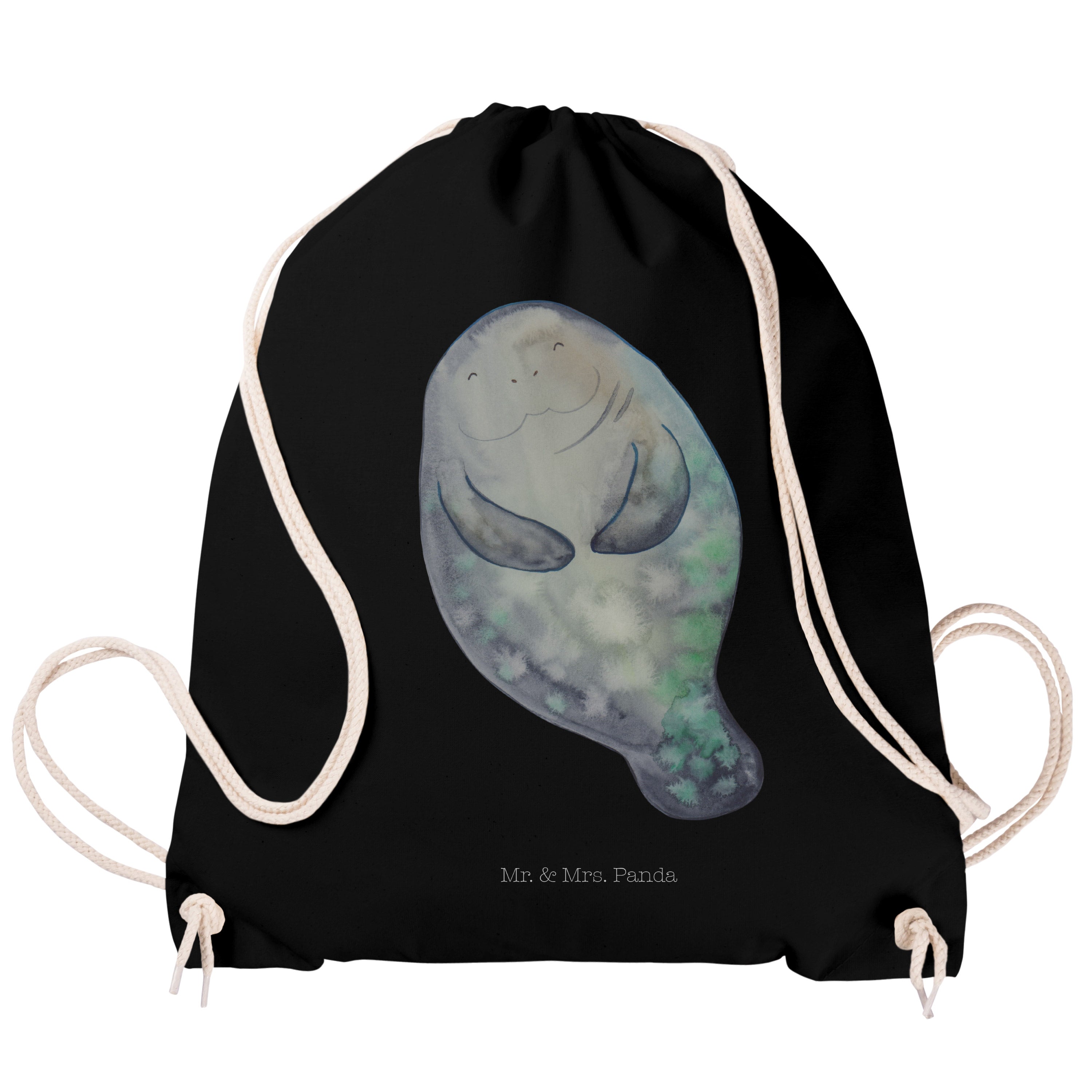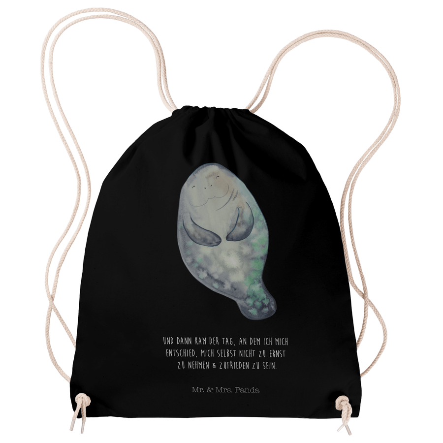 Sportbeutel Seekuh happy - mit Spruch - Schwarz