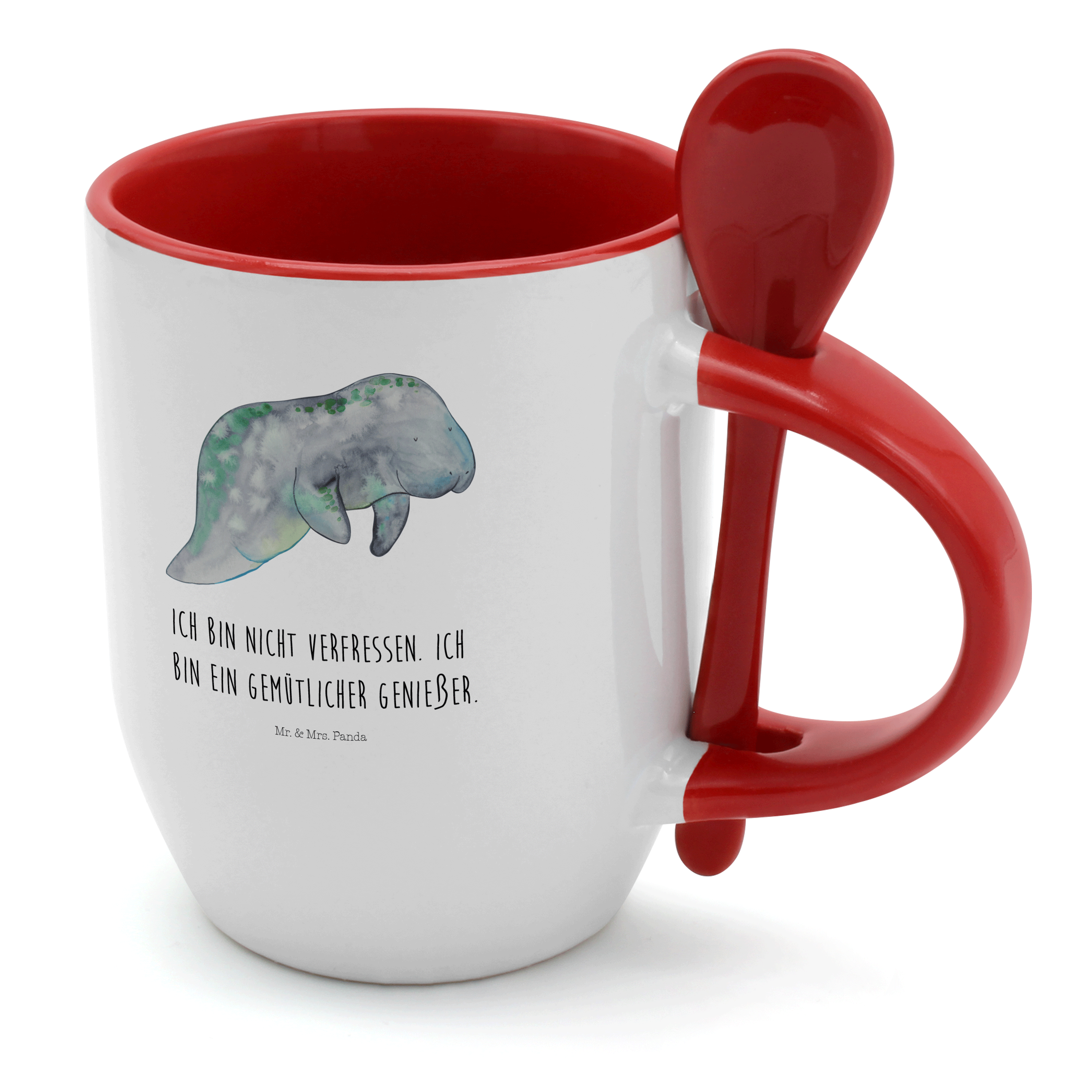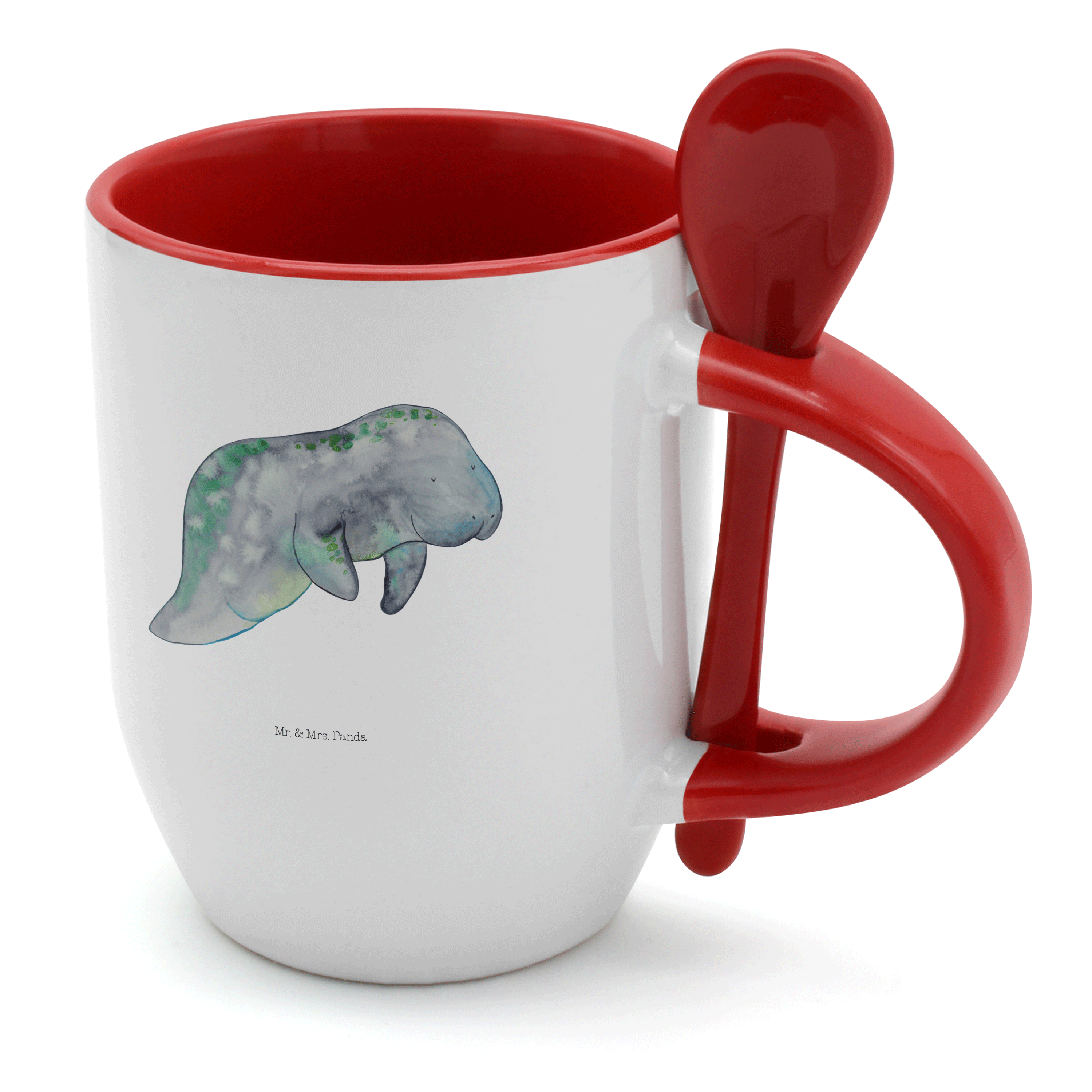 Tasse mit Löffel Seekuh chillt - mit Spruch