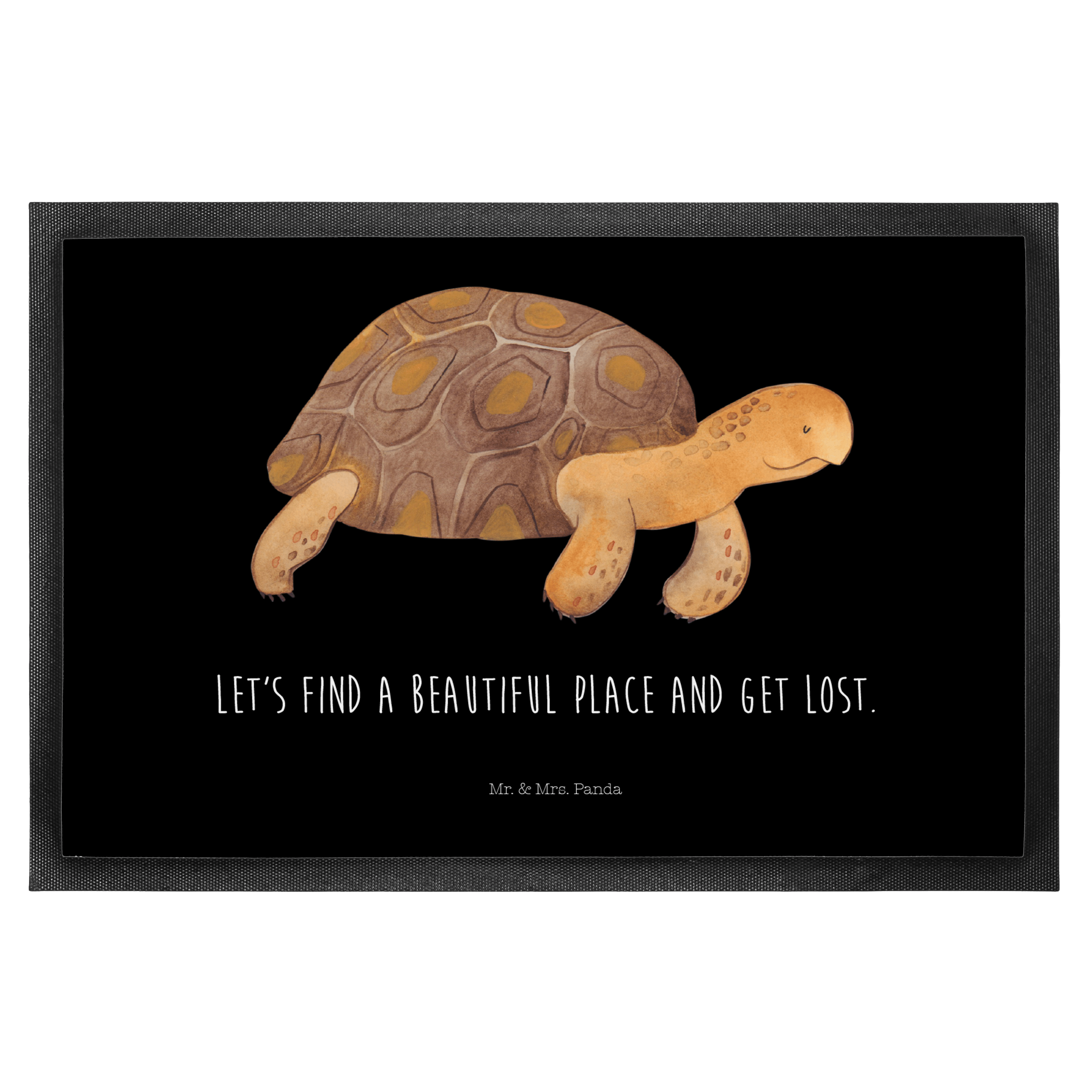 Fußmatte Schildkröte marschiert - 60 x 90 cm - mit Spruch - Schwarz