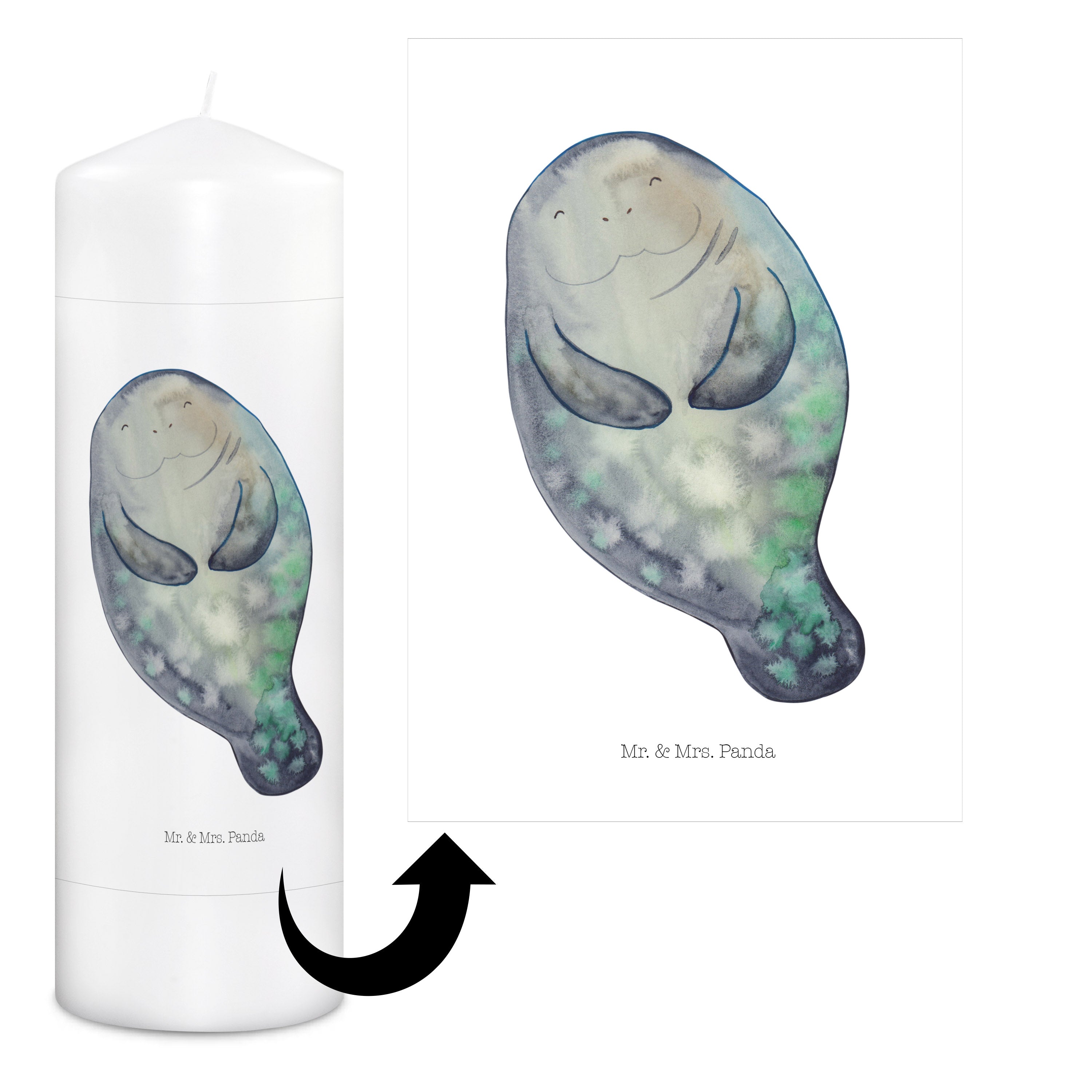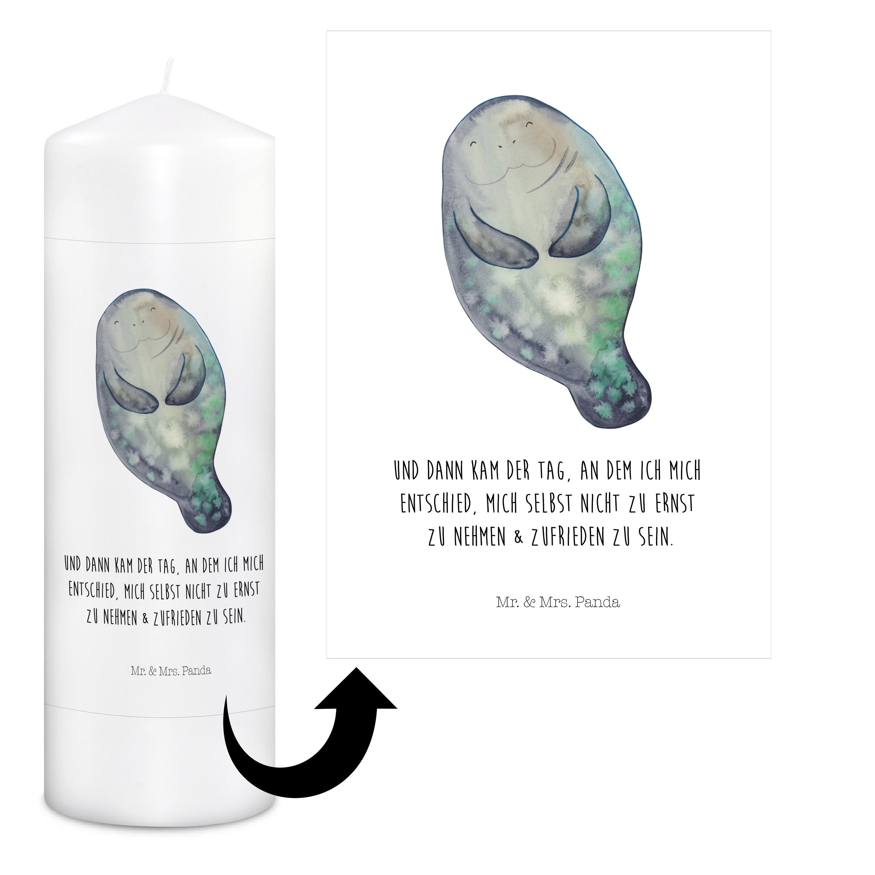 Kerze Seekuh happy - 29 x 8 cm XL - mit Spruch