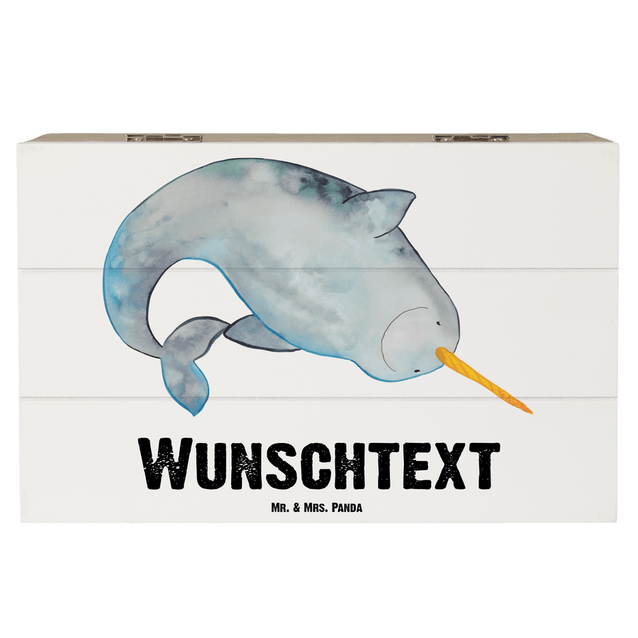 Personalisierte Holzkiste Narwal - Weiß - 19 x 12 cm