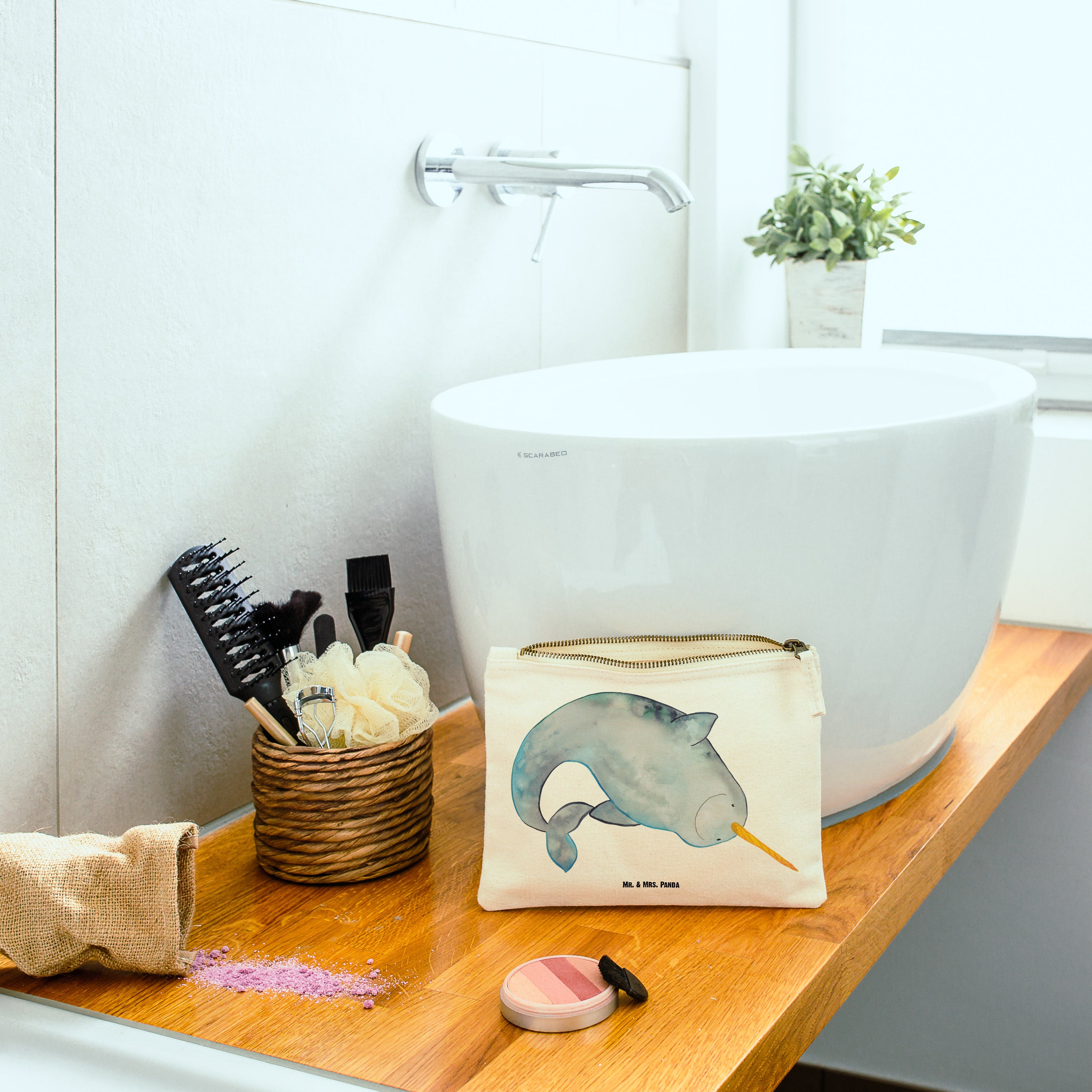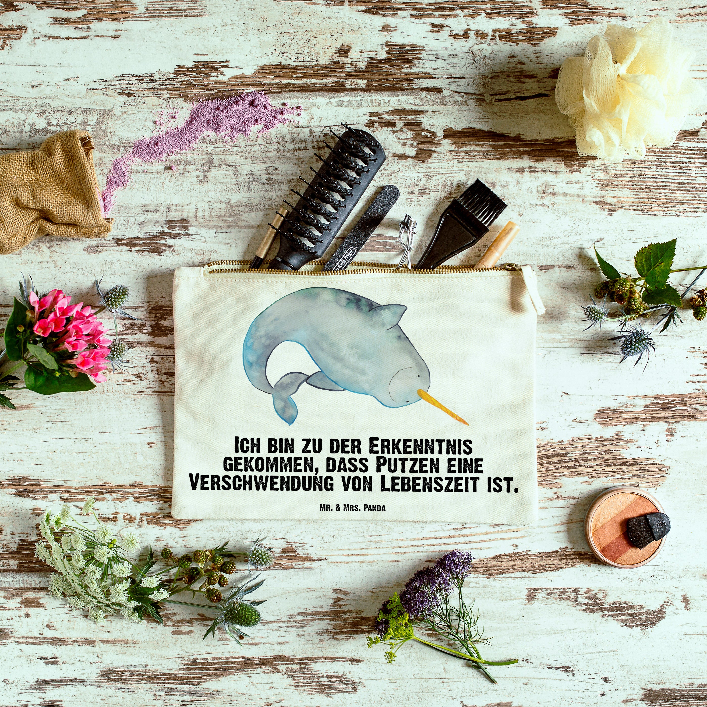 Schminktasche Narwal - Grösse XL Große - mit Spruch