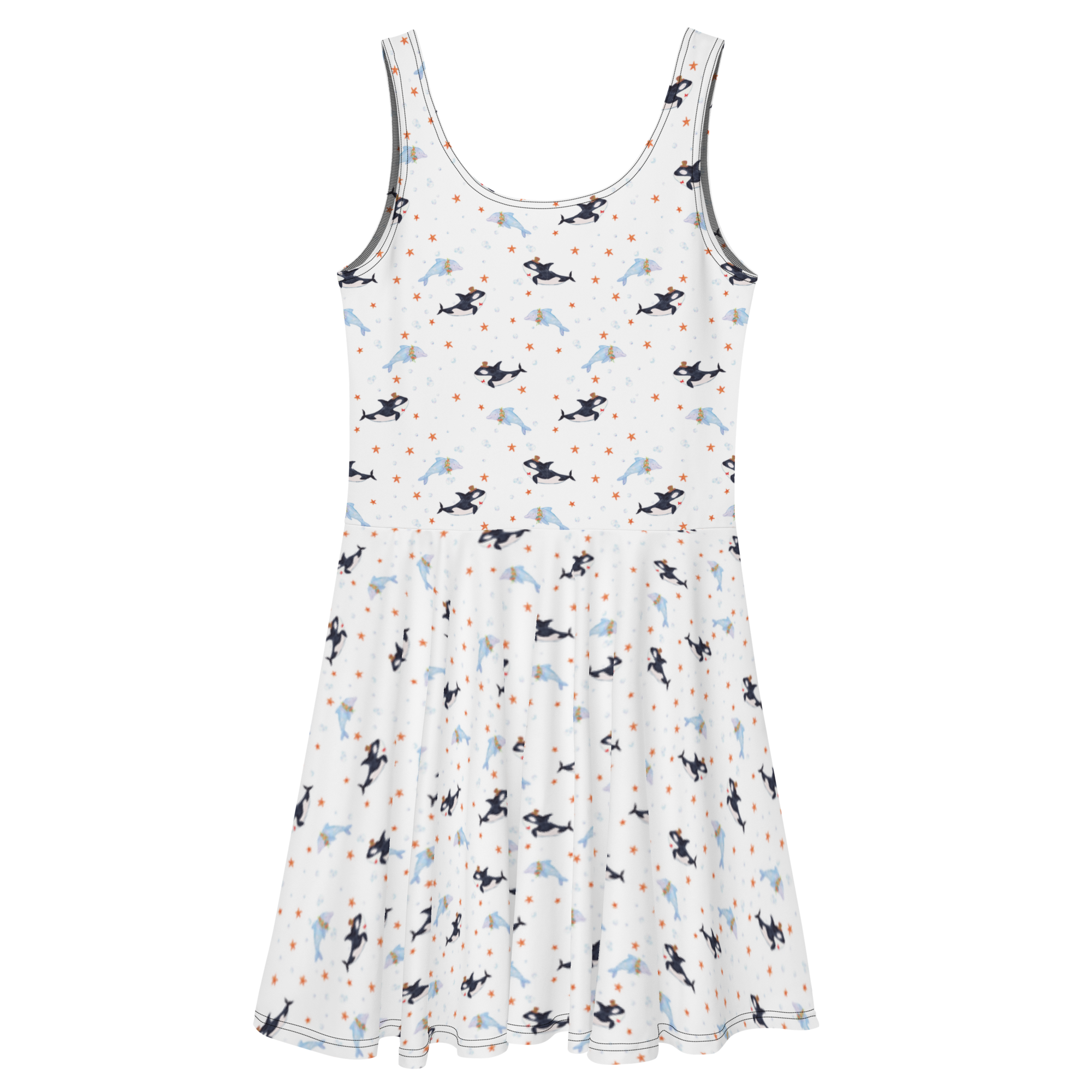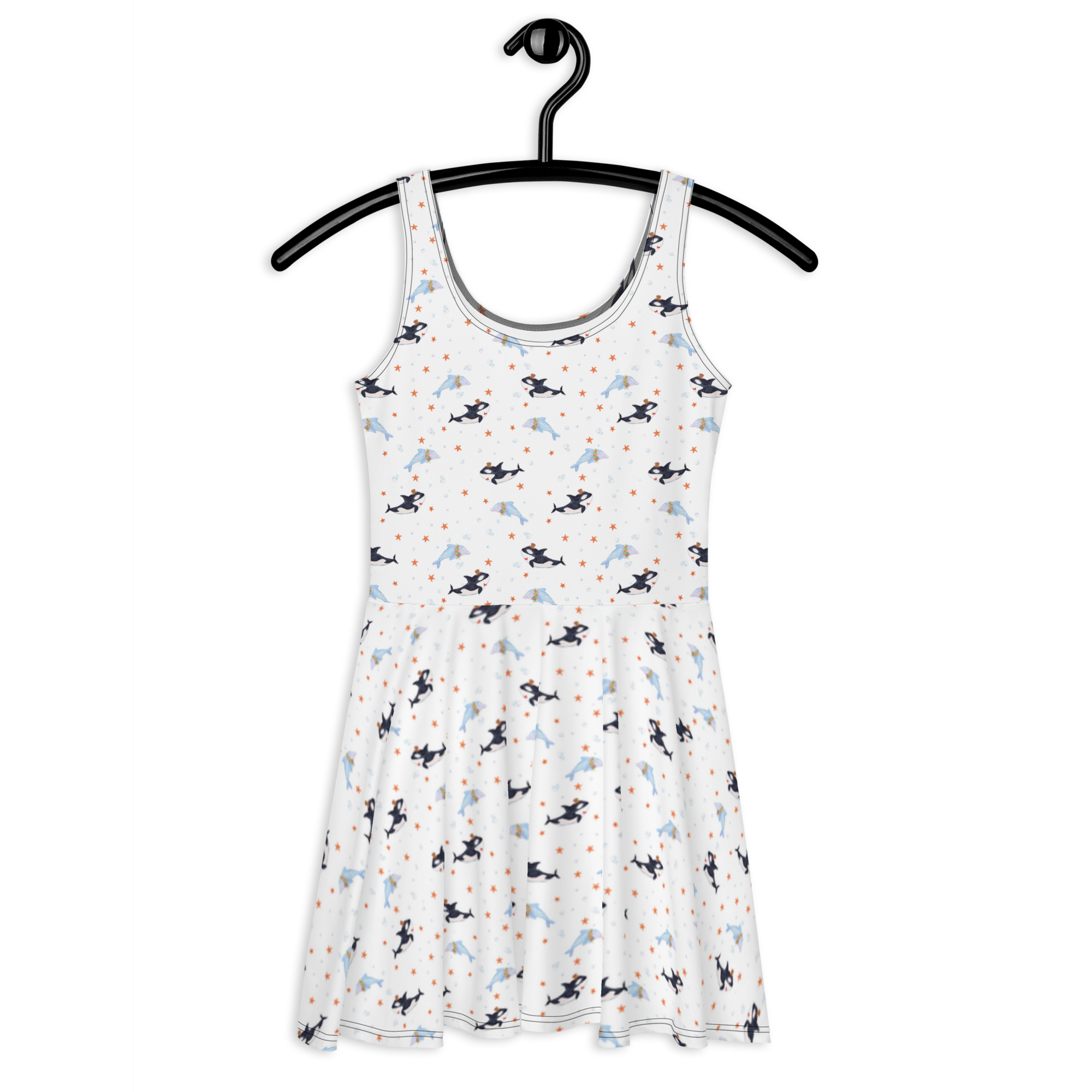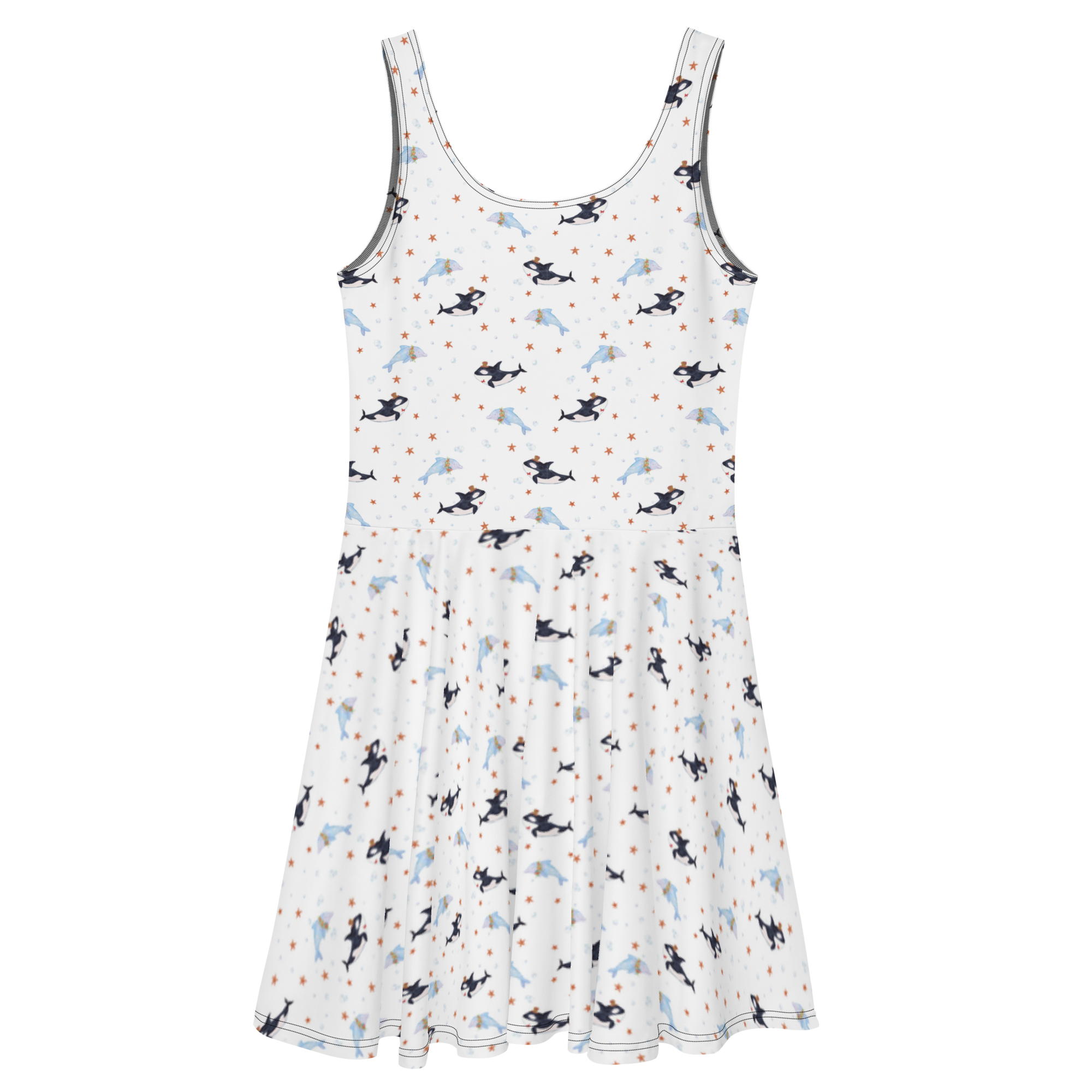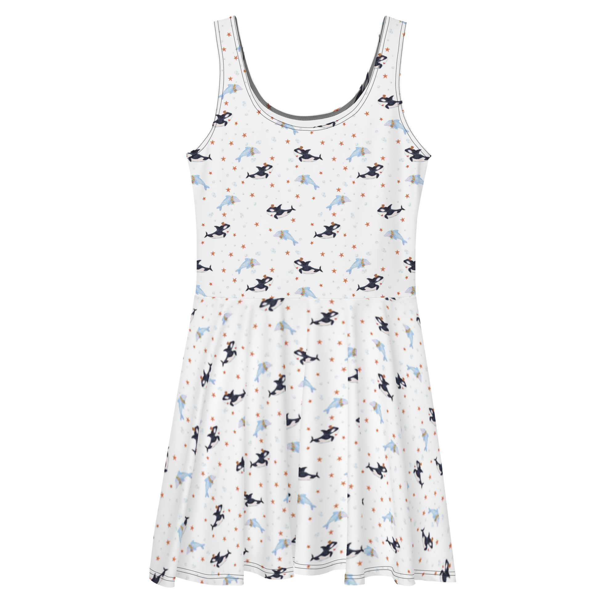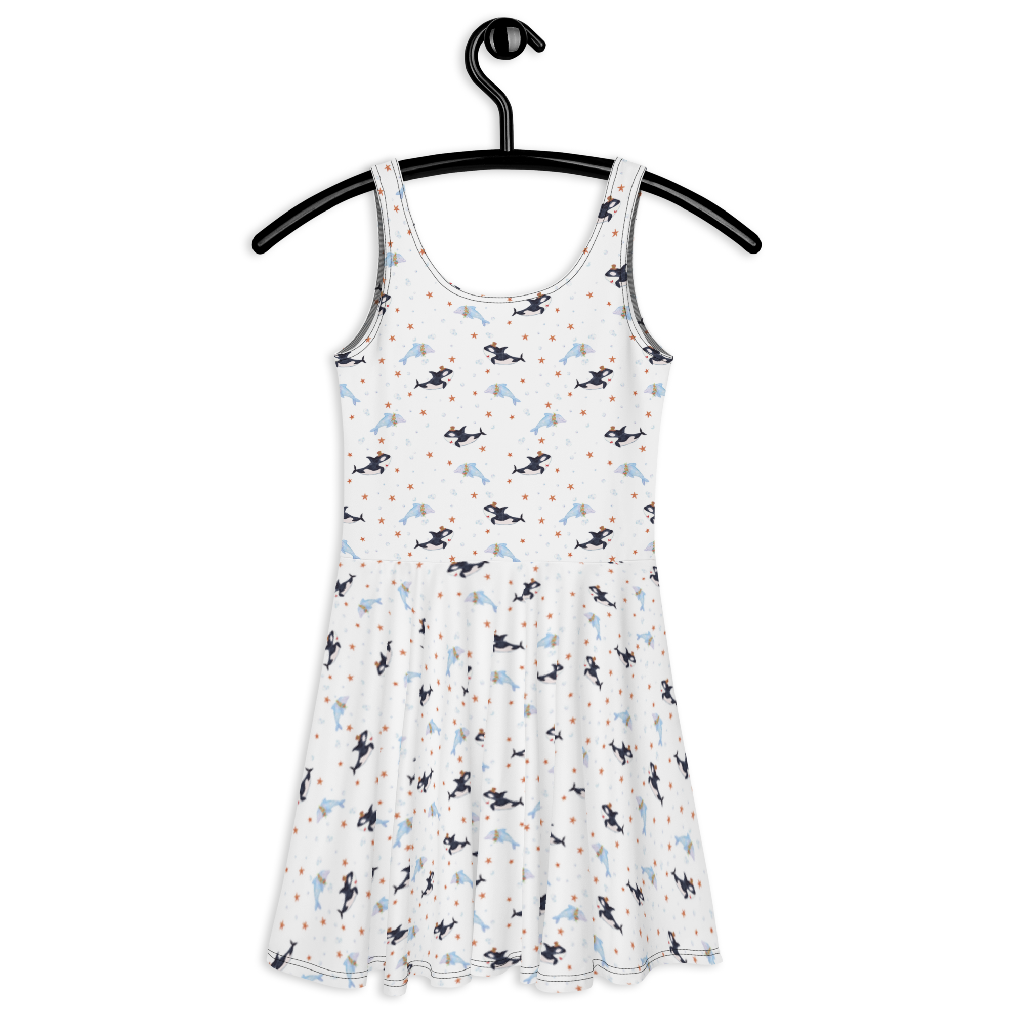 - Das Kleid ist leicht ausgestellt und reicht bis zur Hälfte der Knie.