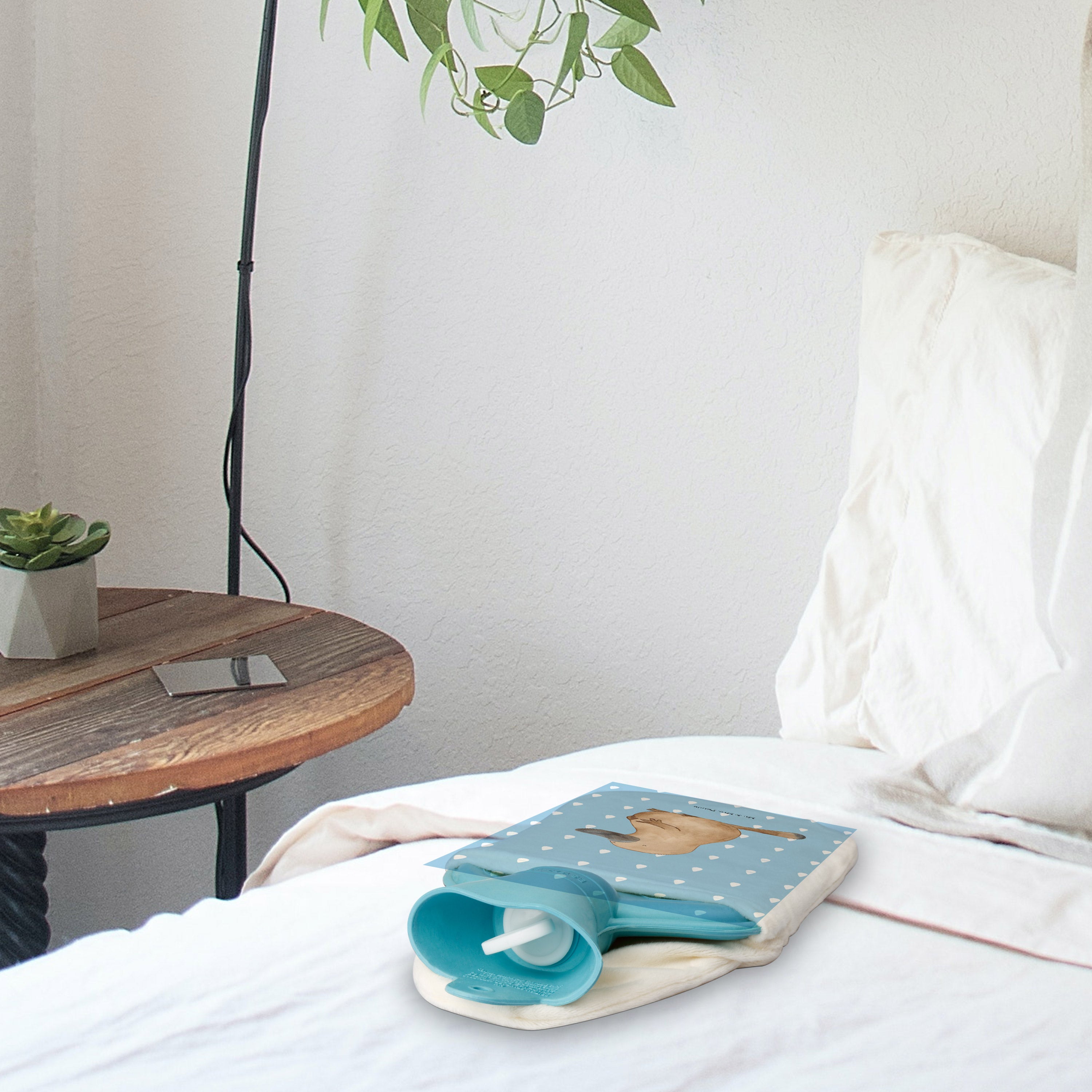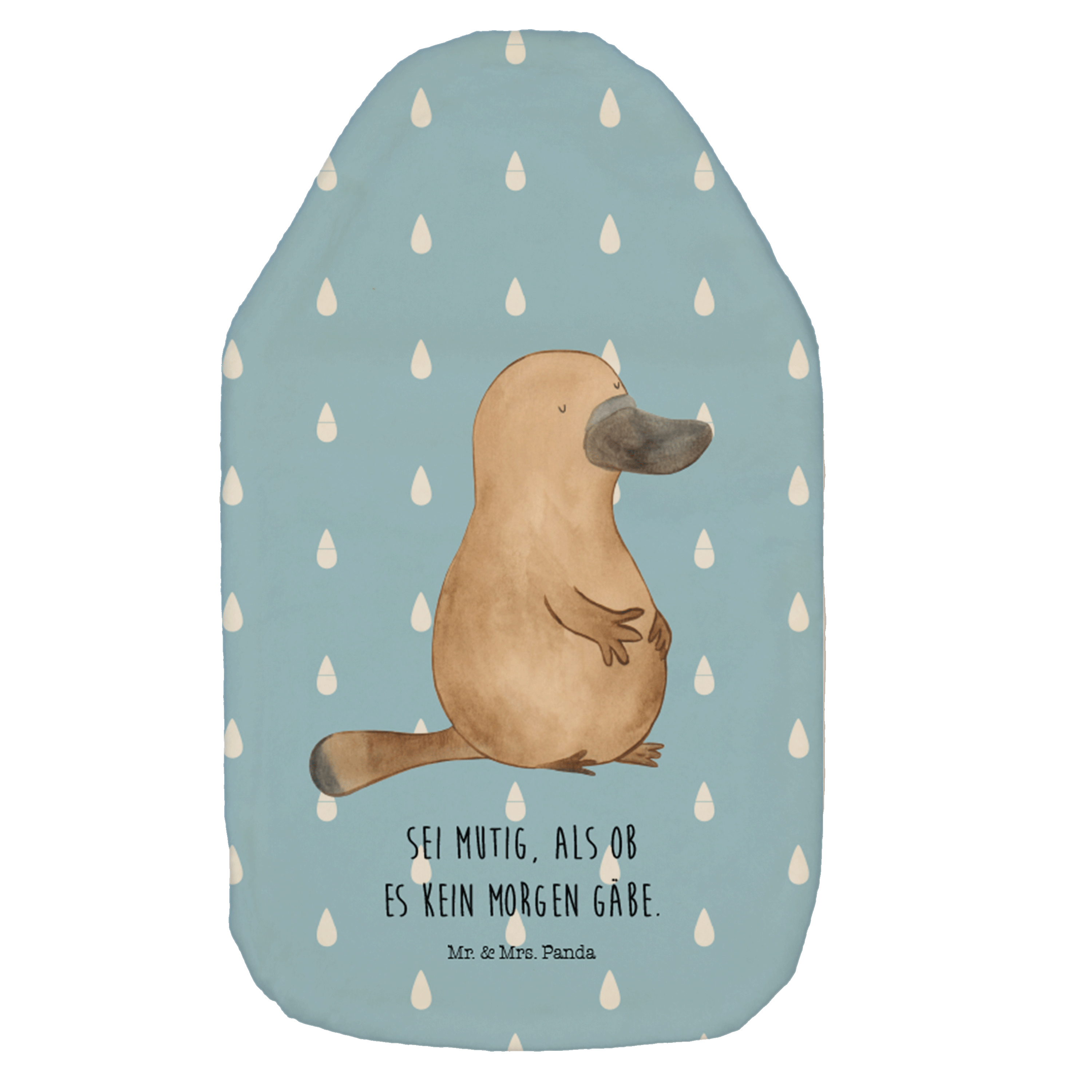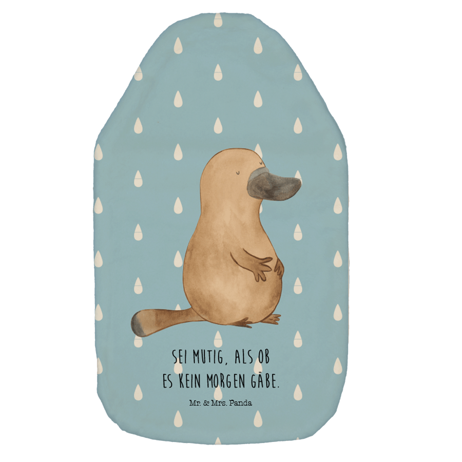 Wärmflasche Schnabeltier mutig - mit Spruch - Blau Pastell