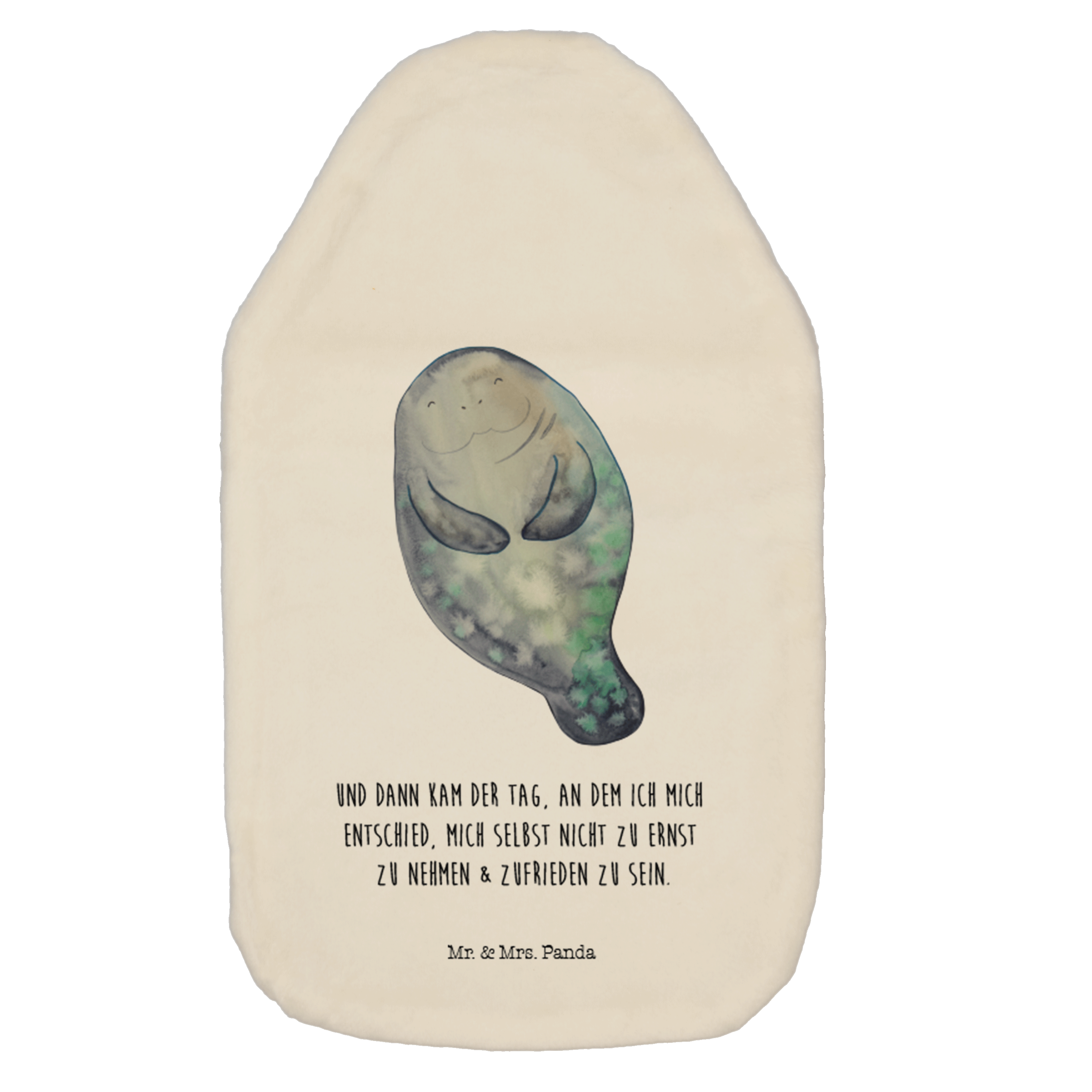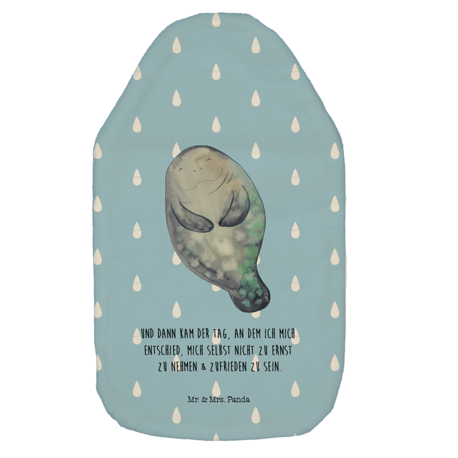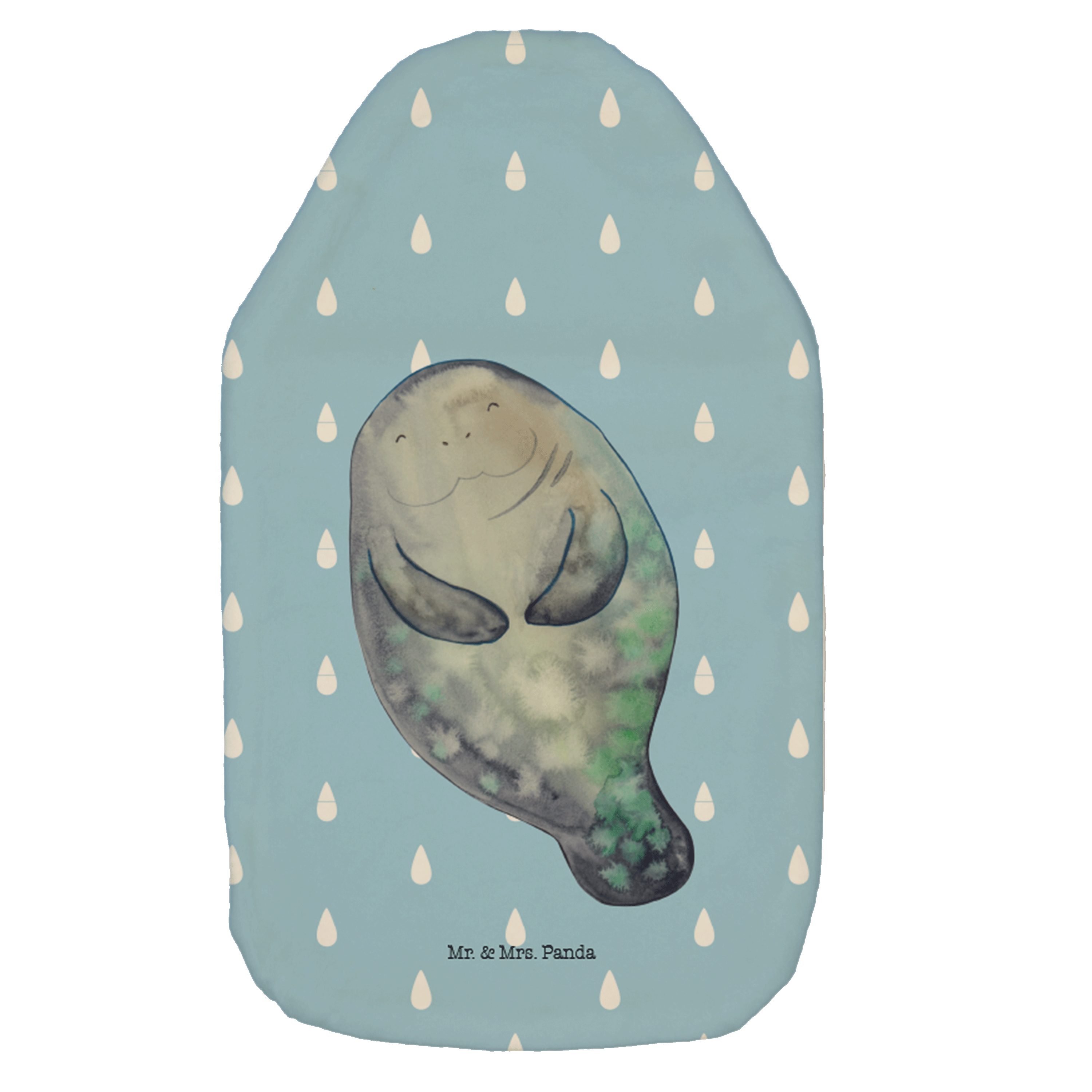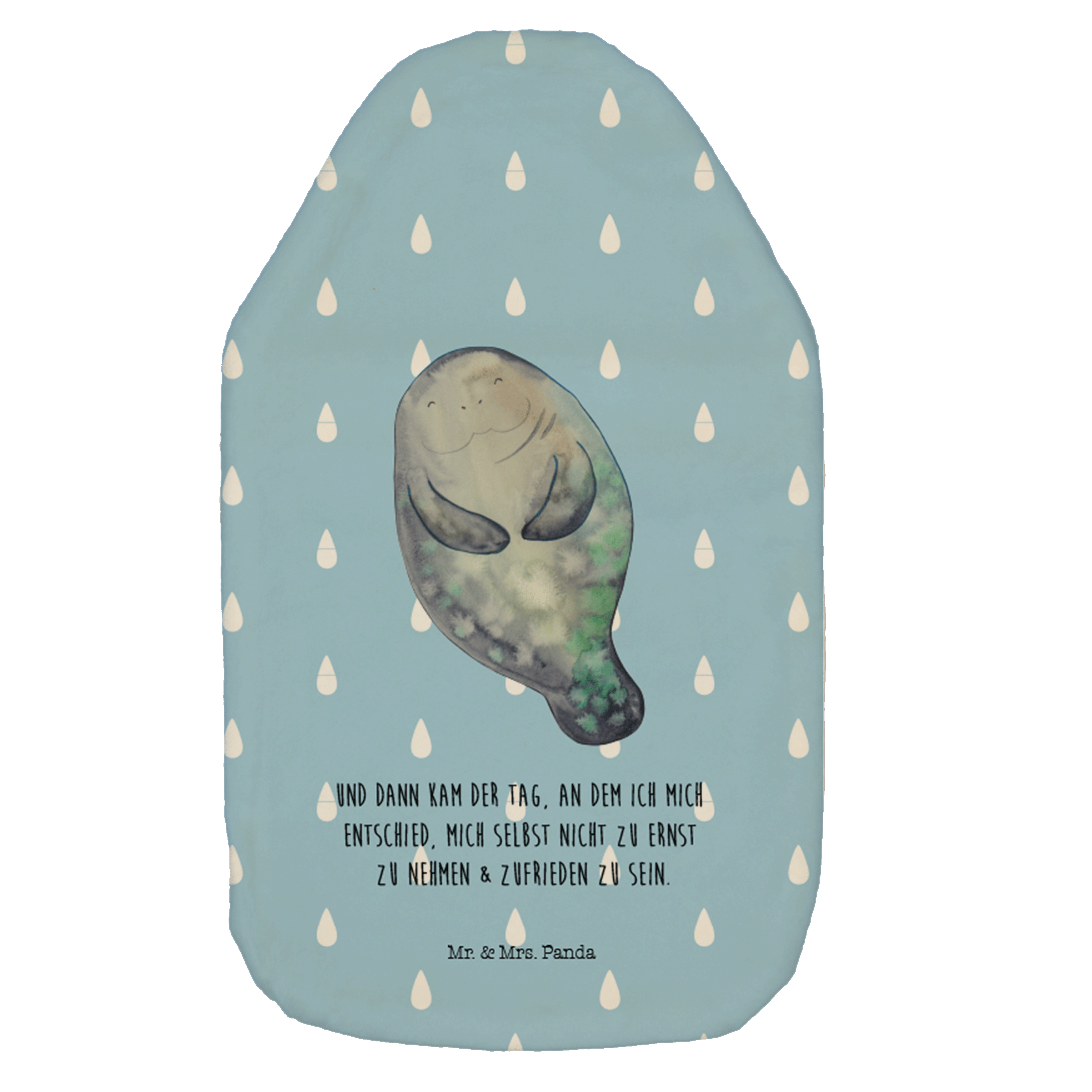 Wärmflasche Seekuh happy - mit Spruch - Blau Pastell