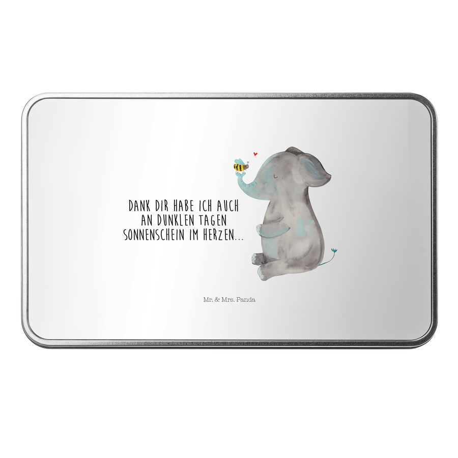 Metalldose rechteckig Elefant & Biene - mit Spruch - Weiß