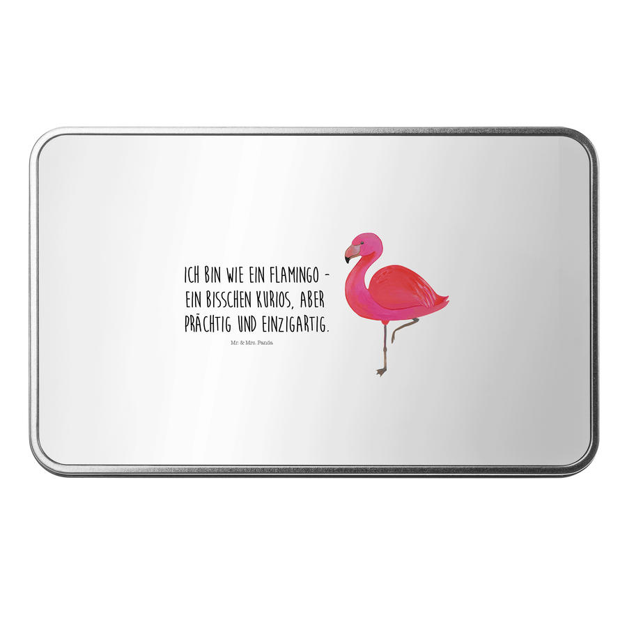 Metalldose rechteckig Flamingo classic - mit Spruch - Weiß