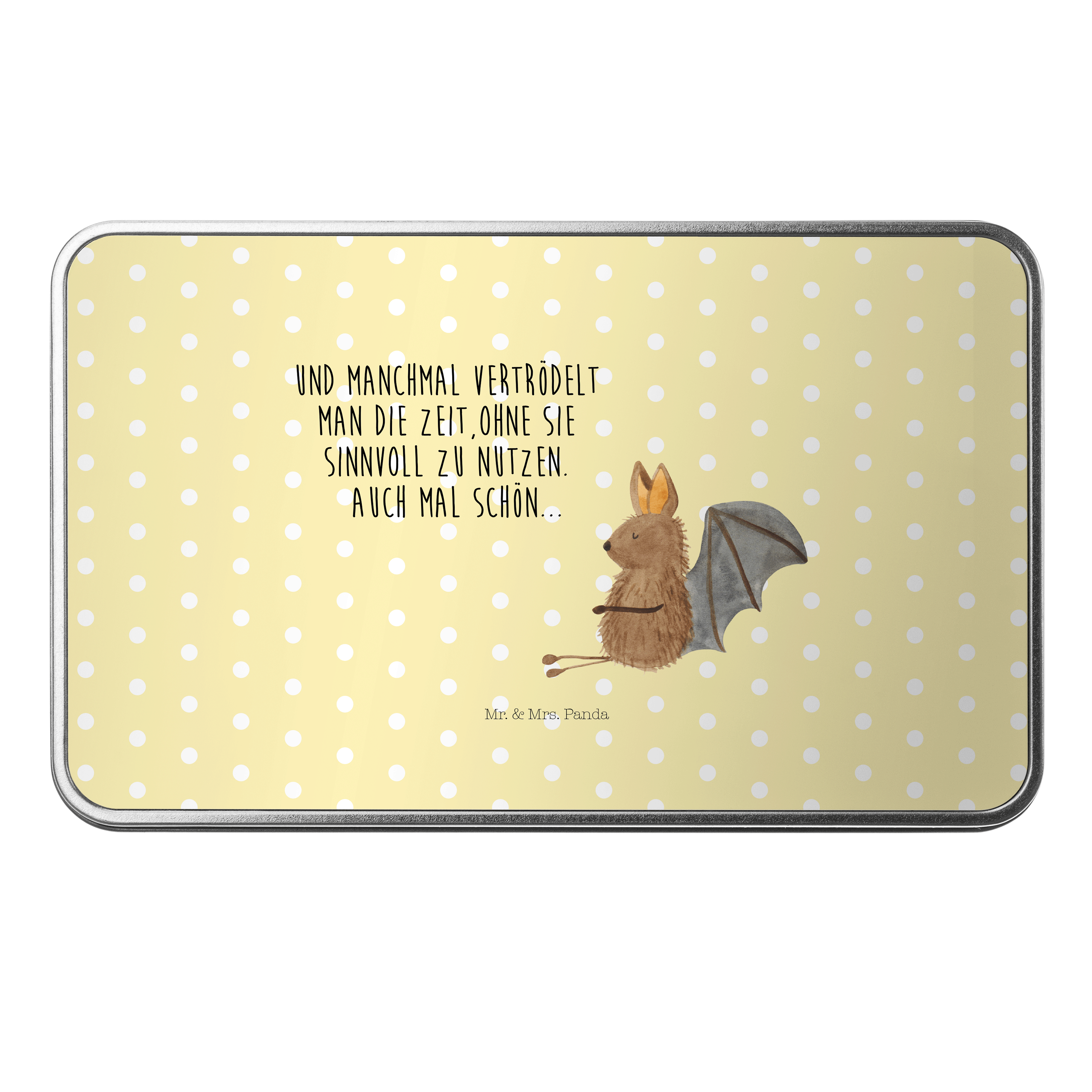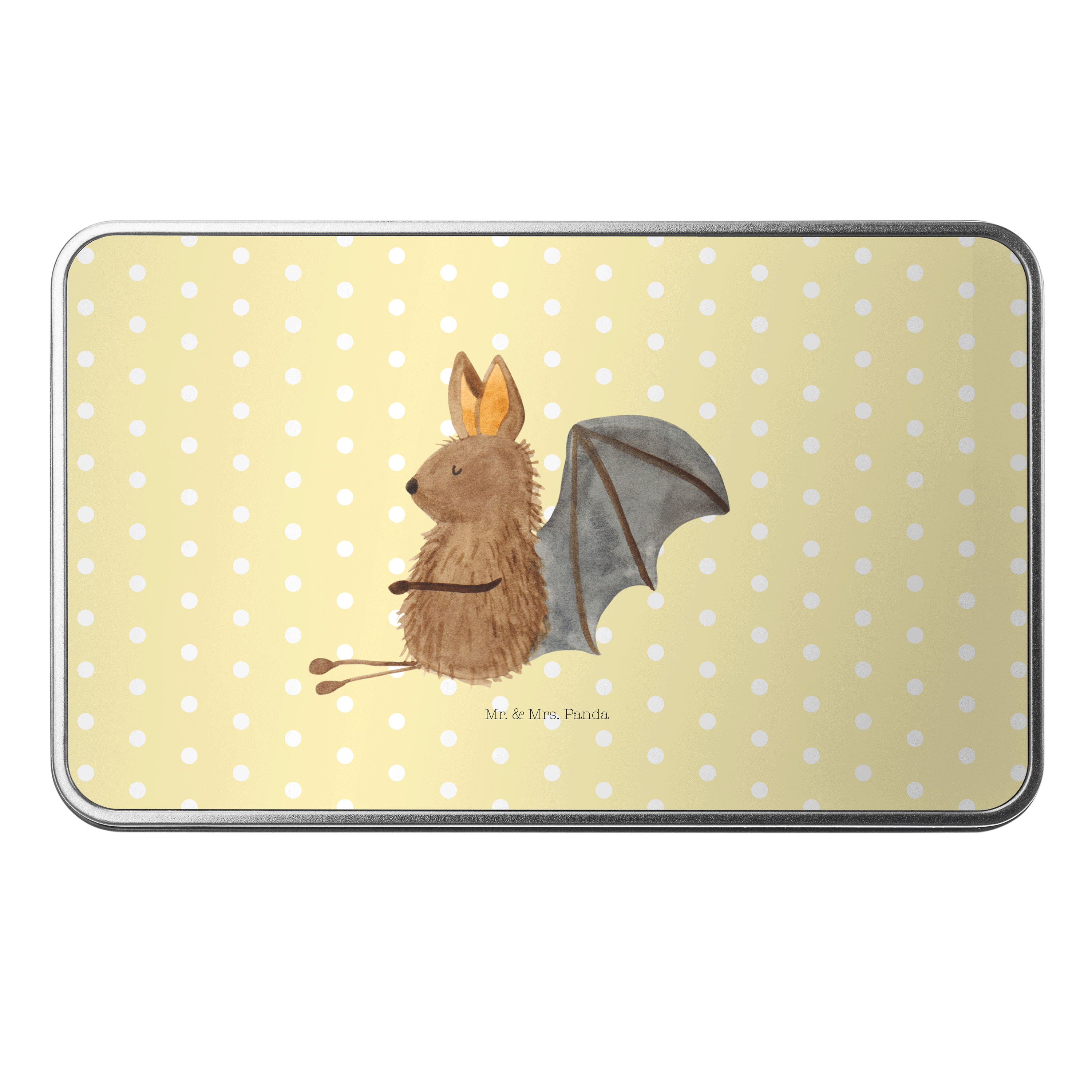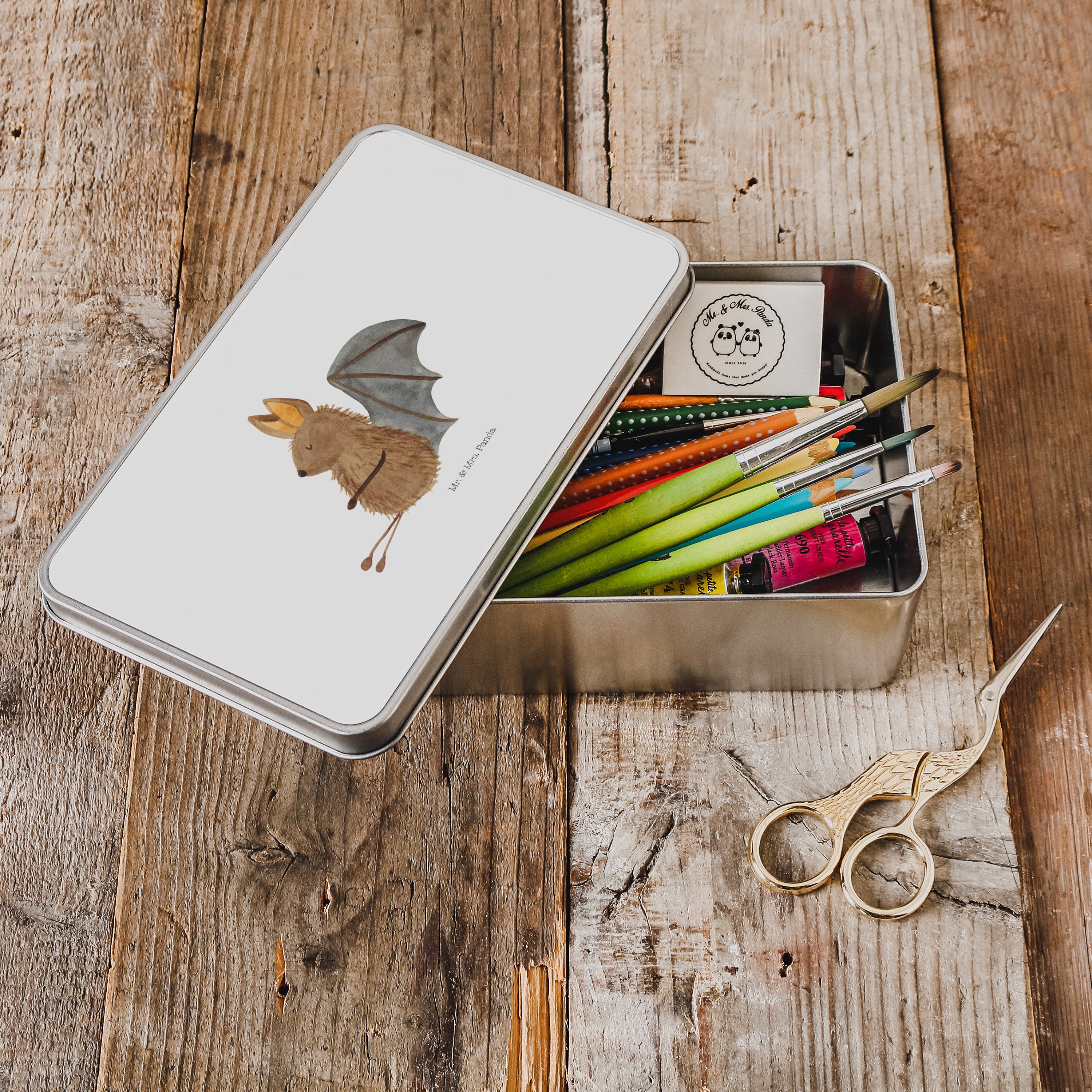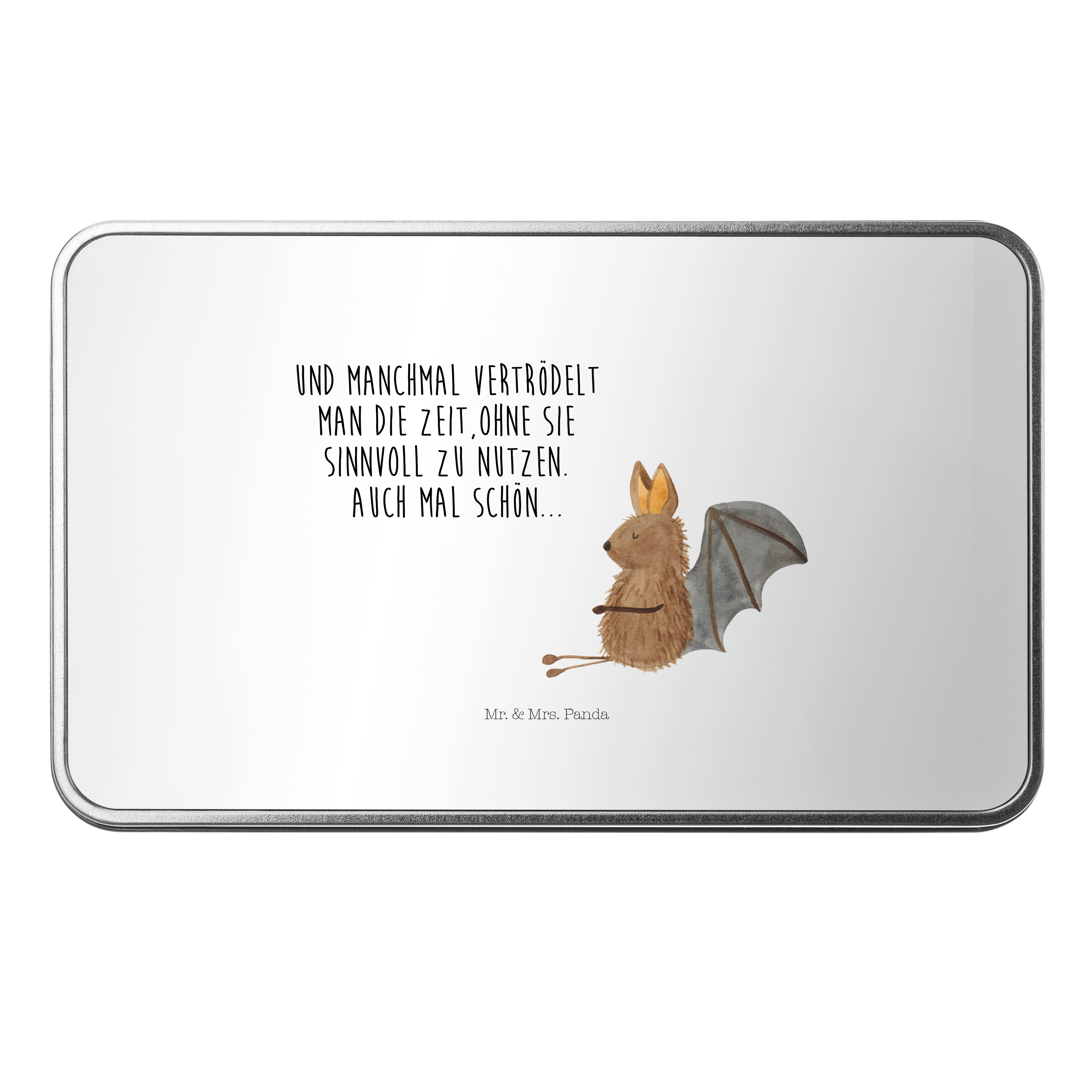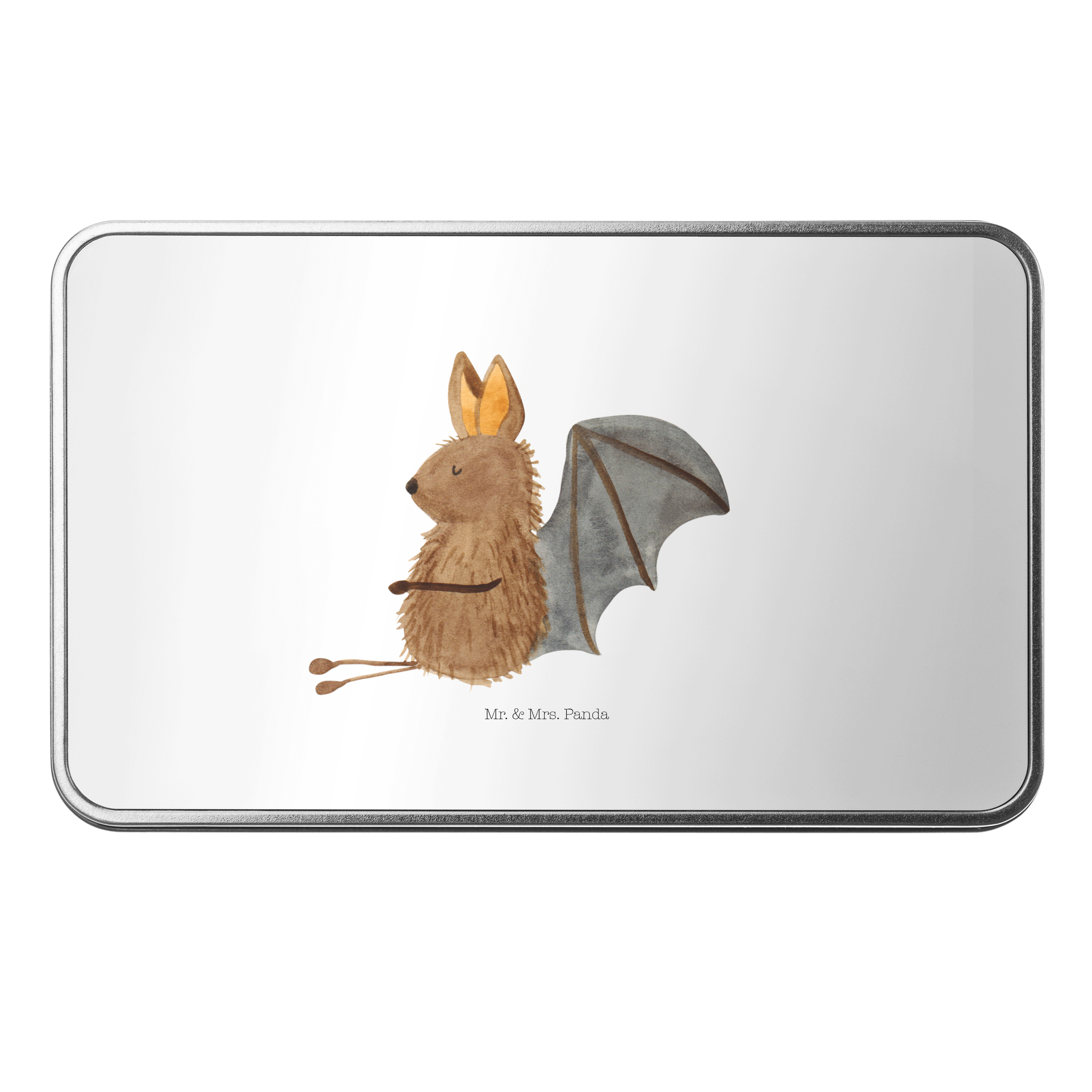 Metalldose rechteckig Fledermaus sitzend - mit Spruch - Weiß